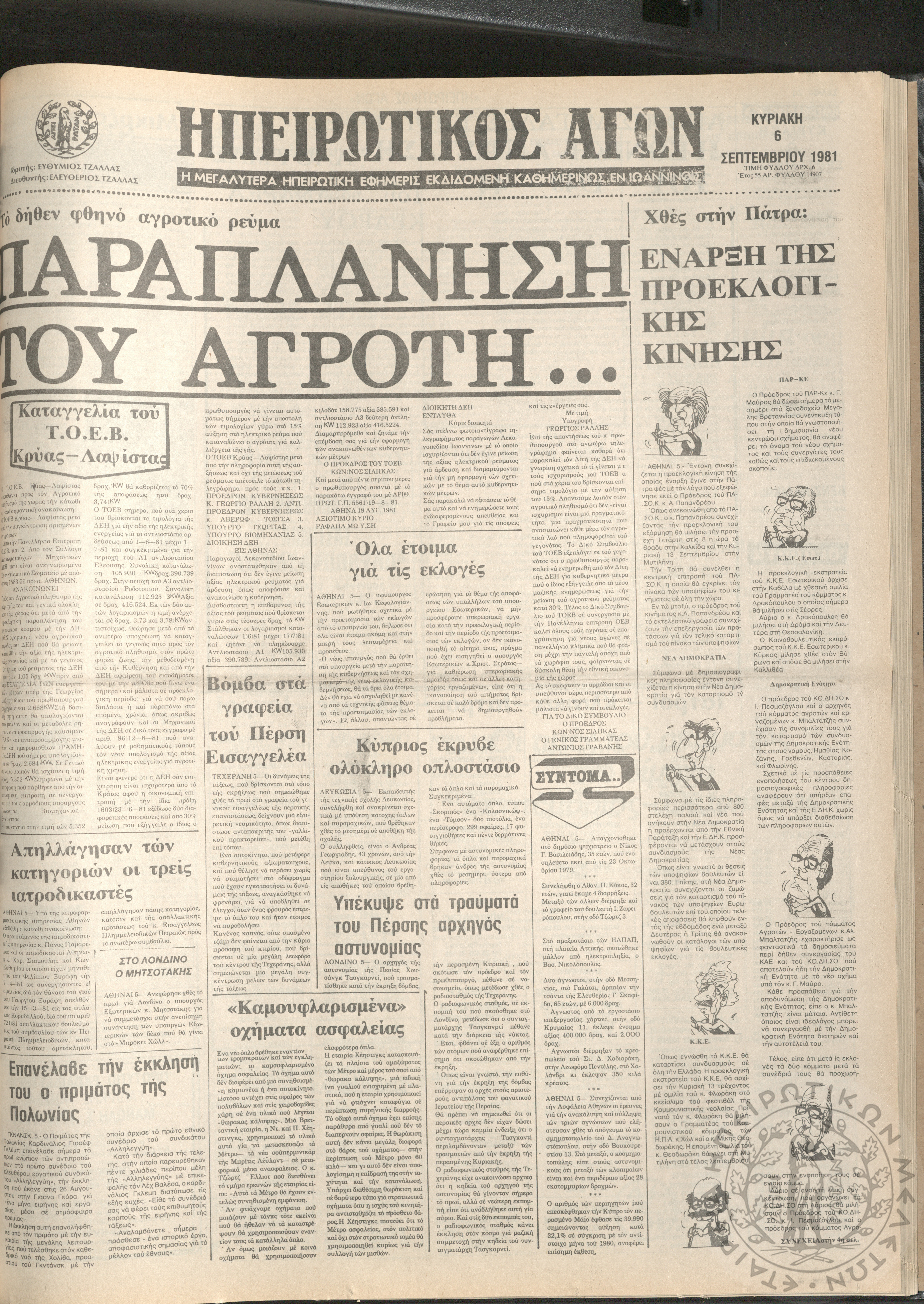 Ηπειρωτικός Αγών: η μεγαλυτέρα Ηπειρωτική εφημερίς εκδιδόμενη καθημερινώς εν Ιωαννίνοις, 1981, φ. 14910Έτος 55, φ. 14910...