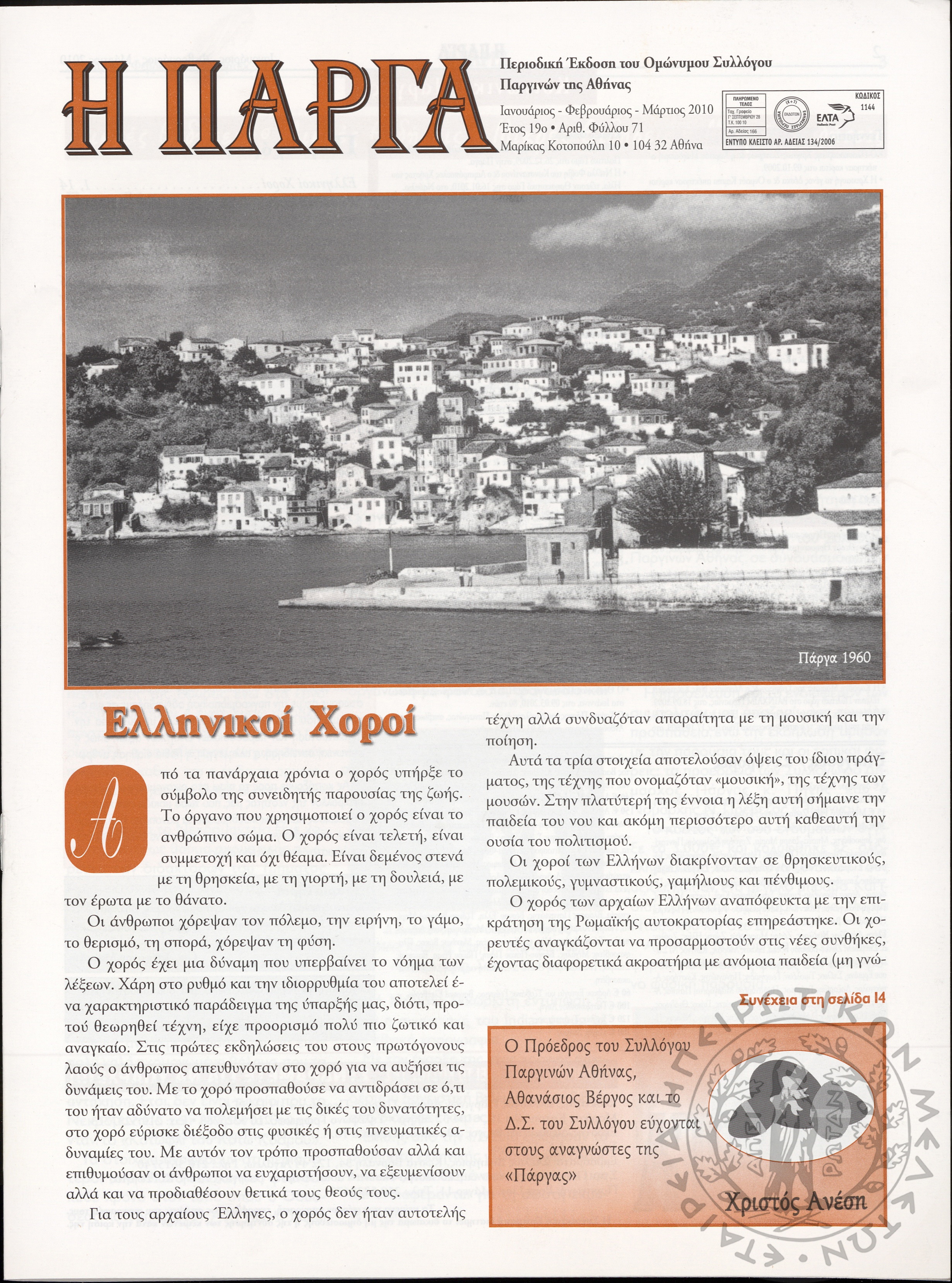 Η Πάργα: περιοδική έκδοση του ομώνυμου Συλλόγου Παργινών της Αθήνας, 2010, φ. 71Έτος 19ο, αρ. φ. 71...