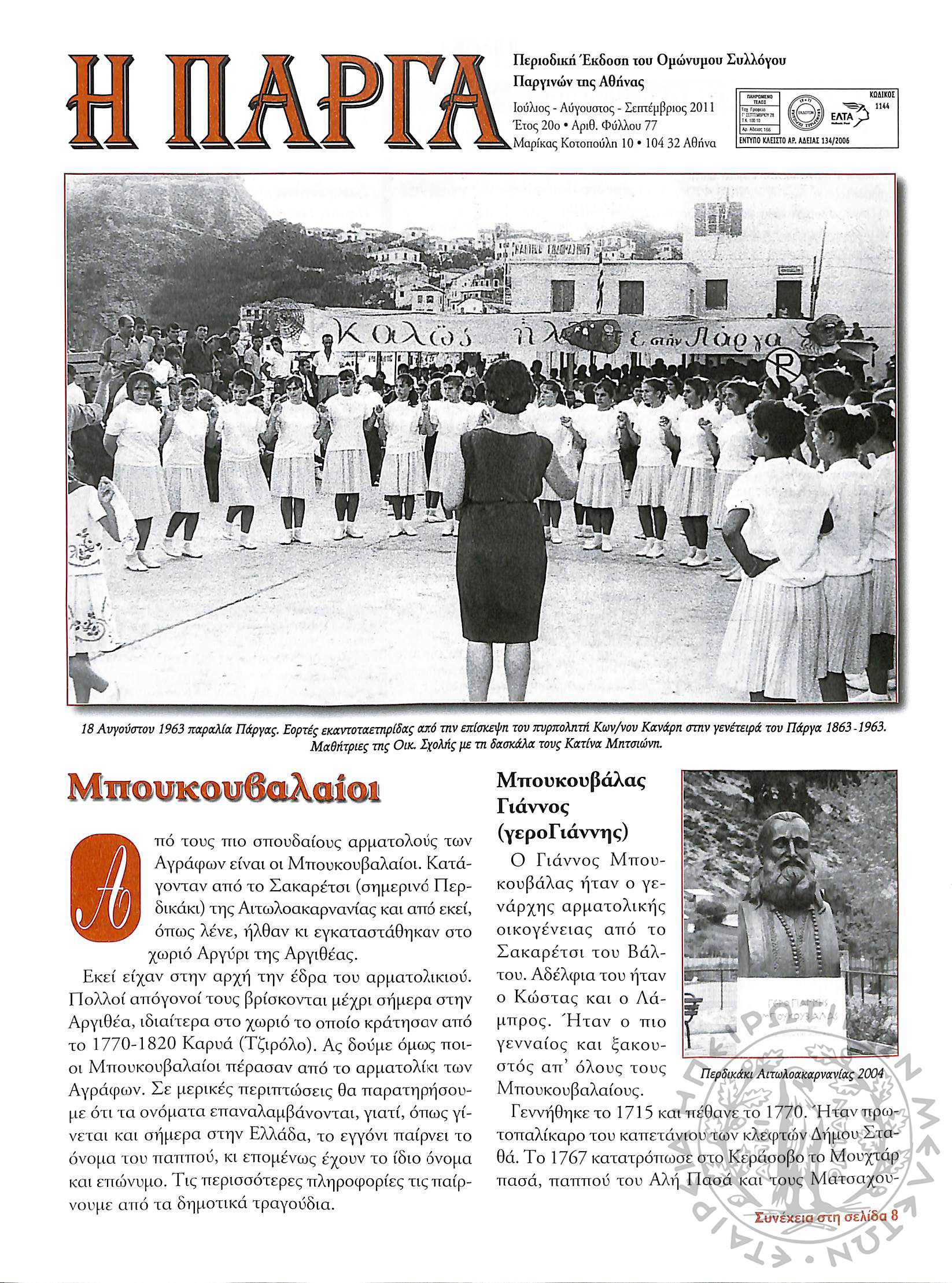 Η Πάργα: περιοδική έκδοση του ομώνυμου Συλλόγου Παργινών της Αθήνας, 2011, φ. 77Έτος 20ο, αρ. φ. 77...