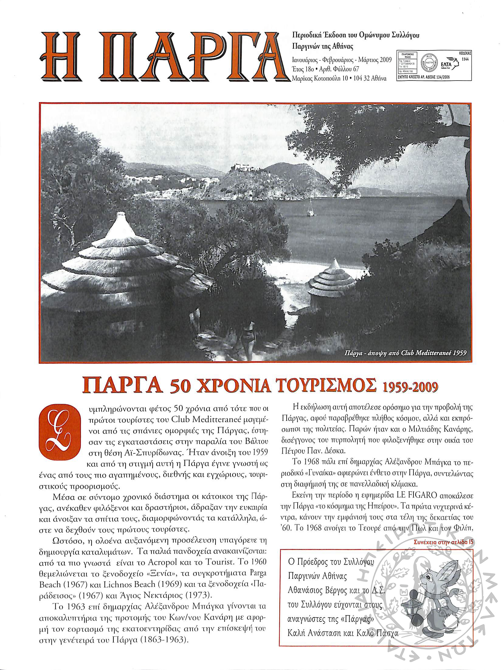 Η Πάργα: περιοδική έκδοση του ομώνυμου Συλλόγου Παργινών της Αθήνας, 2009, φ. 67Έτος 18ο, αρ. φ. 67...