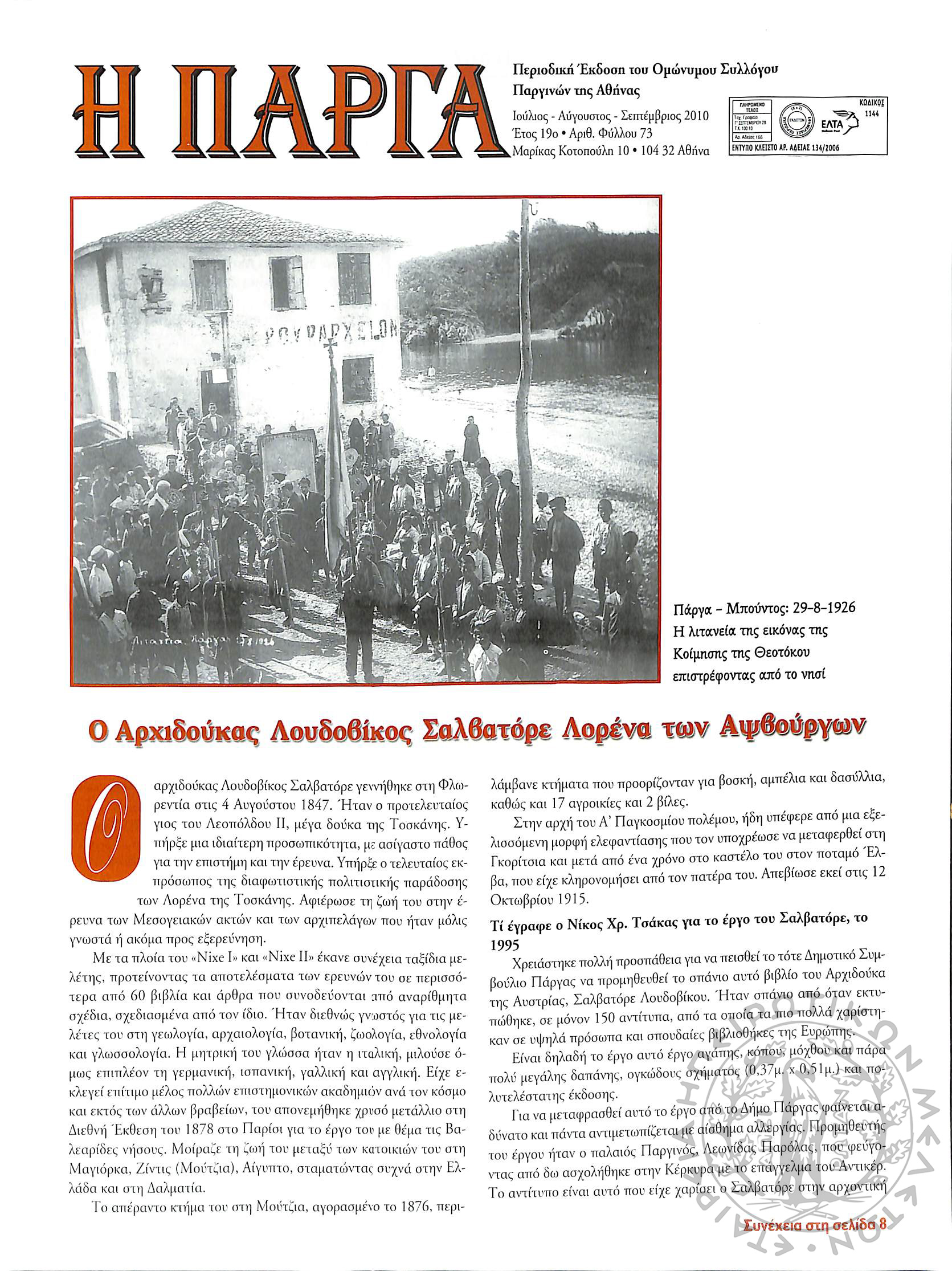 Η Πάργα: περιοδική έκδοση του ομώνυμου Συλλόγου Παργινών της Αθήνας, 2010, φ. 73Έτος 19ο, αρ. φ. 73...