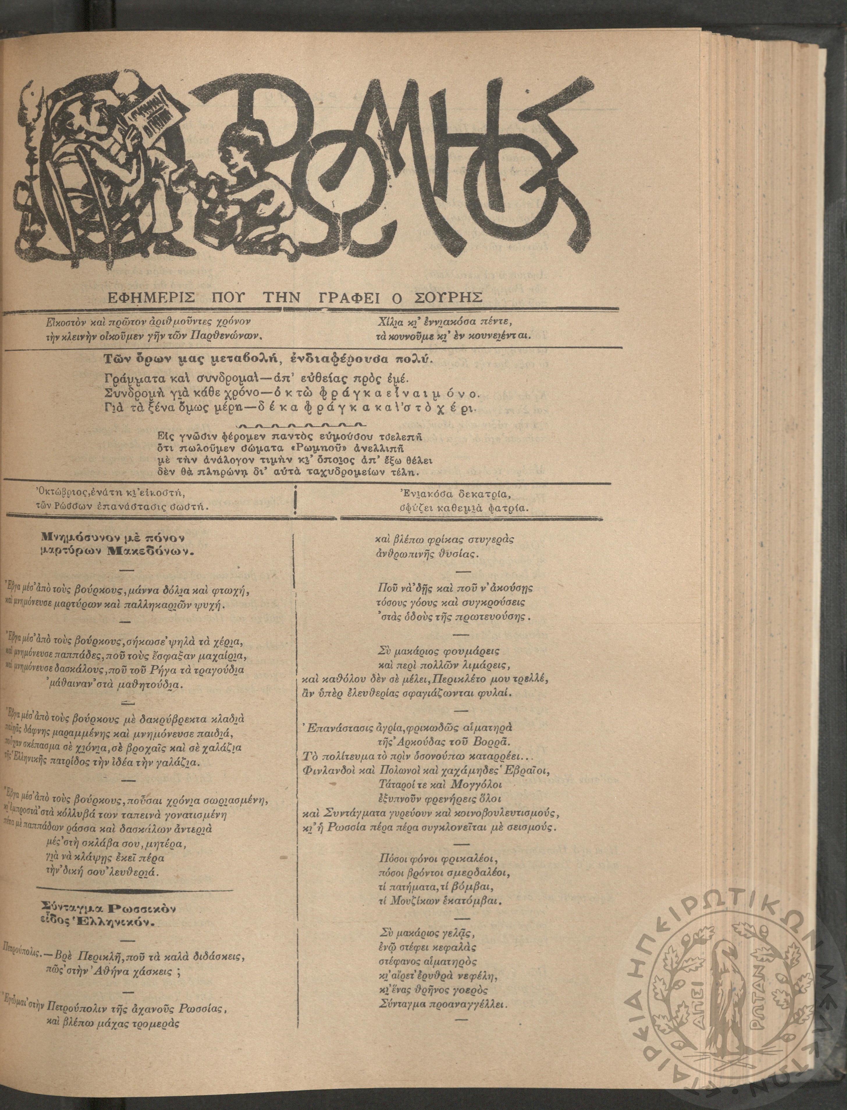 Ο Ρωμηός: Εφημερίς που την γράφει ο Σουρής, 1905, φ. 917