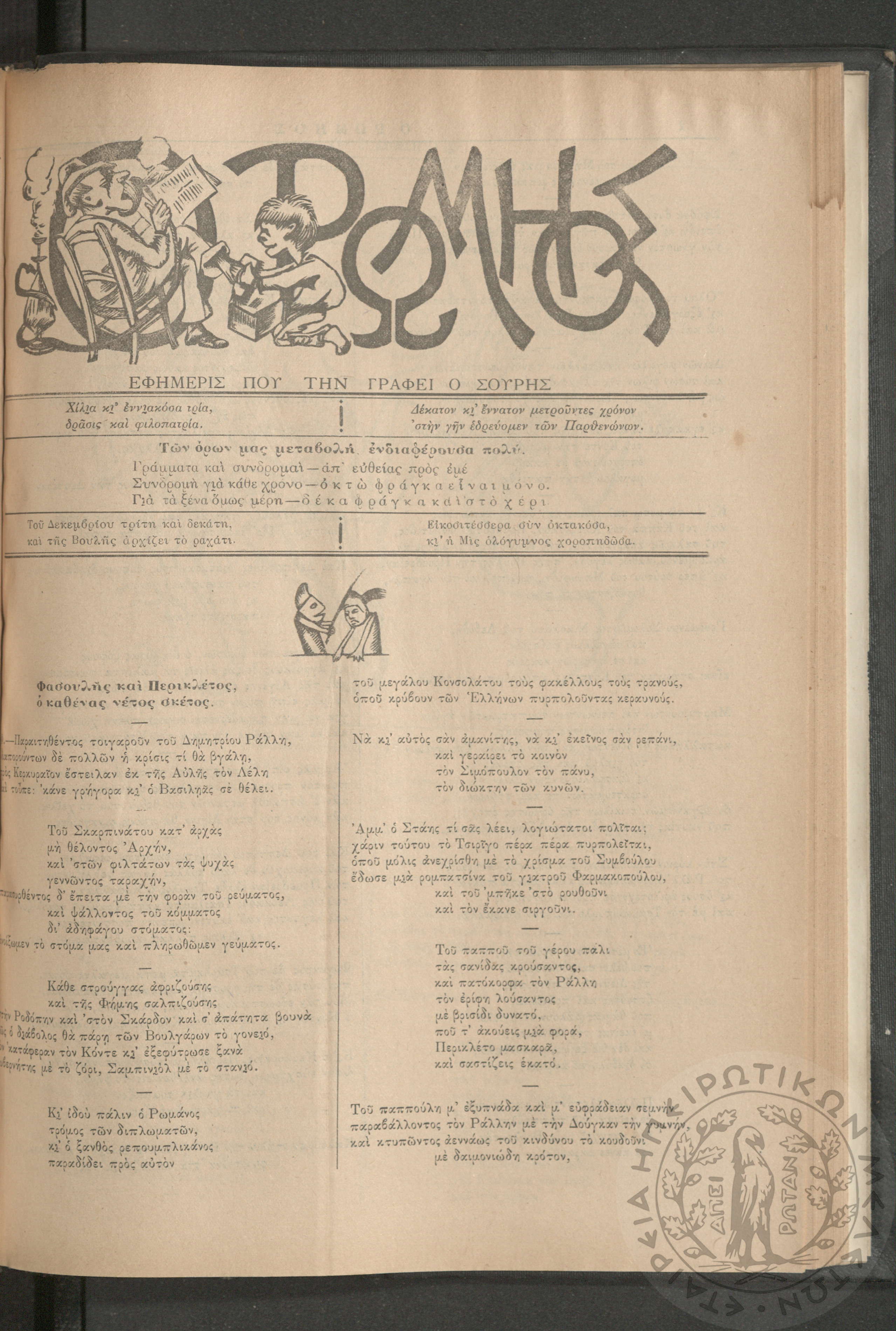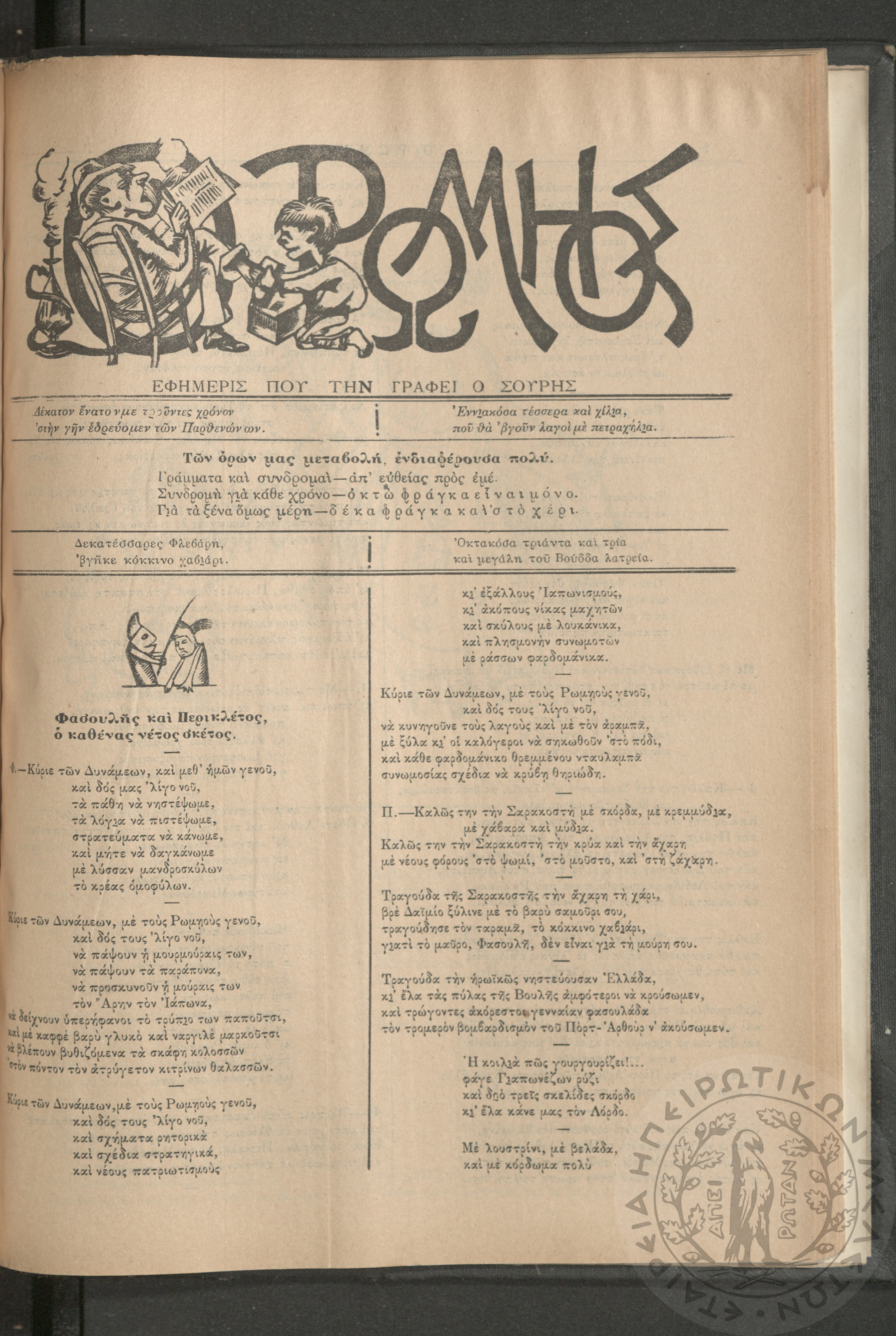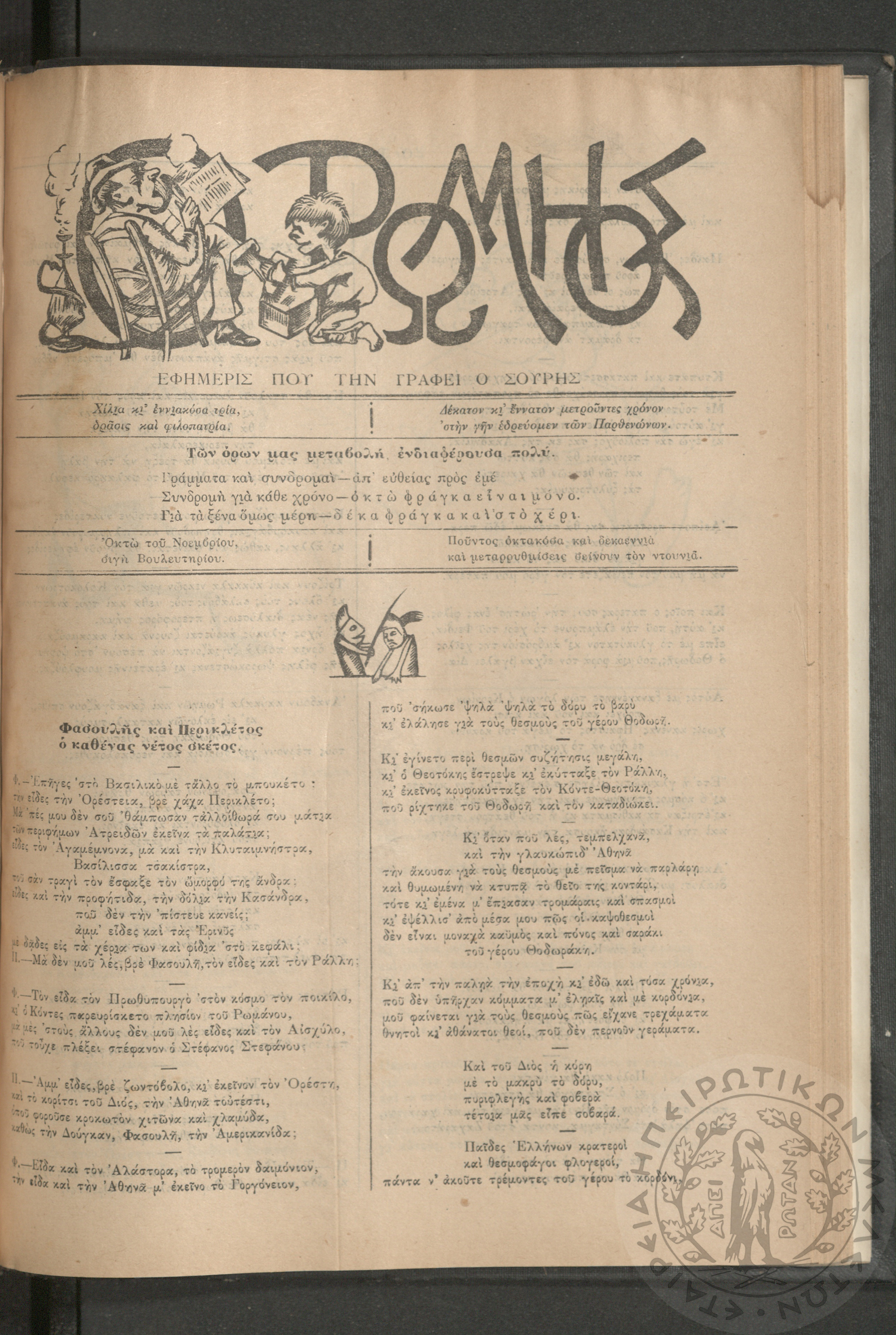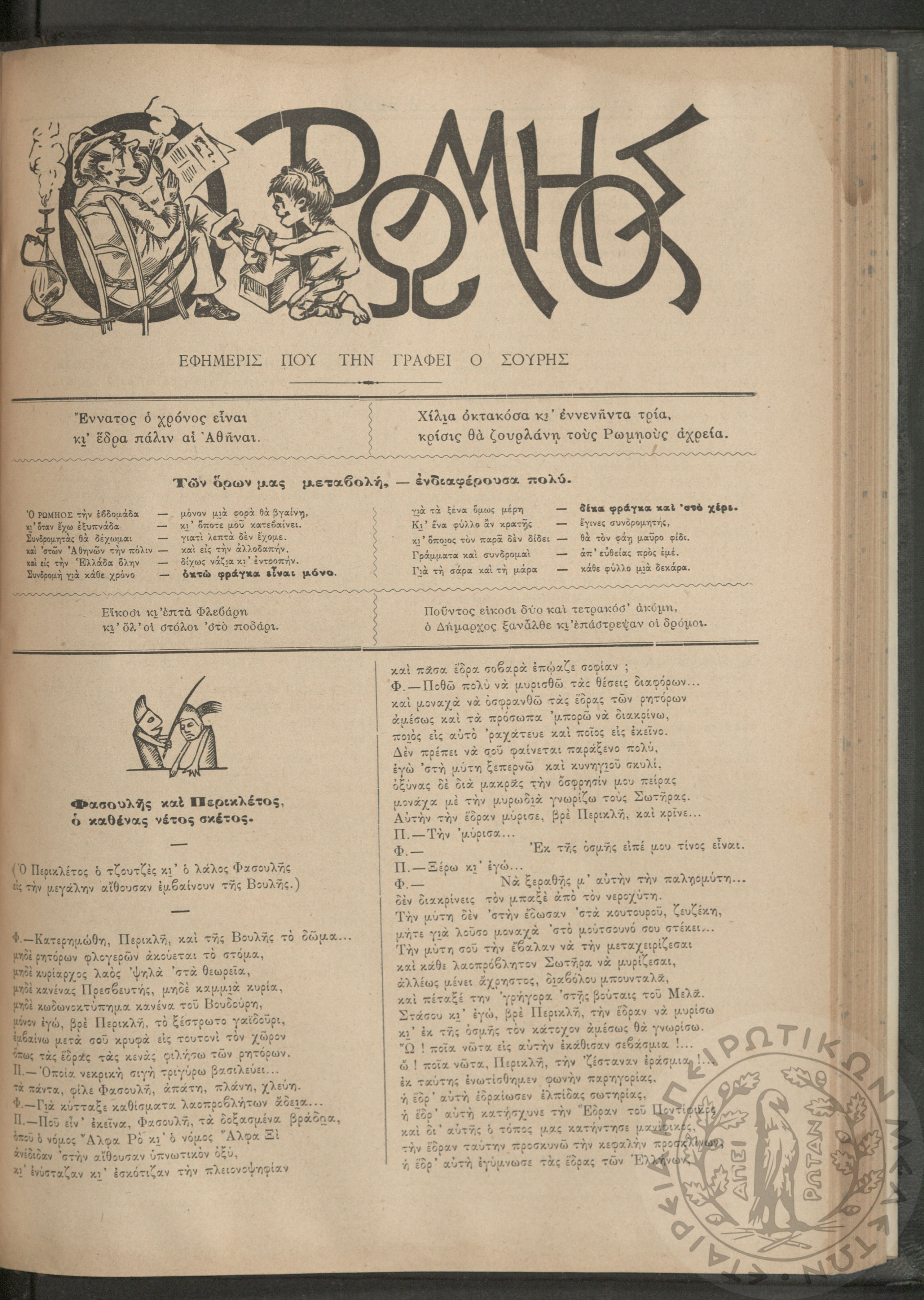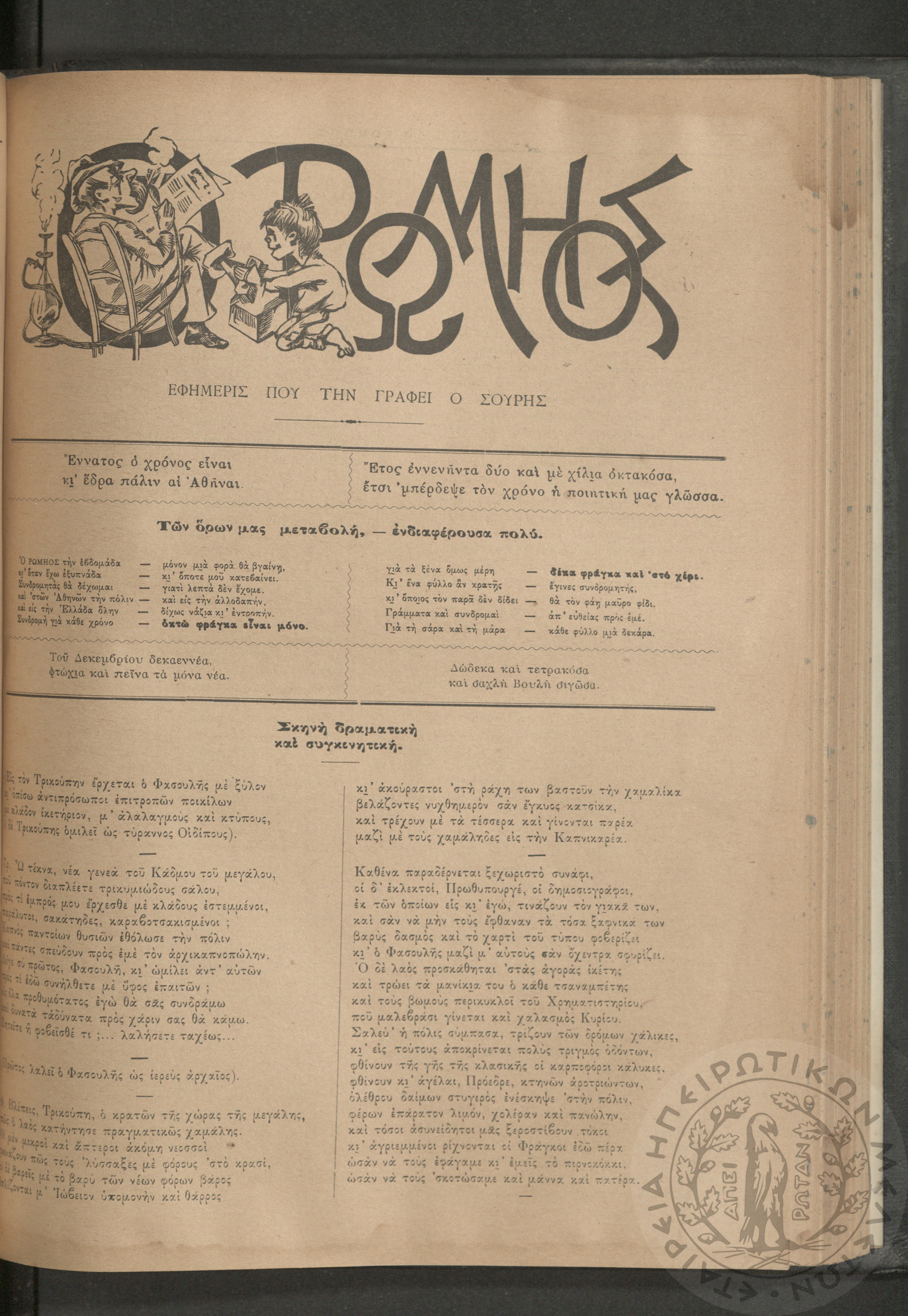 Ο Ρωμηός: Εφημερίς που την γράφει ο Σουρής, 1905, φ. 908