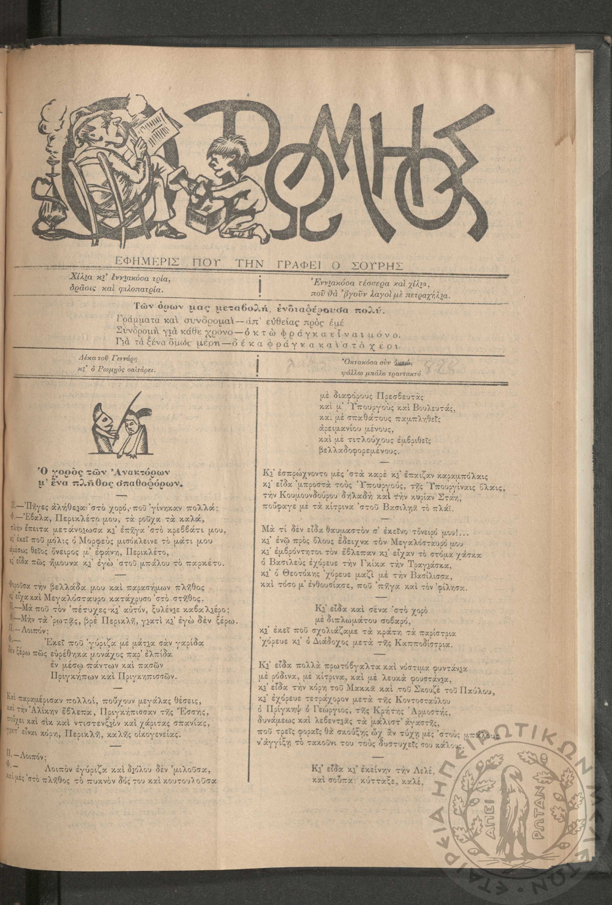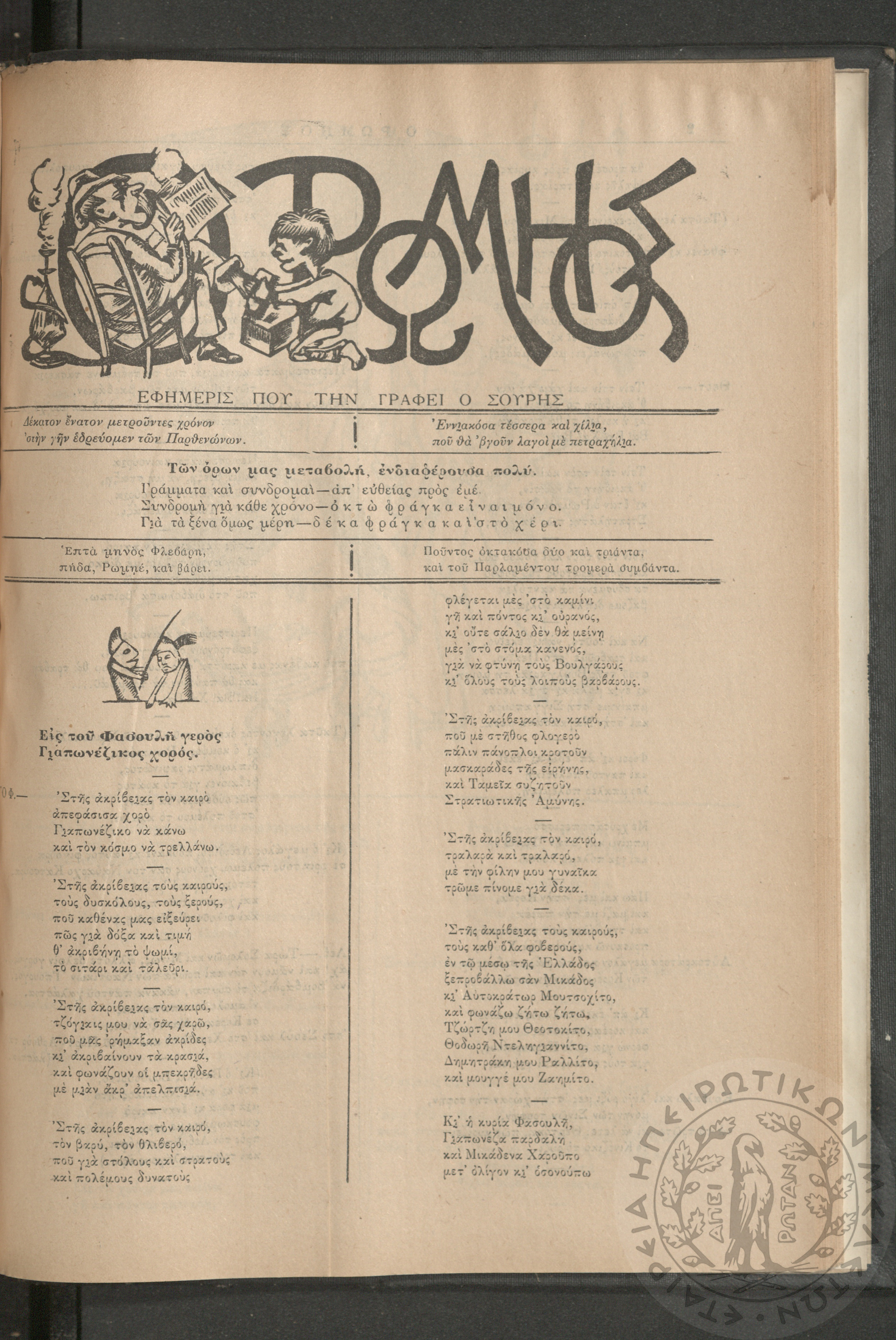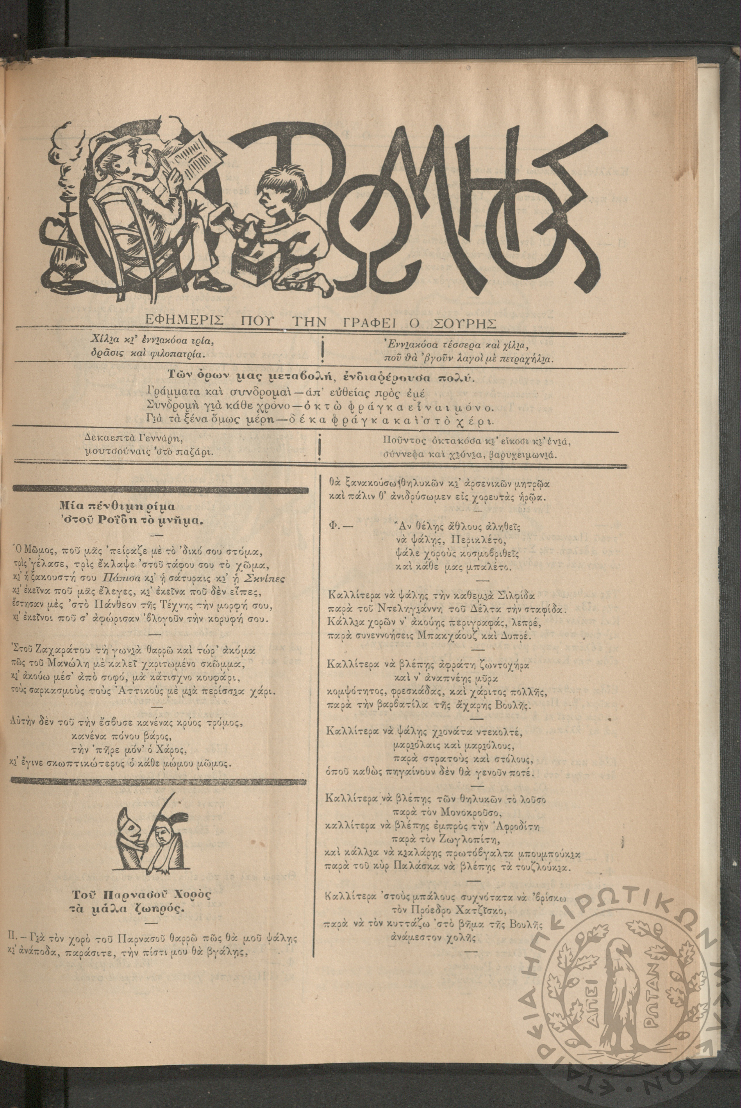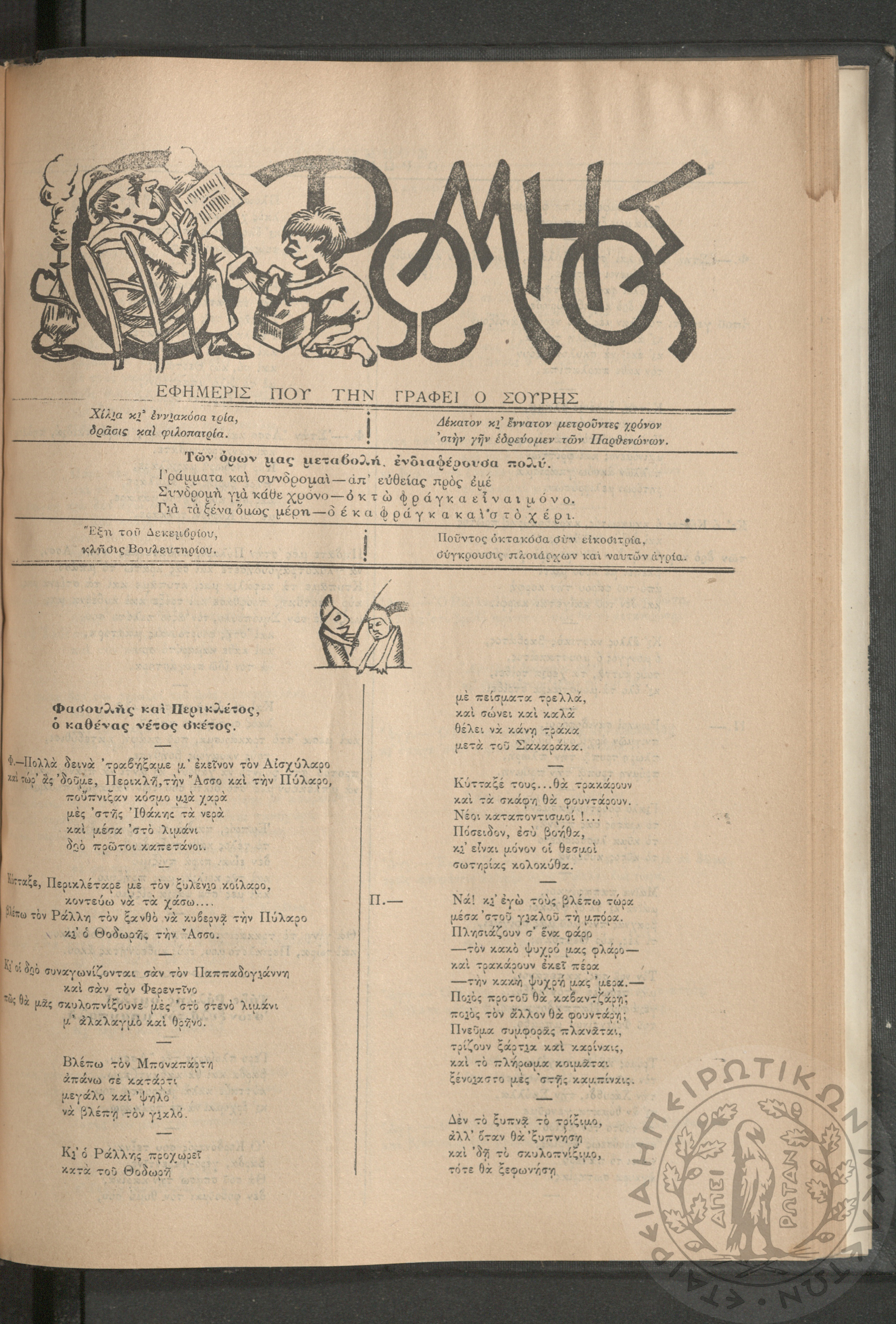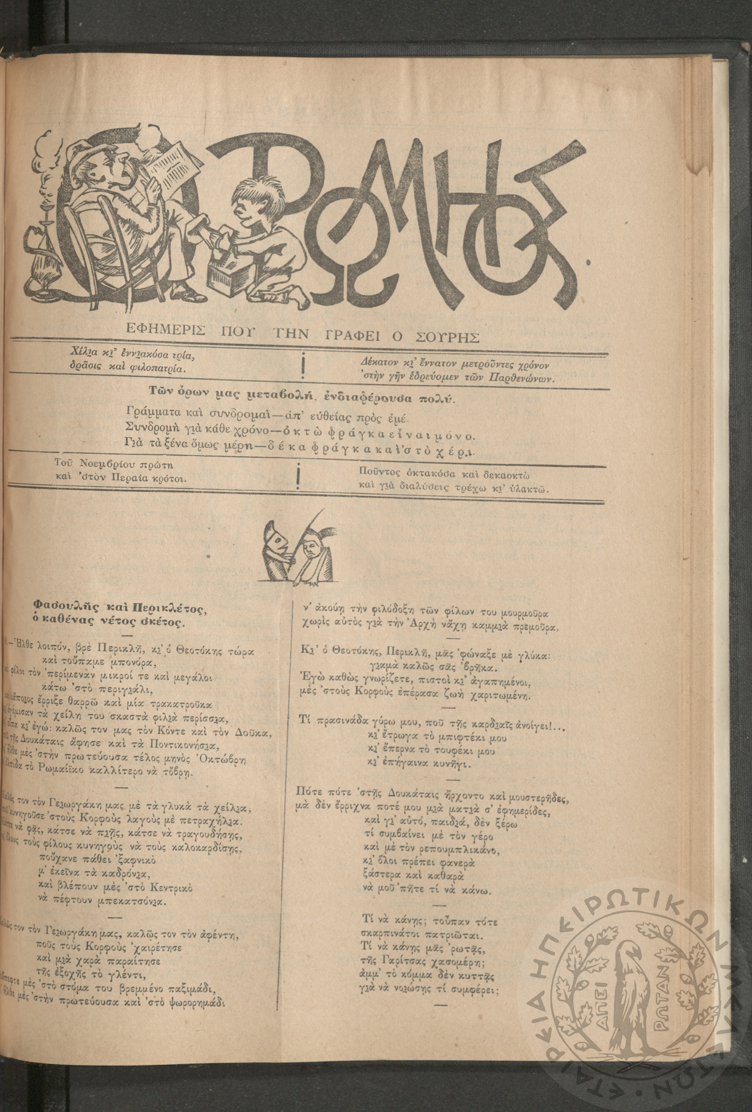 Ο Ρωμηός: Εφημερίς που την γράφει ο Σουρής, 1905, φ. 908