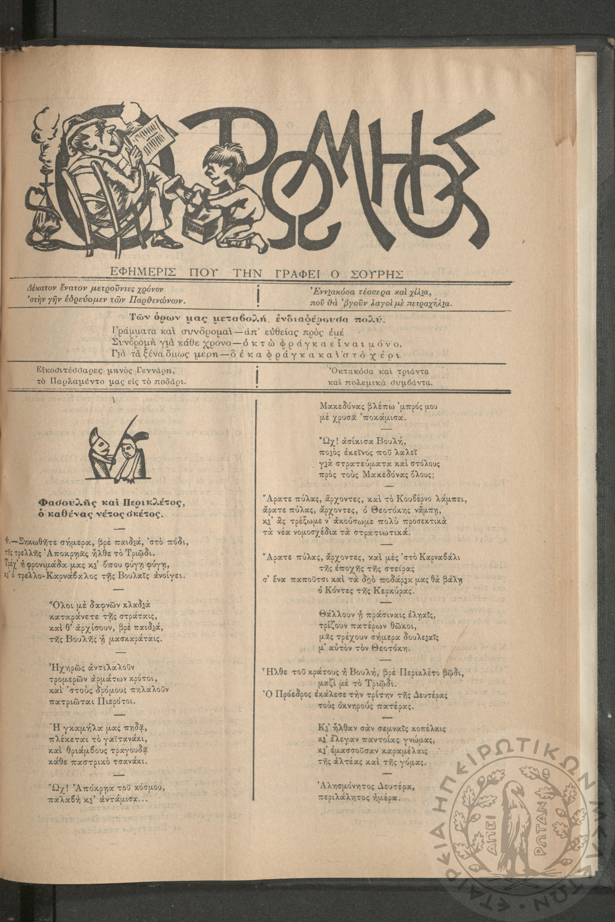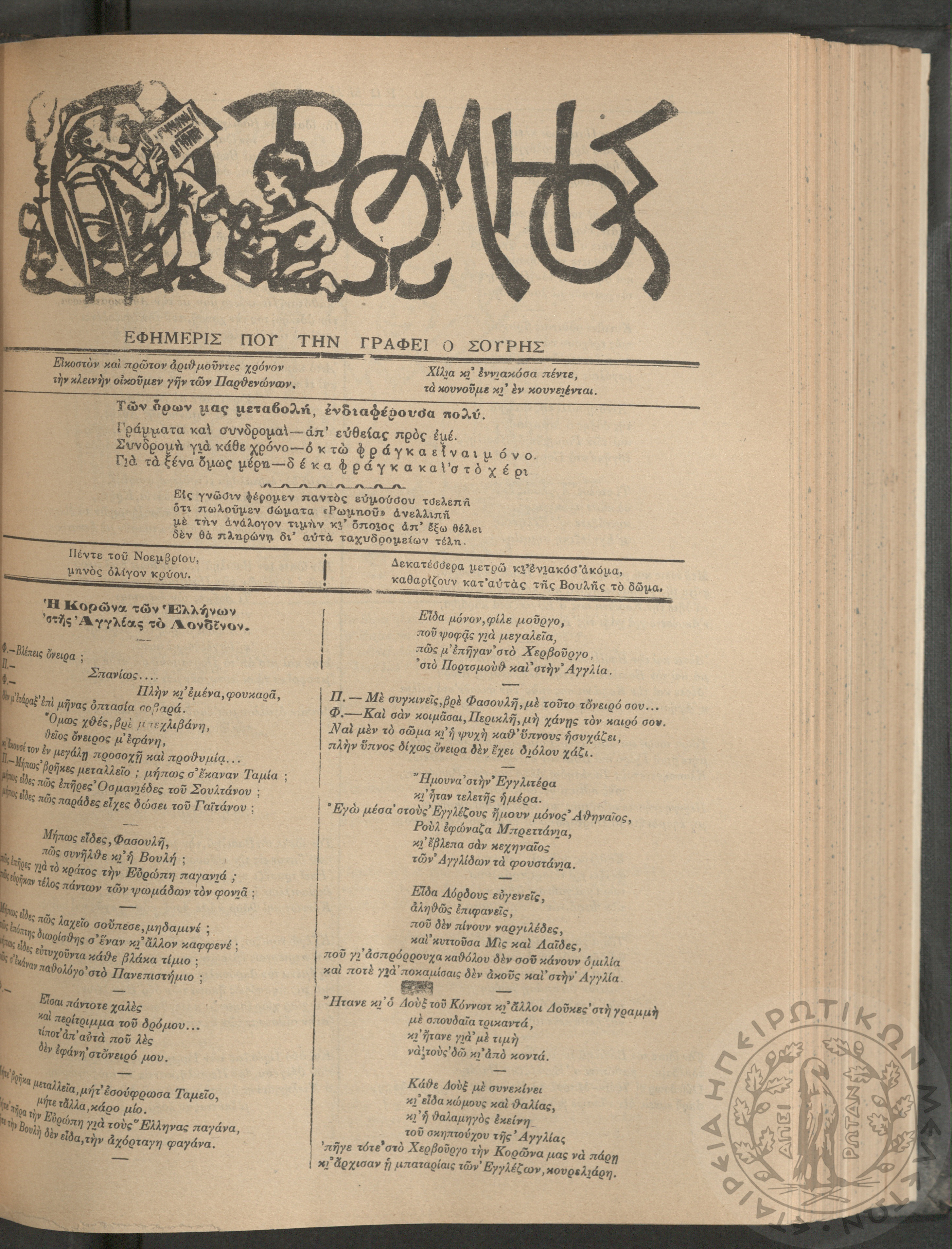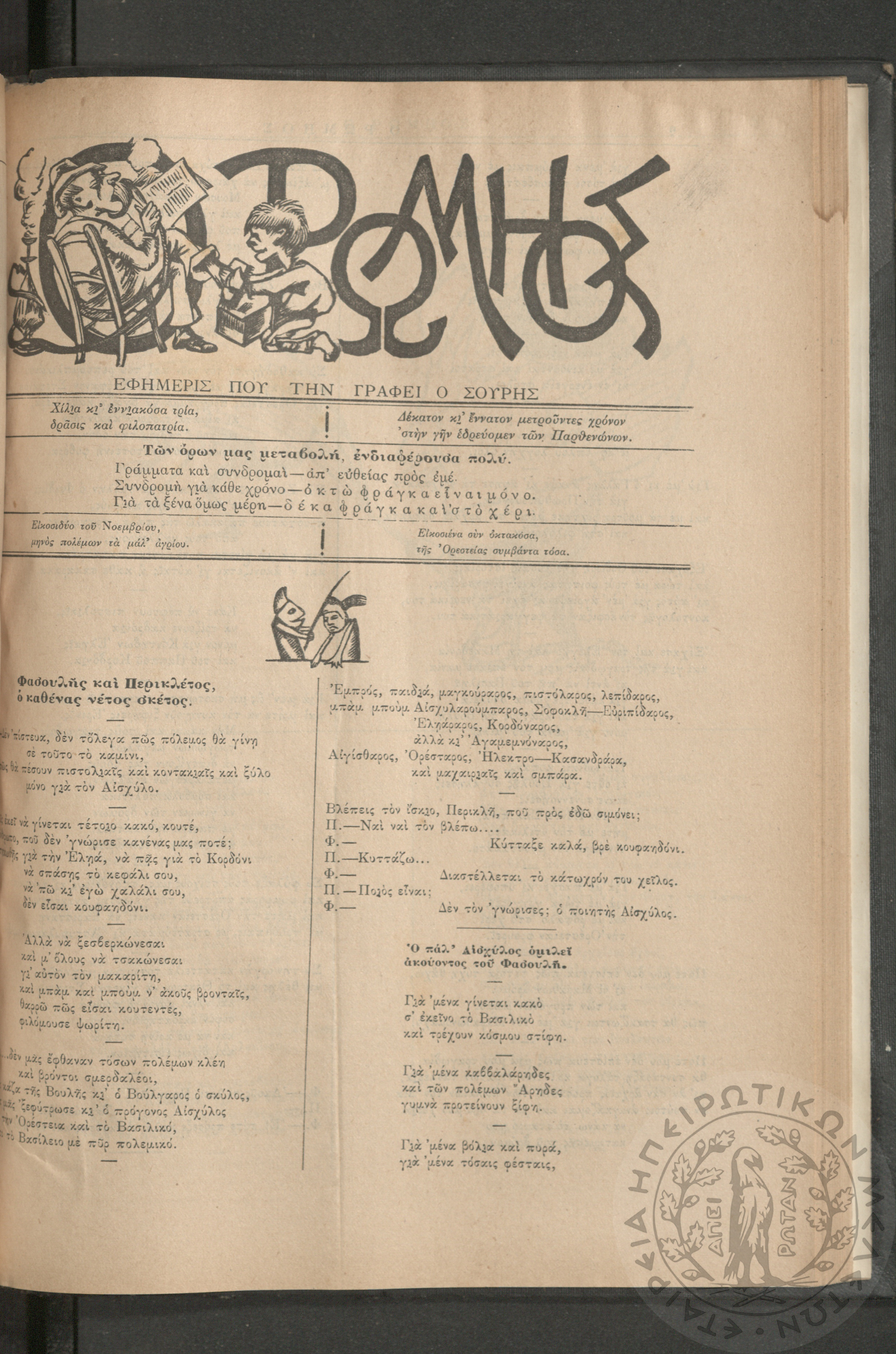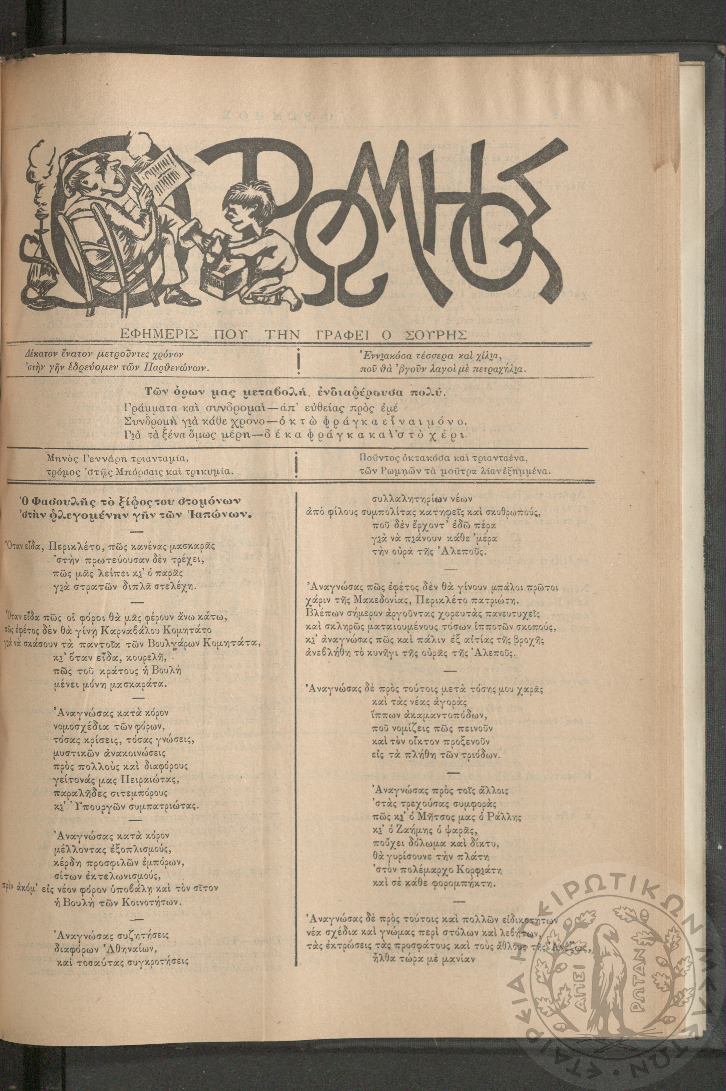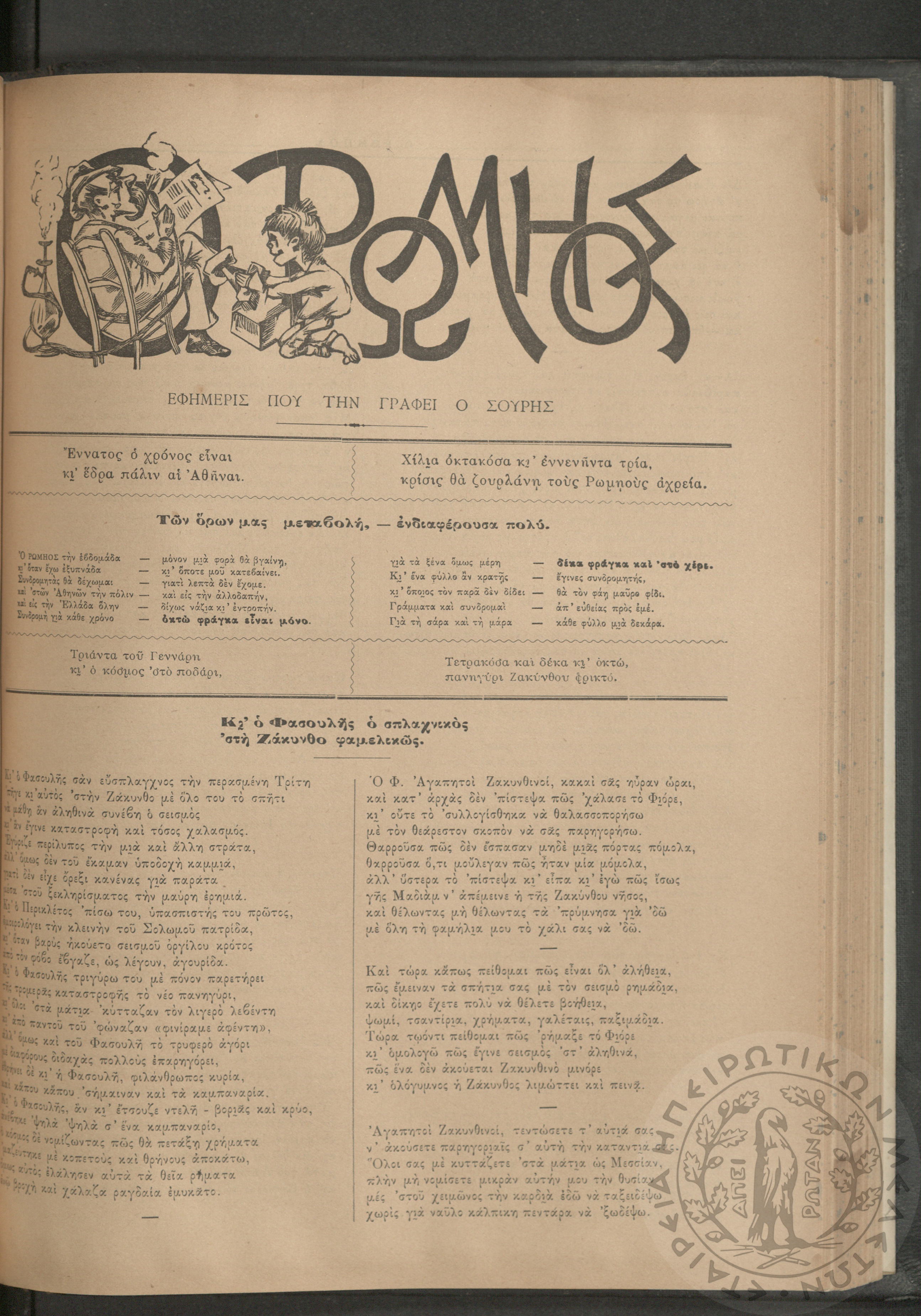 Ο Ρωμηός: Εφημερίς που την γράφει ο Σουρής, 1905, φ. 908