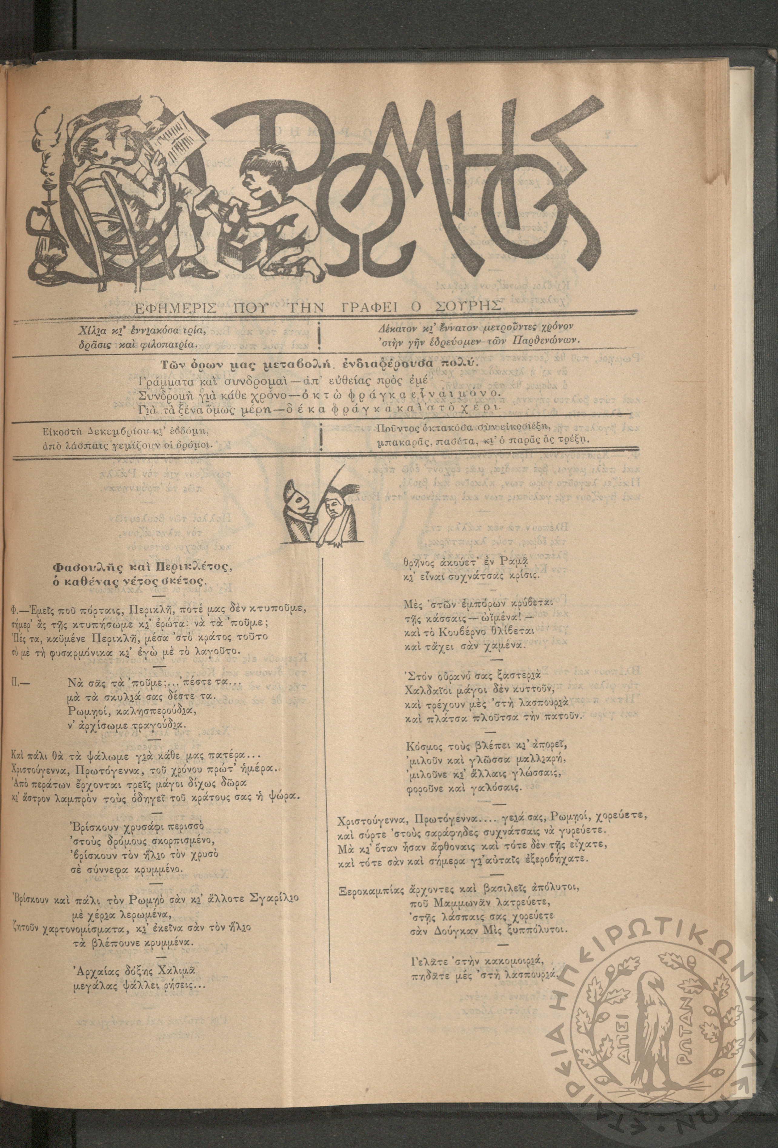 Ο Ρωμηός: Εφημερίς που την γράφει ο Σουρής, 1903, φ. 819