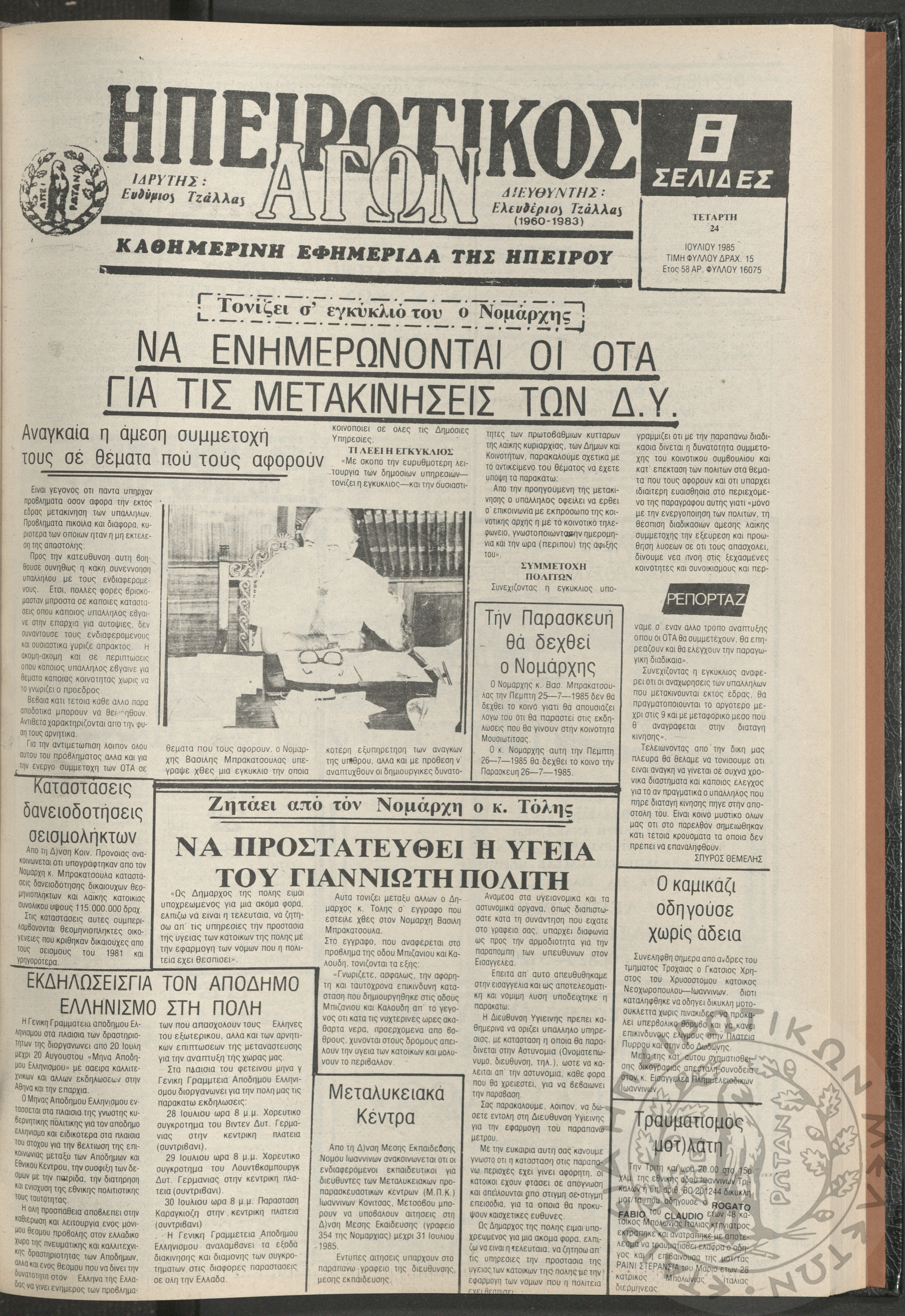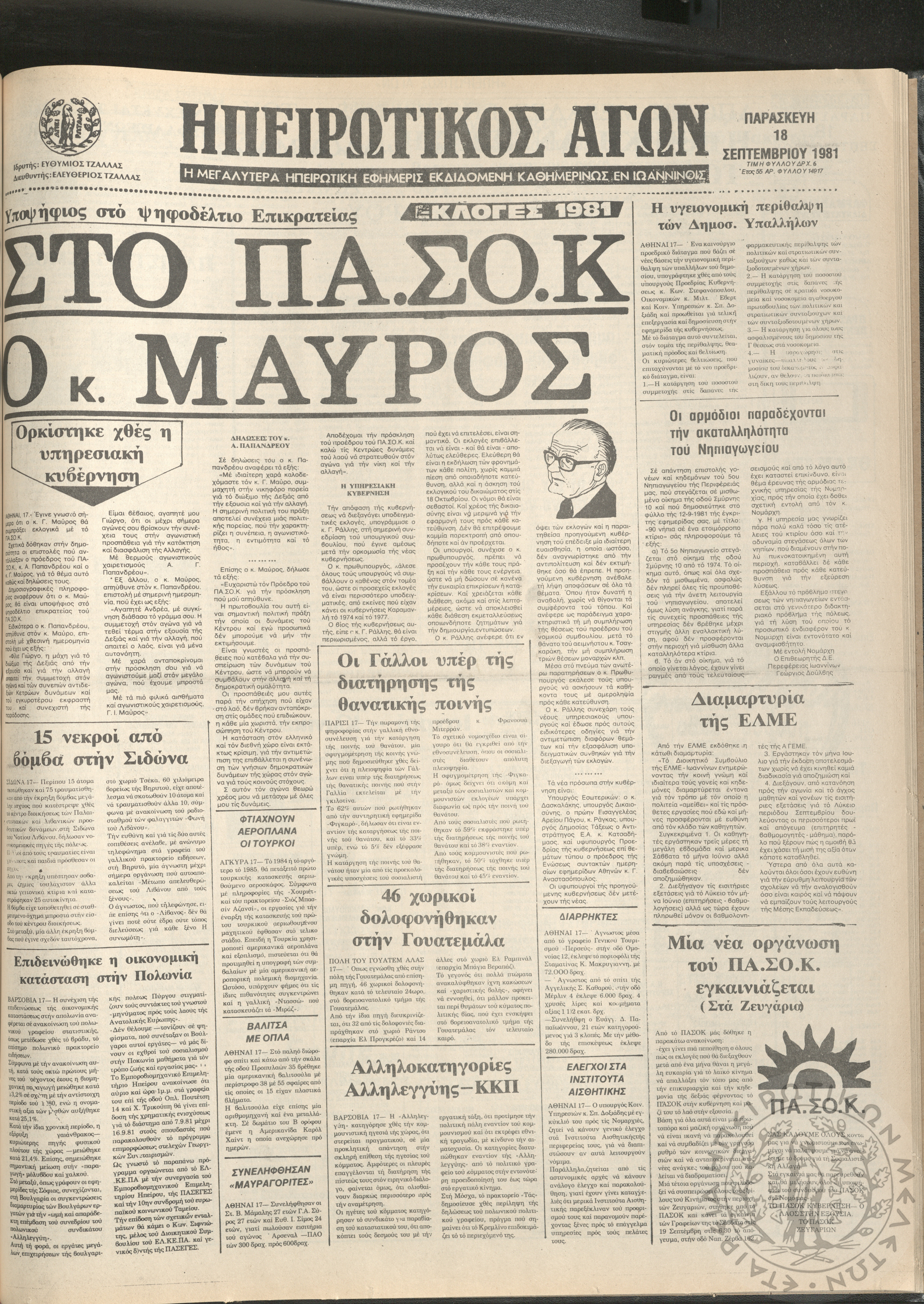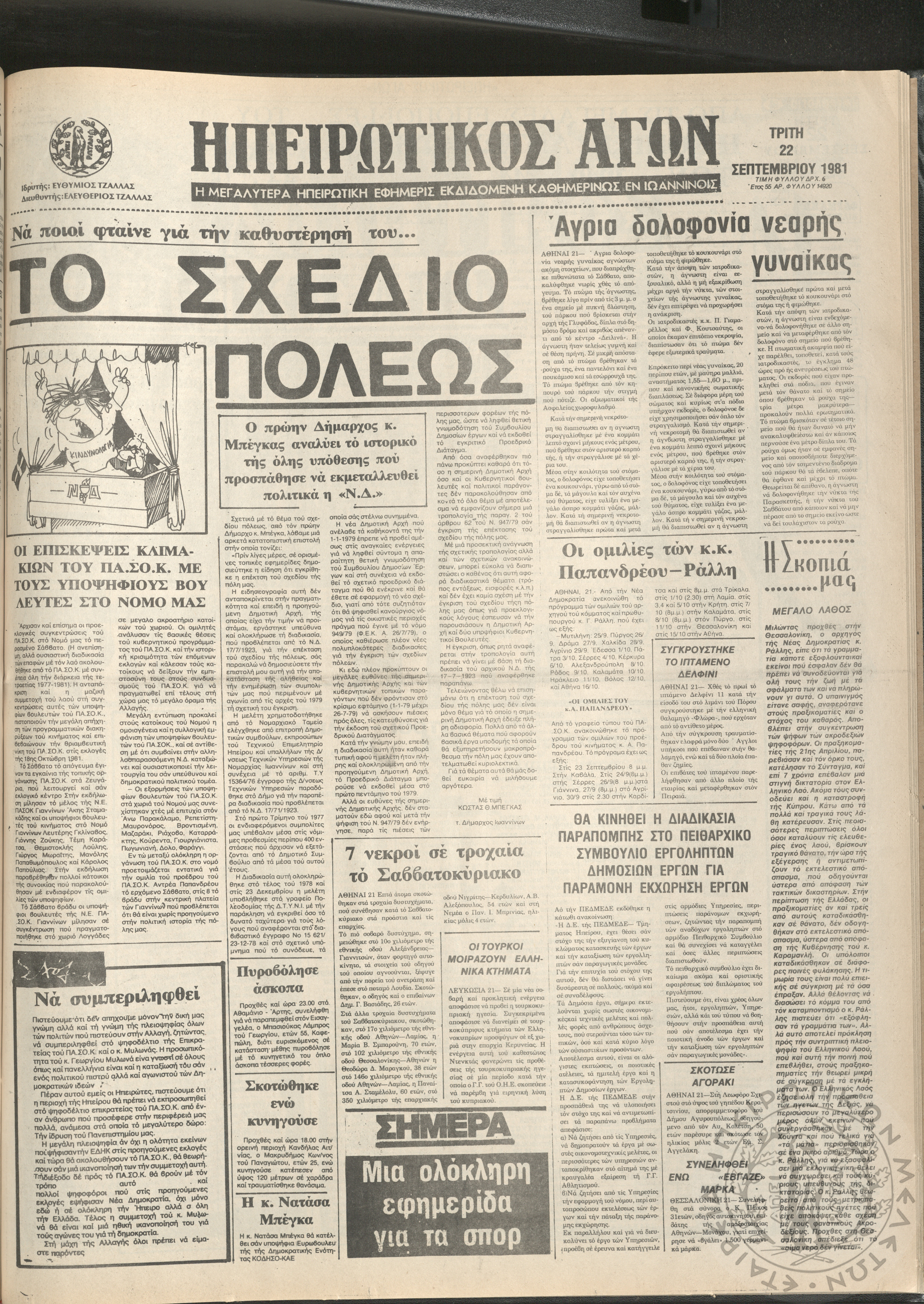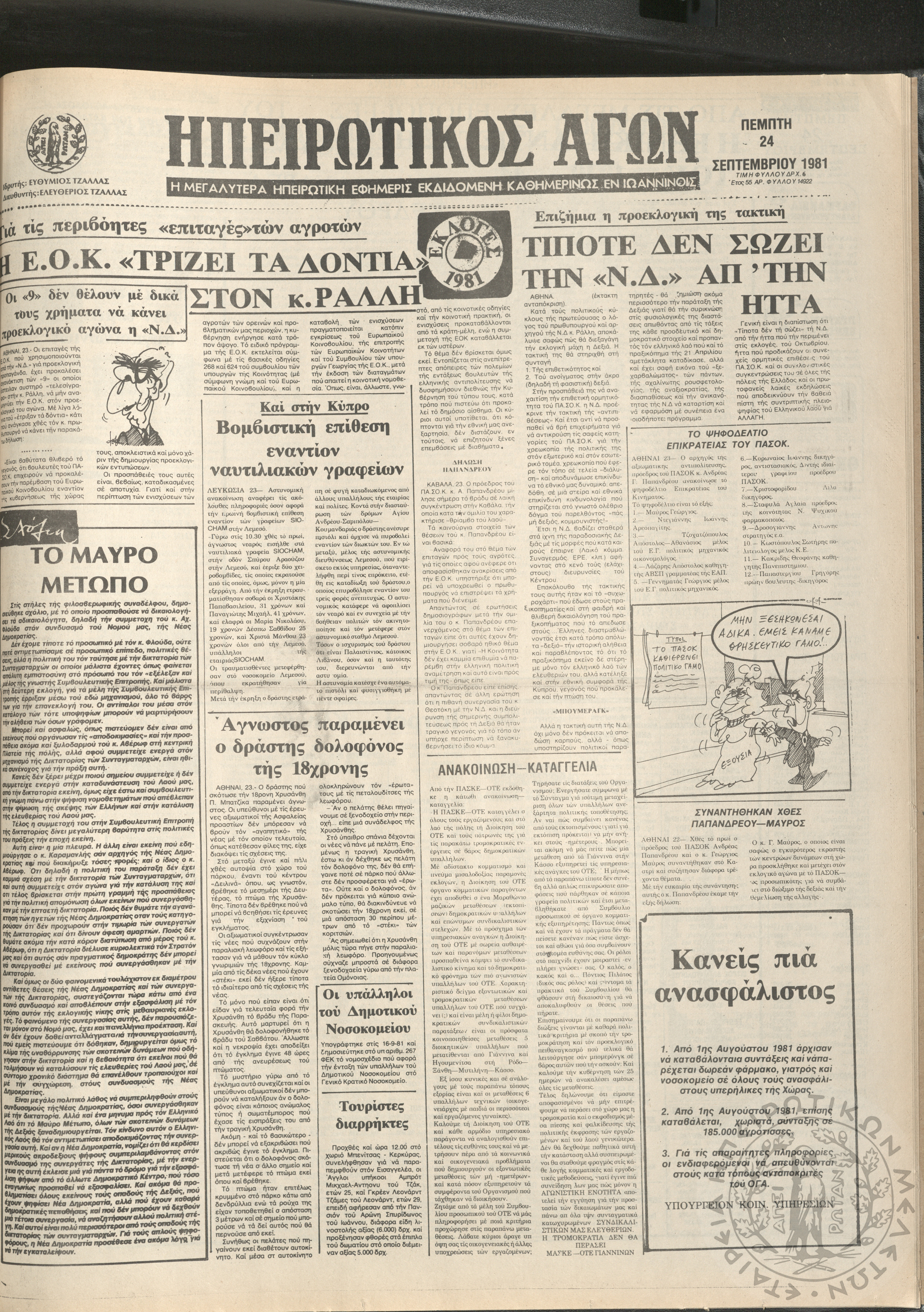 Ηπειρωτικός Αγών: η μεγαλυτέρα Ηπειρωτική εφημερίς εκδιδόμενη καθημερινώς εν Ιωαννίνοις, 1981, φ. 14921Έτος 55, φ. 14921...