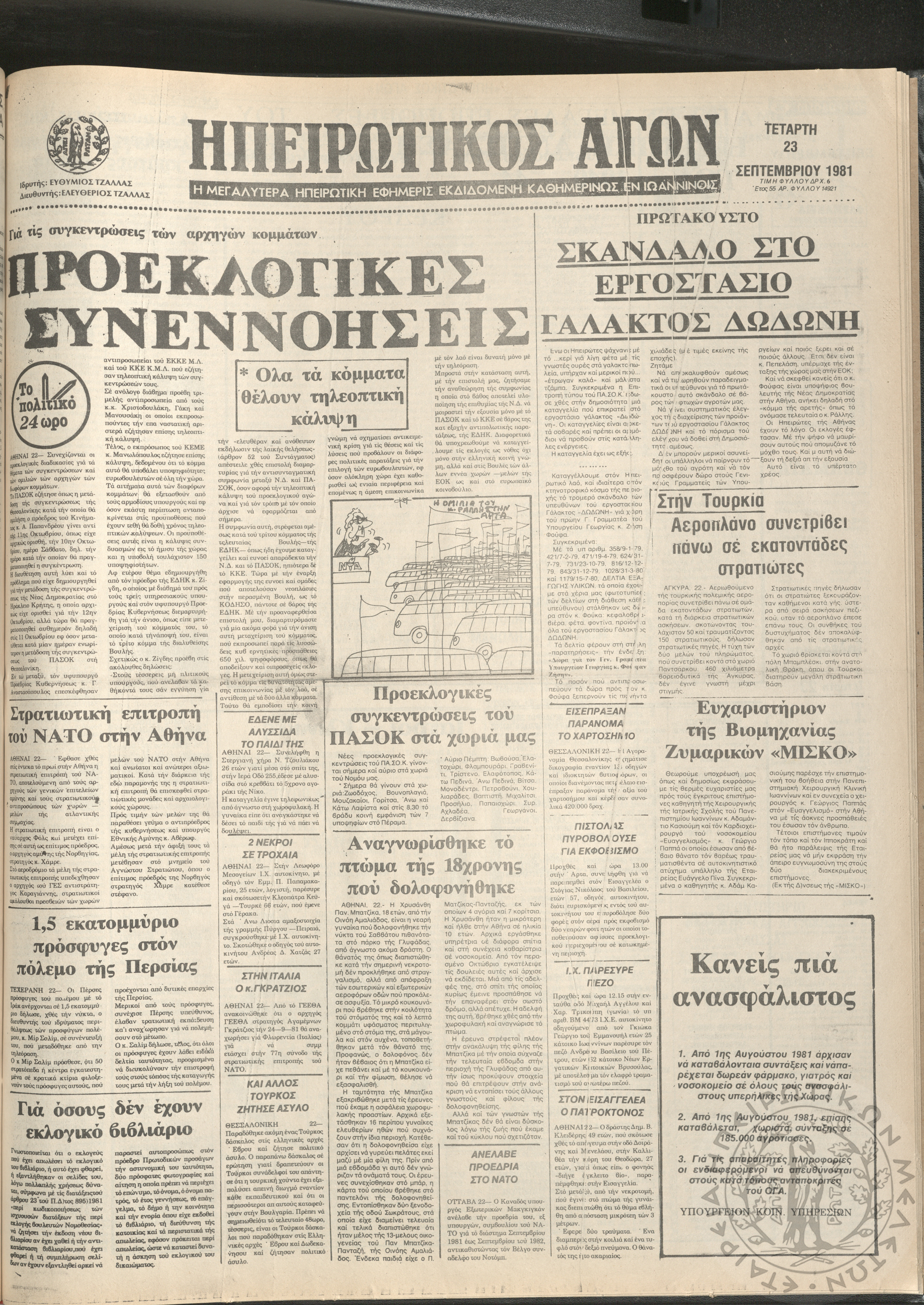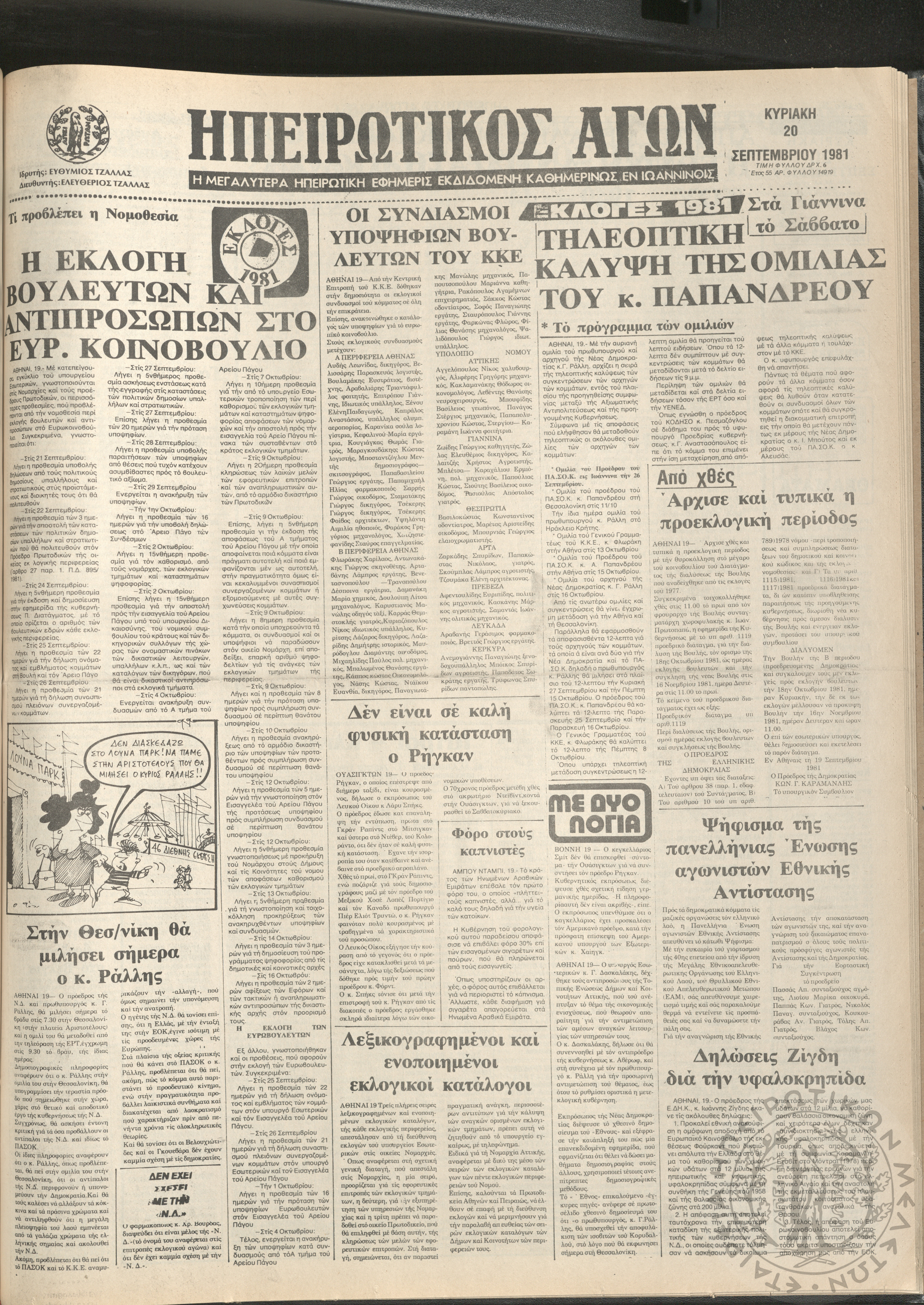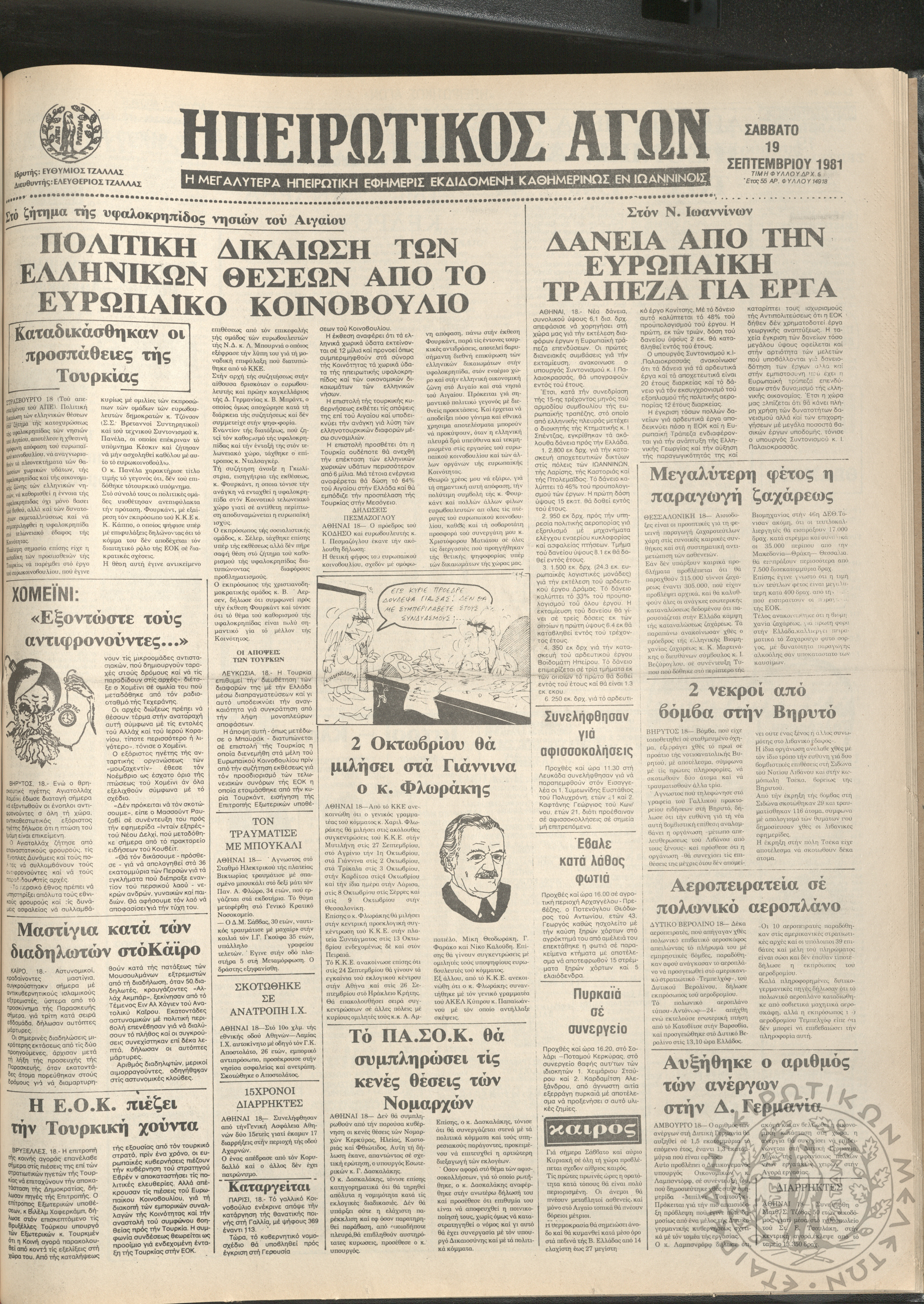 Ηπειρωτικός Αγών: η μεγαλυτέρα Ηπειρωτική εφημερίς εκδιδόμενη καθημερινώς εν Ιωαννίνοις, 1981, φ. 14920Έτος 55, φ. 14920...