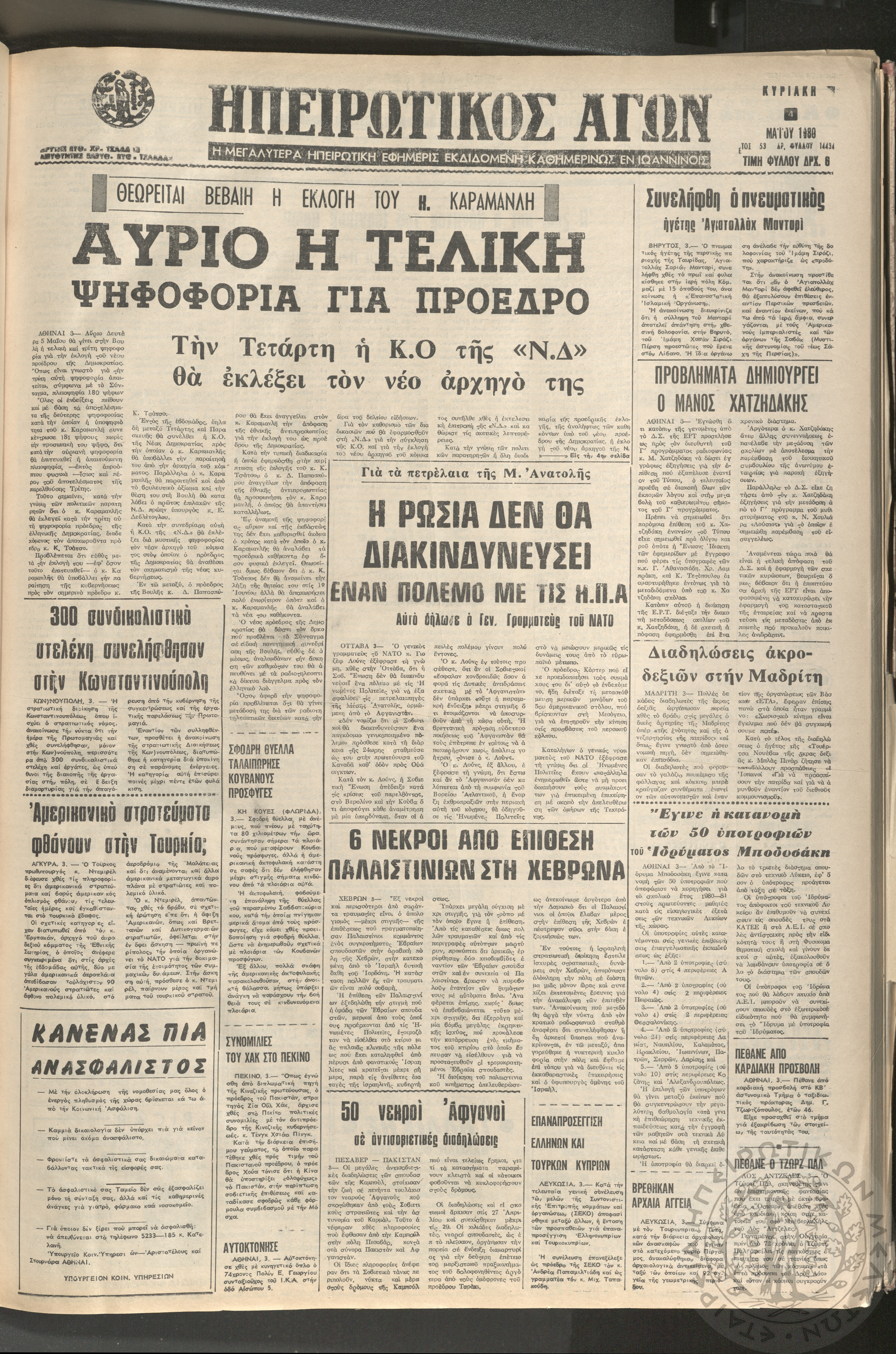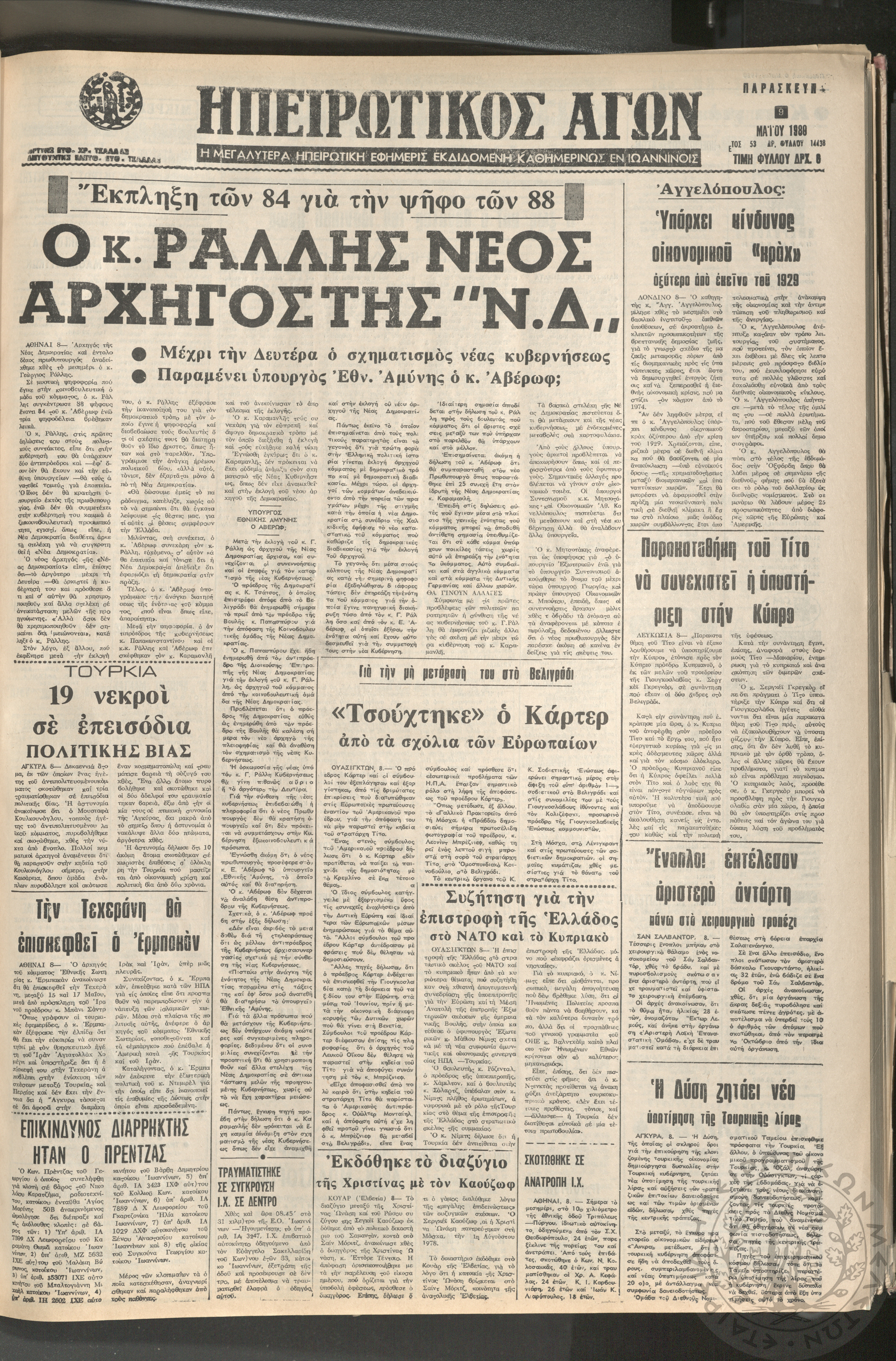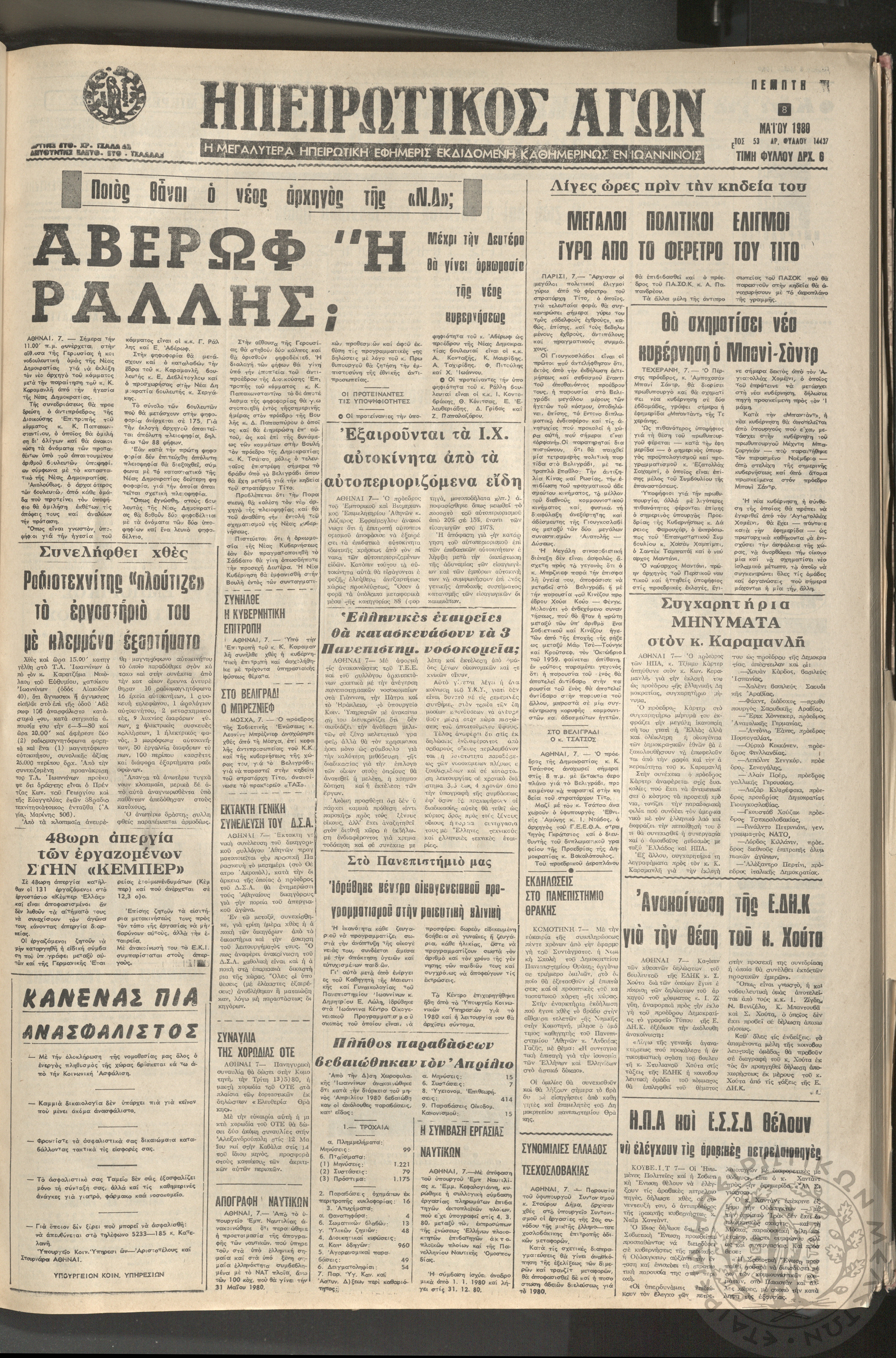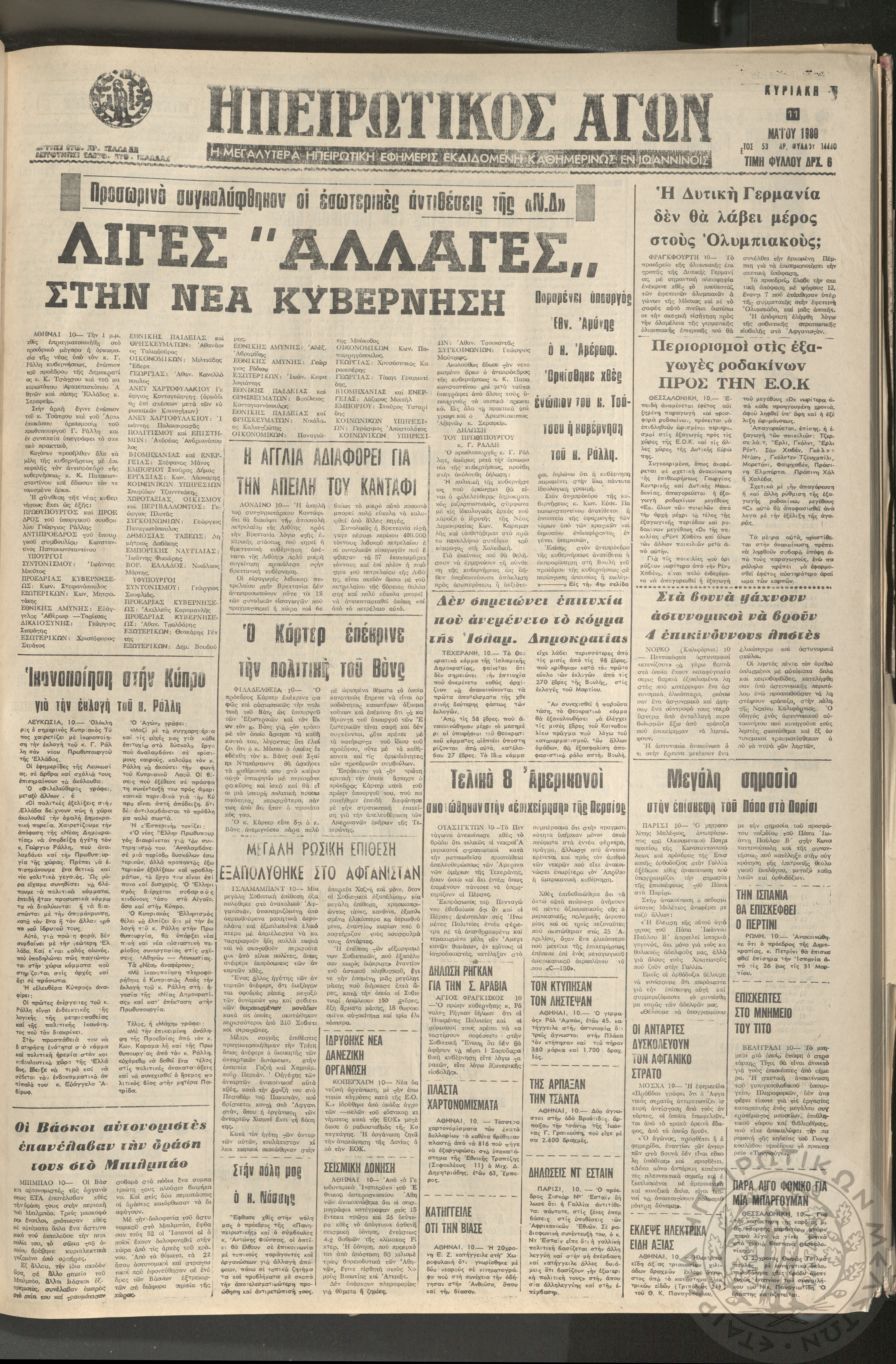 Ηπειρωτικός Αγών: η μεγαλυτέρα Ηπειρωτική εφημερίς εκδιδόμενη καθημερινώς εν Ιωαννίνοις, 1980, φ. 14437Έτος 53, φ. 14437...
