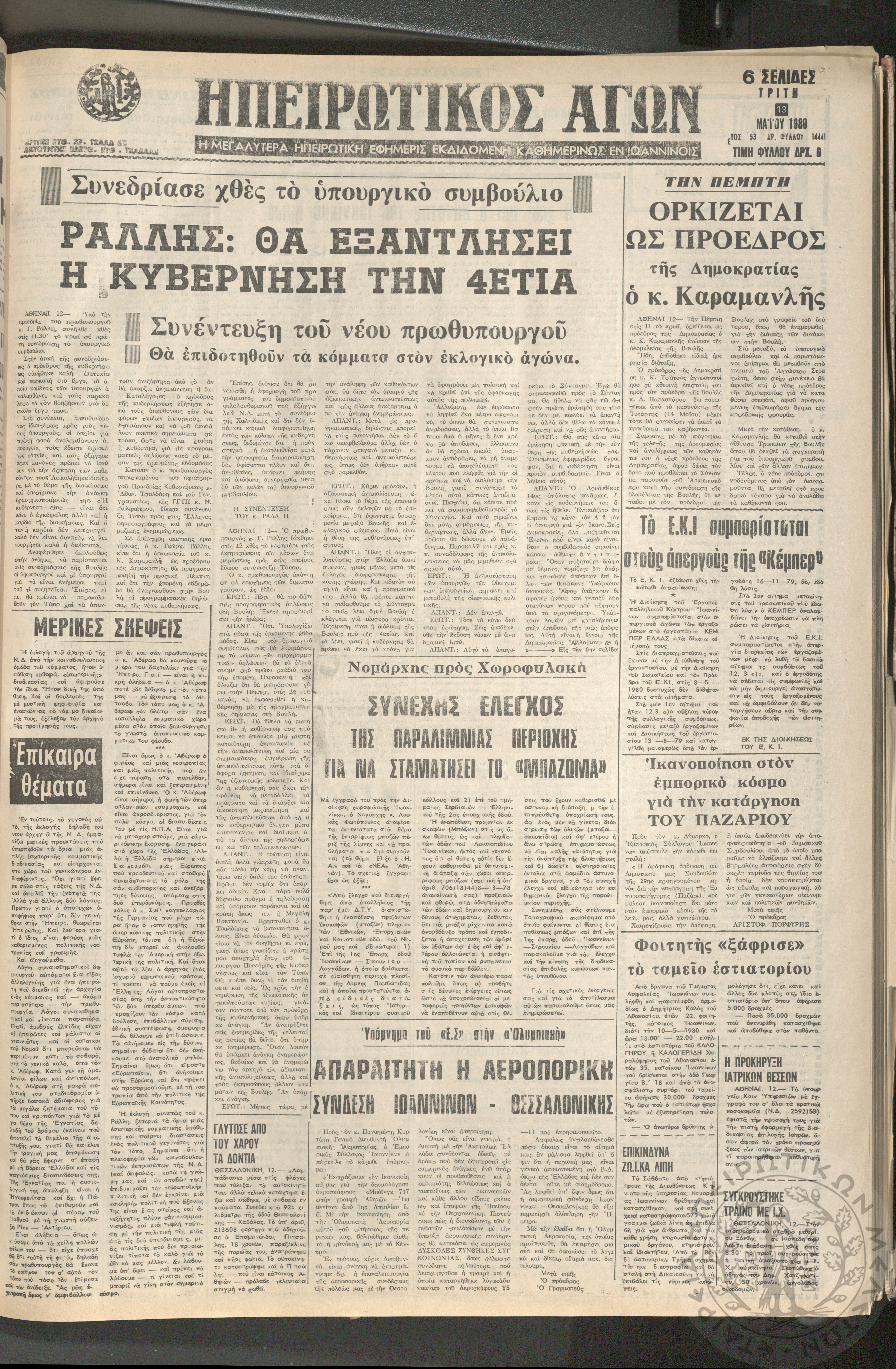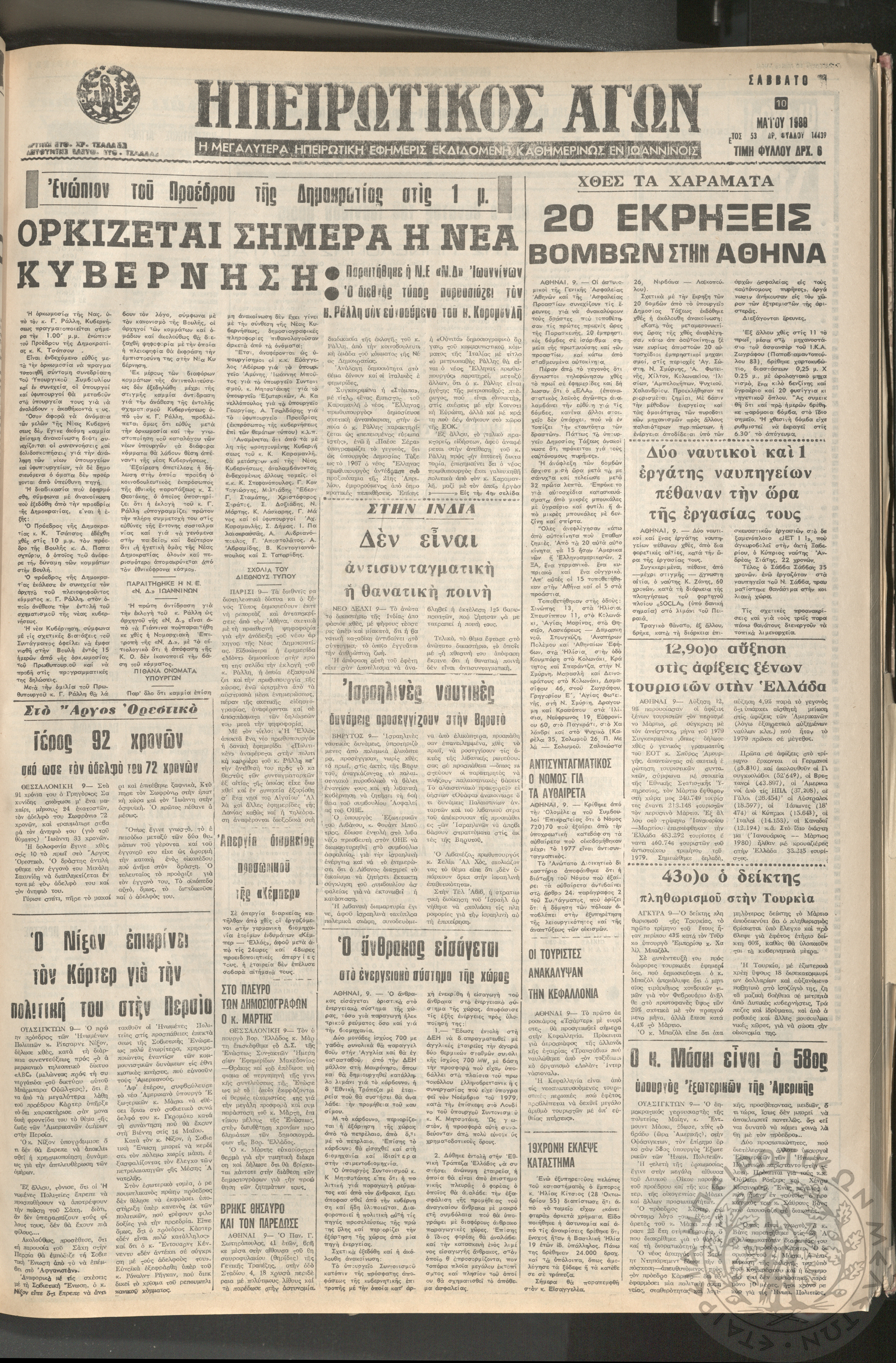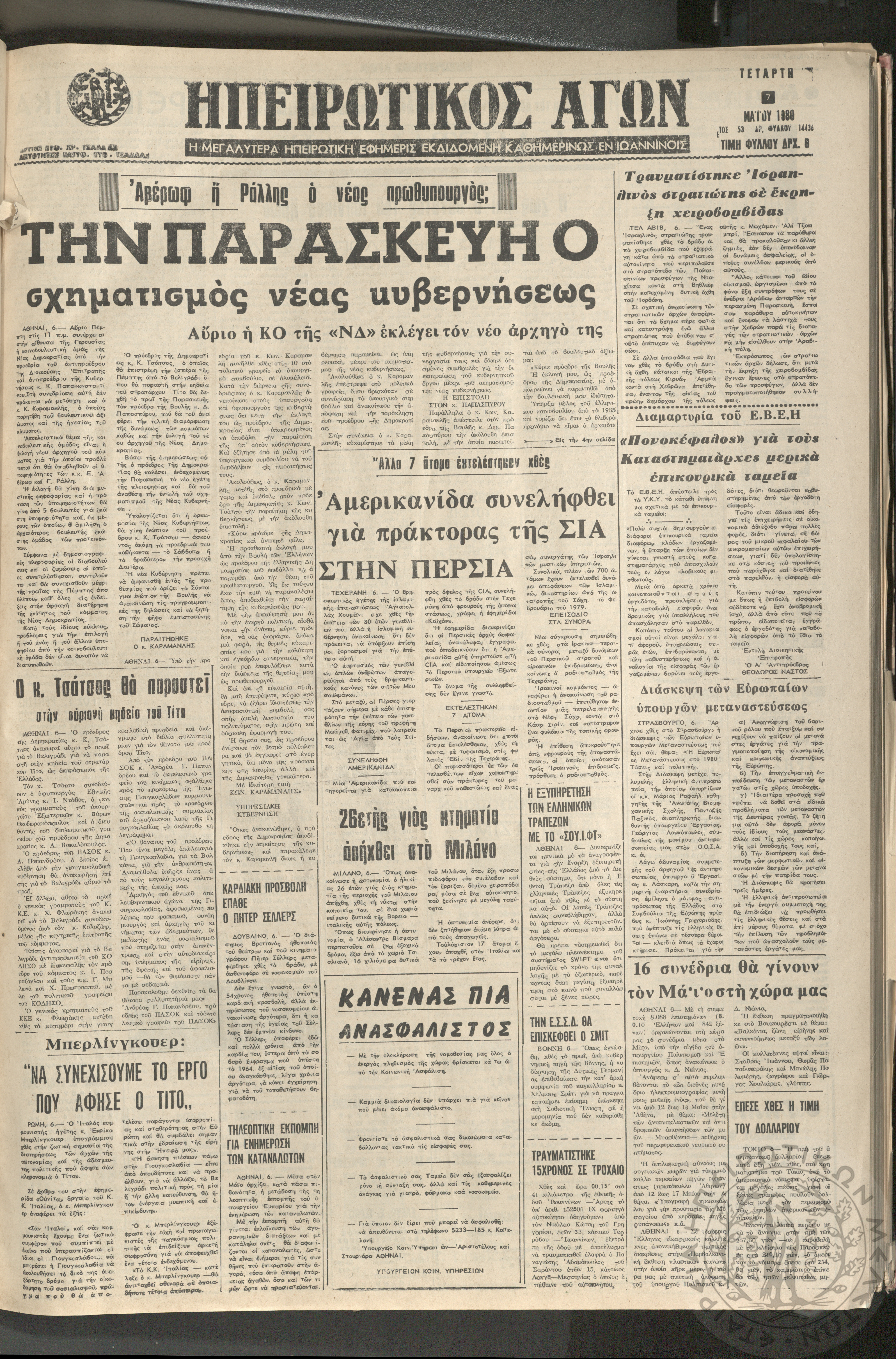 Ηπειρωτικός Αγών: η μεγαλυτέρα Ηπειρωτική εφημερίς εκδιδόμενη καθημερινώς εν Ιωαννίνοις, 1980, φ. 14433Έτος 53, φ. 14433...