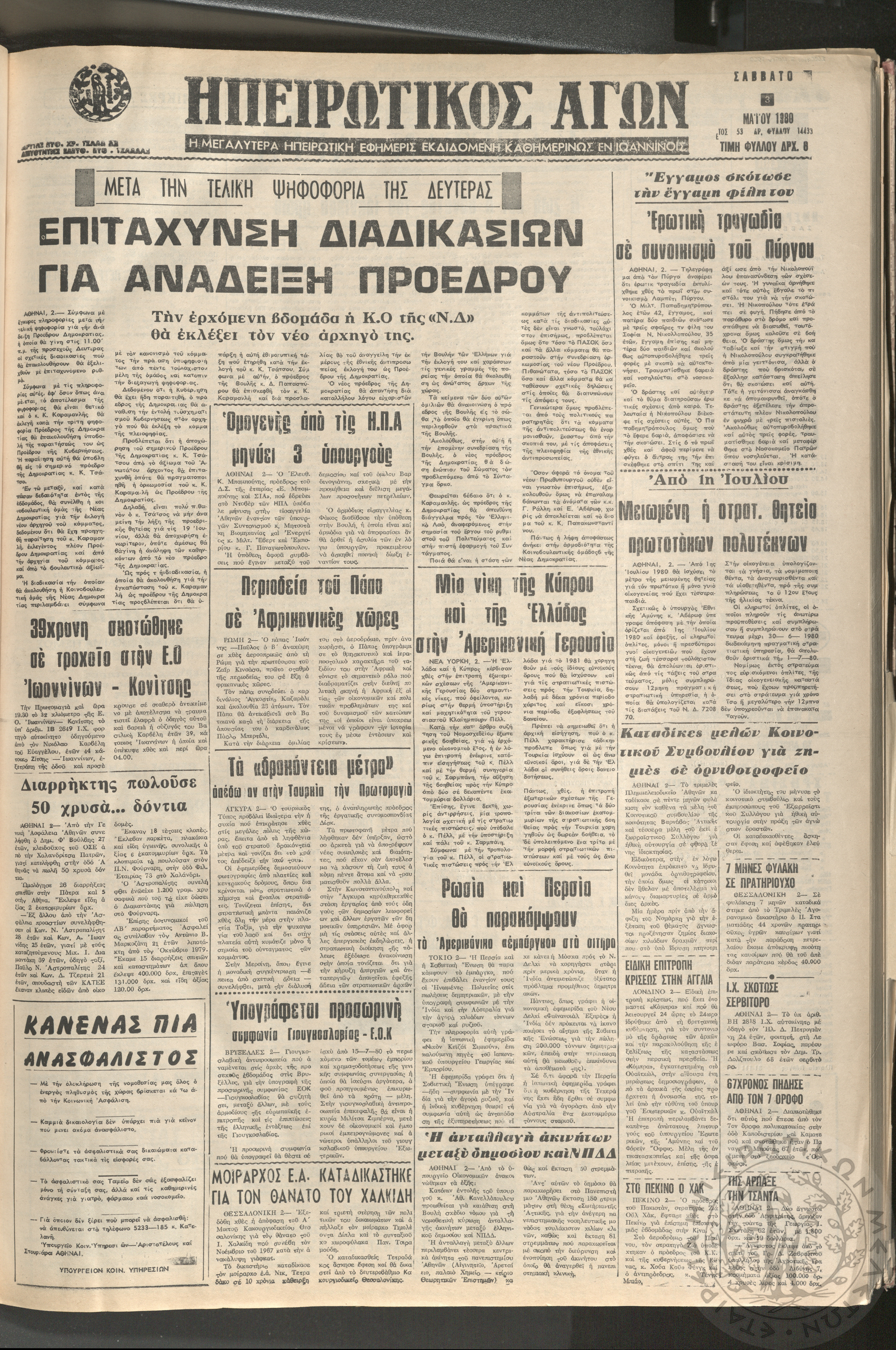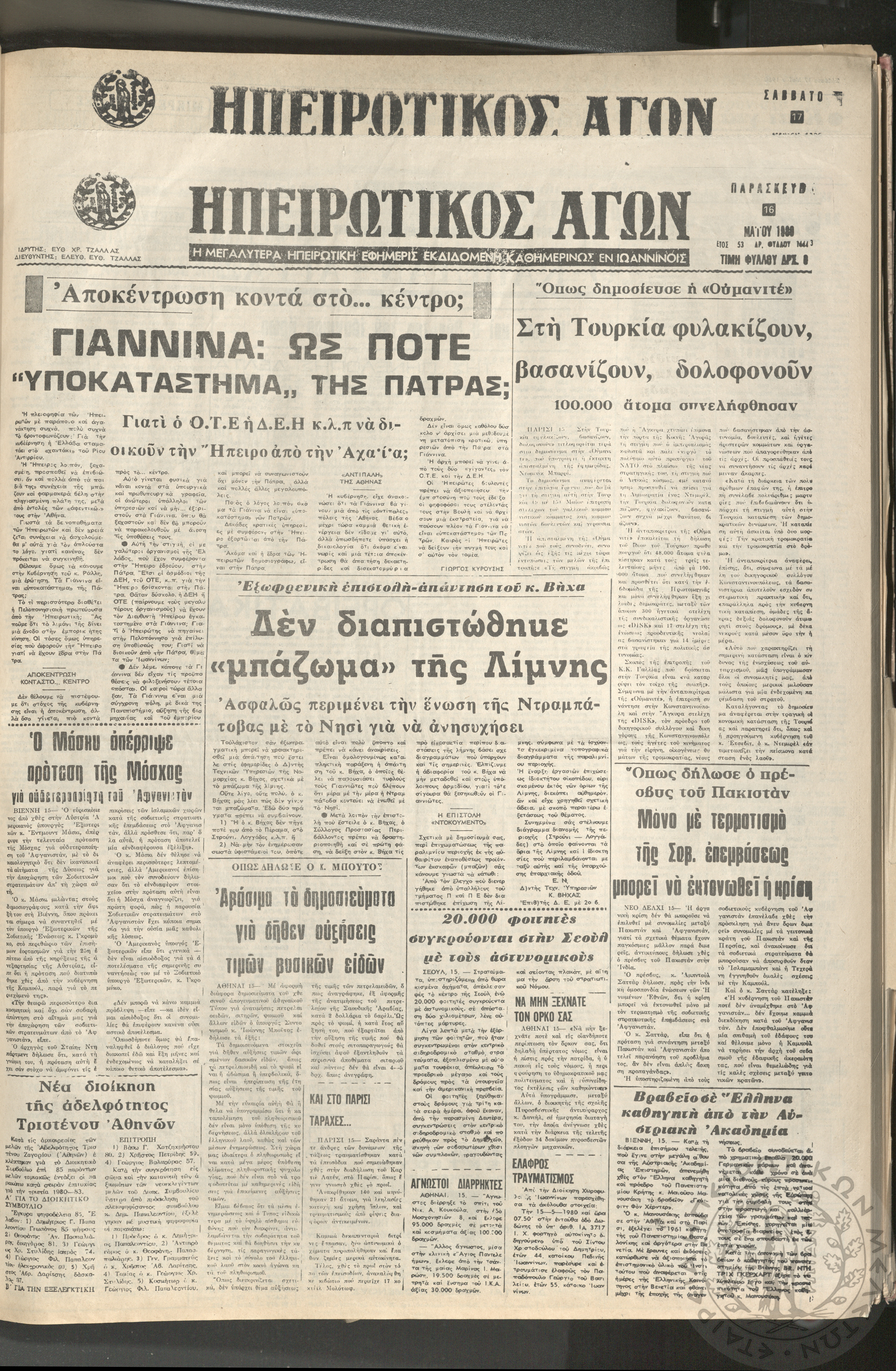 Ηπειρωτικός Αγών: η μεγαλυτέρα Ηπειρωτική εφημερίς εκδιδόμενη καθημερινώς εν Ιωαννίνοις, 1980, φ. 14440Έτος 53, φ. 14440...