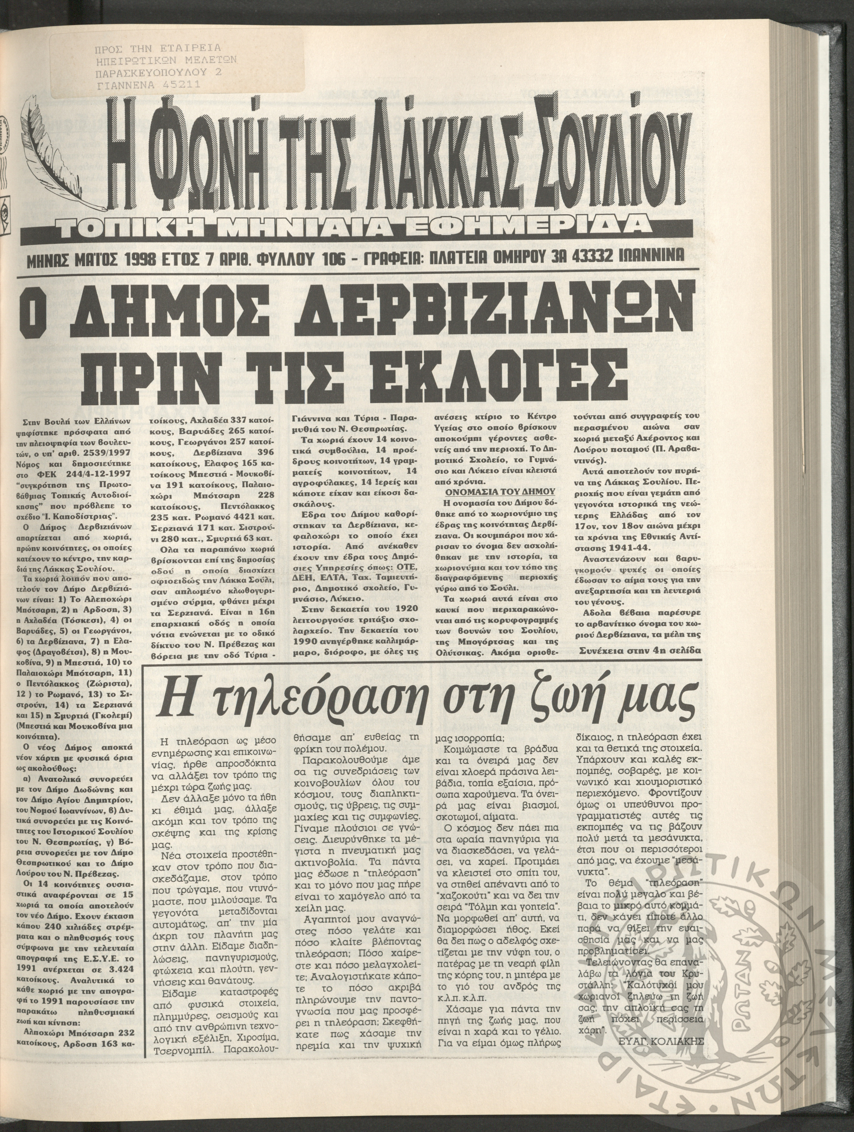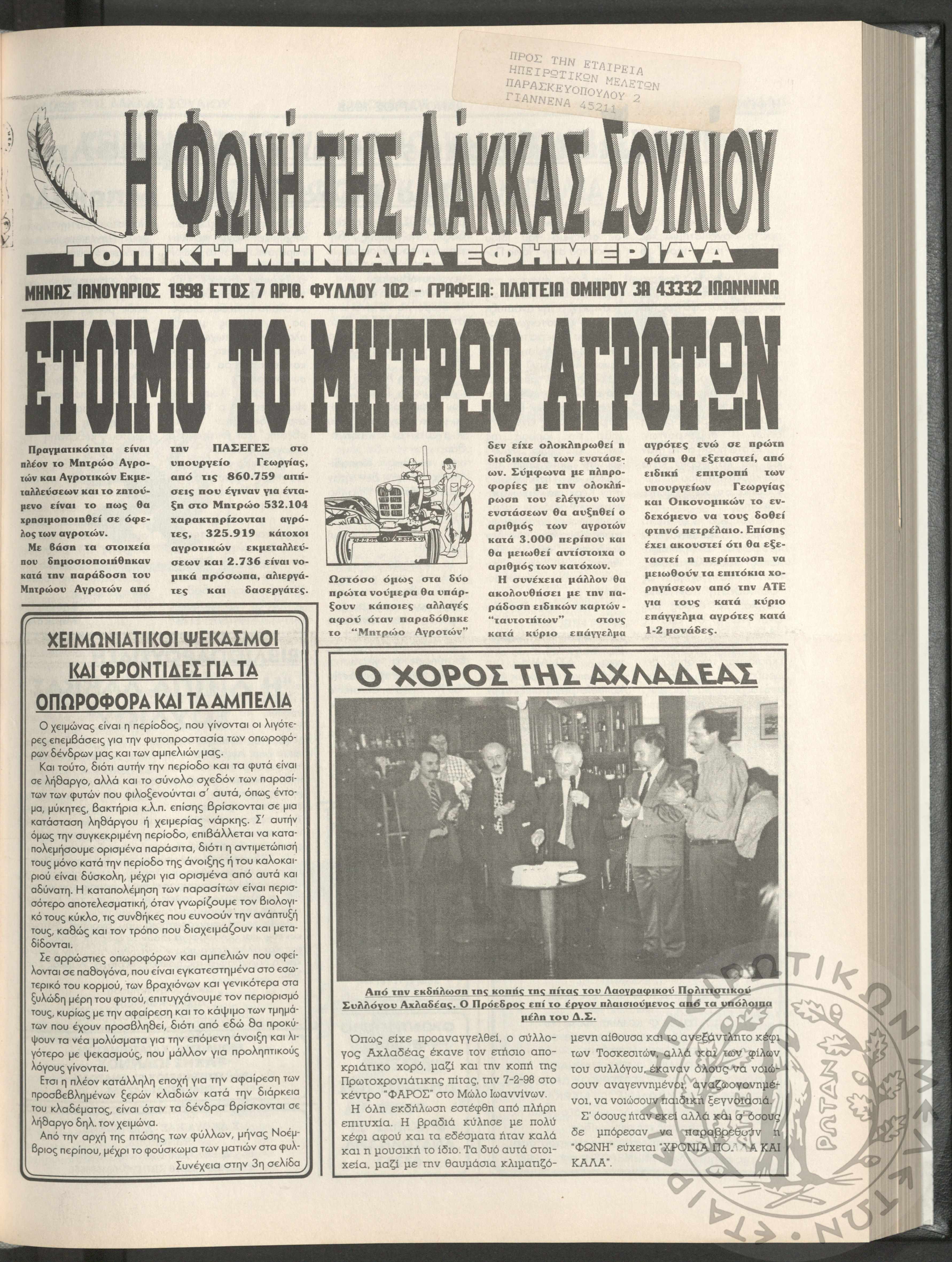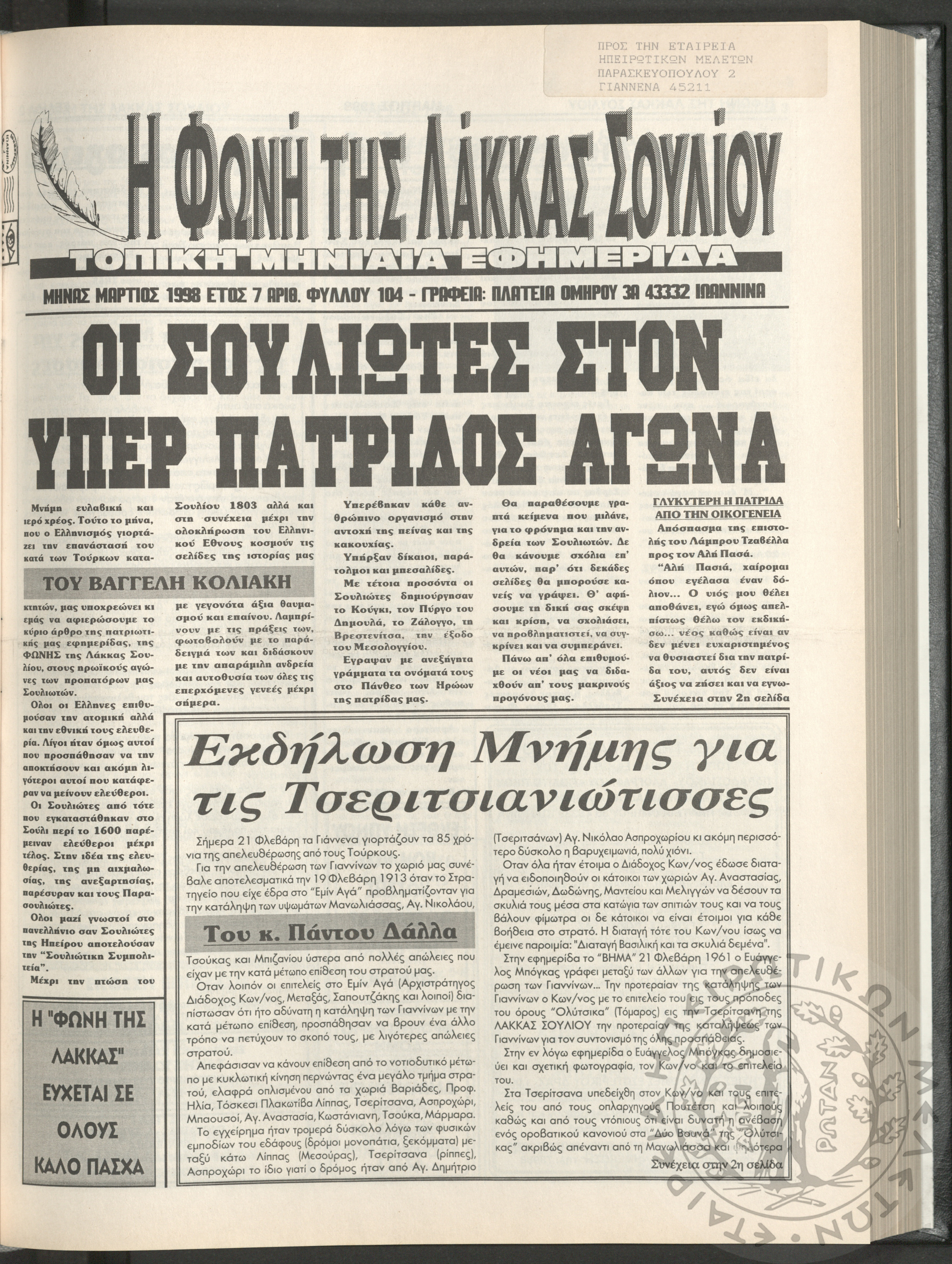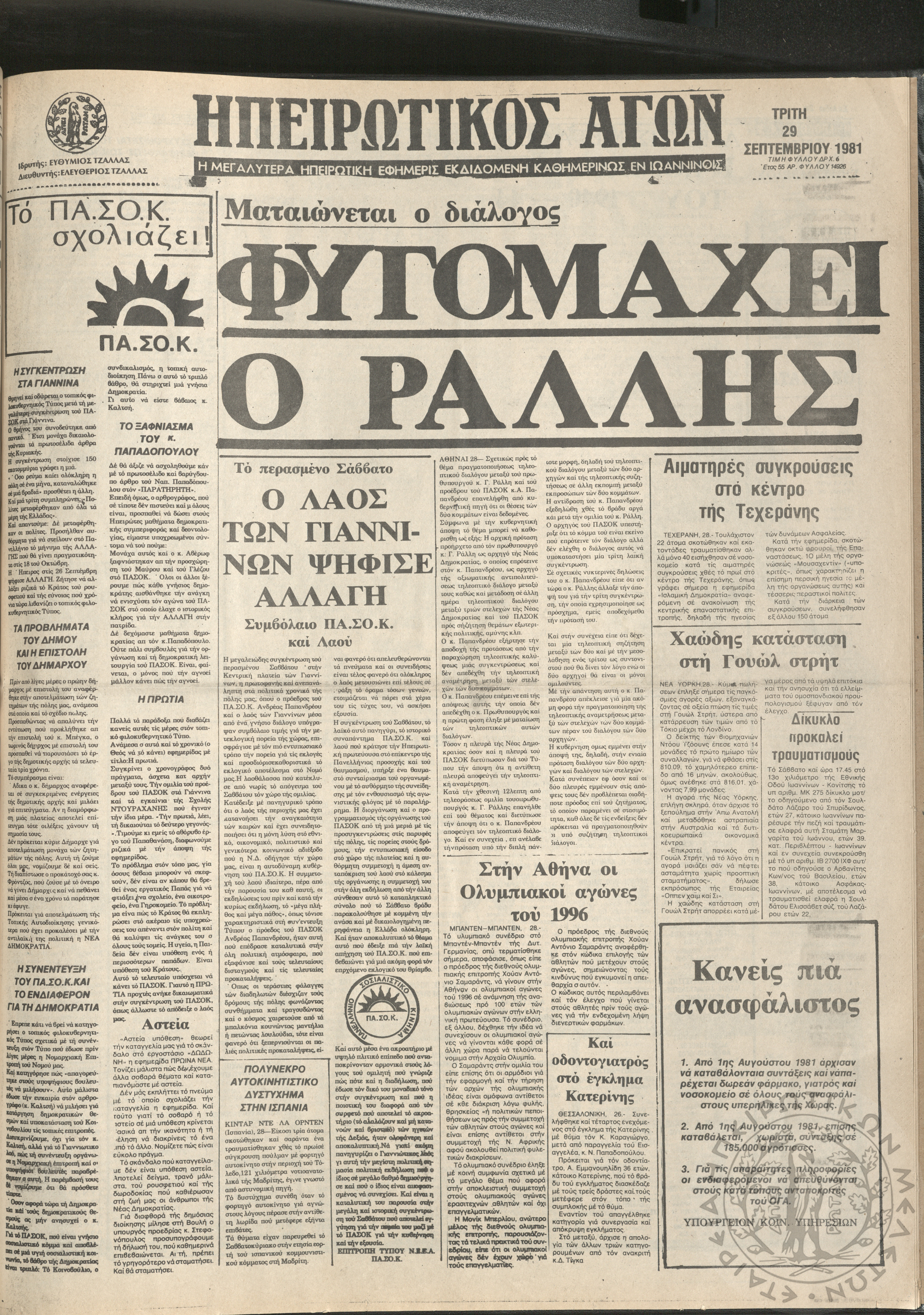 Ηπειρωτικός Αγών: η μεγαλυτέρα Ηπειρωτική εφημερίς εκδιδόμενη καθημερινώς εν Ιωαννίνοις, 1981, φ. 14929Έτος 55, φ. 14929...