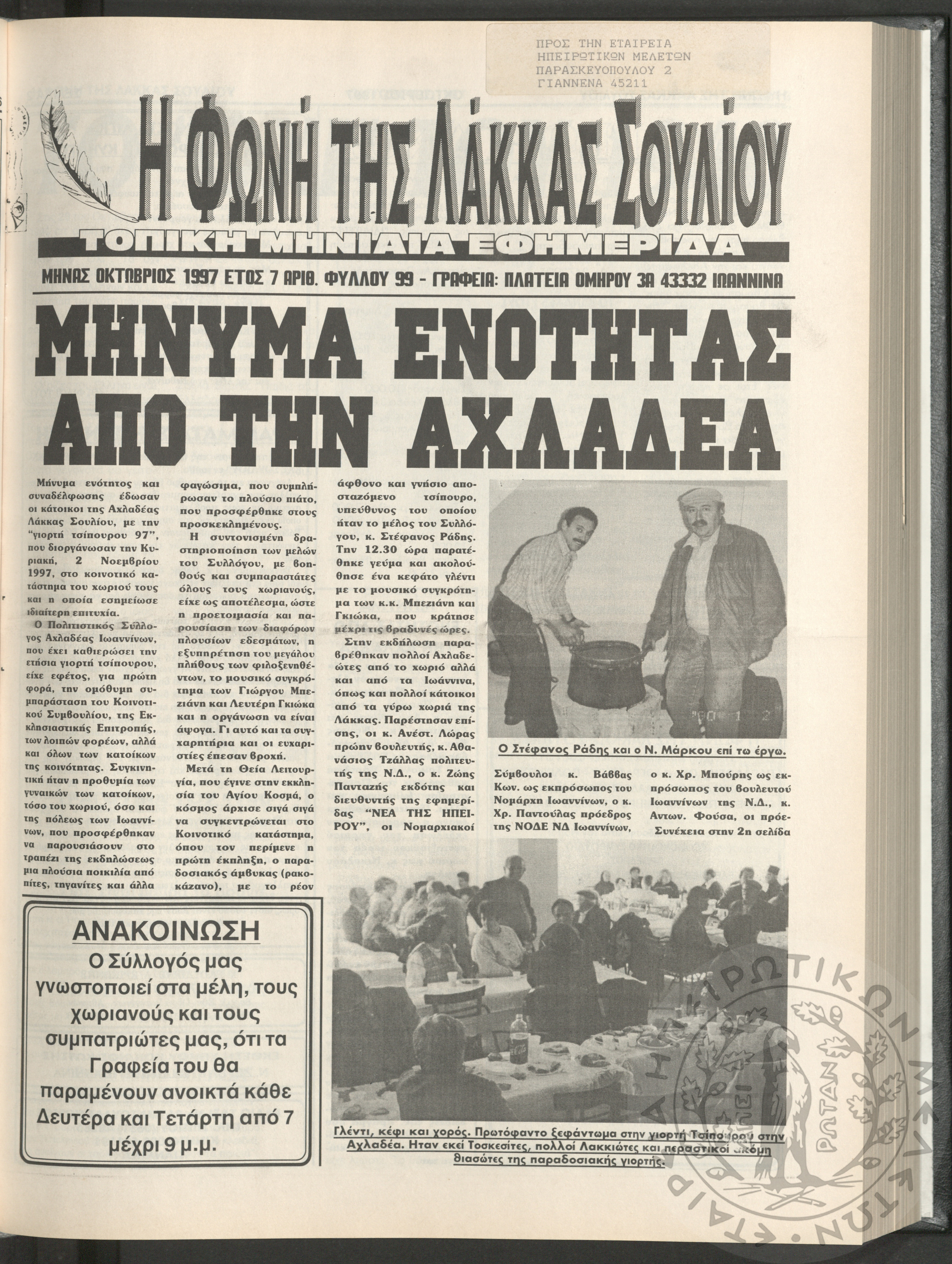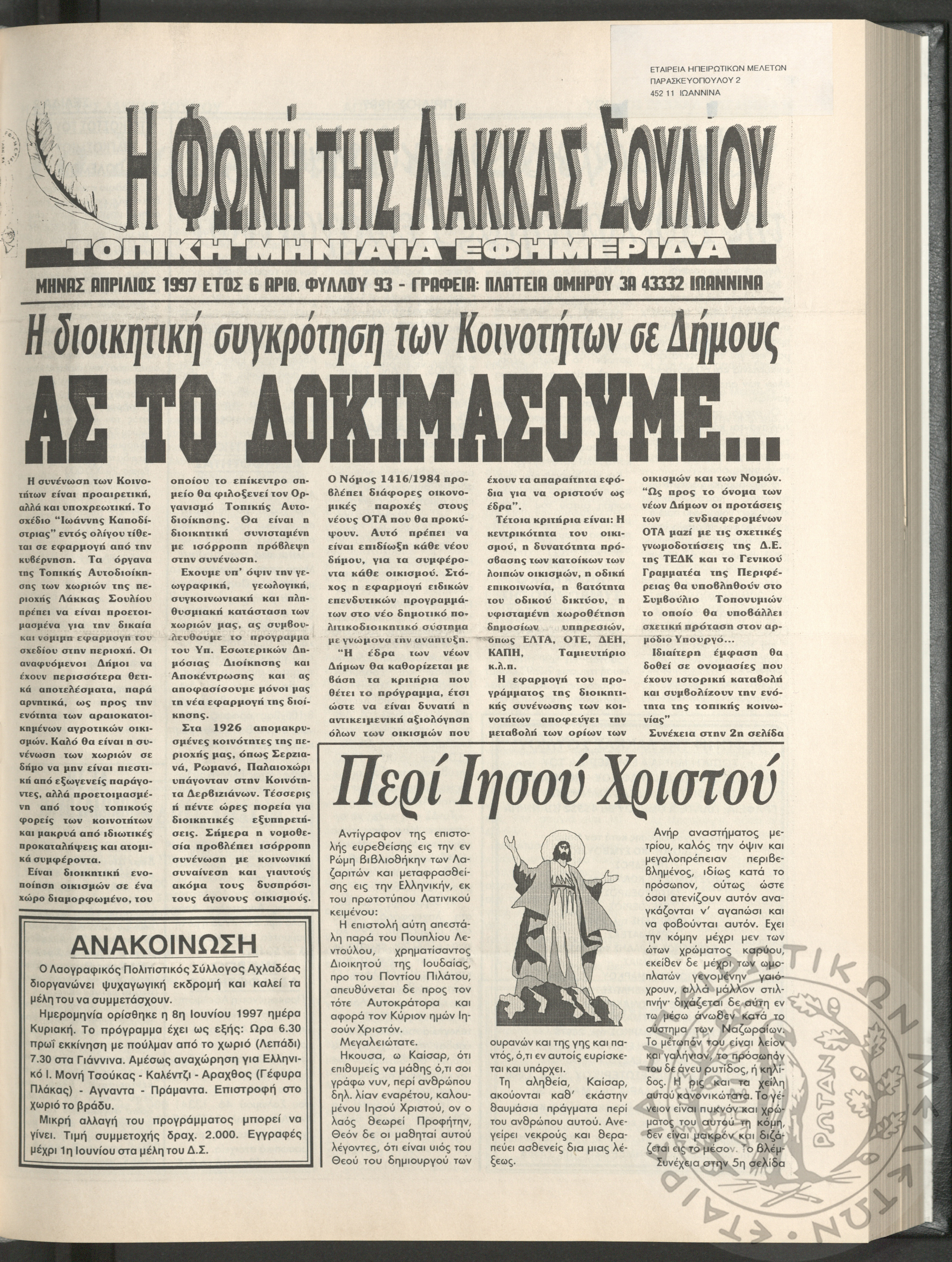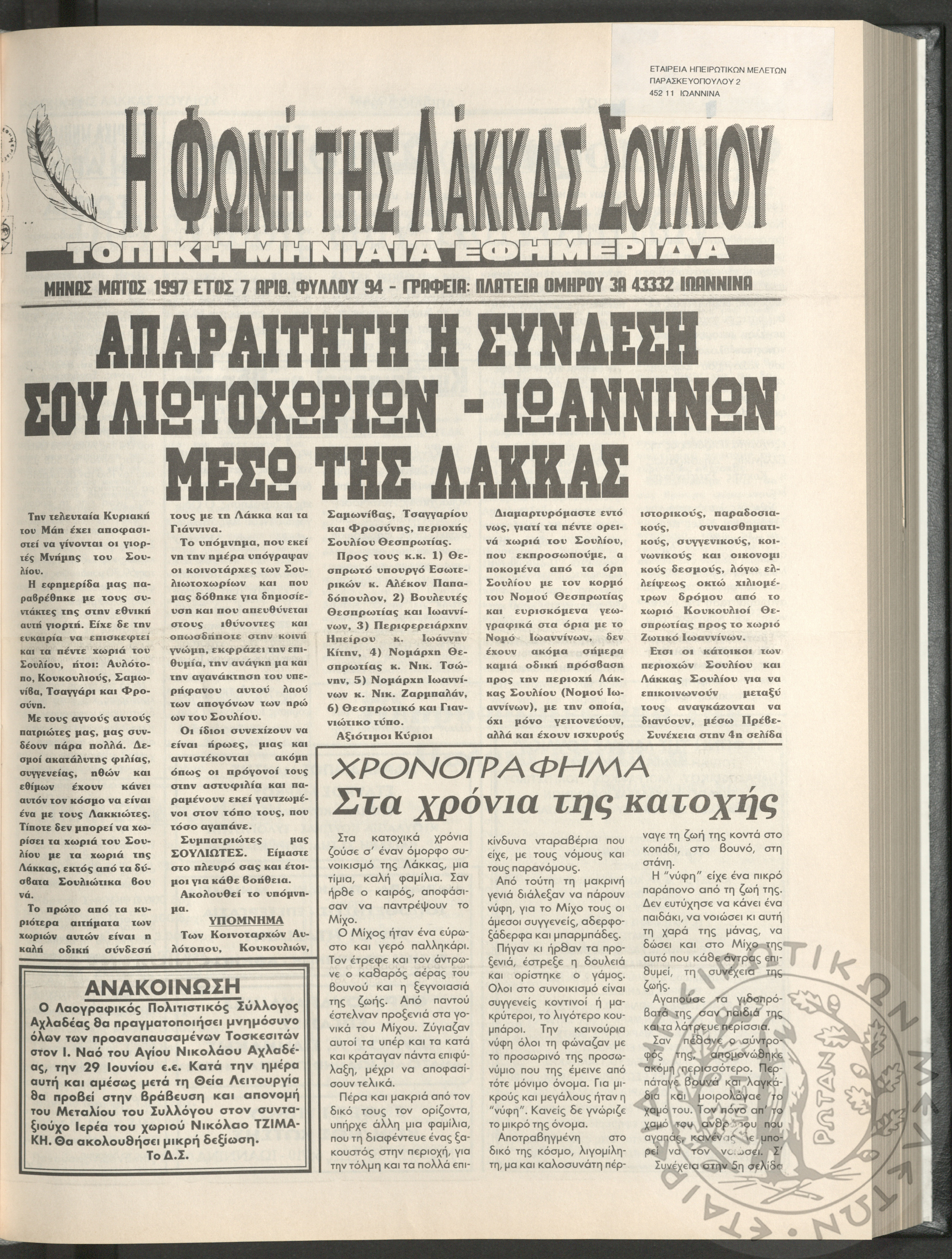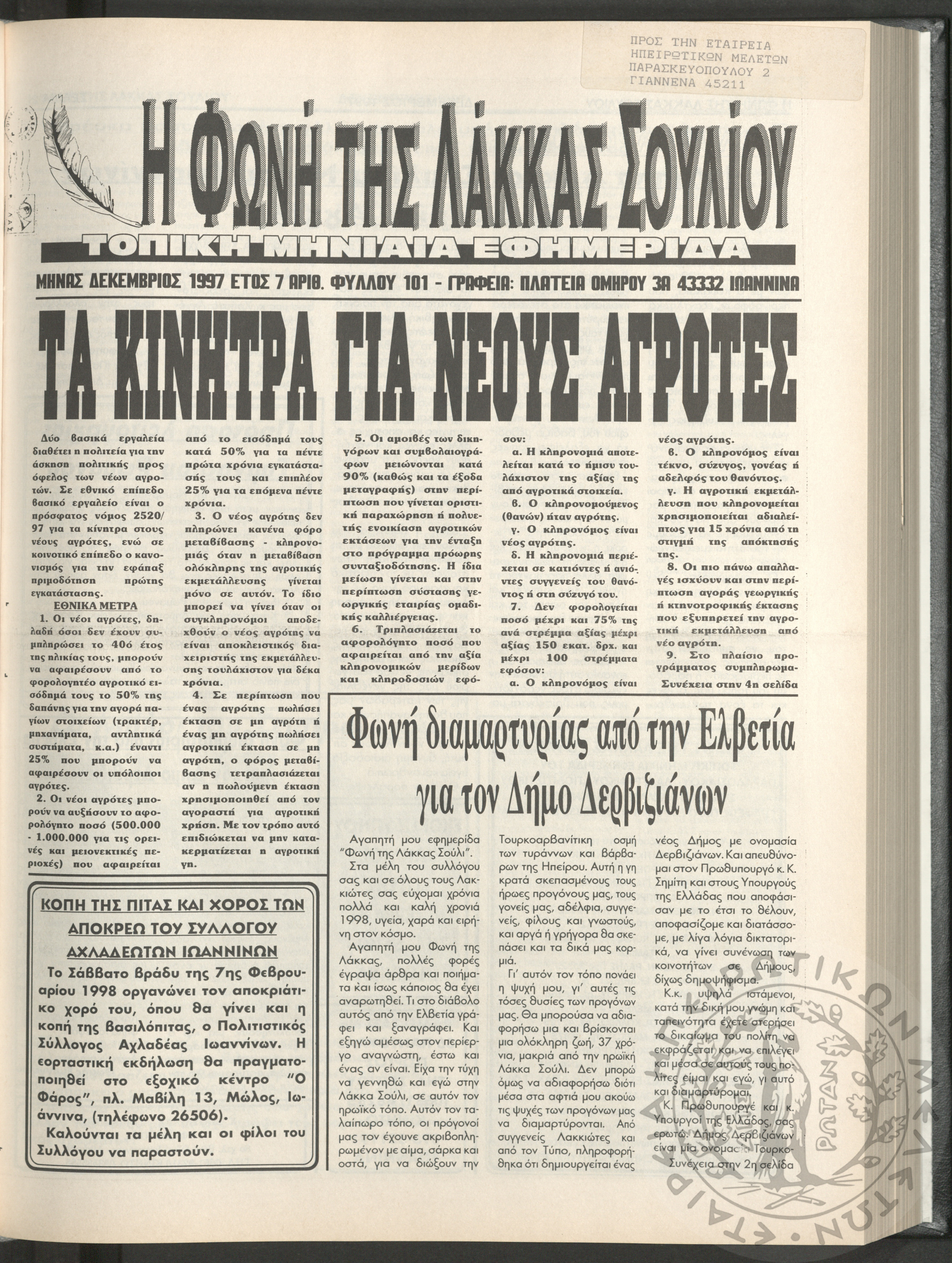 Ηπειρωτικός Αγών: η μεγαλυτέρα Ηπειρωτική εφημερίς εκδιδόμενη καθημερινώς εν Ιωαννίνοις, 1981, φ. 14929Έτος 55, φ. 14929...