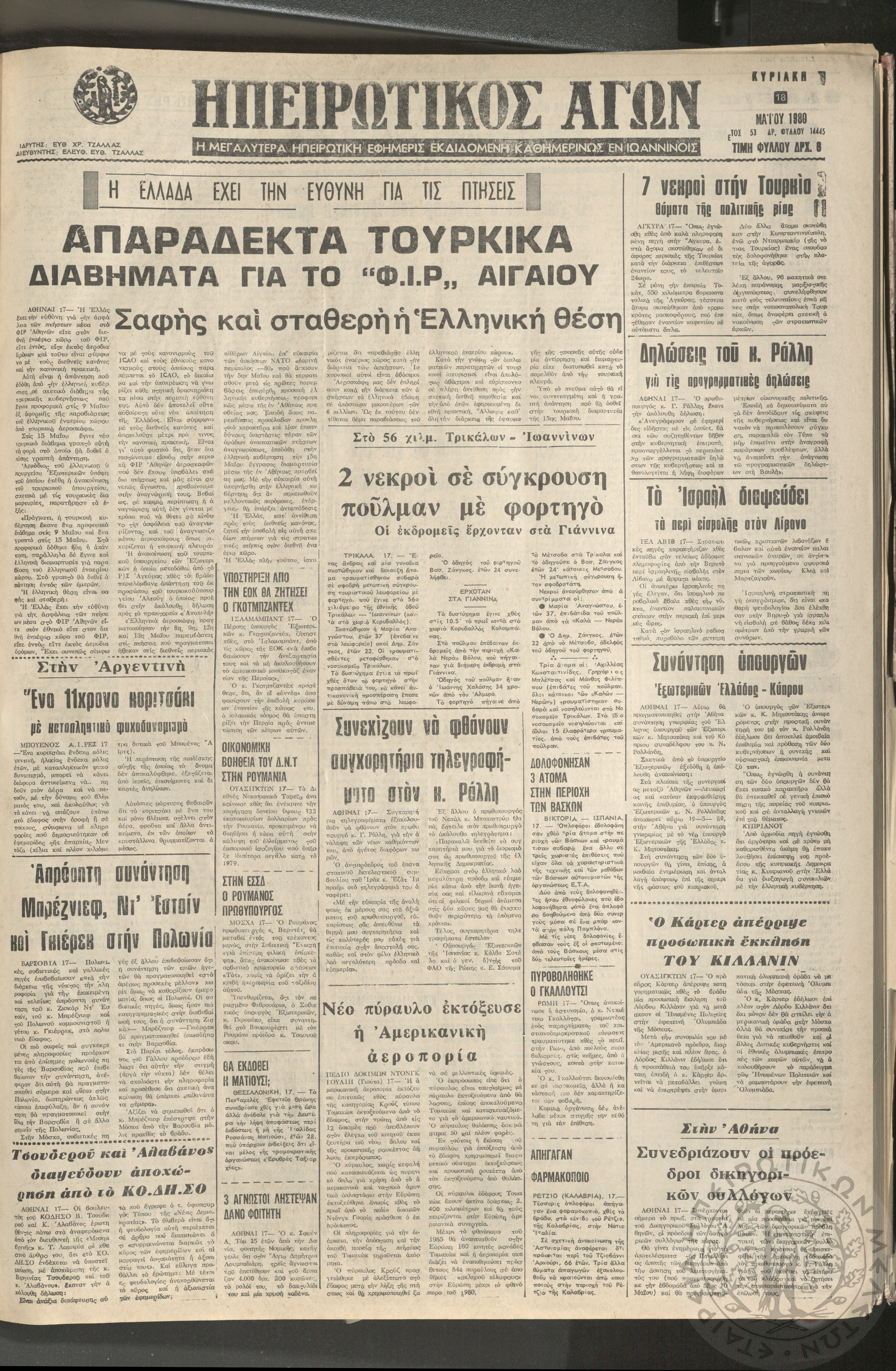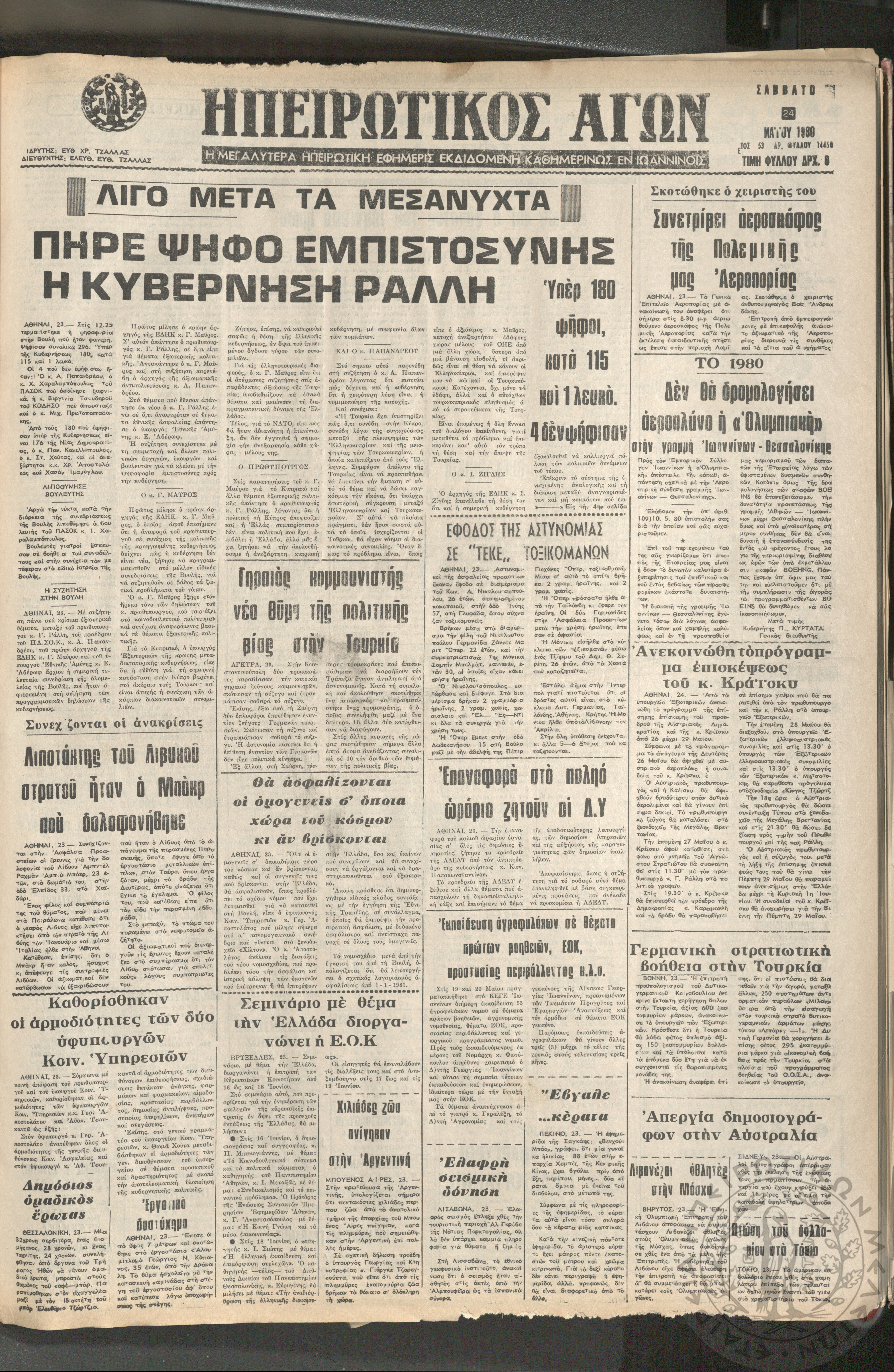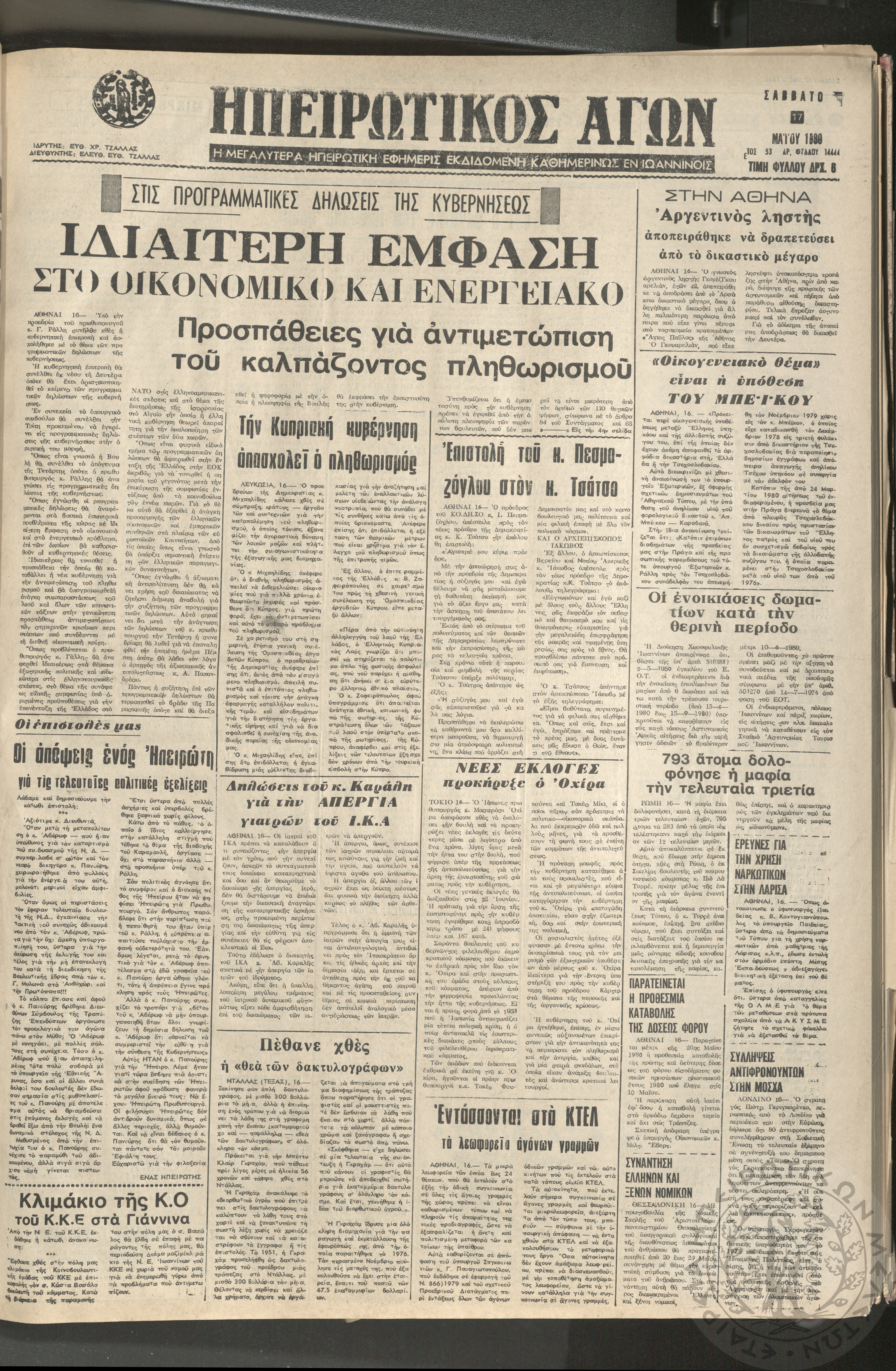 Ηπειρωτικός Αγών: η μεγαλυτέρα Ηπειρωτική εφημερίς εκδιδόμενη καθημερινώς εν Ιωαννίνοις, 1980, φ. 14447Έτος 53, φ. 14447...
