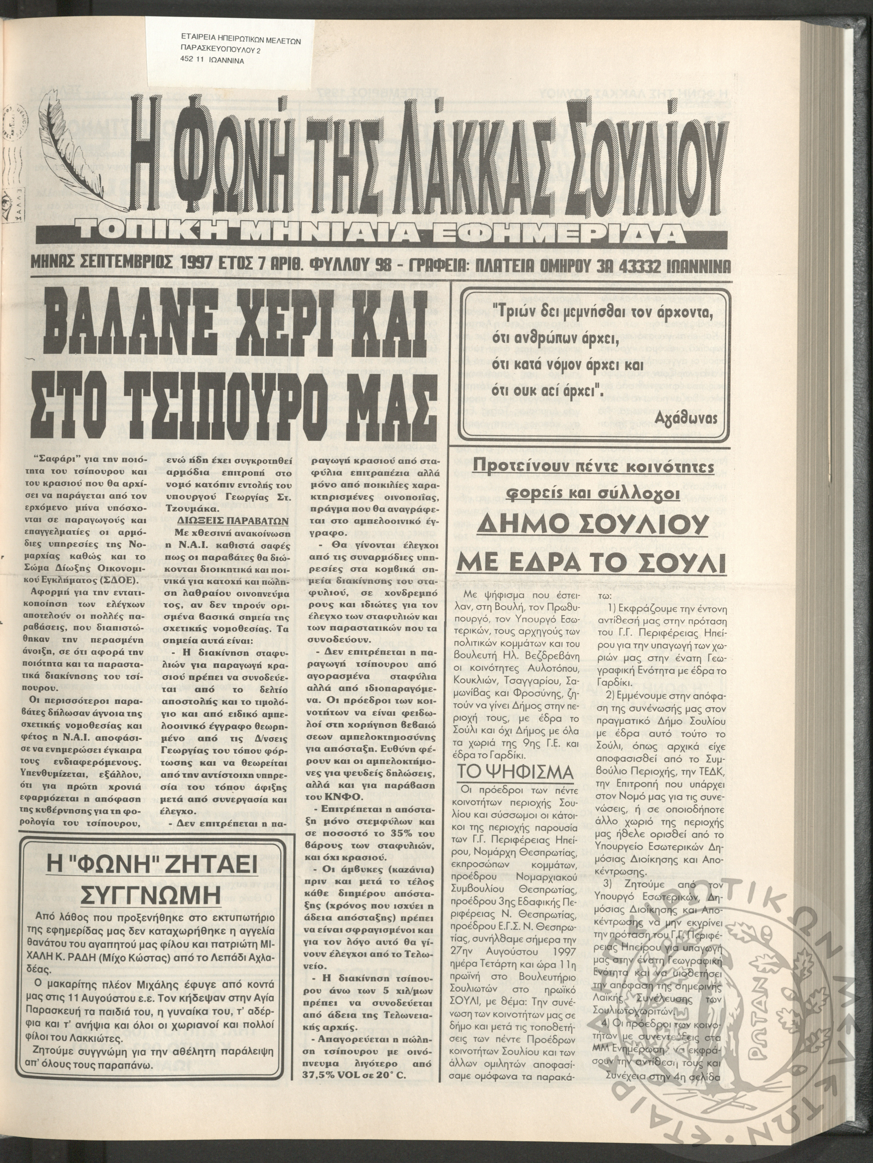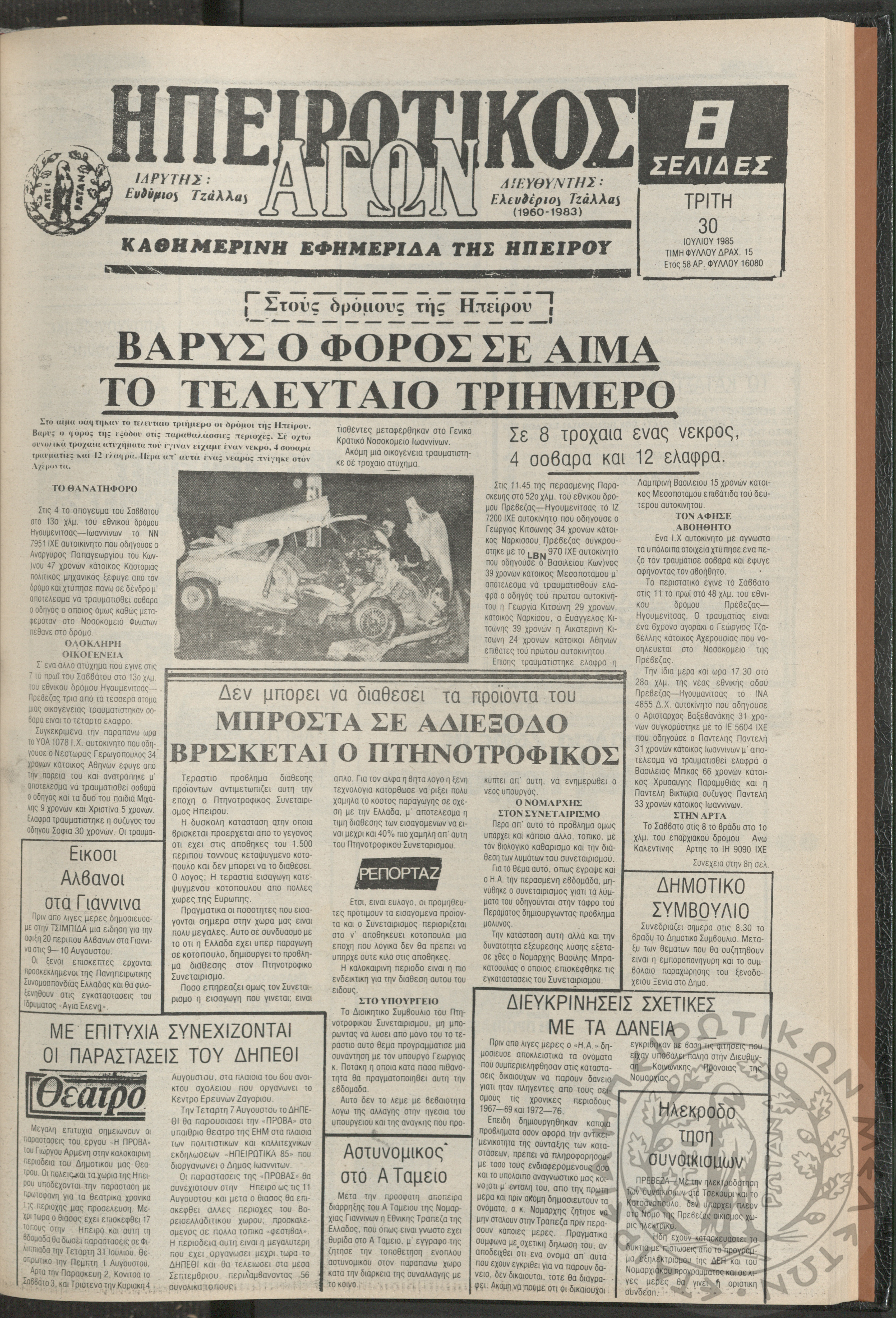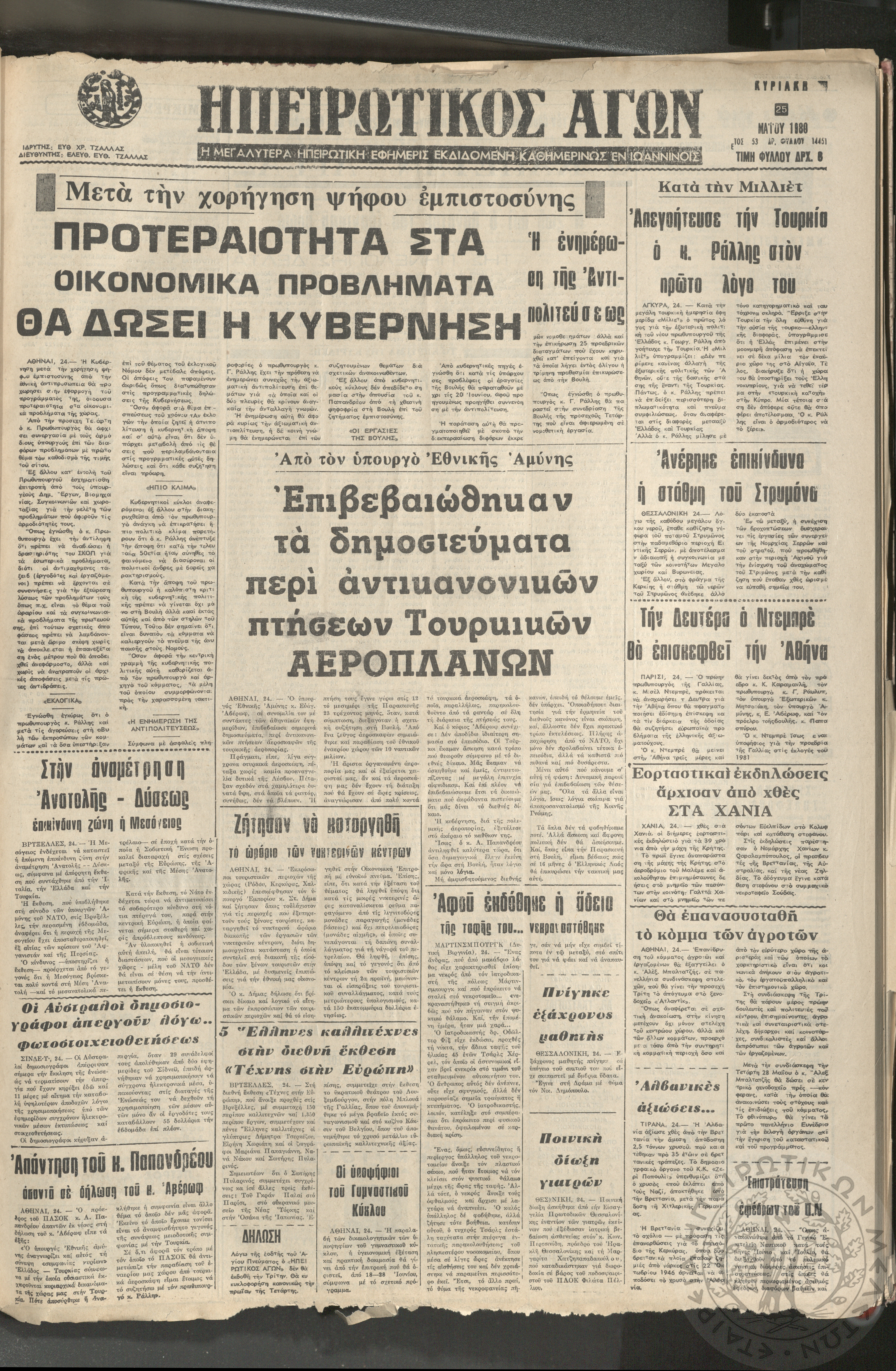 Ηπειρωτικός Αγών: η μεγαλυτέρα Ηπειρωτική εφημερίς εκδιδόμενη καθημερινώς εν Ιωαννίνοις, 1980, φ. 14451Έτος 53, φ. 14450...