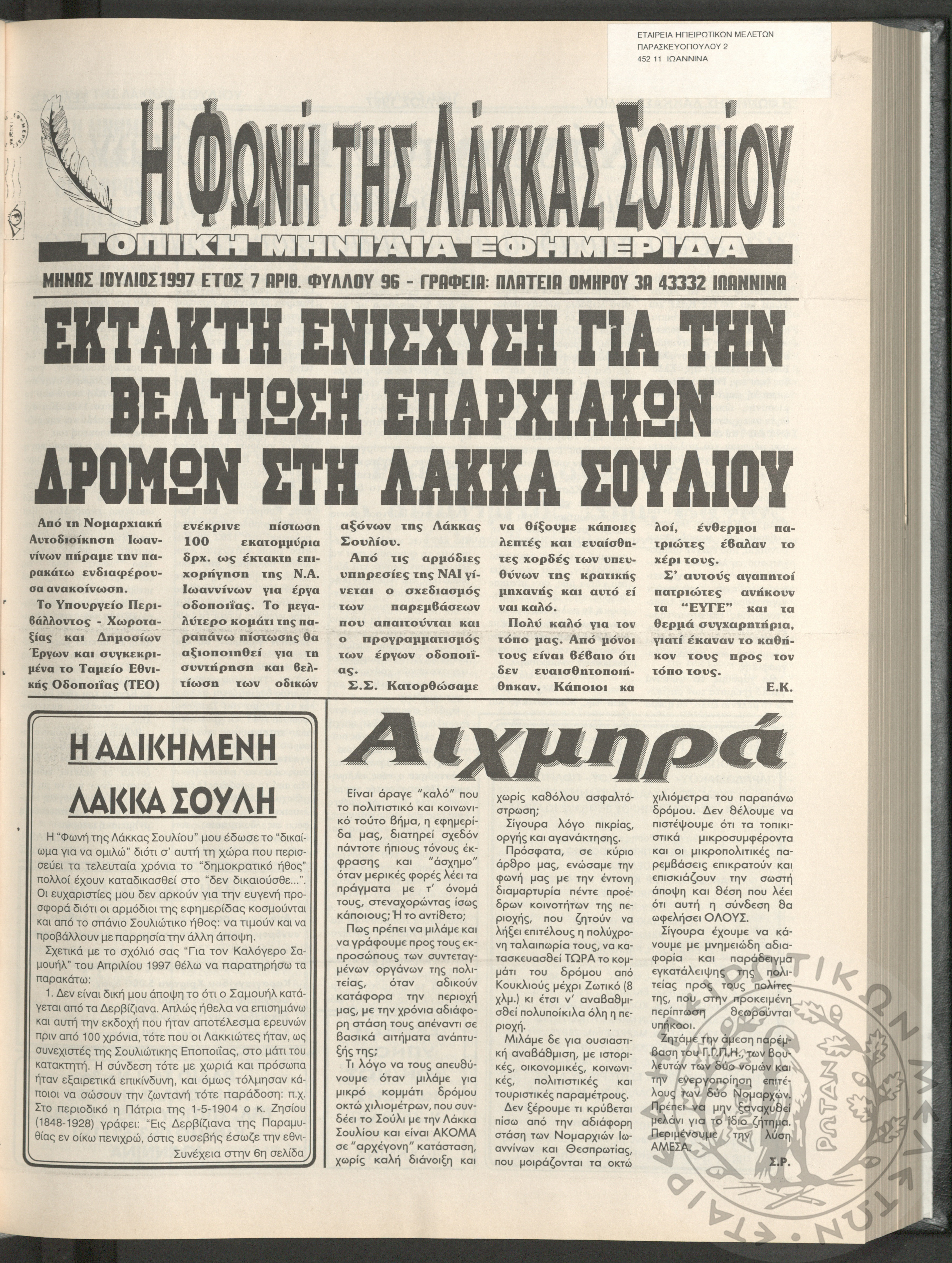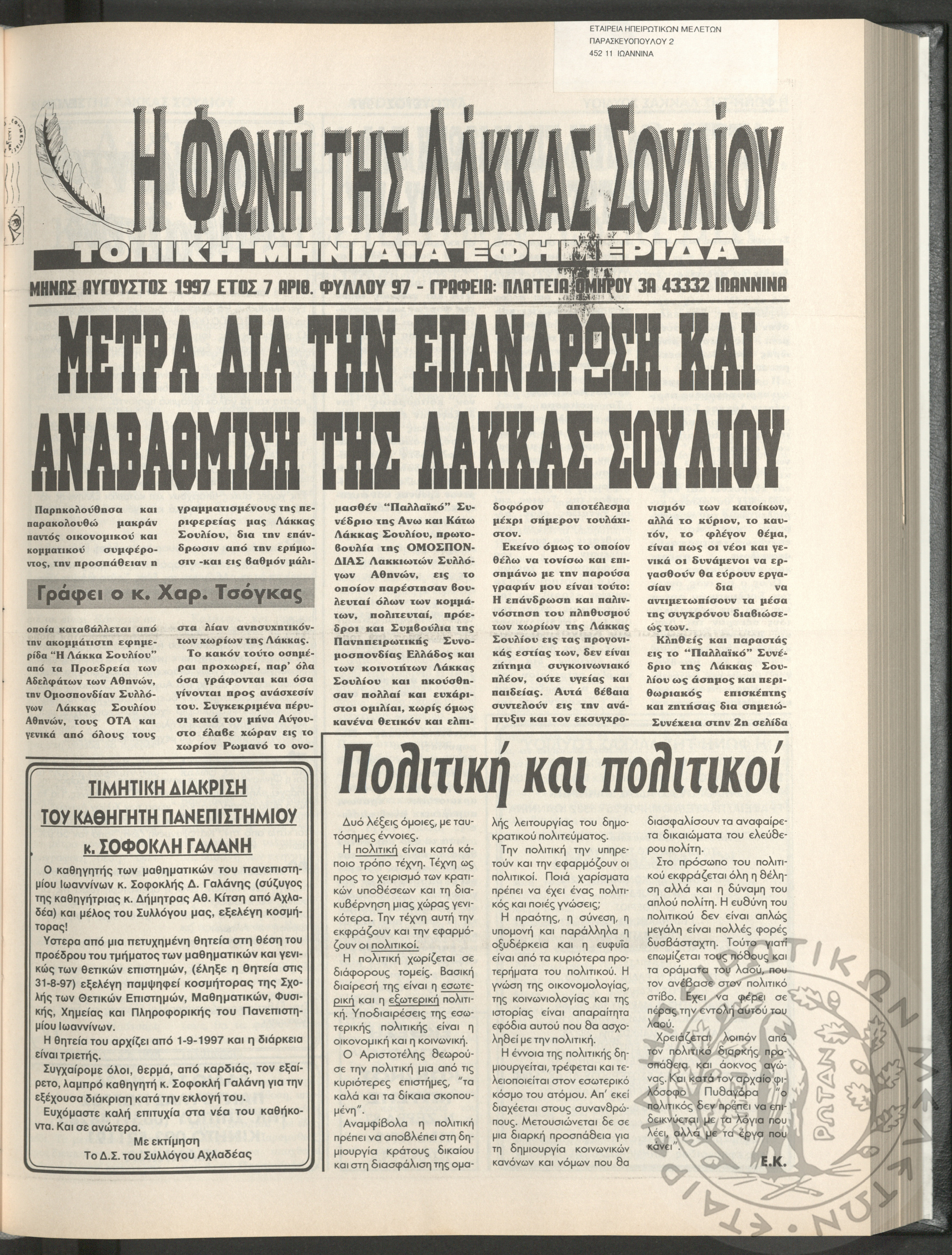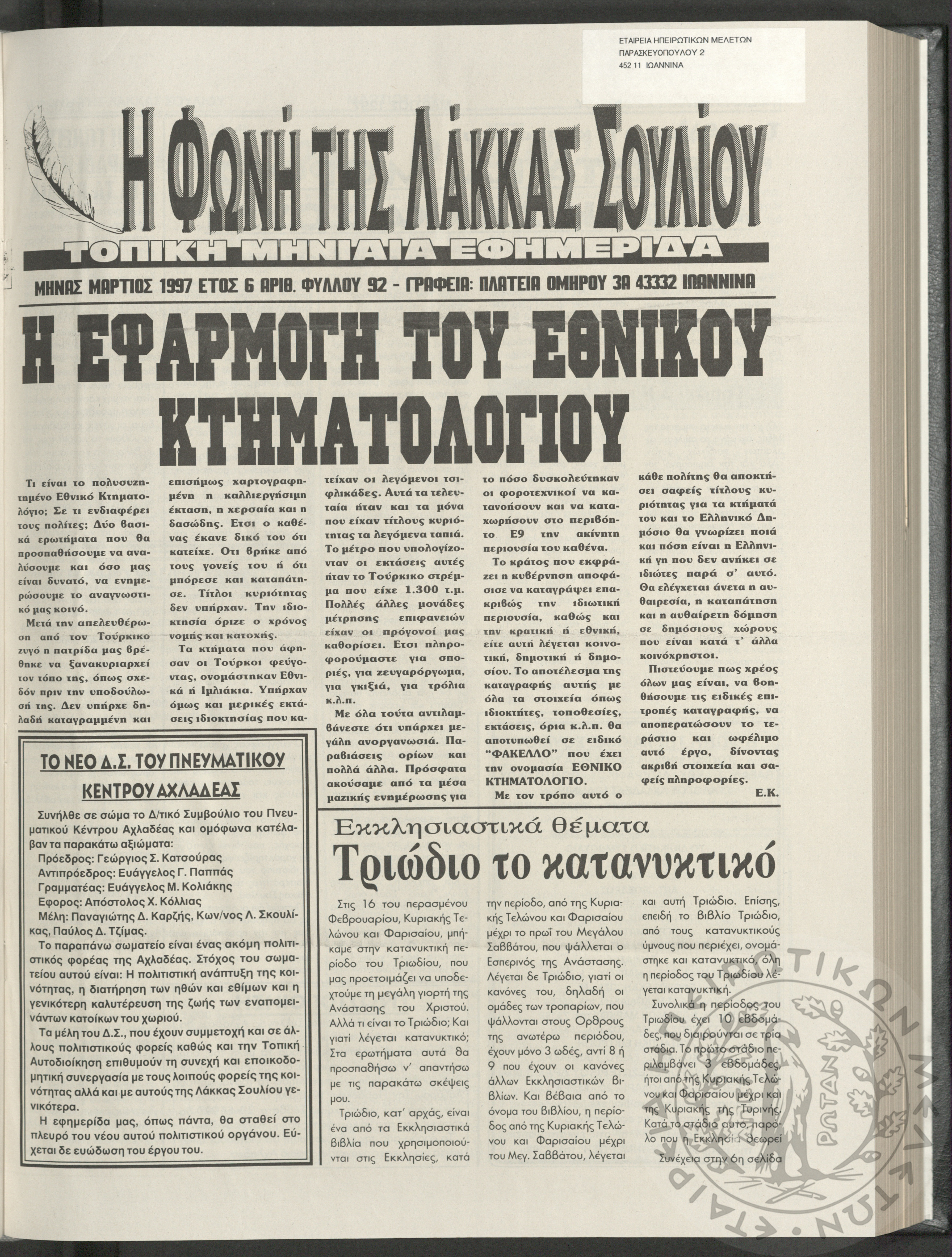 Ηπειρωτικός Αγών: η μεγαλυτέρα Ηπειρωτική εφημερίς εκδιδόμενη καθημερινώς εν Ιωαννίνοις, 1980, φ. 14451Έτος 53, φ. 14450...