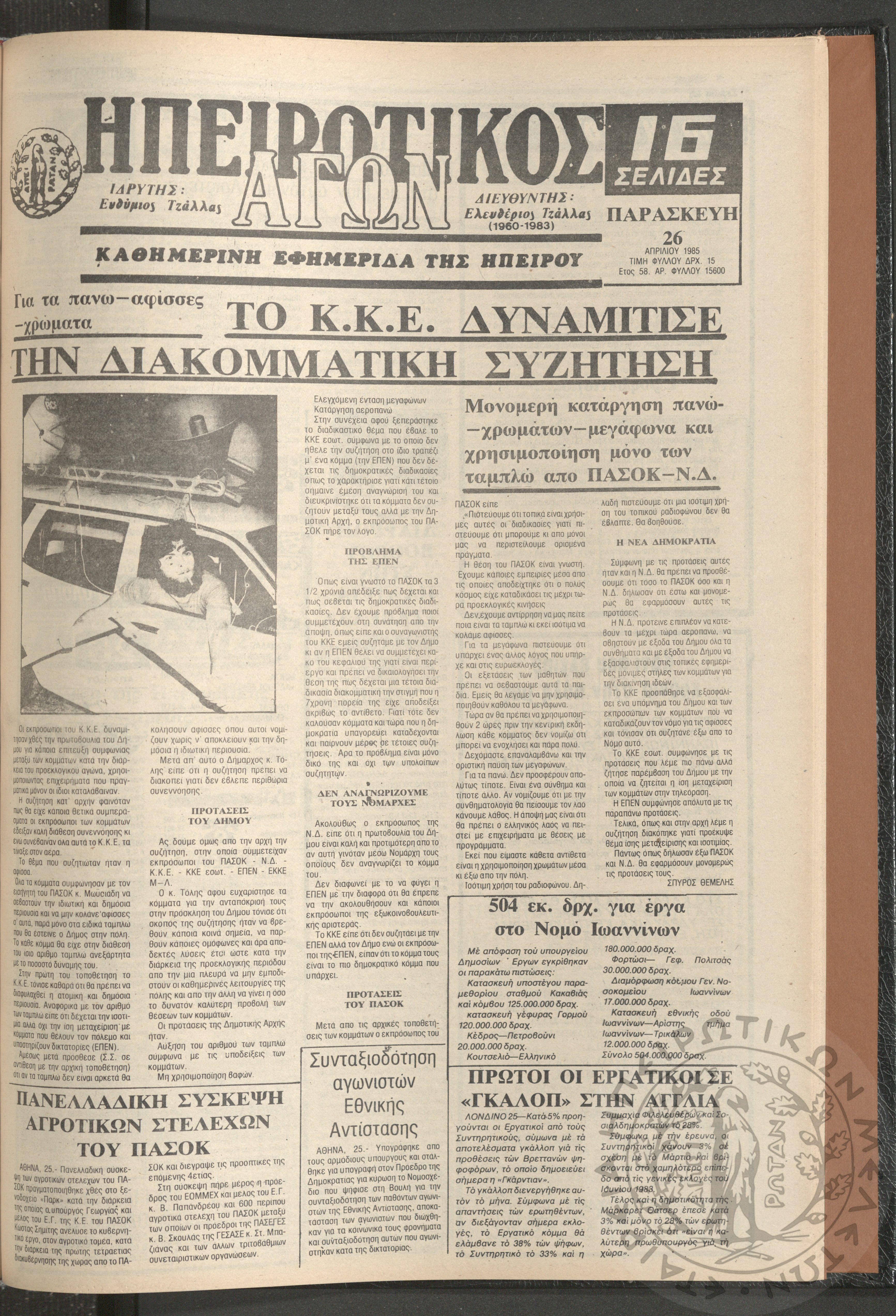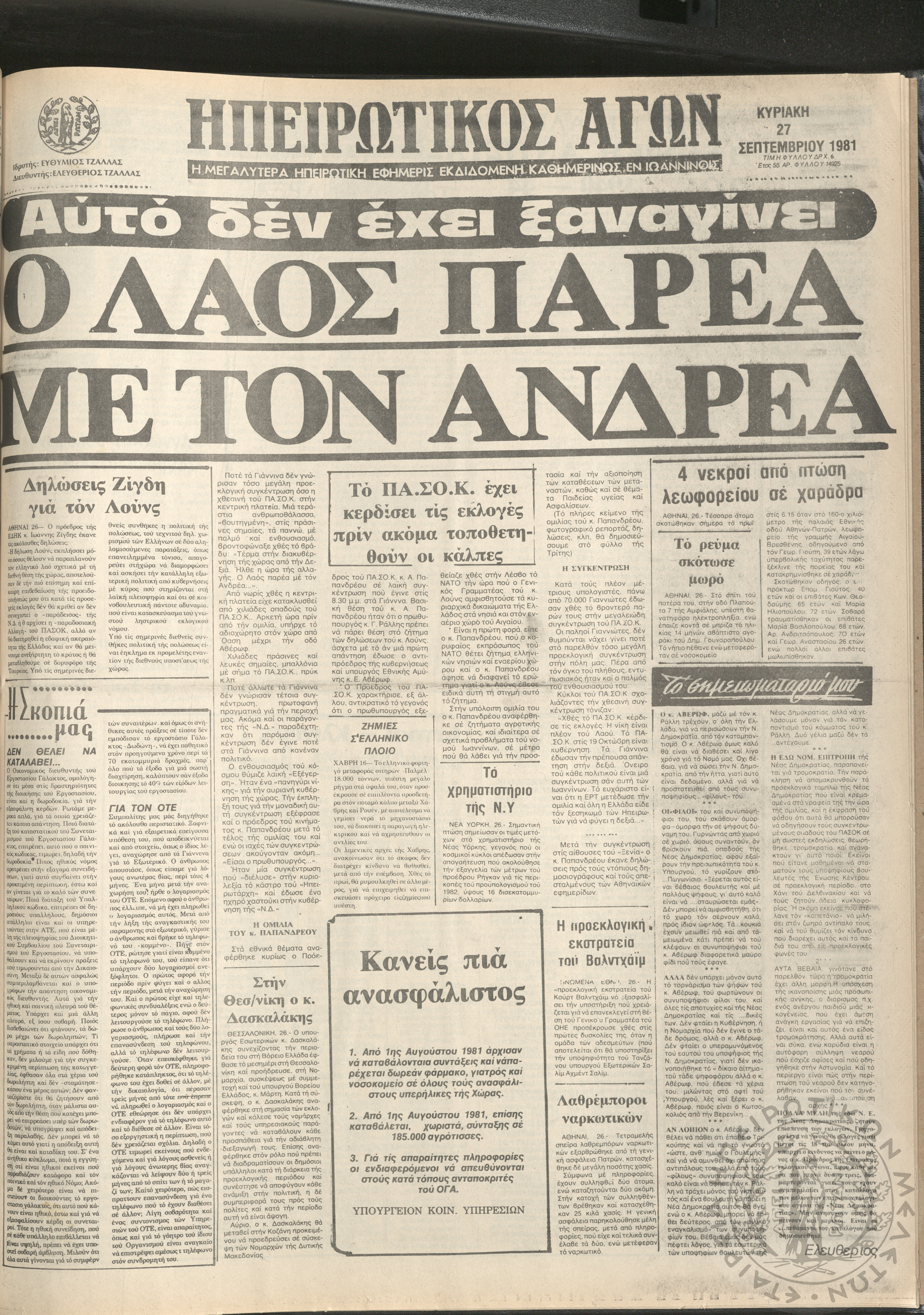 Ηπειρωτικός Αγών: η μεγαλυτέρα Ηπειρωτική εφημερίς εκδιδόμενη καθημερινώς εν Ιωαννίνοις, 1981, φ. 14926Έτος 55, φ. 14926...
