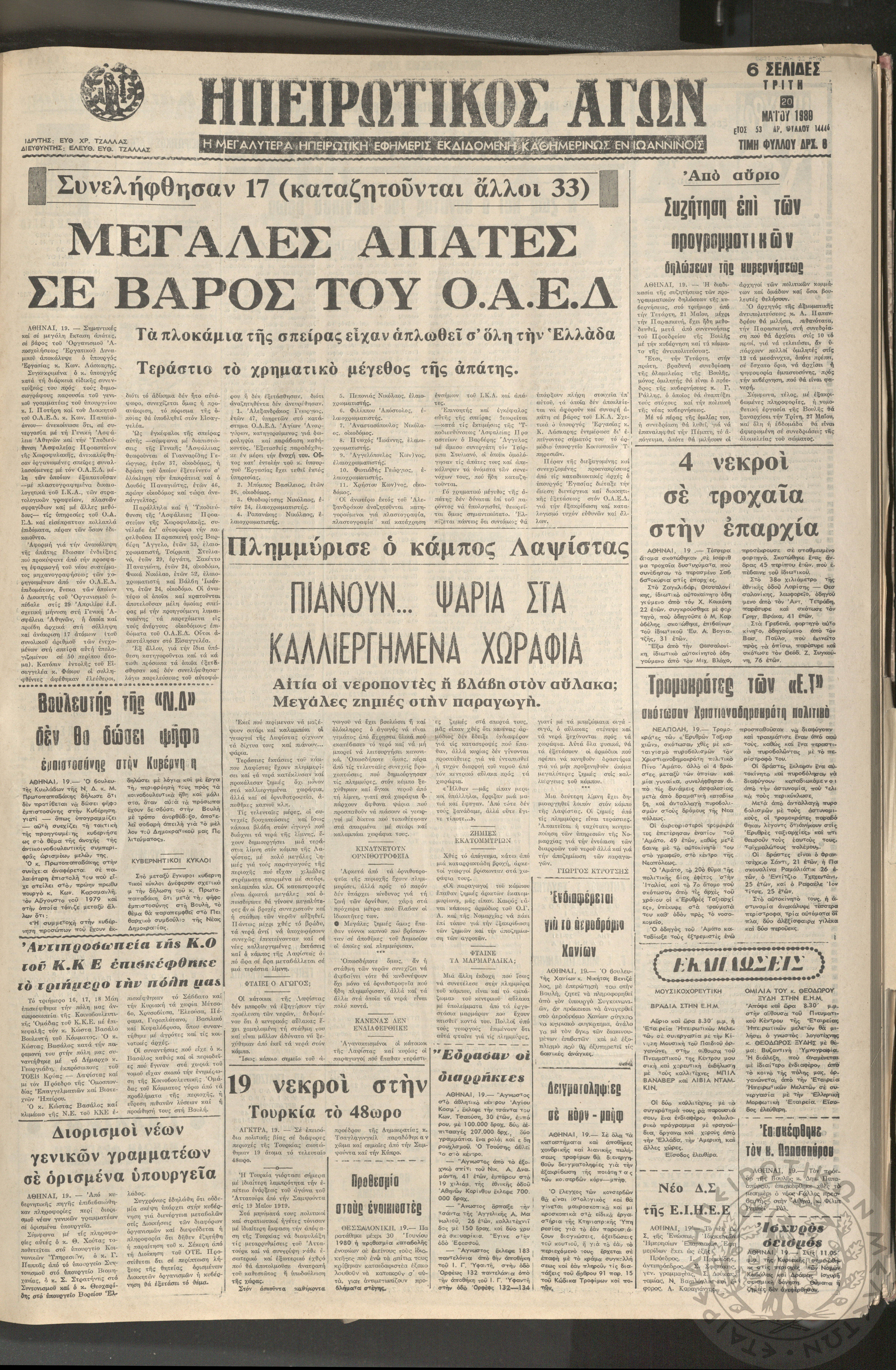 Ηπειρωτικός Αγών: η μεγαλυτέρα Ηπειρωτική εφημερίς εκδιδόμενη καθημερινώς εν Ιωαννίνοις, 1980, φ. 14444Έτος 53, φ. 14444...