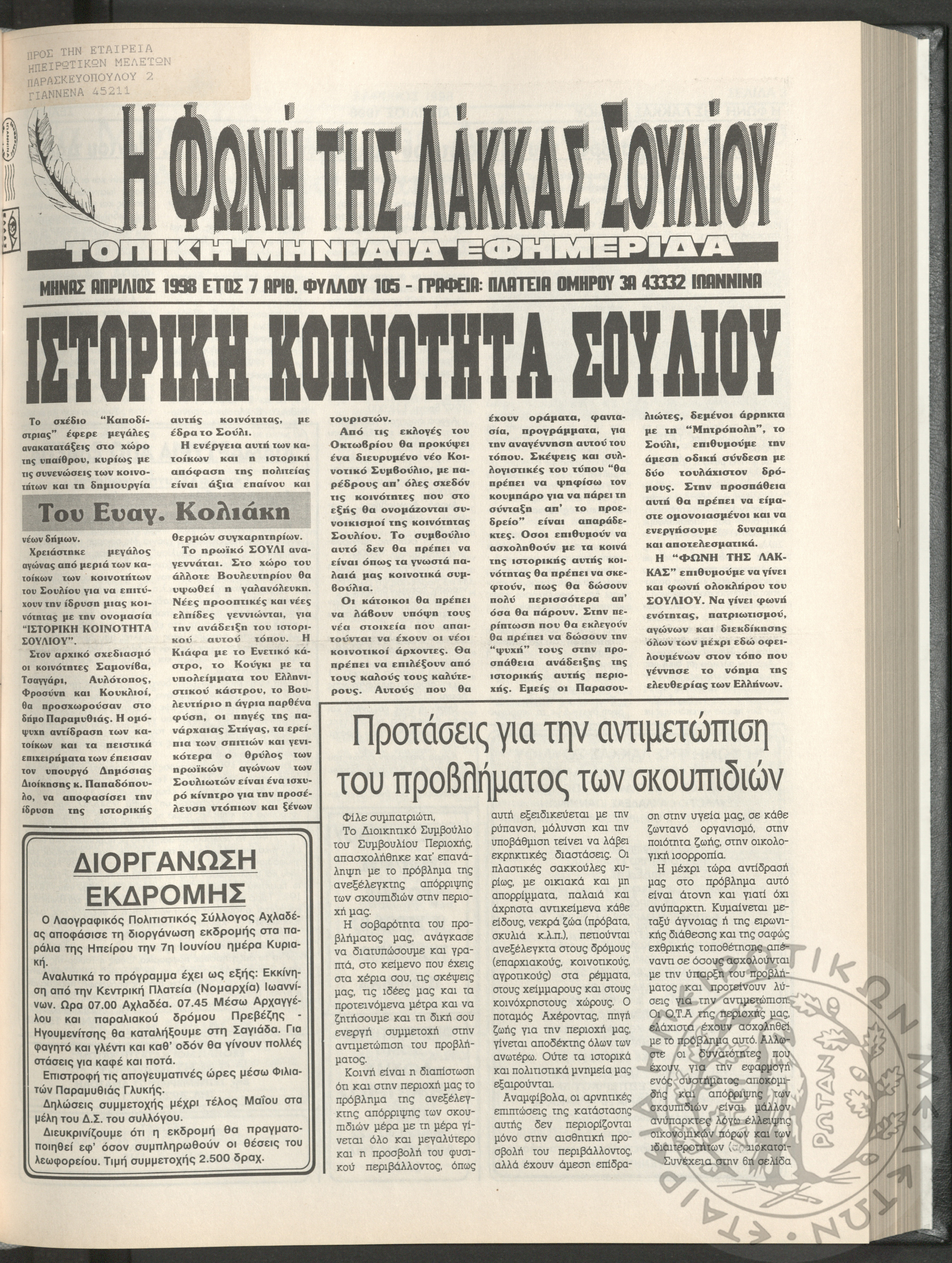 Ηπειρωτικός Αγών: η μεγαλυτέρα Ηπειρωτική εφημερίς εκδιδόμενη καθημερινώς εν Ιωαννίνοις, 1981, φ. 14931Έτος 55, φ. 14931...