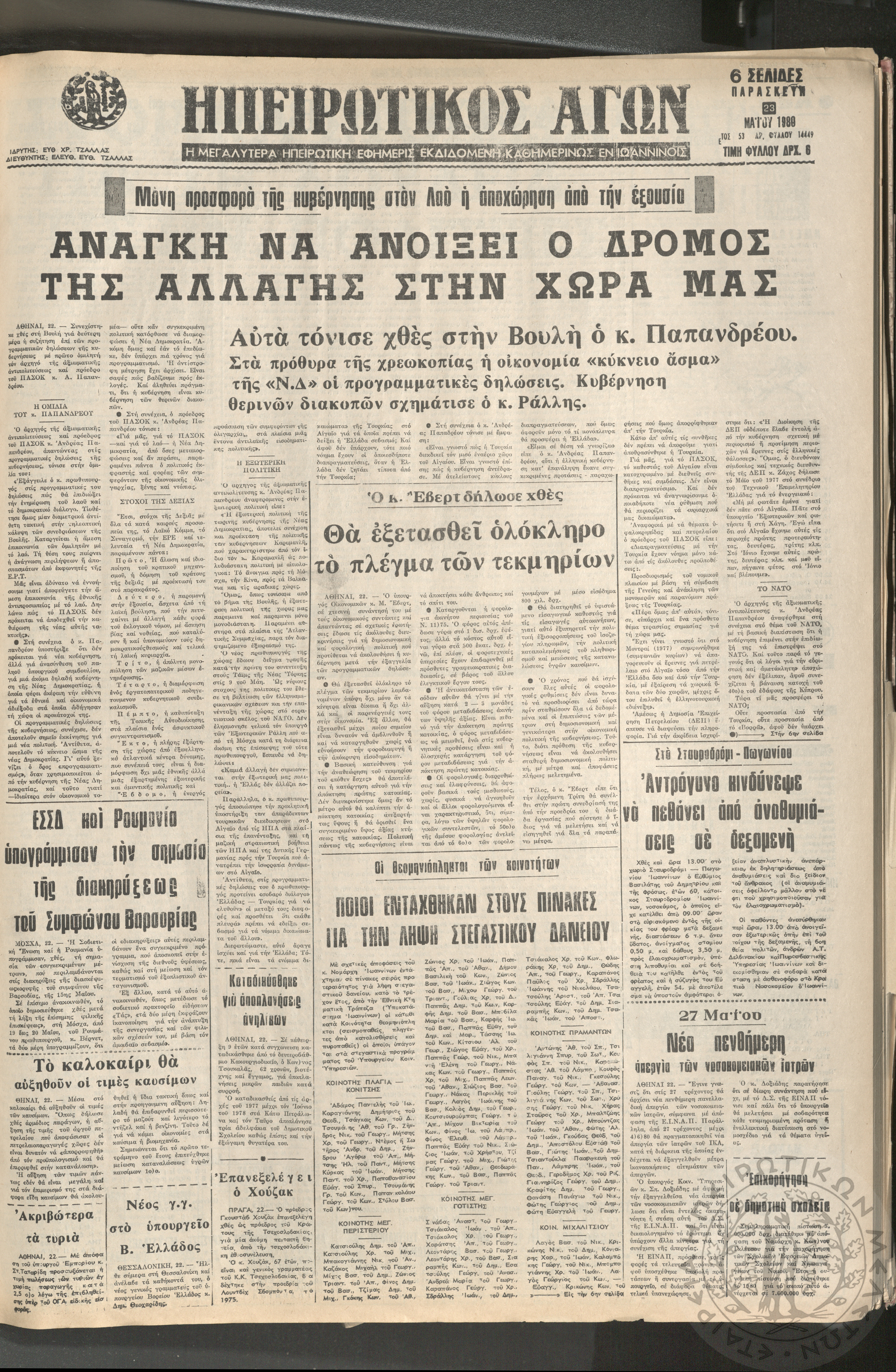 Ηπειρωτικός Αγών: η μεγαλυτέρα Ηπειρωτική εφημερίς εκδιδόμενη καθημερινώς εν Ιωαννίνοις, 1980, φ. 14449Έτος 53, φ. 14449...