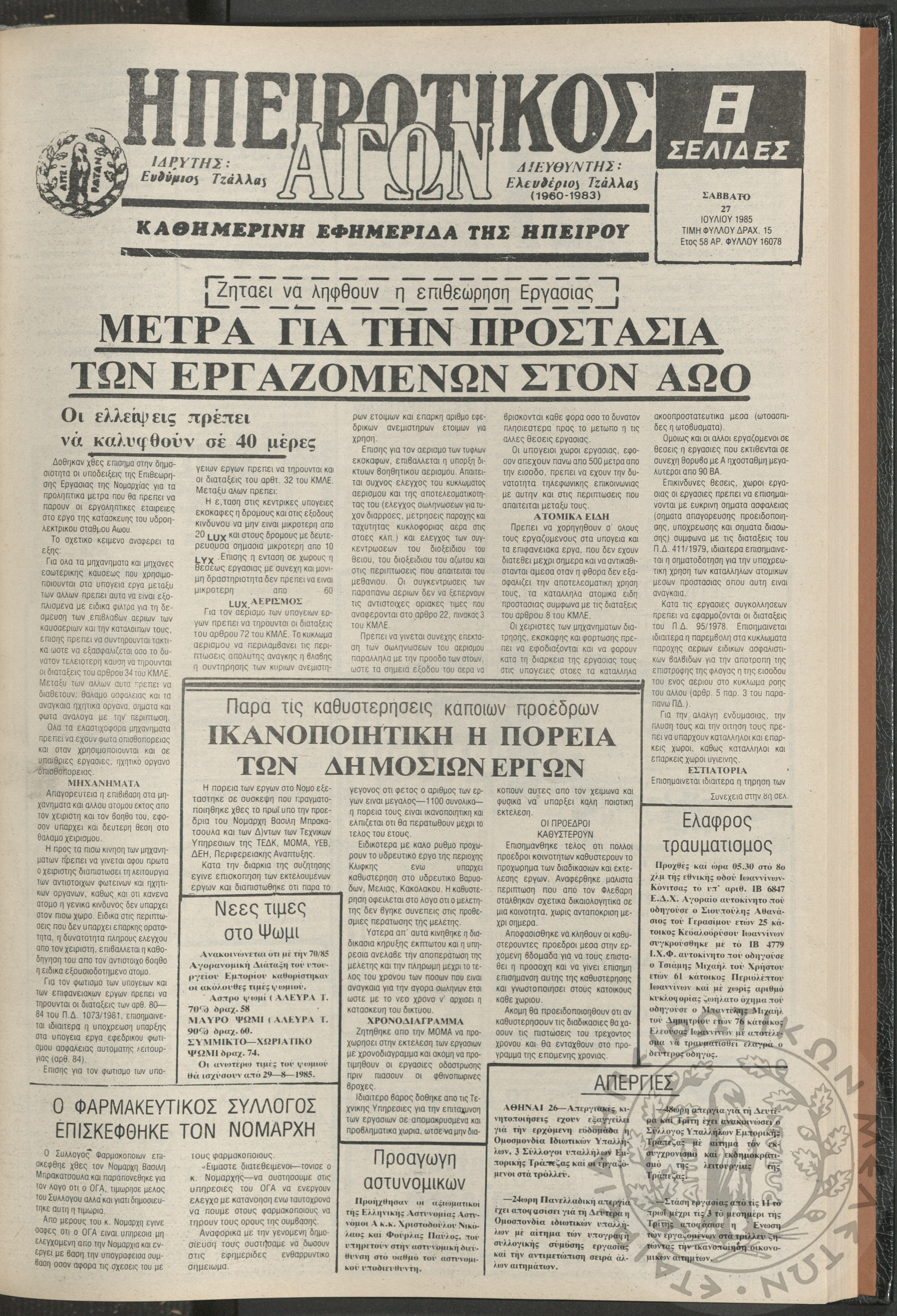 Ηπειρωτικός Αγών: η μεγαλυτέρα Ηπειρωτική εφημερίς εκδιδόμενη καθημερινώς εν Ιωαννίνοις, 1981, φ. 14927Έτος 55, φ. 14927...