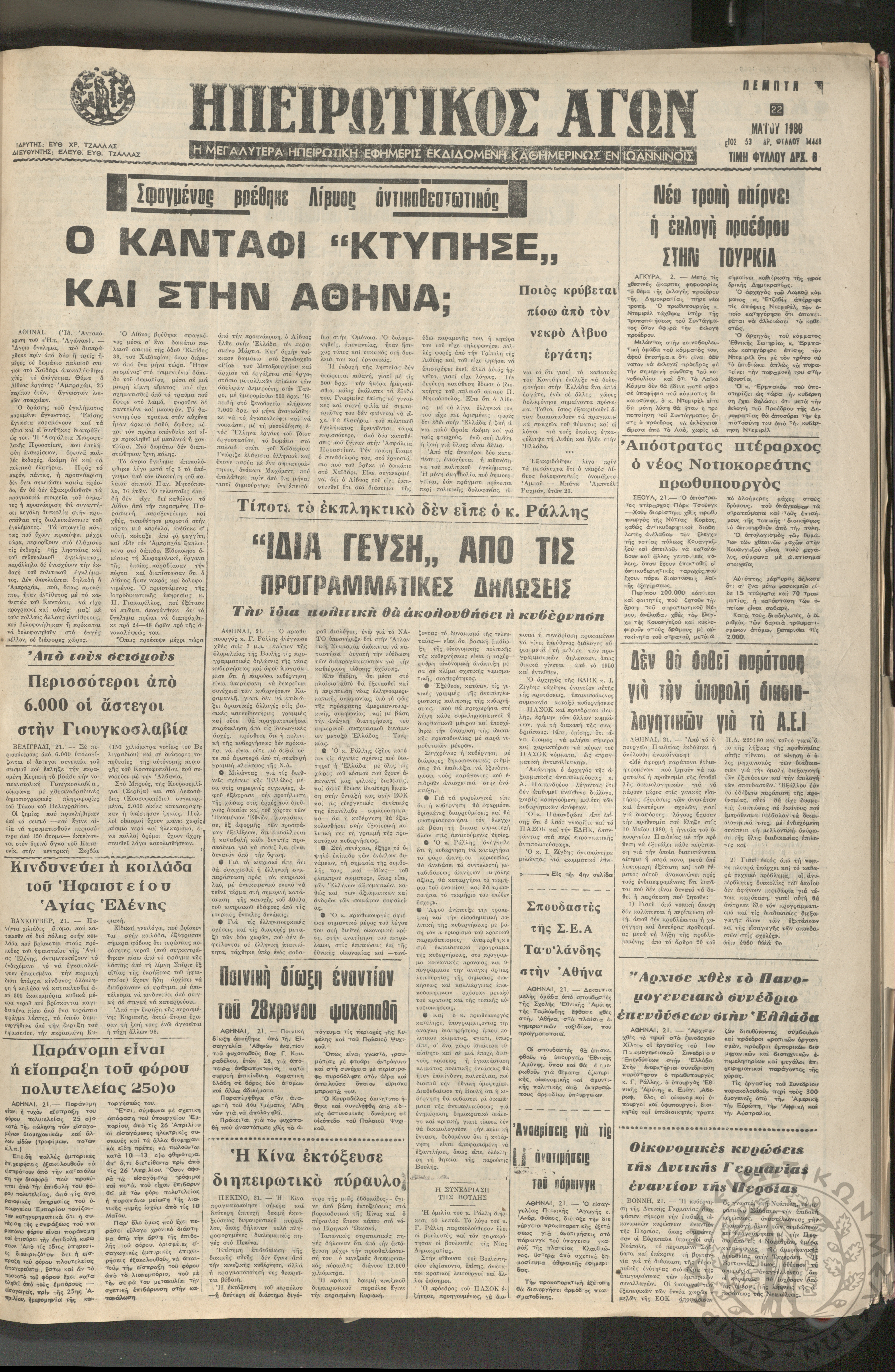 Ηπειρωτικός Αγών: η μεγαλυτέρα Ηπειρωτική εφημερίς εκδιδόμενη καθημερινώς εν Ιωαννίνοις, 1980, φ. 14448Έτος 53, φ. 14448...