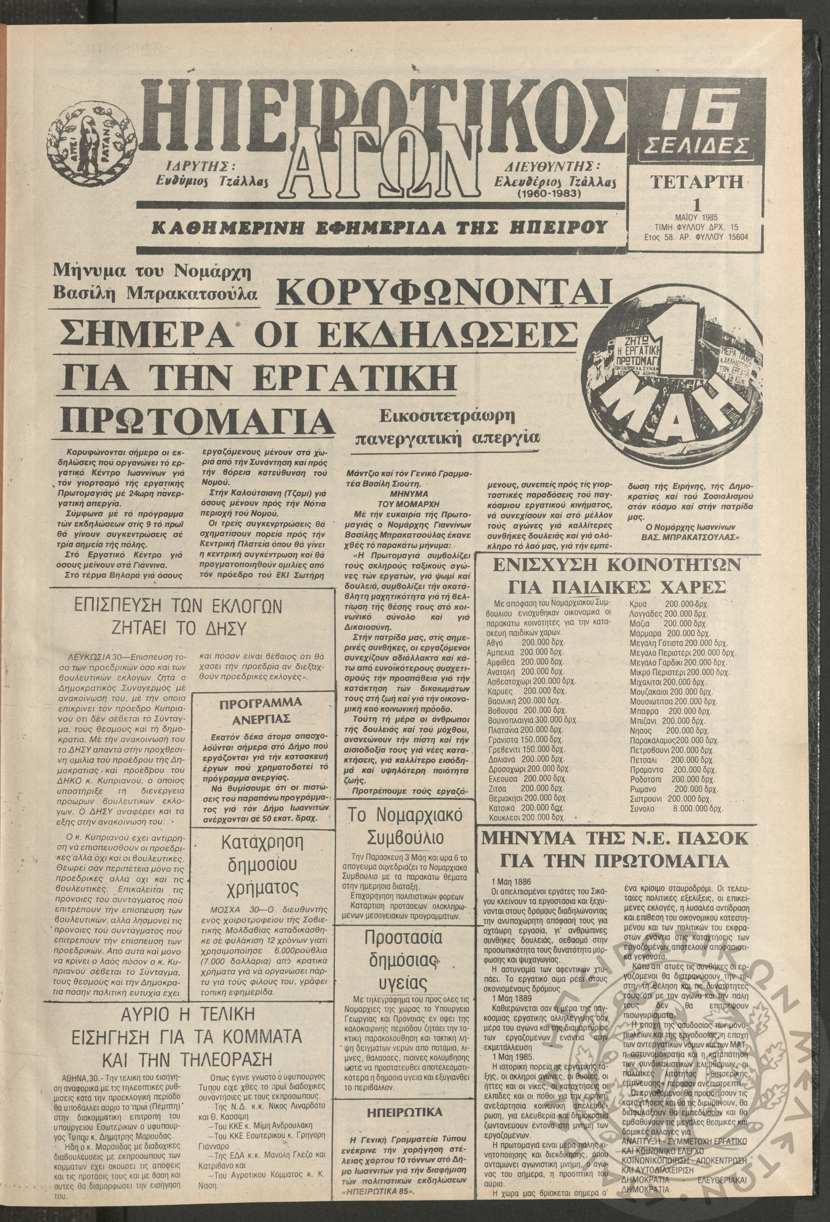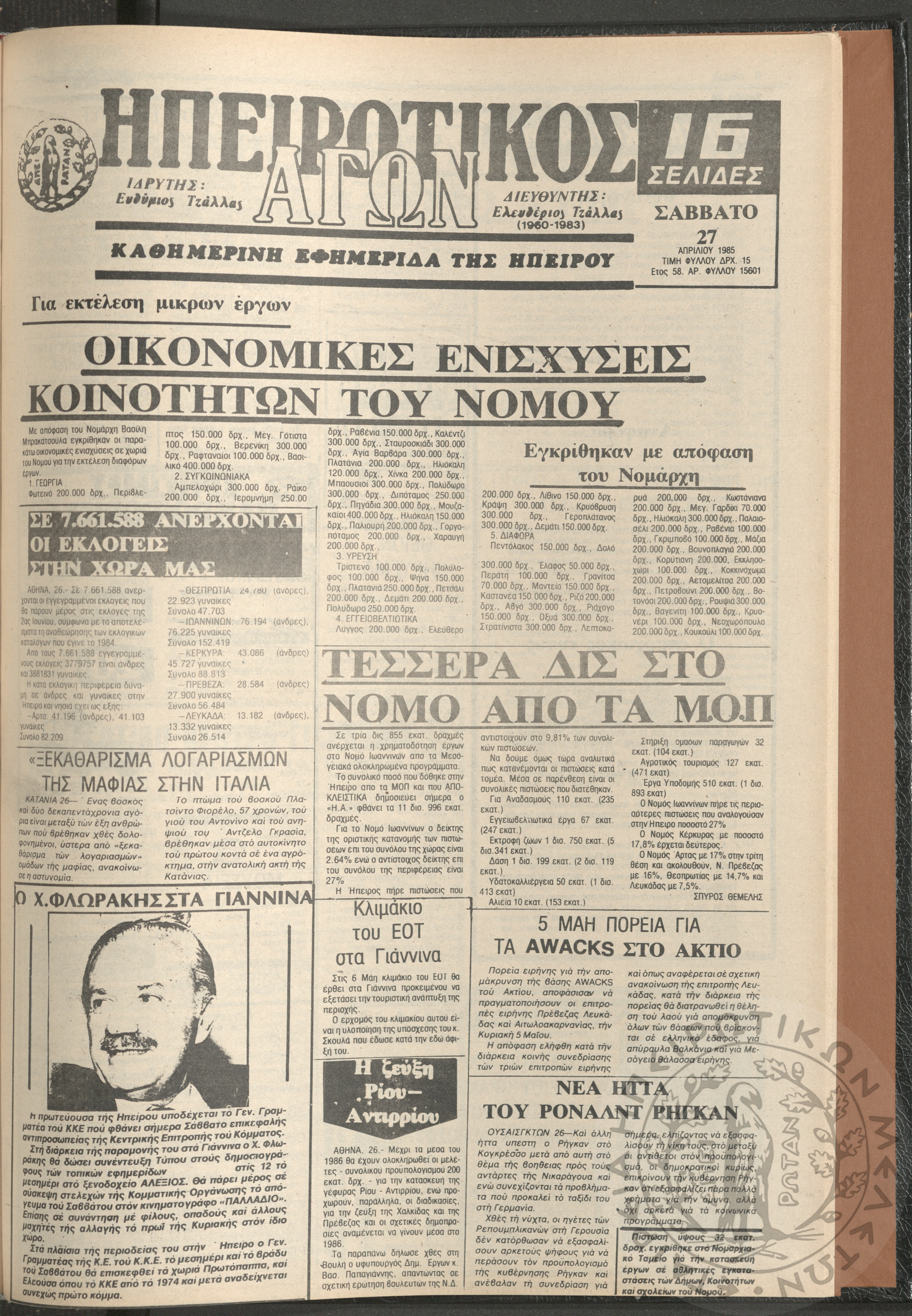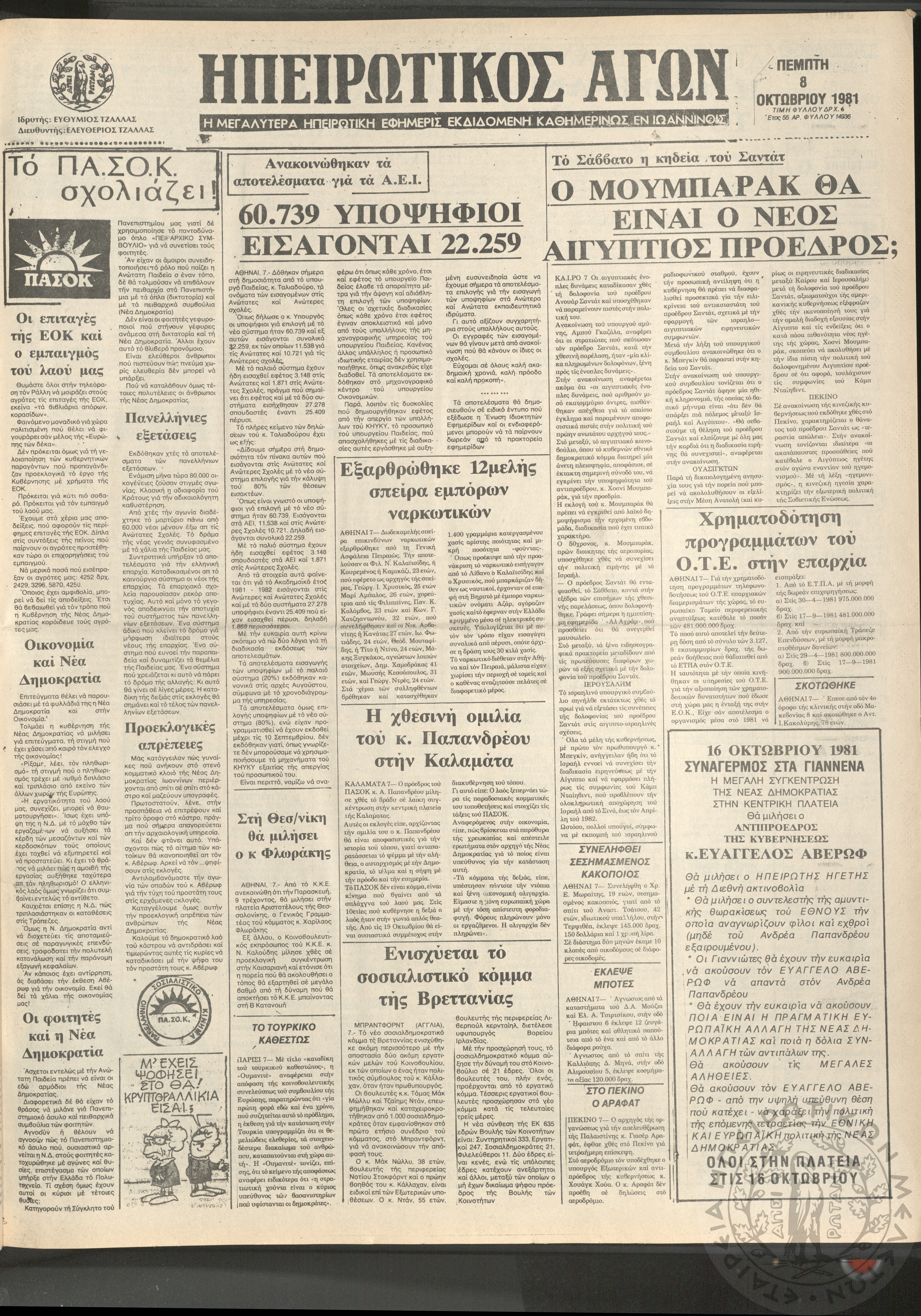 Ηπειρωτικός Αγών: η μεγαλυτέρα Ηπειρωτική εφημερίς εκδιδόμενη καθημερινώς εν Ιωαννίνοις, 1981, φ. 14948Έτος 55, φ. 14948...
