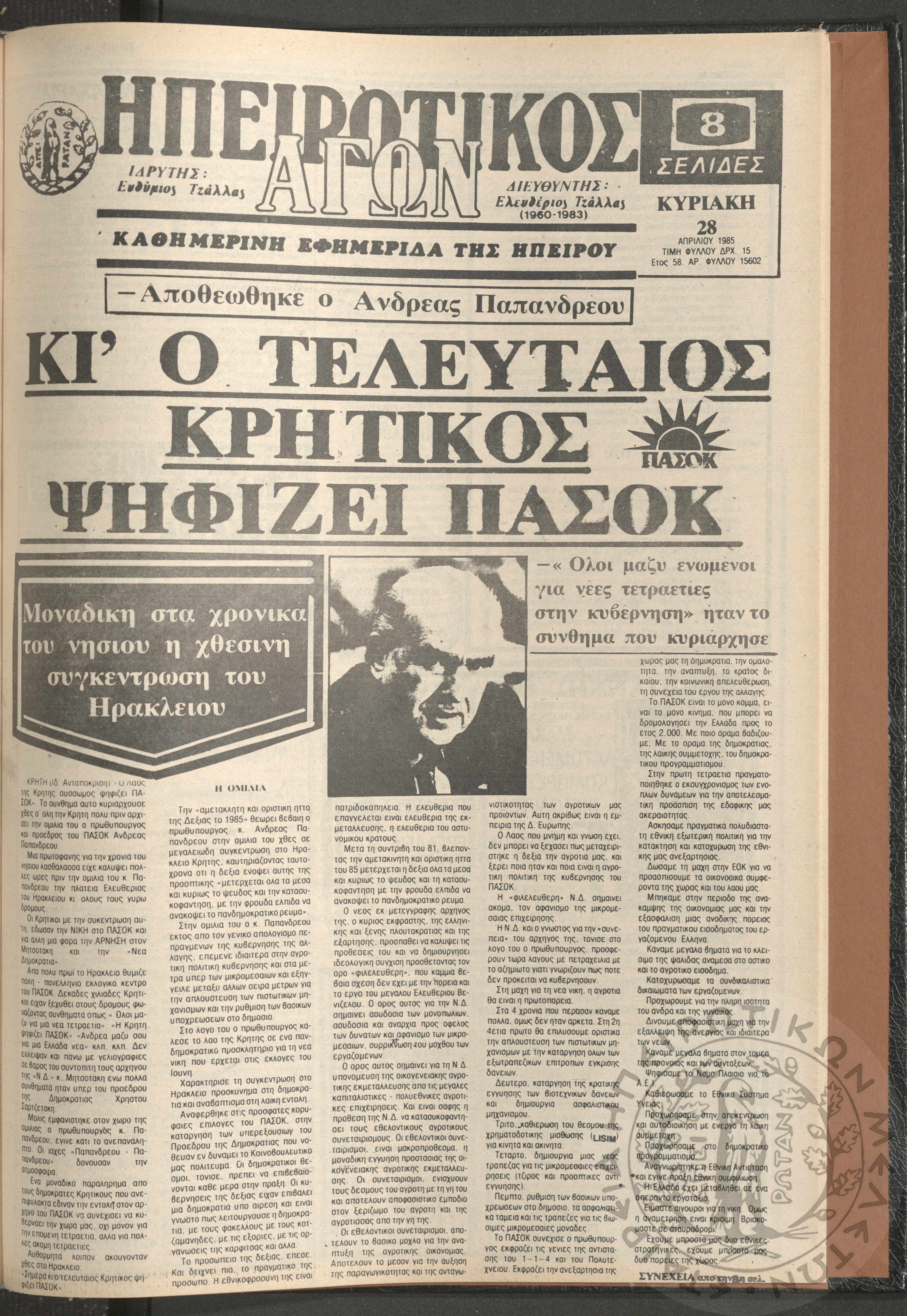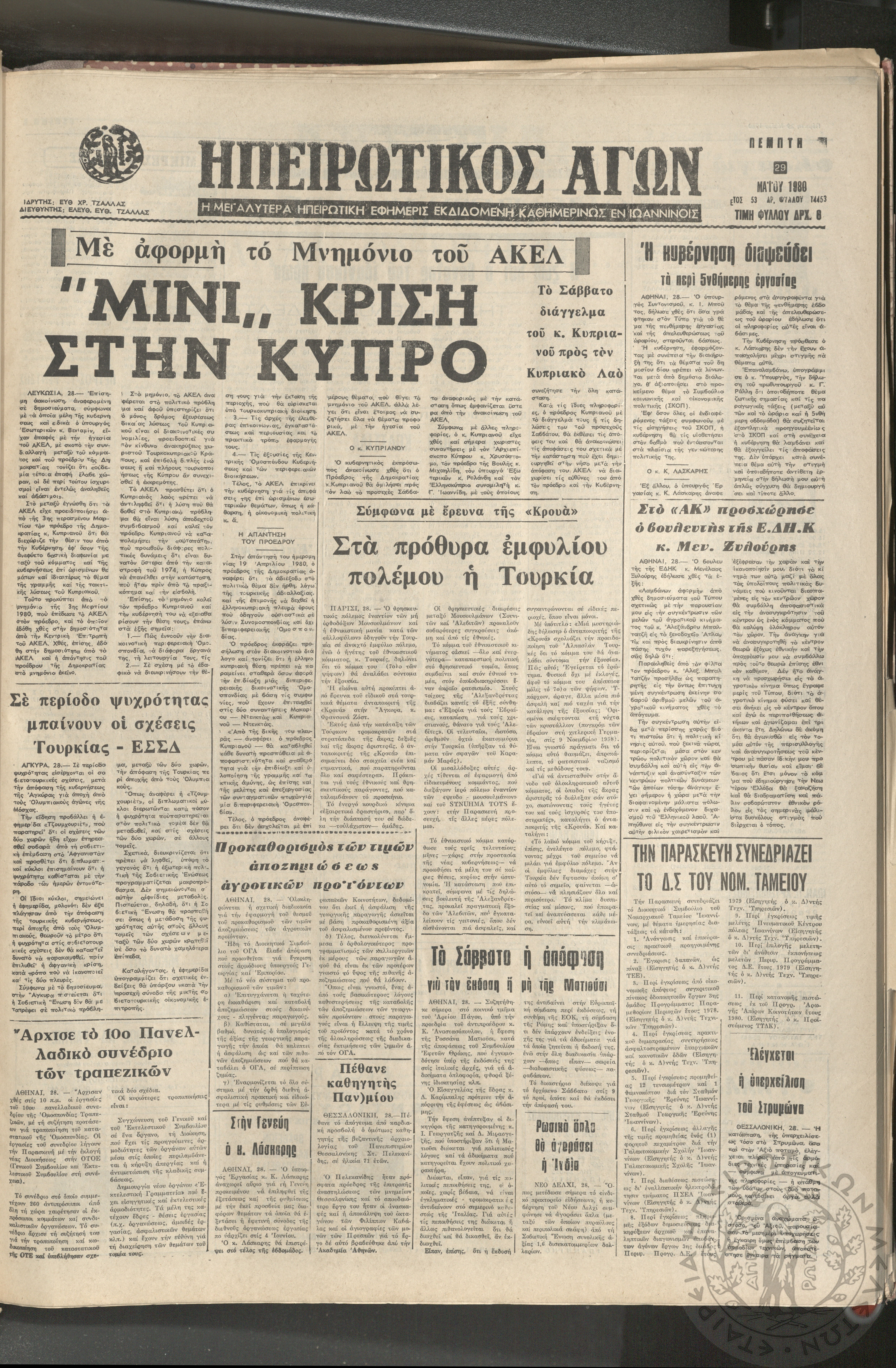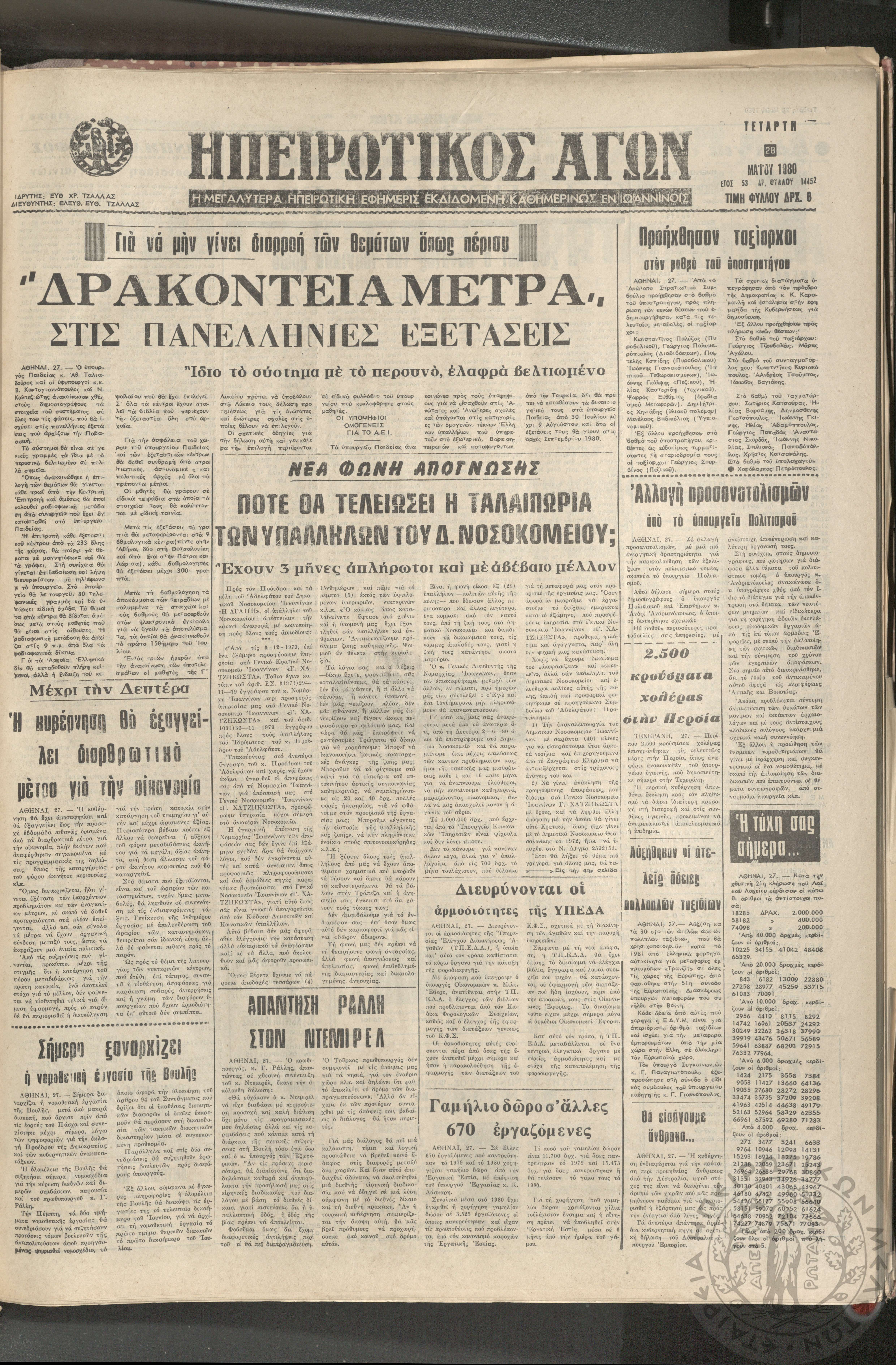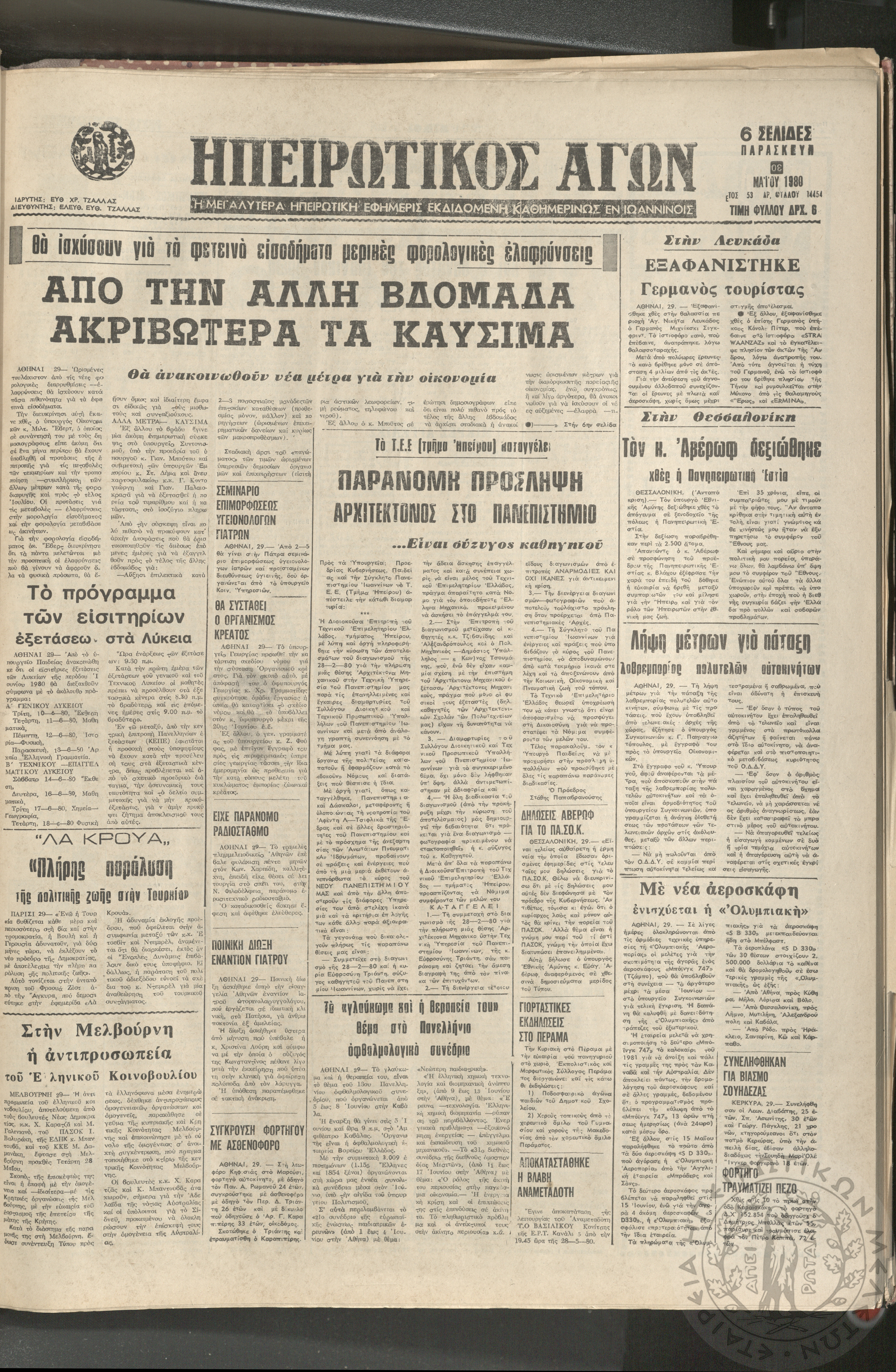 Ηπειρωτικός Αγών: η μεγαλυτέρα Ηπειρωτική εφημερίς εκδιδόμενη καθημερινώς εν Ιωαννίνοις, 1980, φ. 14455Έτος 53, φ. 14455...