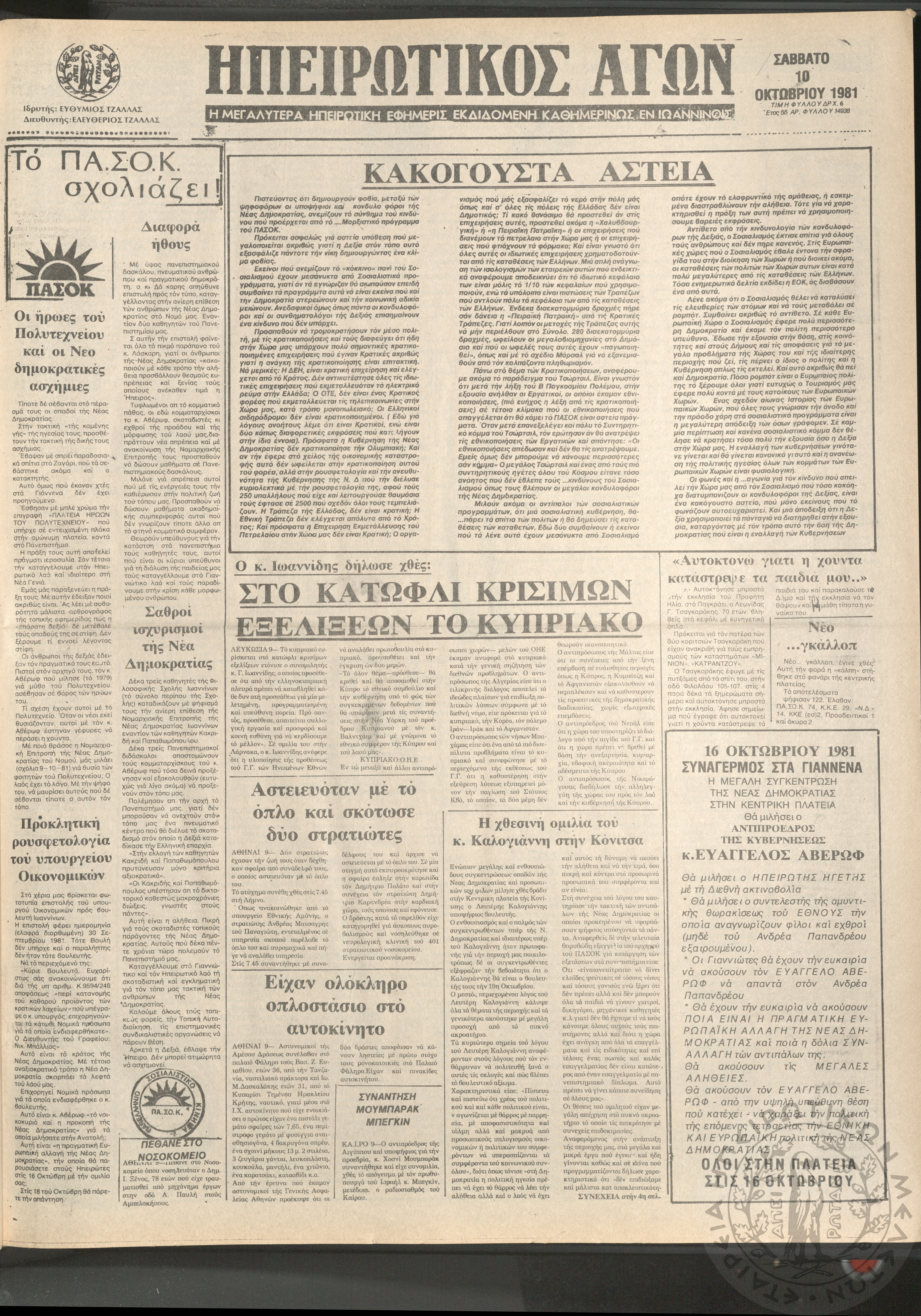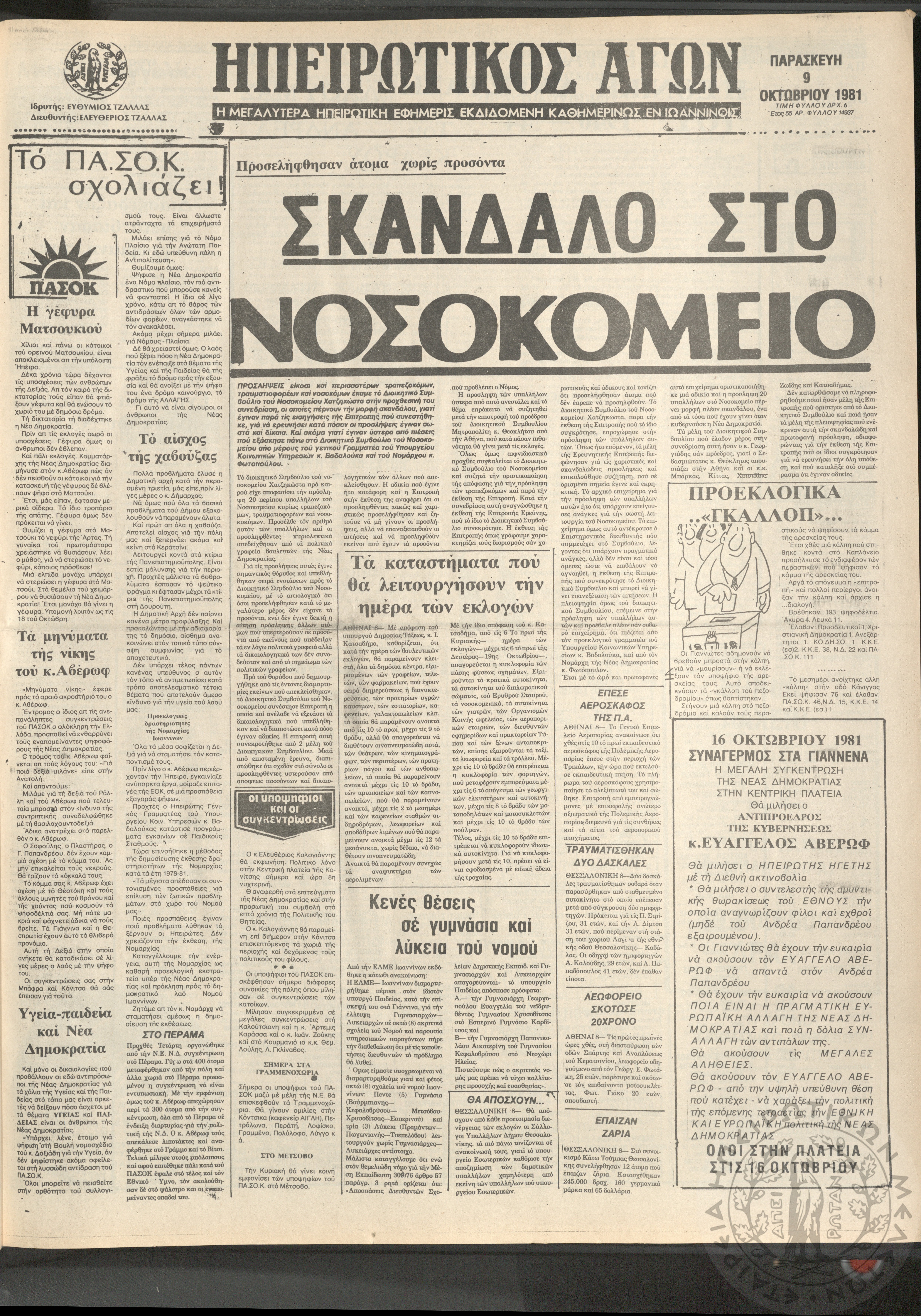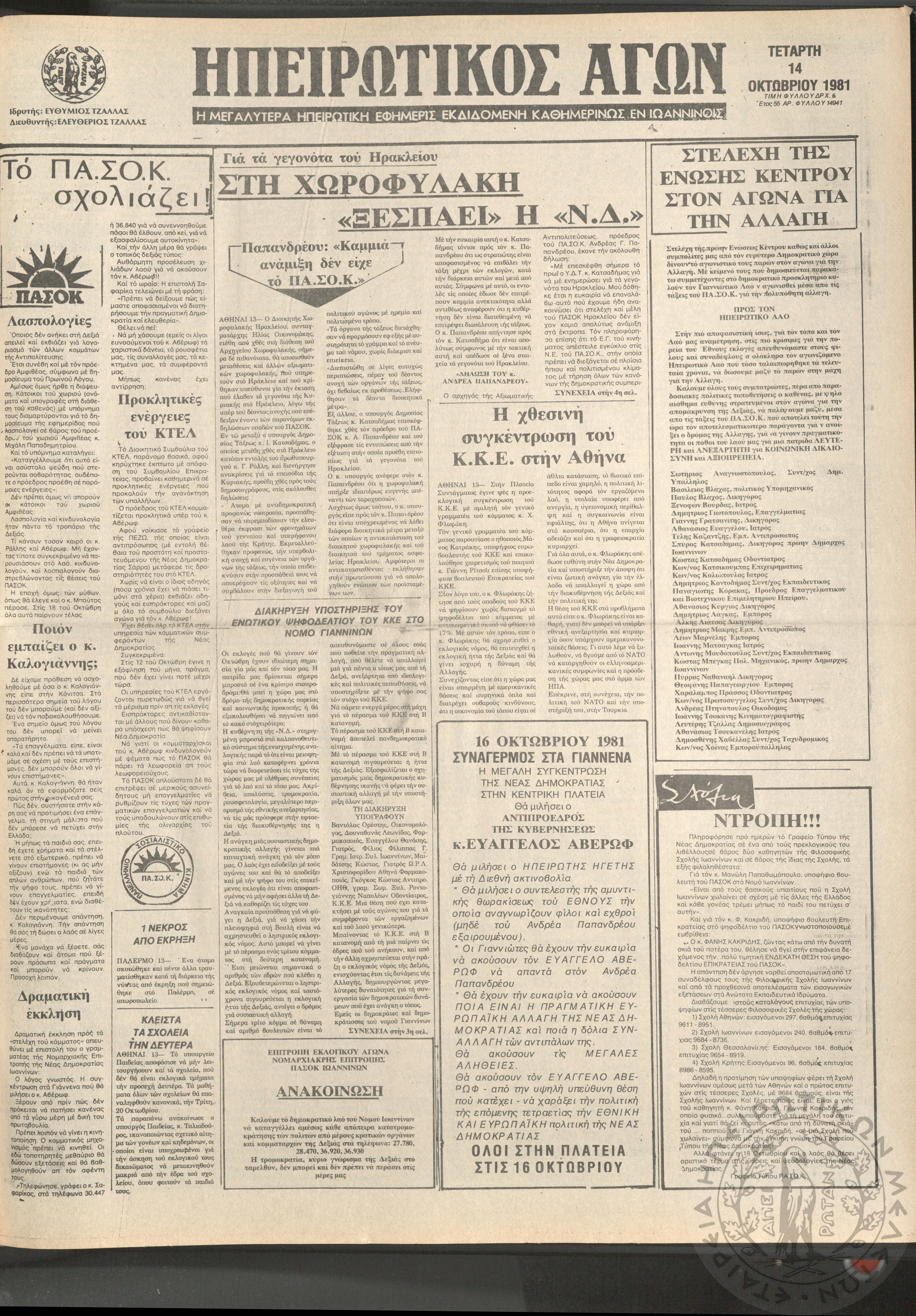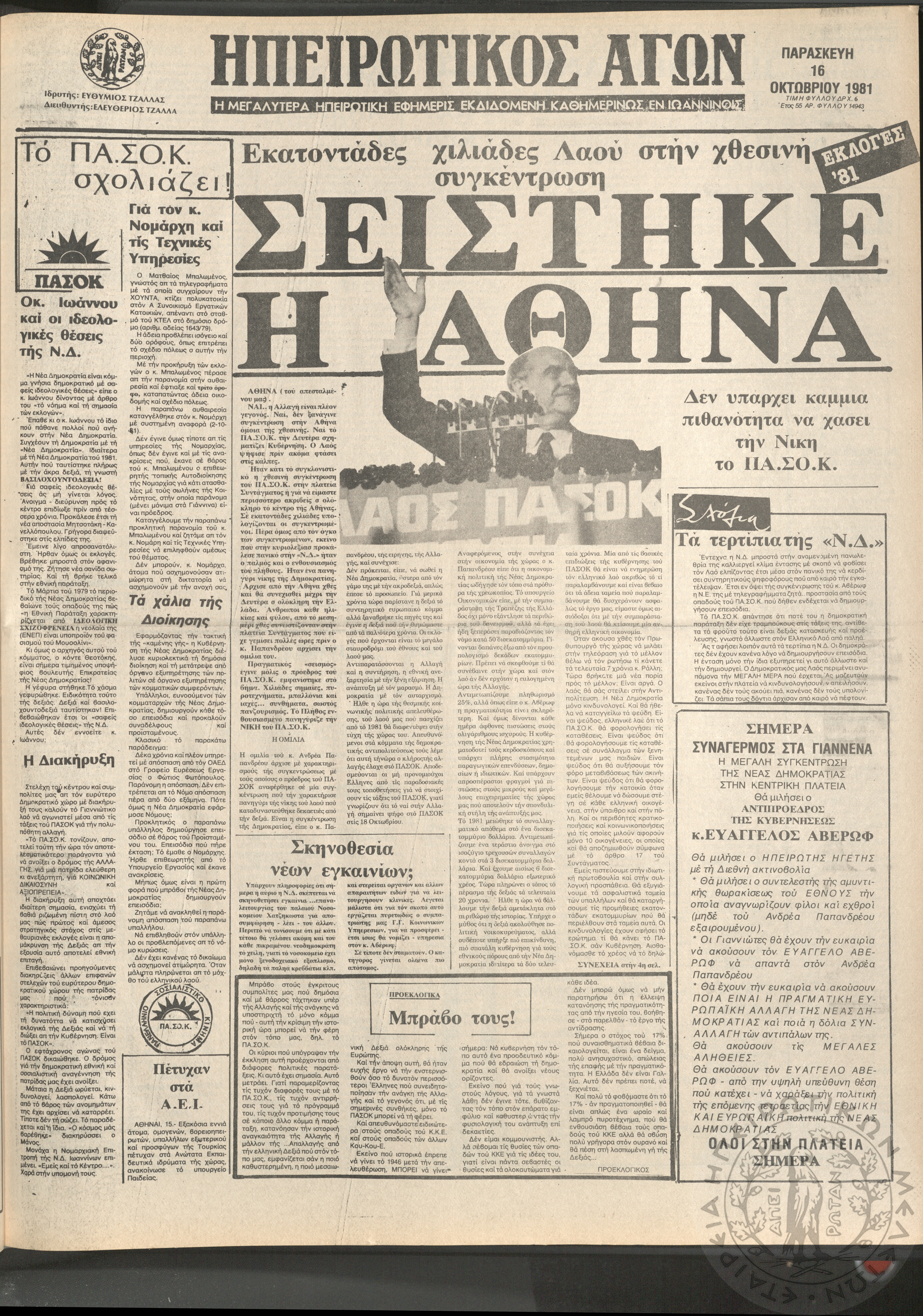 Ηπειρωτικός Αγών: η μεγαλυτέρα Ηπειρωτική εφημερίς εκδιδόμενη καθημερινώς εν Ιωαννίνοις, 1981, φ. 14944Έτος 55, φ. 14944...