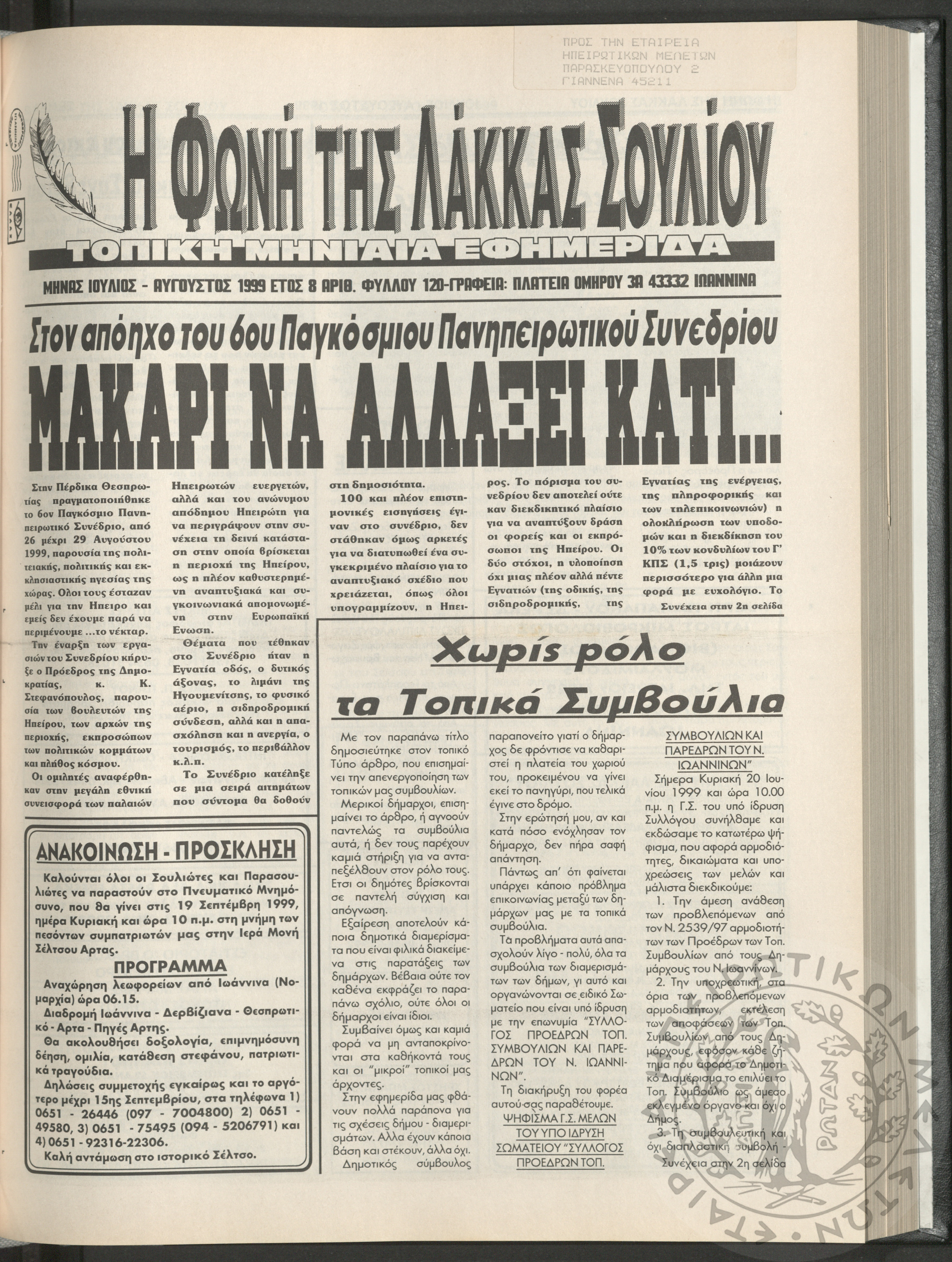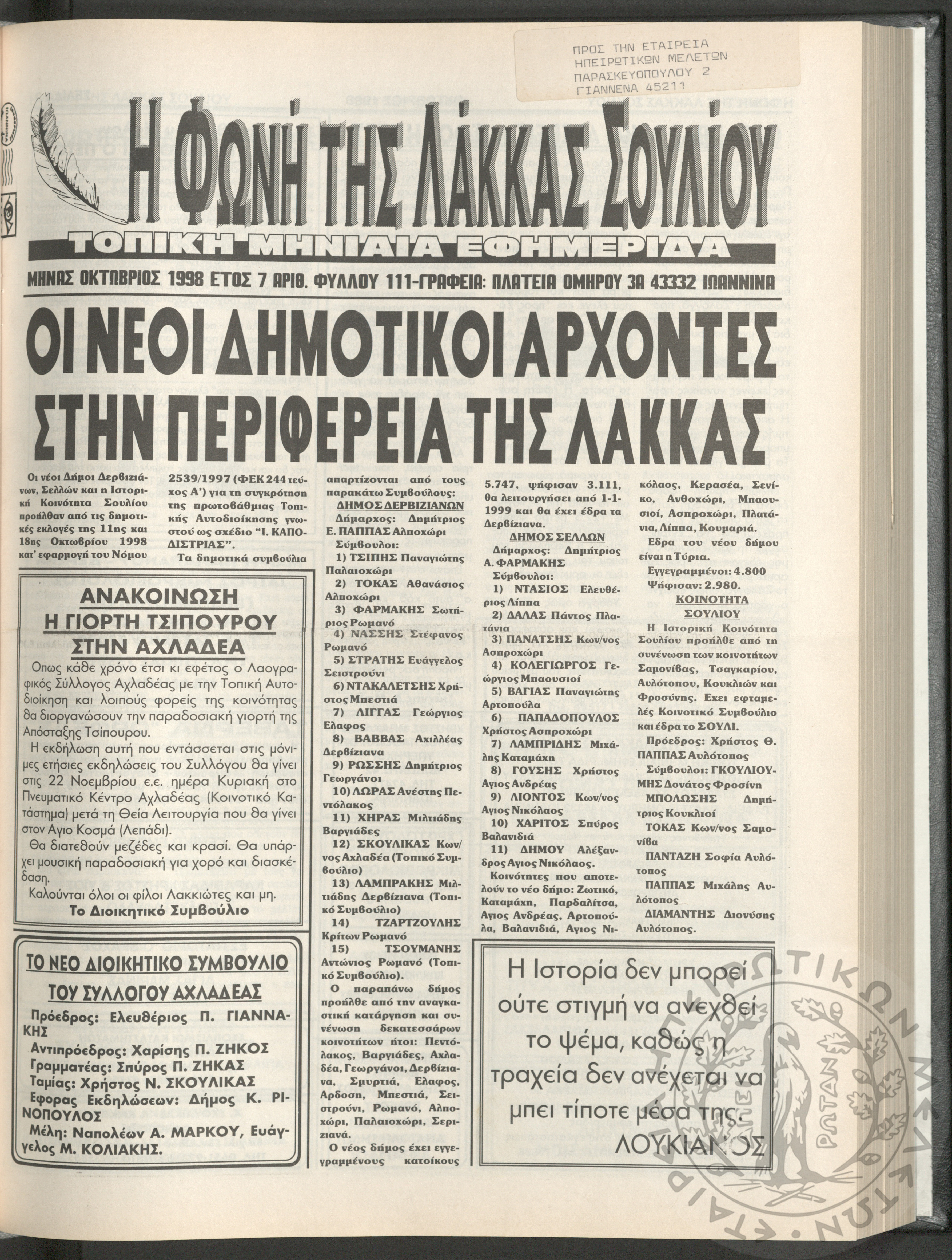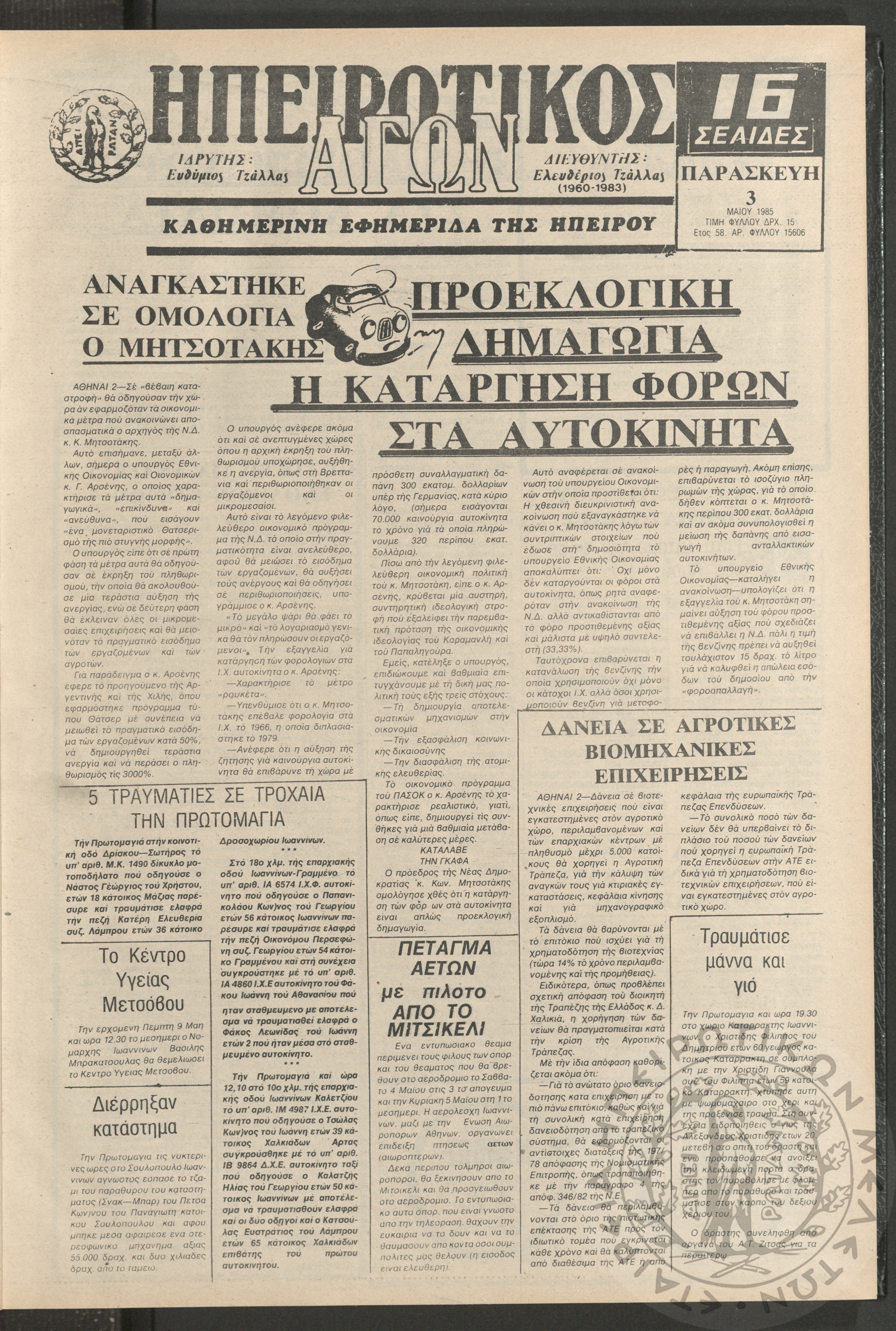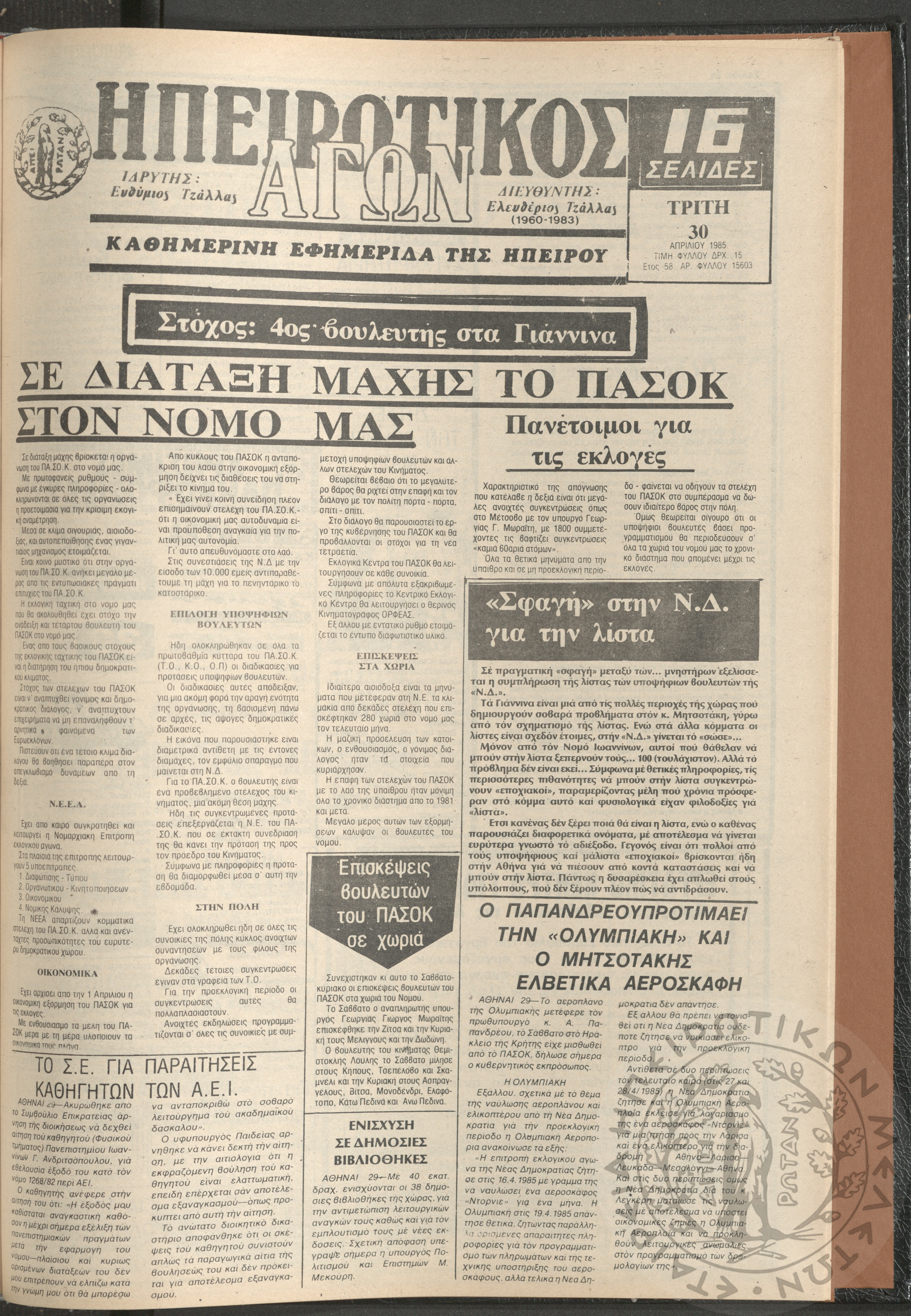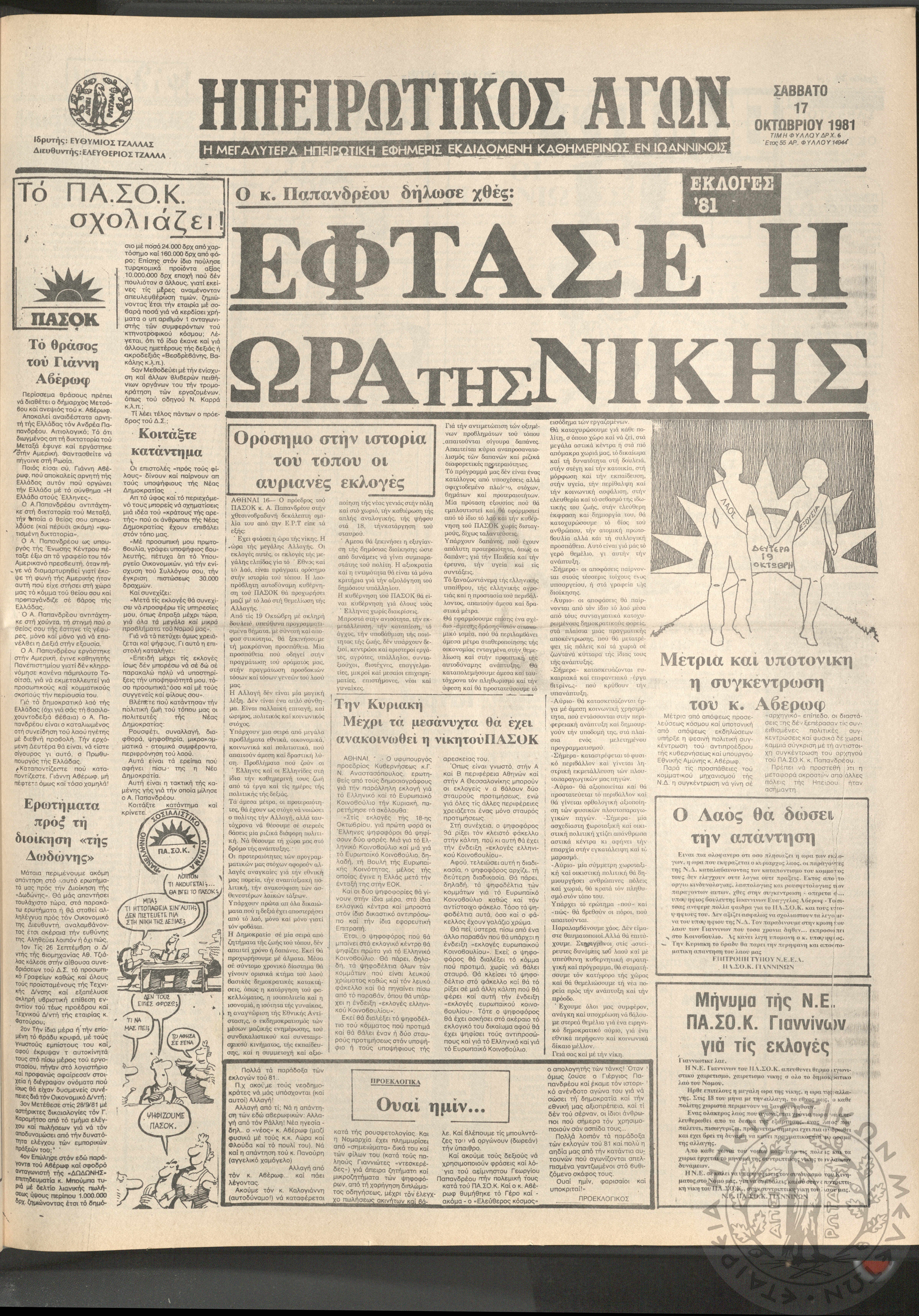 Ηπειρωτικός Αγών: η μεγαλυτέρα Ηπειρωτική εφημερίς εκδιδόμενη καθημερινώς εν Ιωαννίνοις, 1981, φ. 14944Έτος 55, φ. 14944...