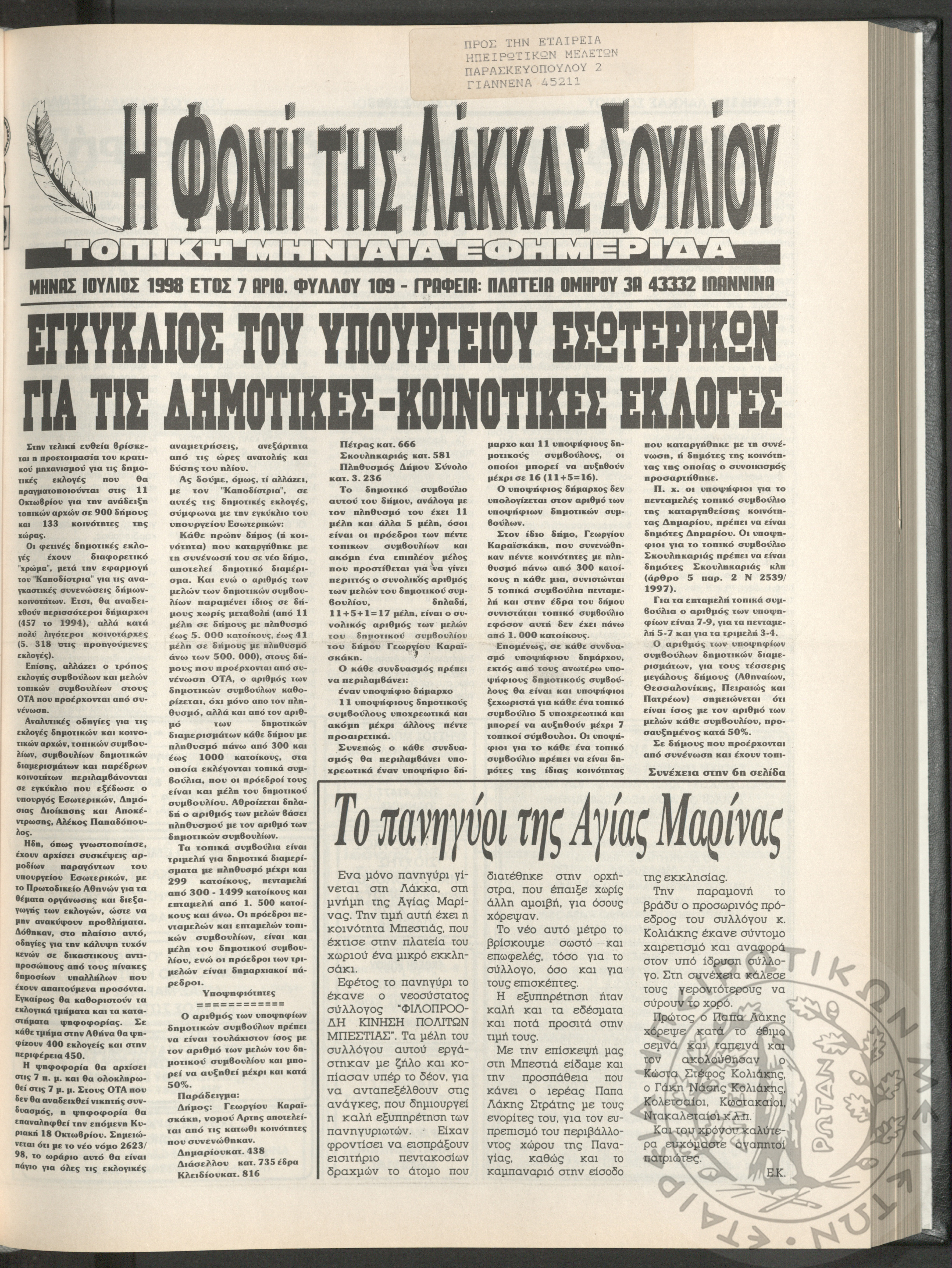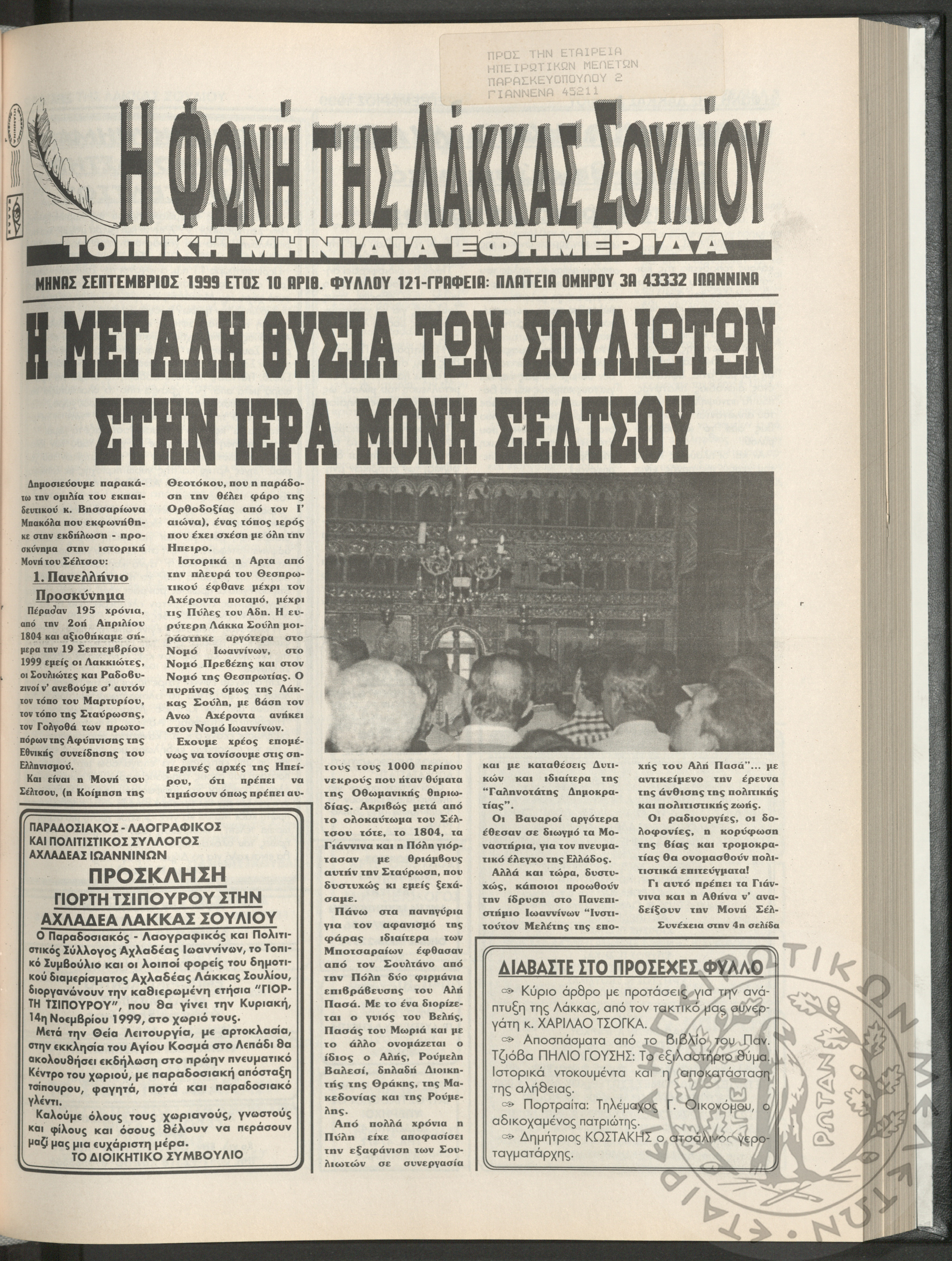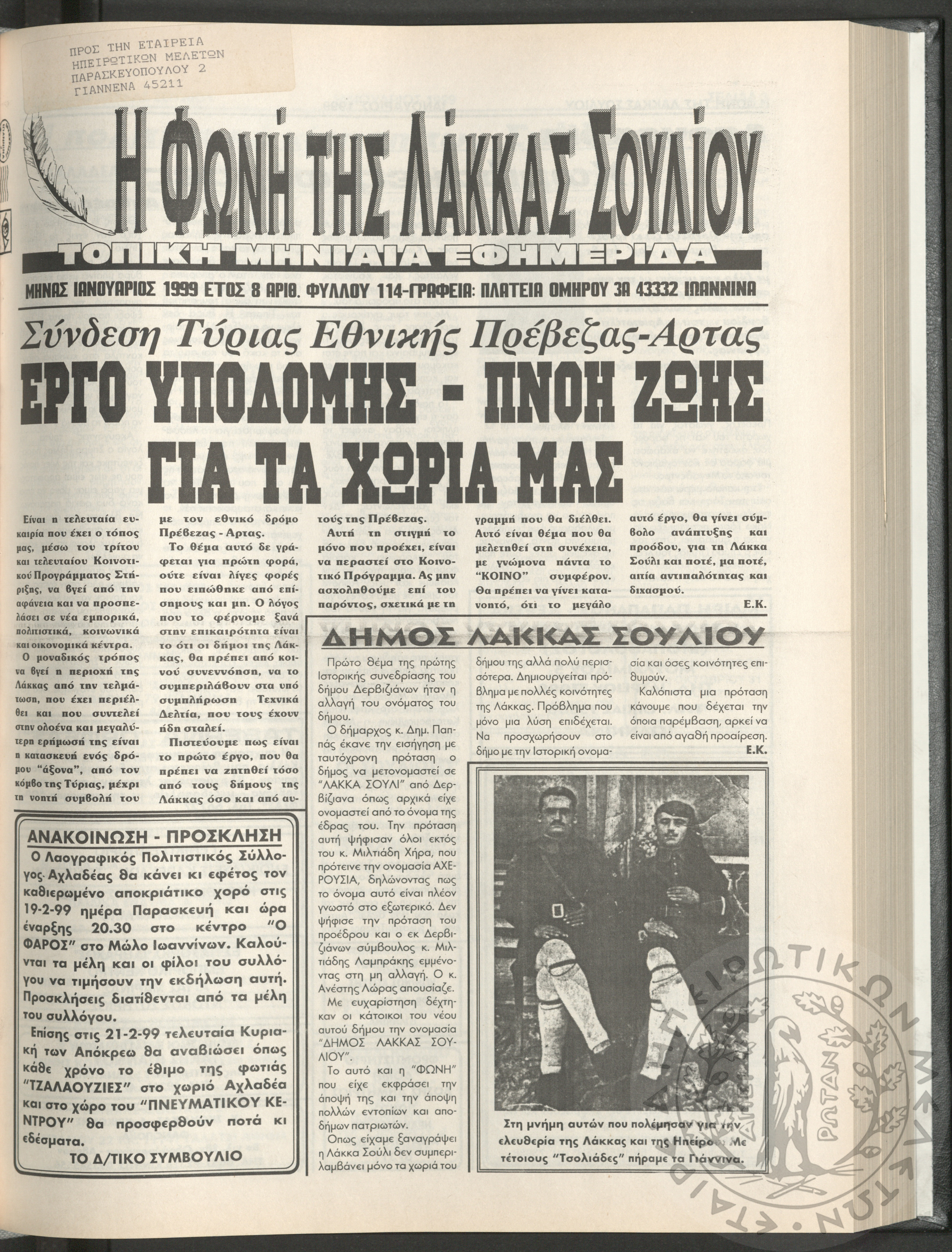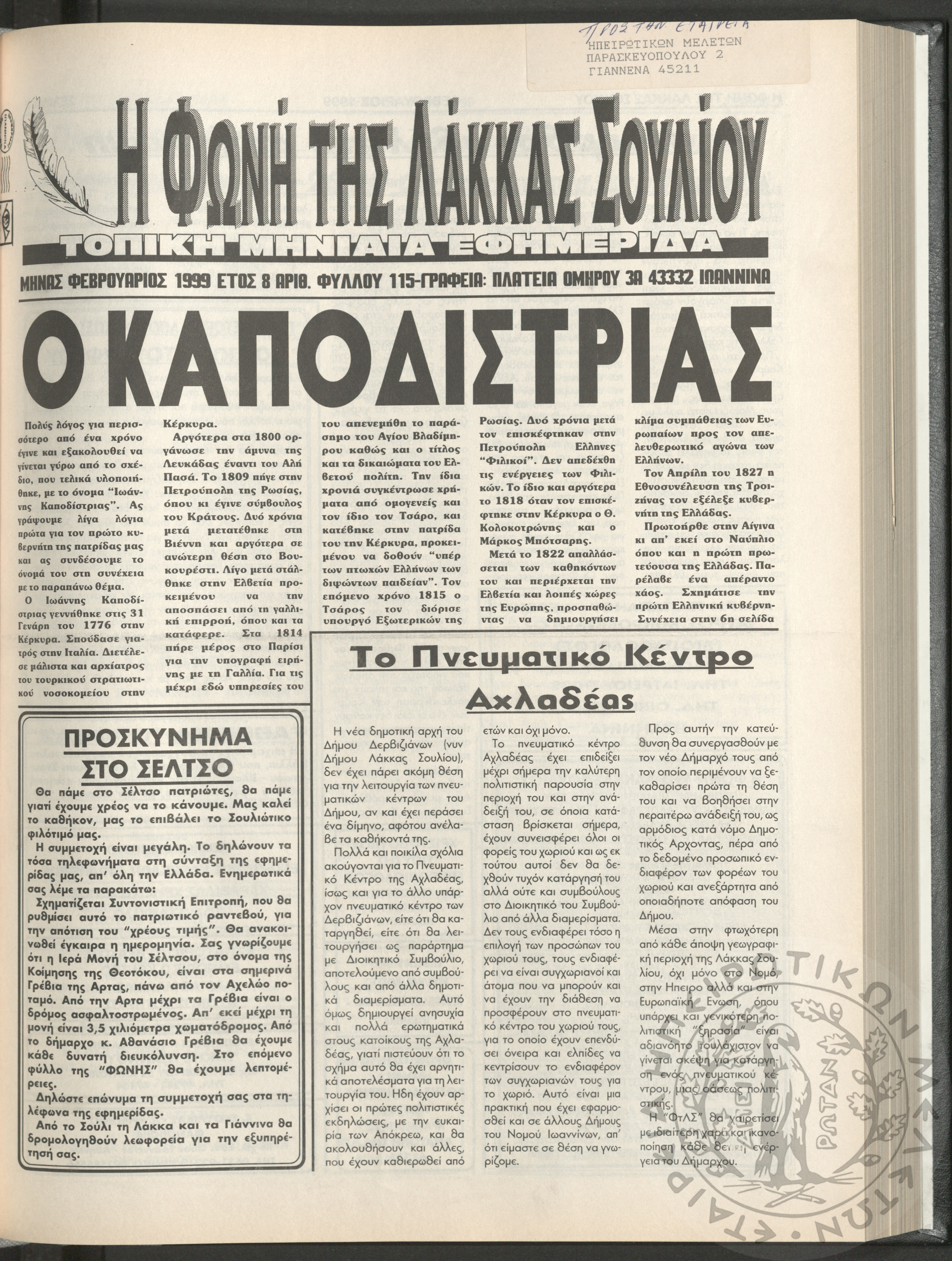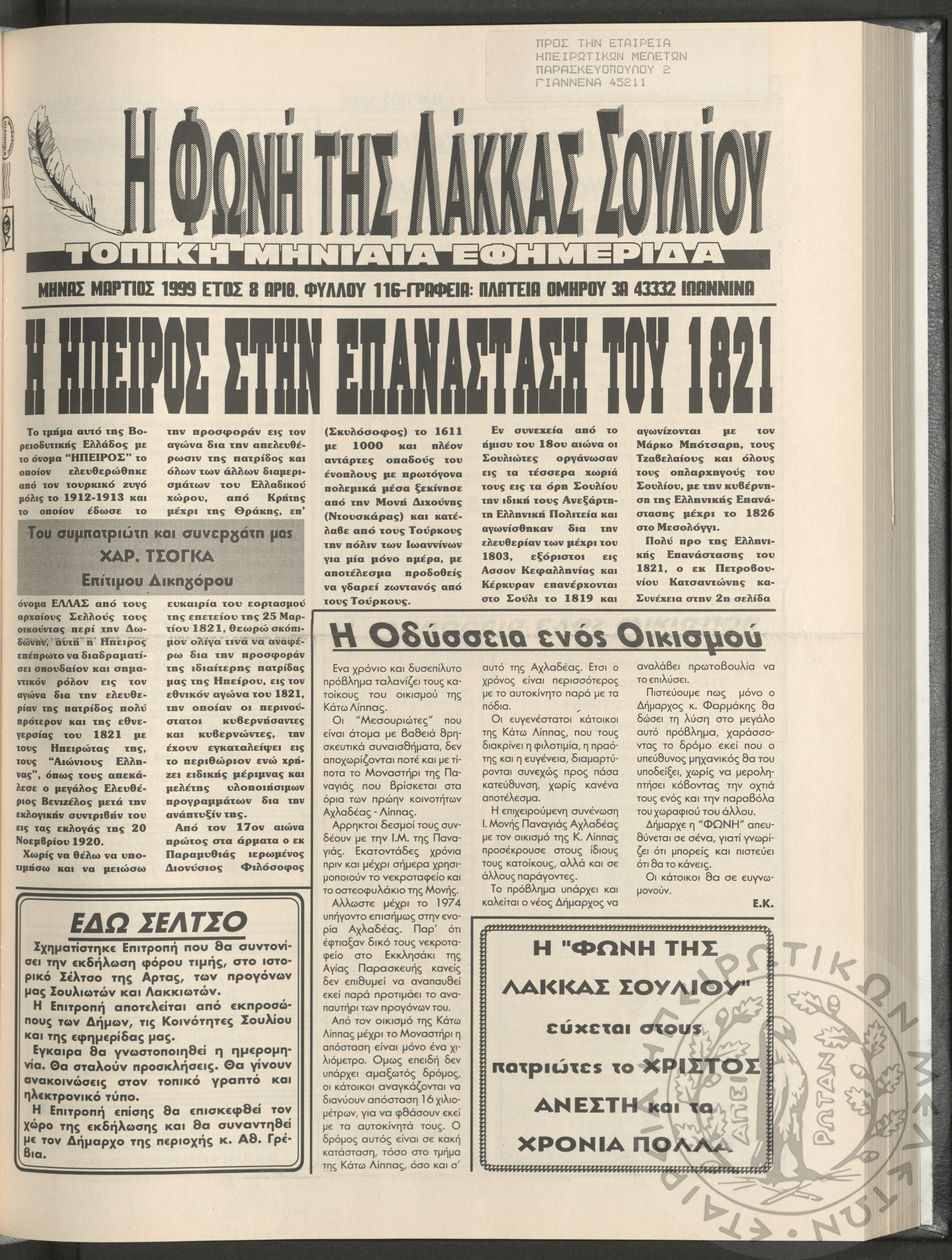 Ηπειρωτικός Αγών: η μεγαλυτέρα Ηπειρωτική εφημερίς εκδιδόμενη καθημερινώς εν Ιωαννίνοις, 1981, φ. 14943Έτος 55, φ. 14943...