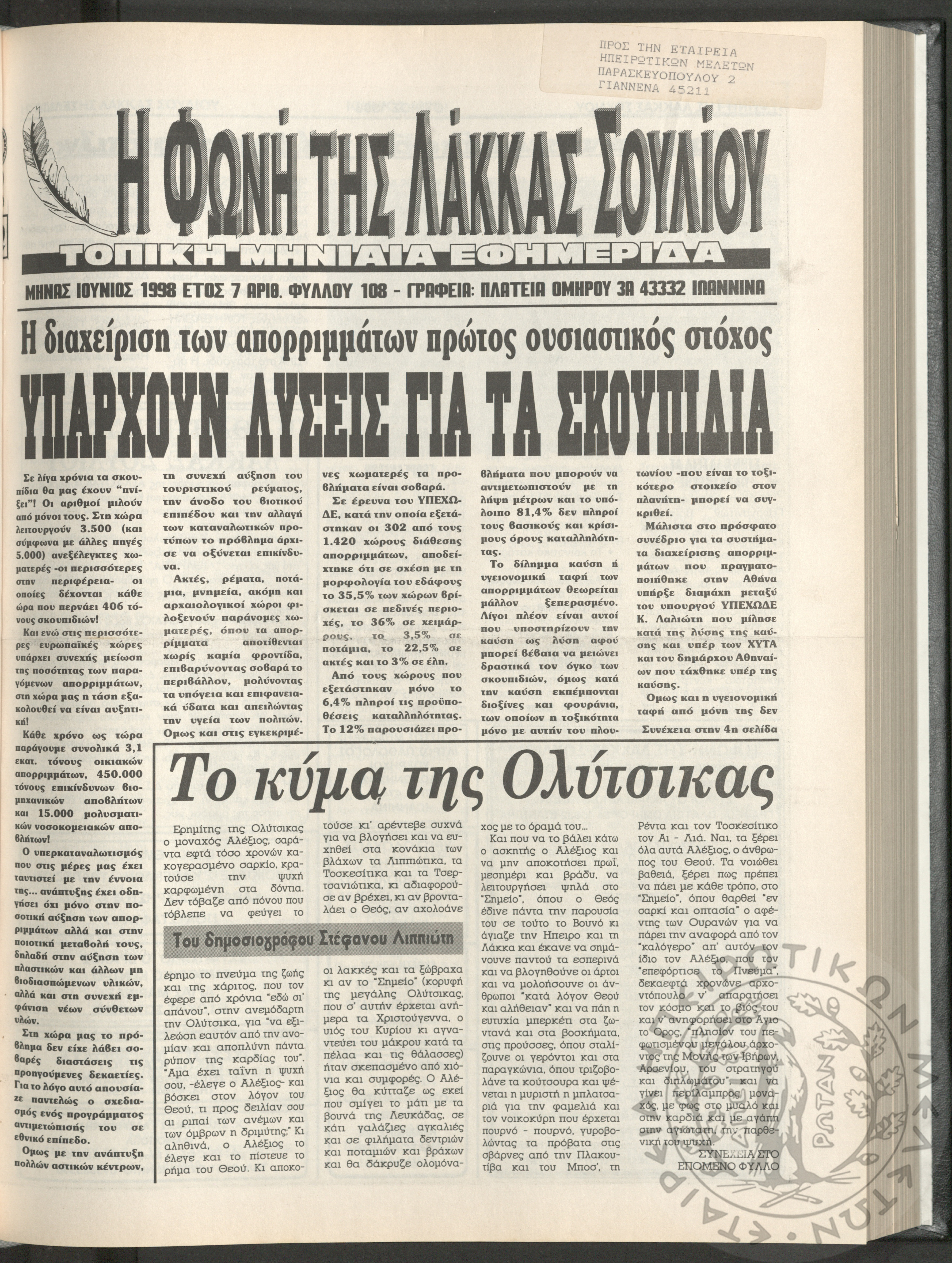 Ηπειρωτικός Αγών: η μεγαλυτέρα Ηπειρωτική εφημερίς εκδιδόμενη καθημερινώς εν Ιωαννίνοις, 1980, φ. 14457Έτος 53, φ. 14457...