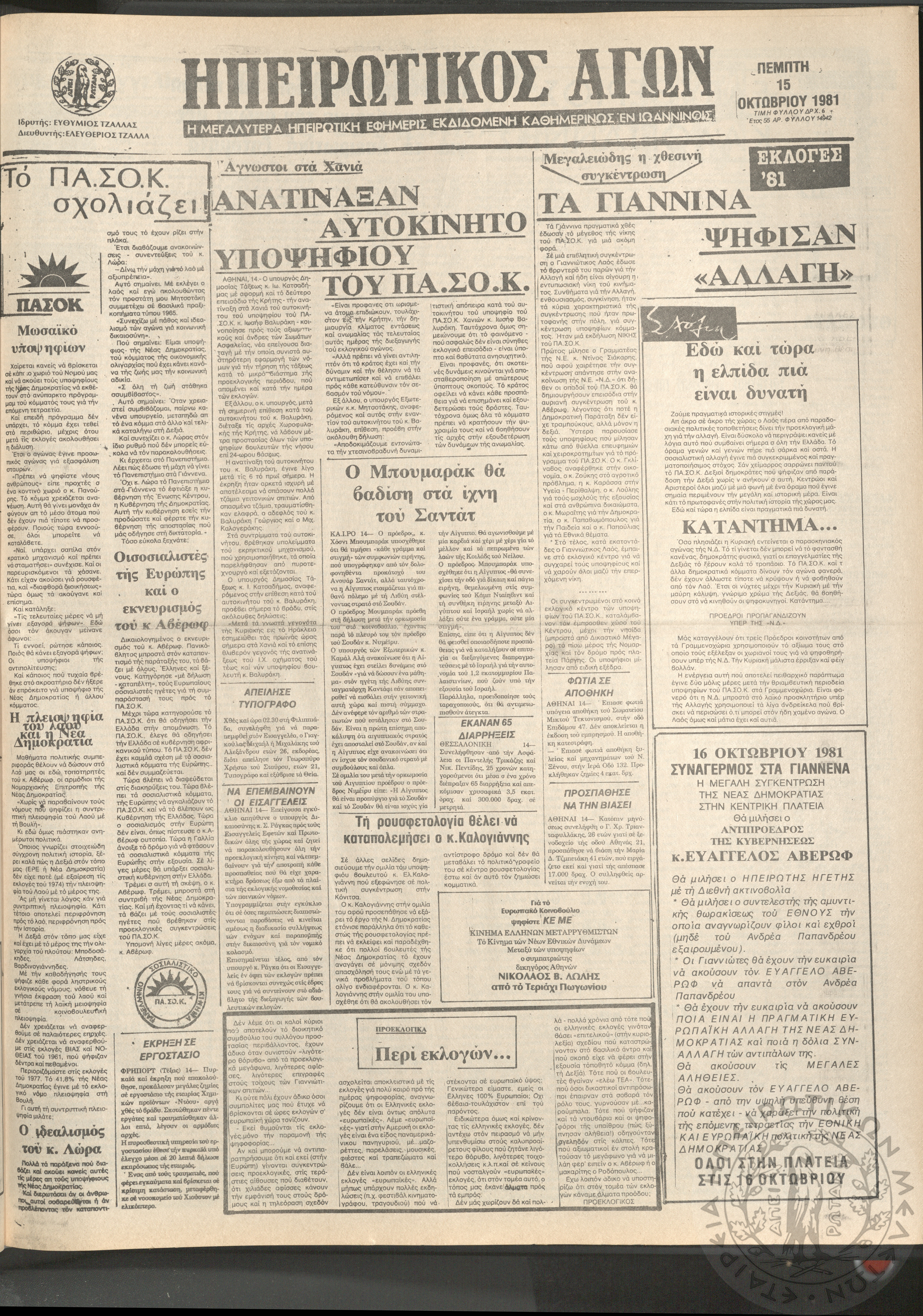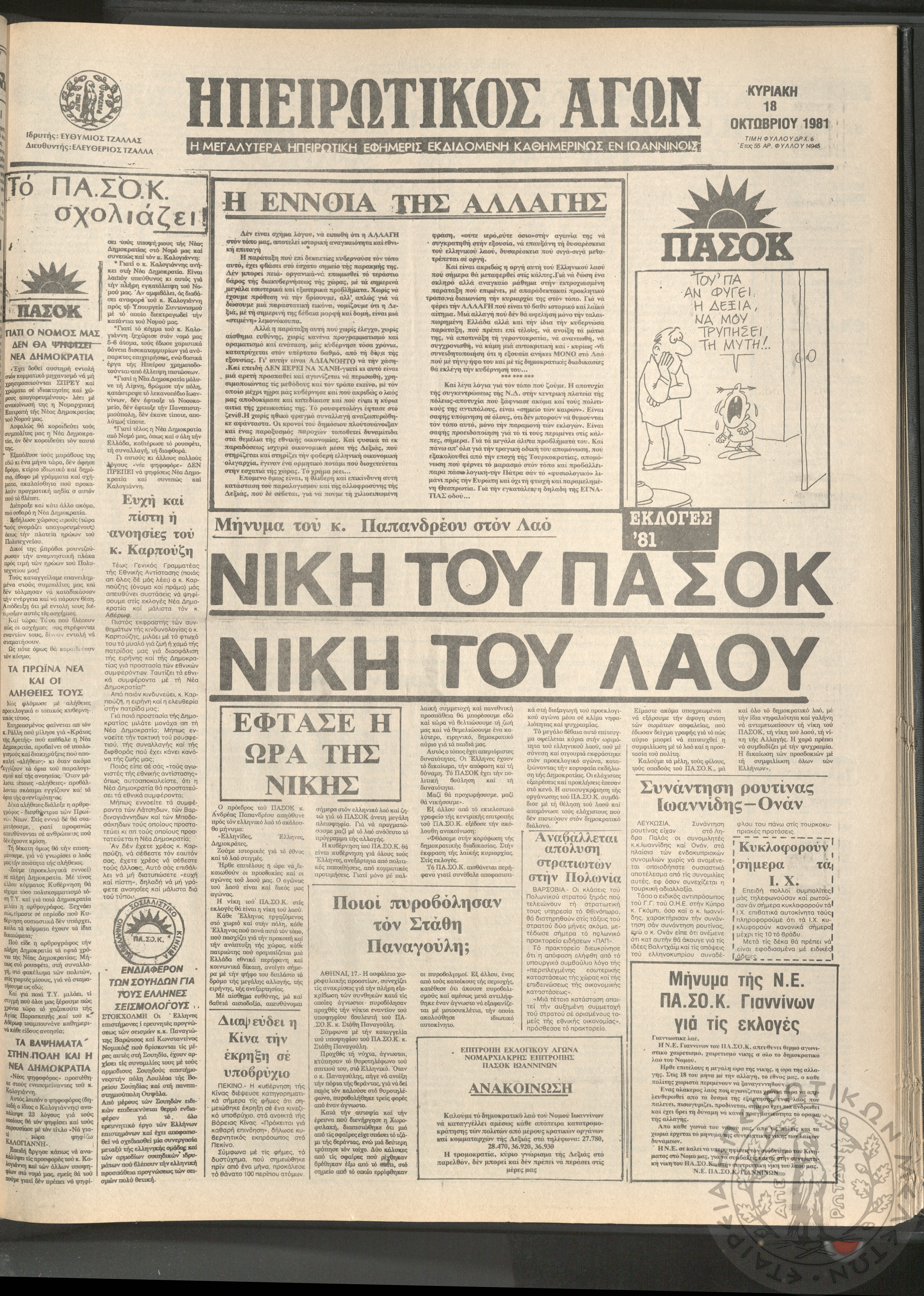 Ηπειρωτικός Αγών: η μεγαλυτέρα Ηπειρωτική εφημερίς εκδιδόμενη καθημερινώς εν Ιωαννίνοις, 1981, φ. 14946Έτος 55, φ. 14946...