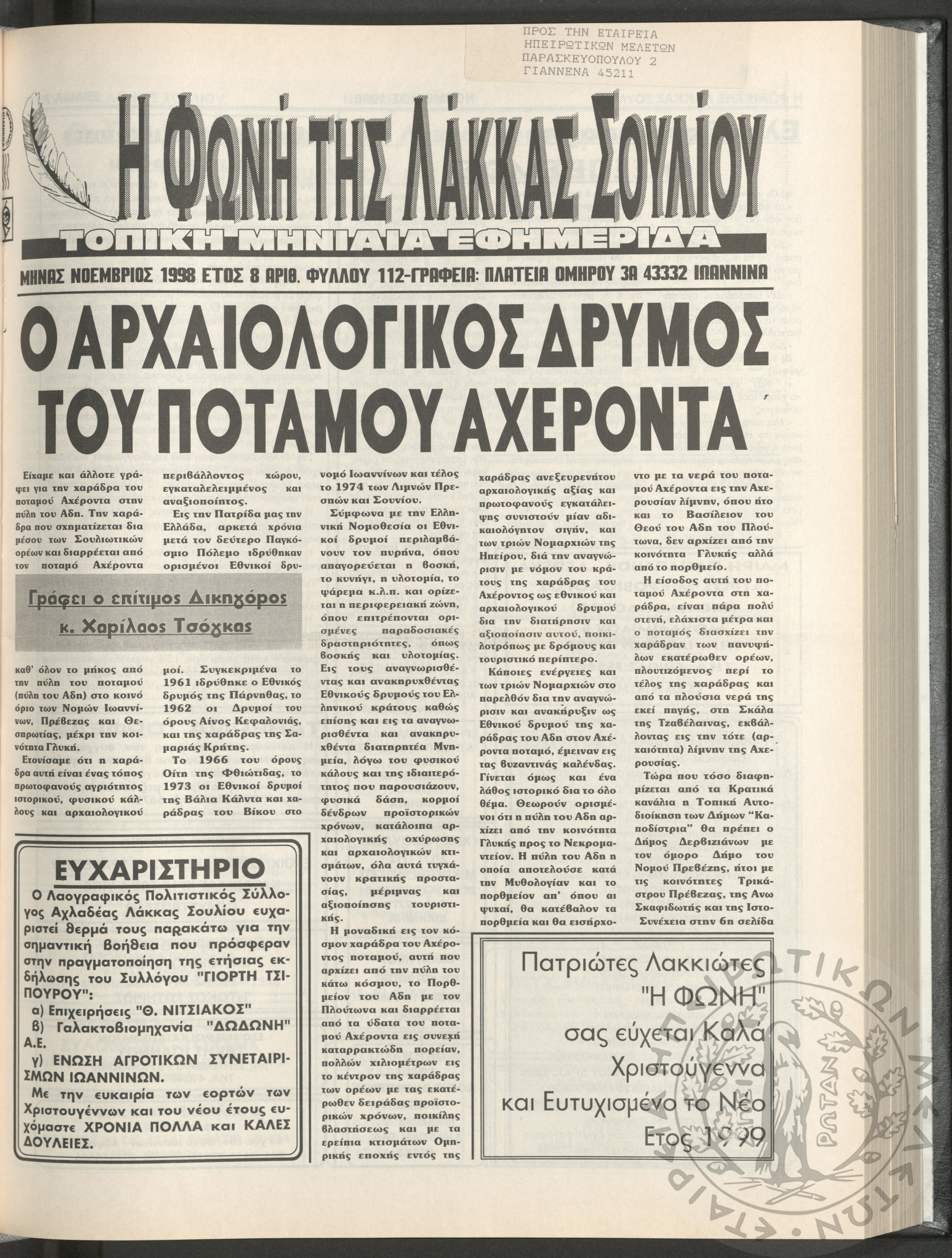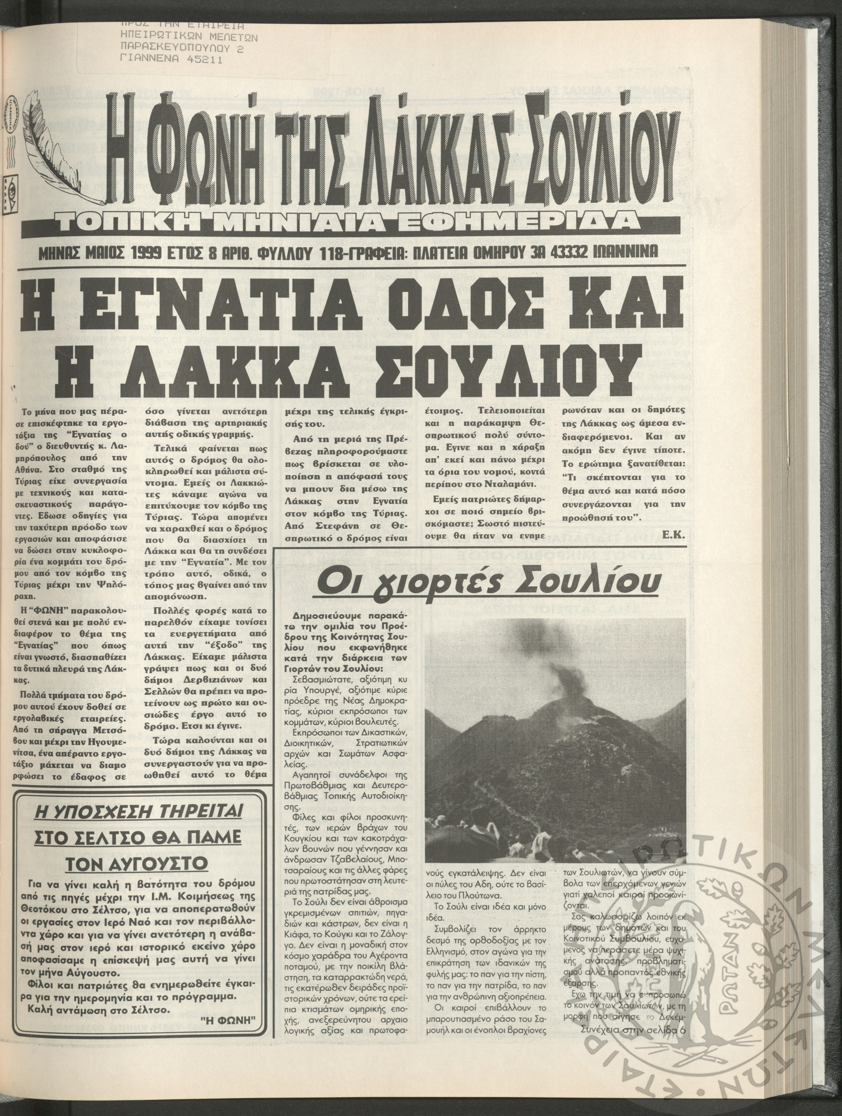 Ηπειρωτικός Αγών: η μεγαλυτέρα Ηπειρωτική εφημερίς εκδιδόμενη καθημερινώς εν Ιωαννίνοις, 1981, φ. 14941Έτος 55, φ. 14941...