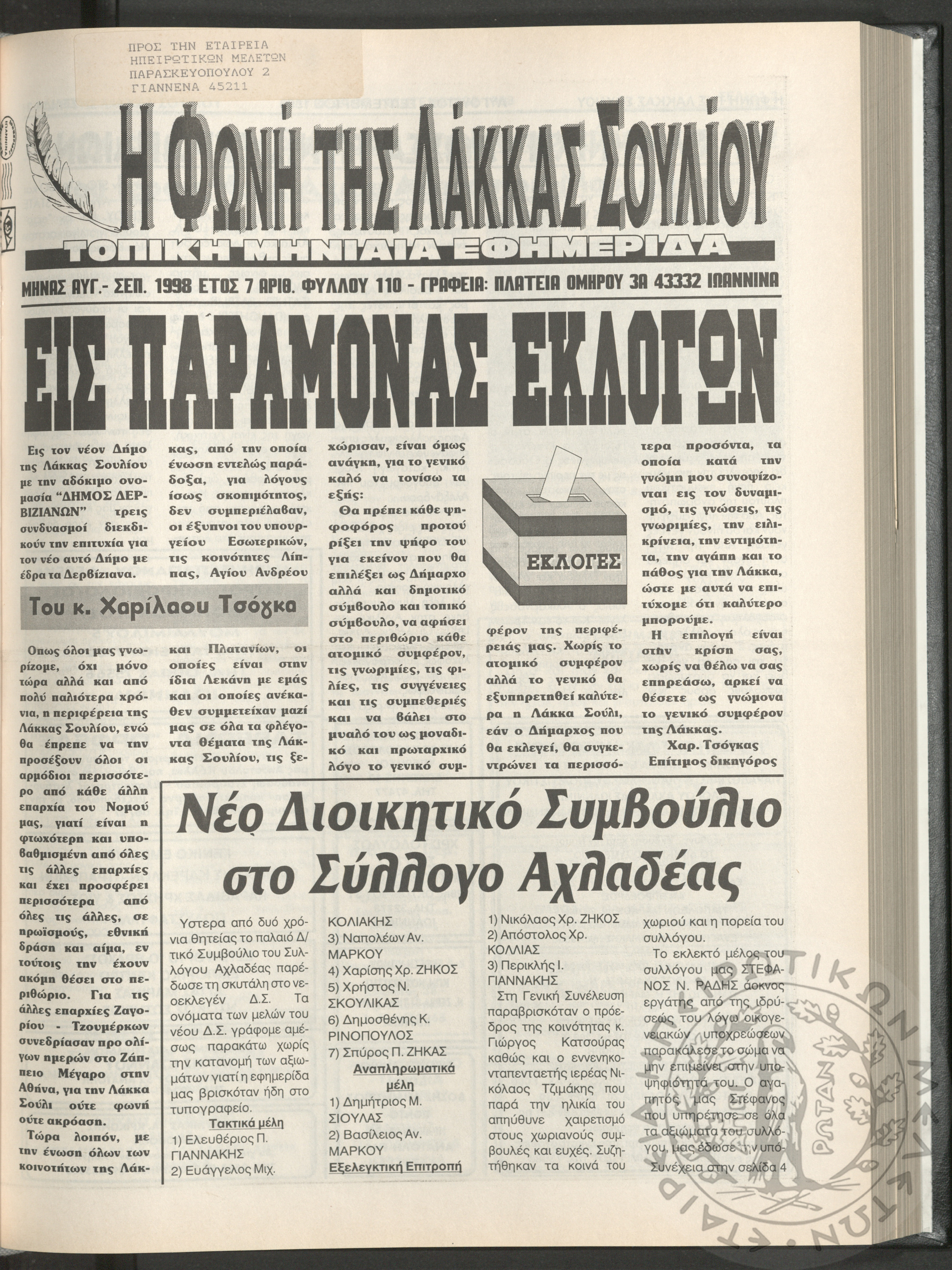 Ηπειρωτικός Αγών: η μεγαλυτέρα Ηπειρωτική εφημερίς εκδιδόμενη καθημερινώς εν Ιωαννίνοις, 1981, φ. 14945Έτος 55, φ. 14945...