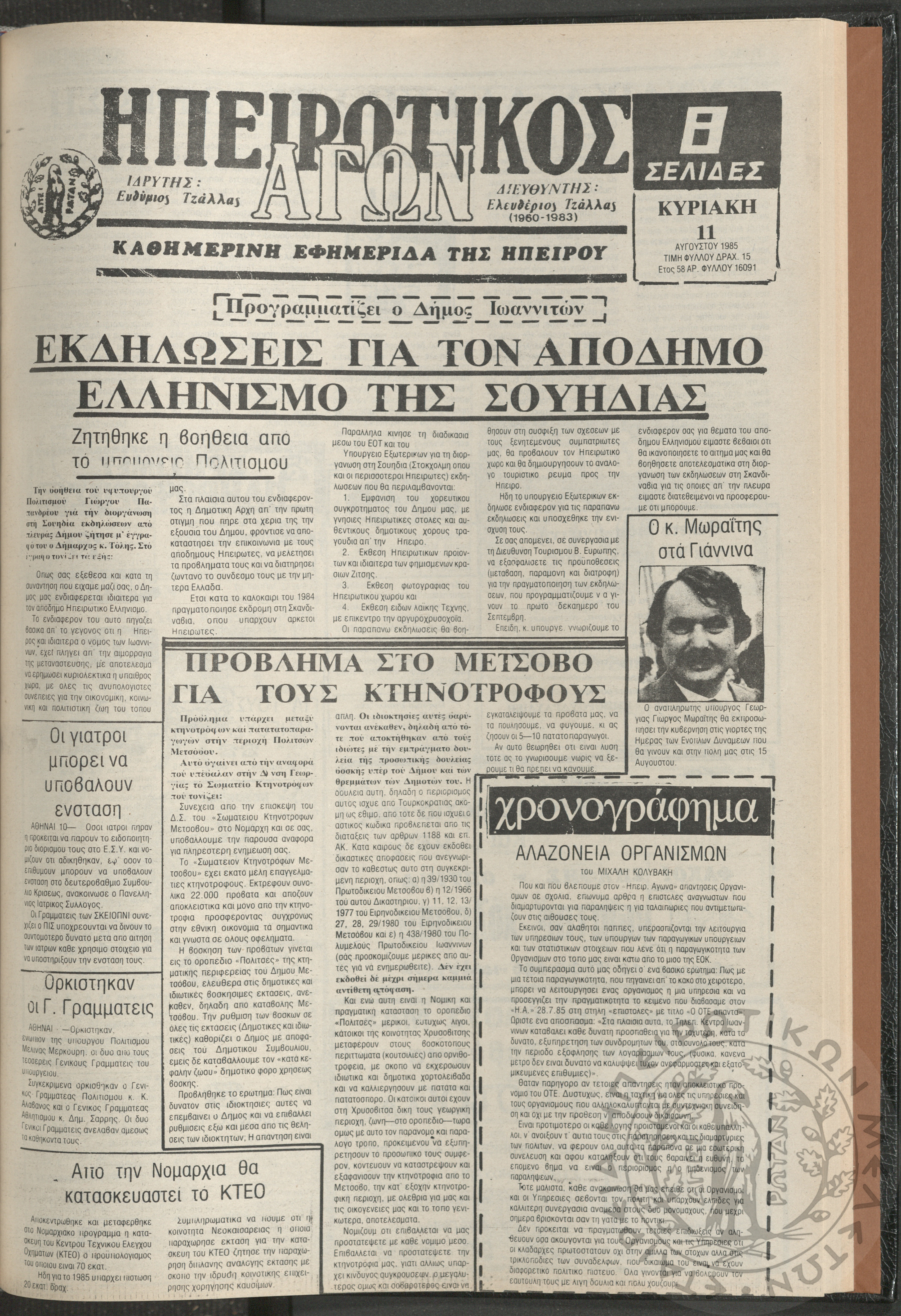 Ηπειρωτικός Αγών: η μεγαλυτέρα Ηπειρωτική εφημερίς εκδιδόμενη καθημερινώς εν Ιωαννίνοις, 1980, φ. 14485Έτος 53, φ. 14485...