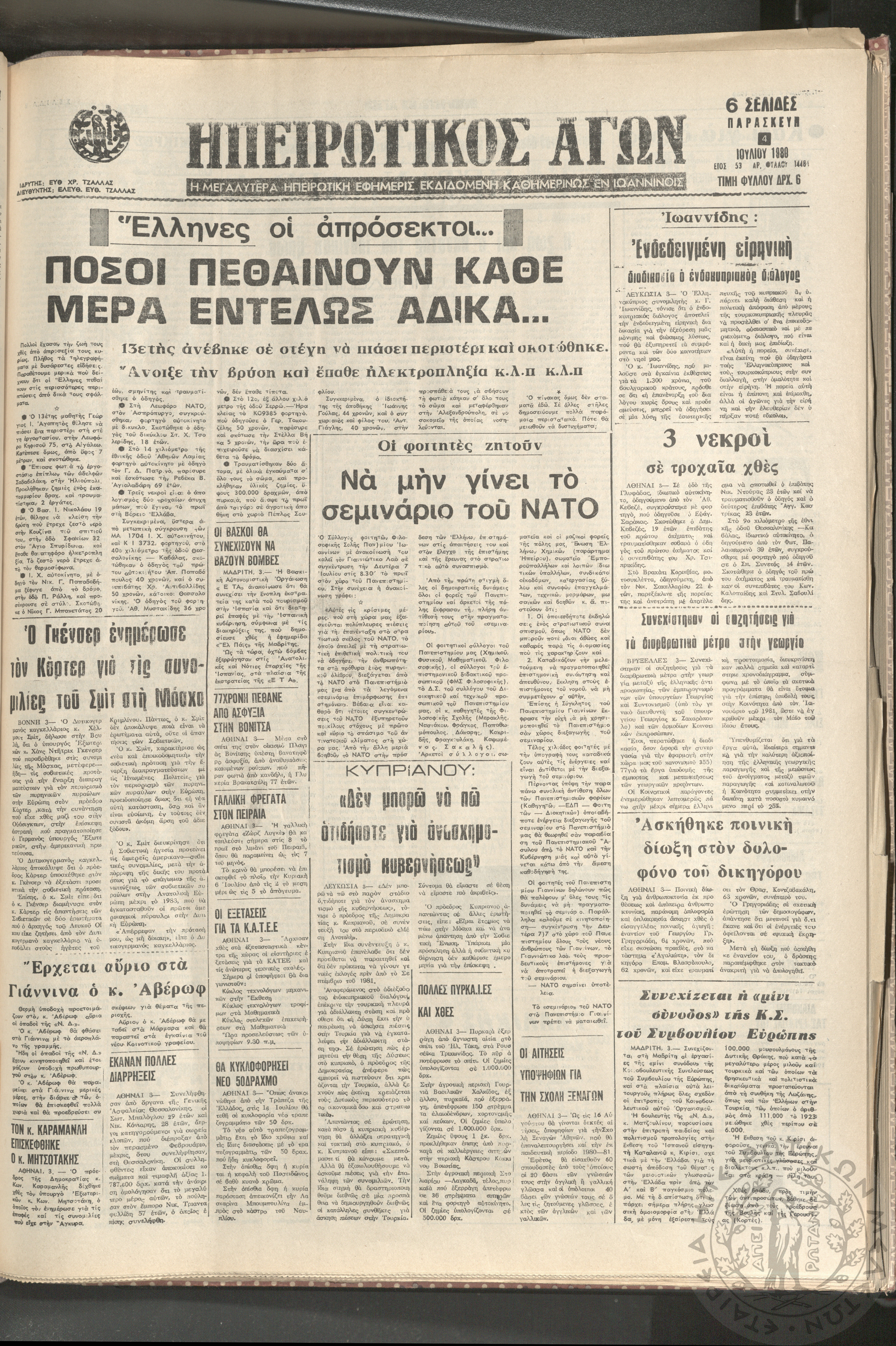 Ηπειρωτικός Αγών: η μεγαλυτέρα Ηπειρωτική εφημερίς εκδιδόμενη καθημερινώς εν Ιωαννίνοις, 1980, φ. 14488Έτος 53, φ. 14488...