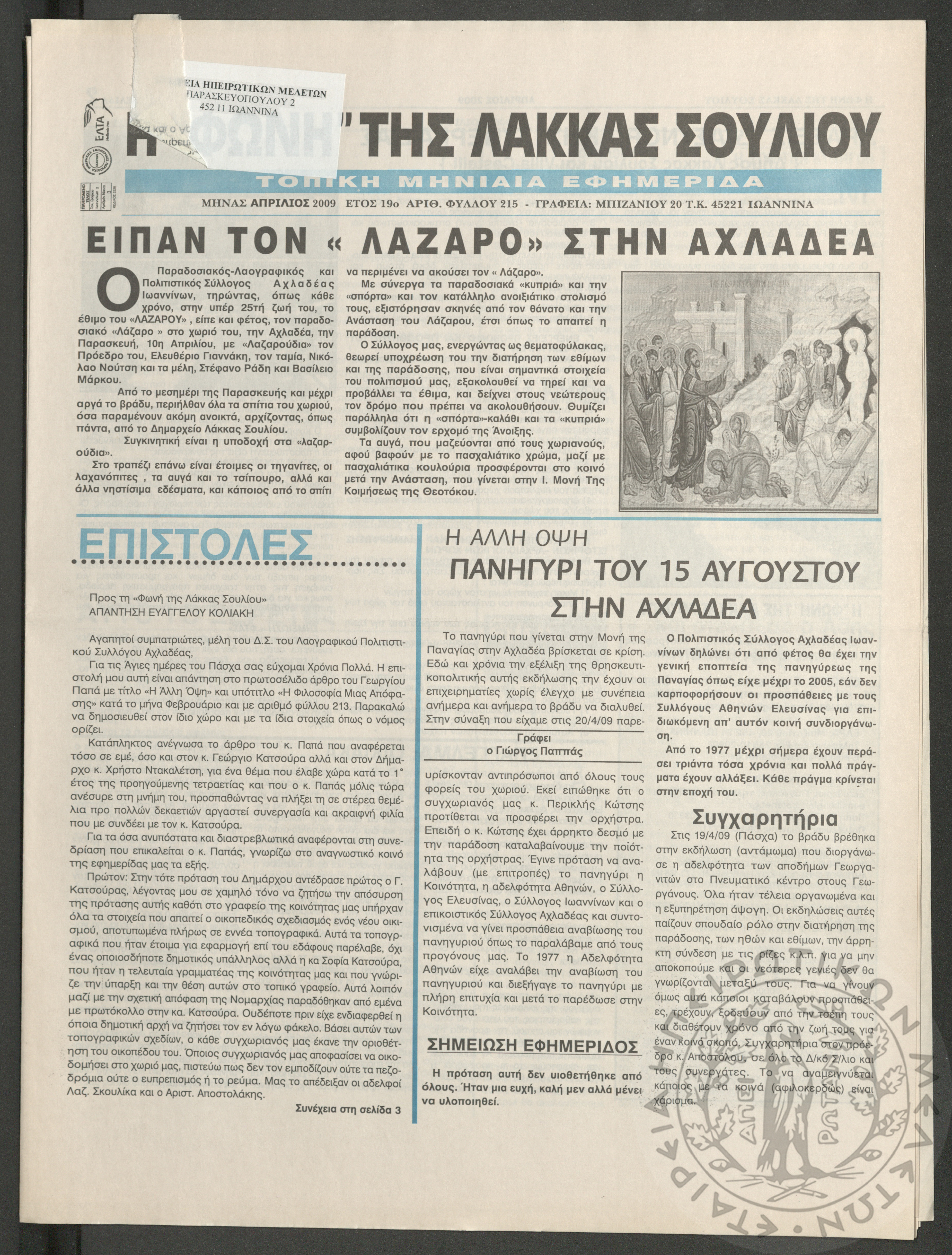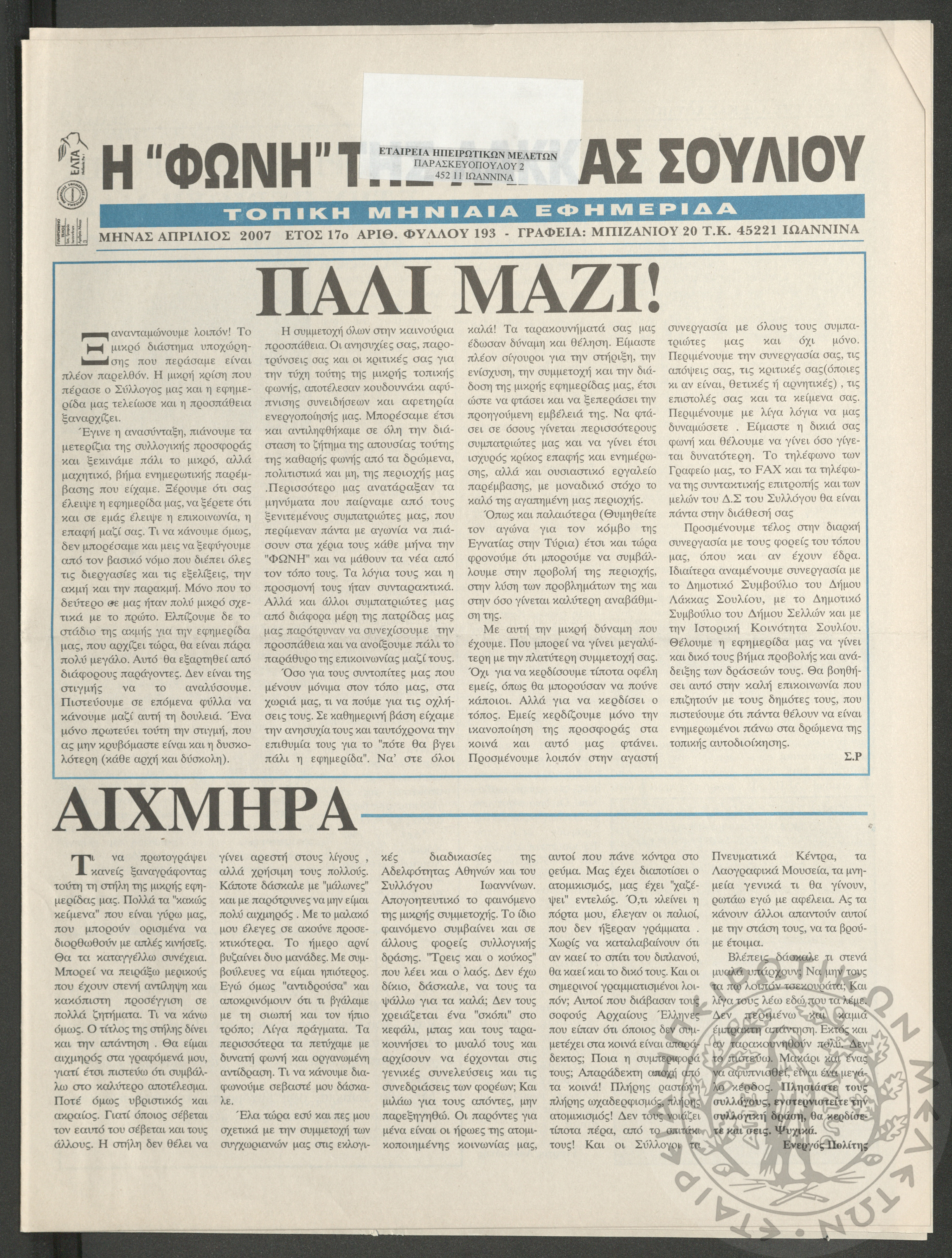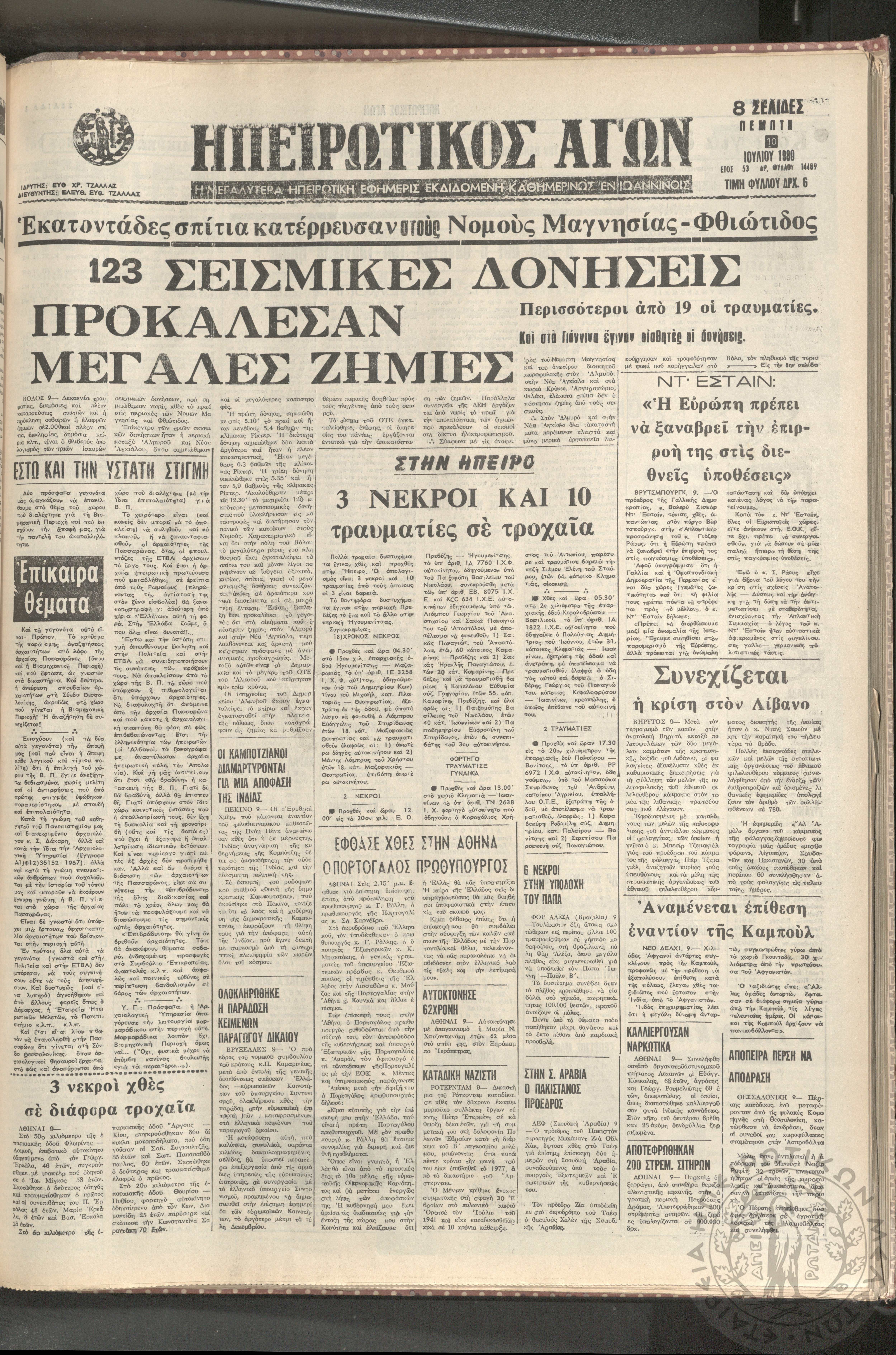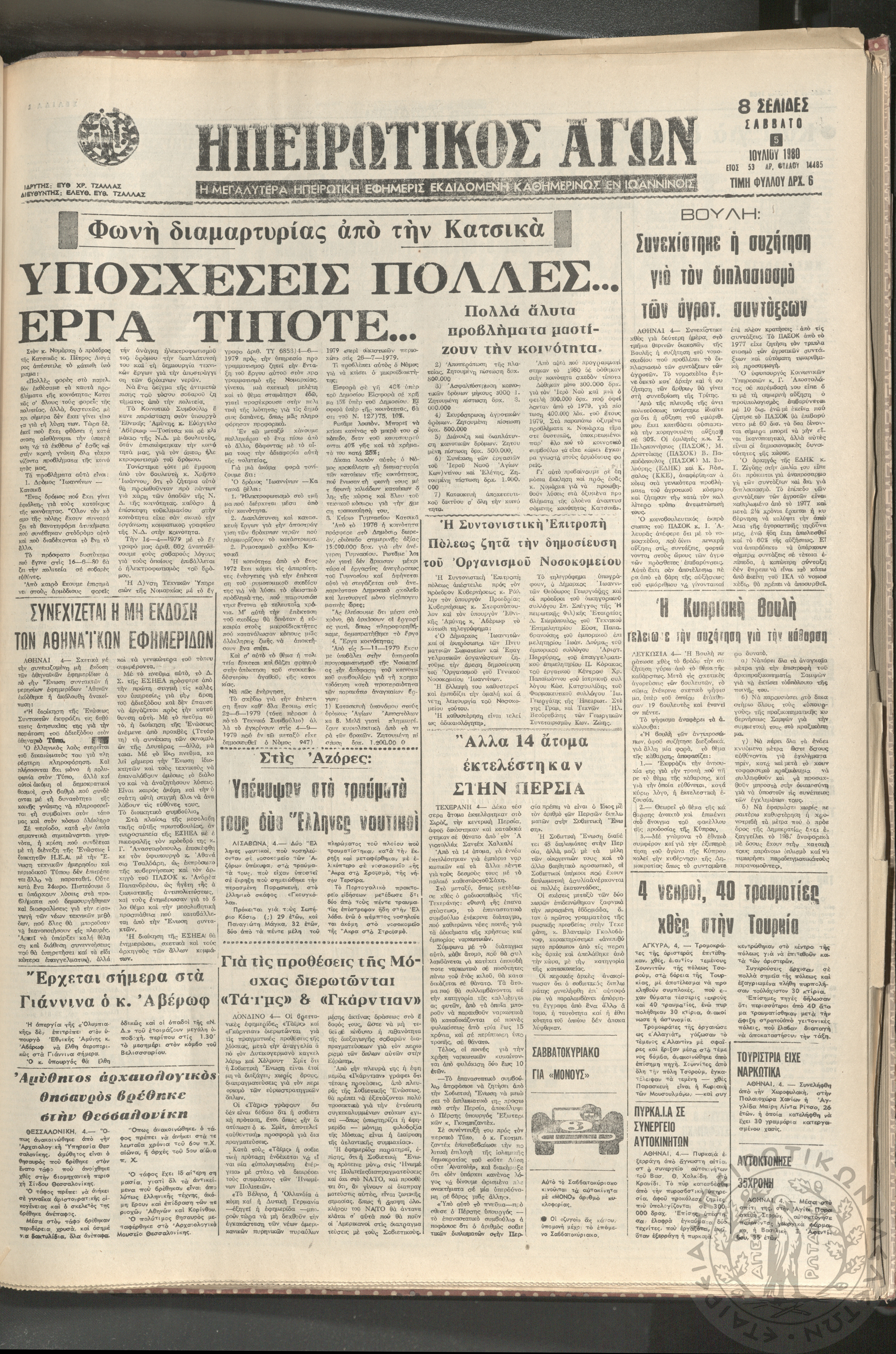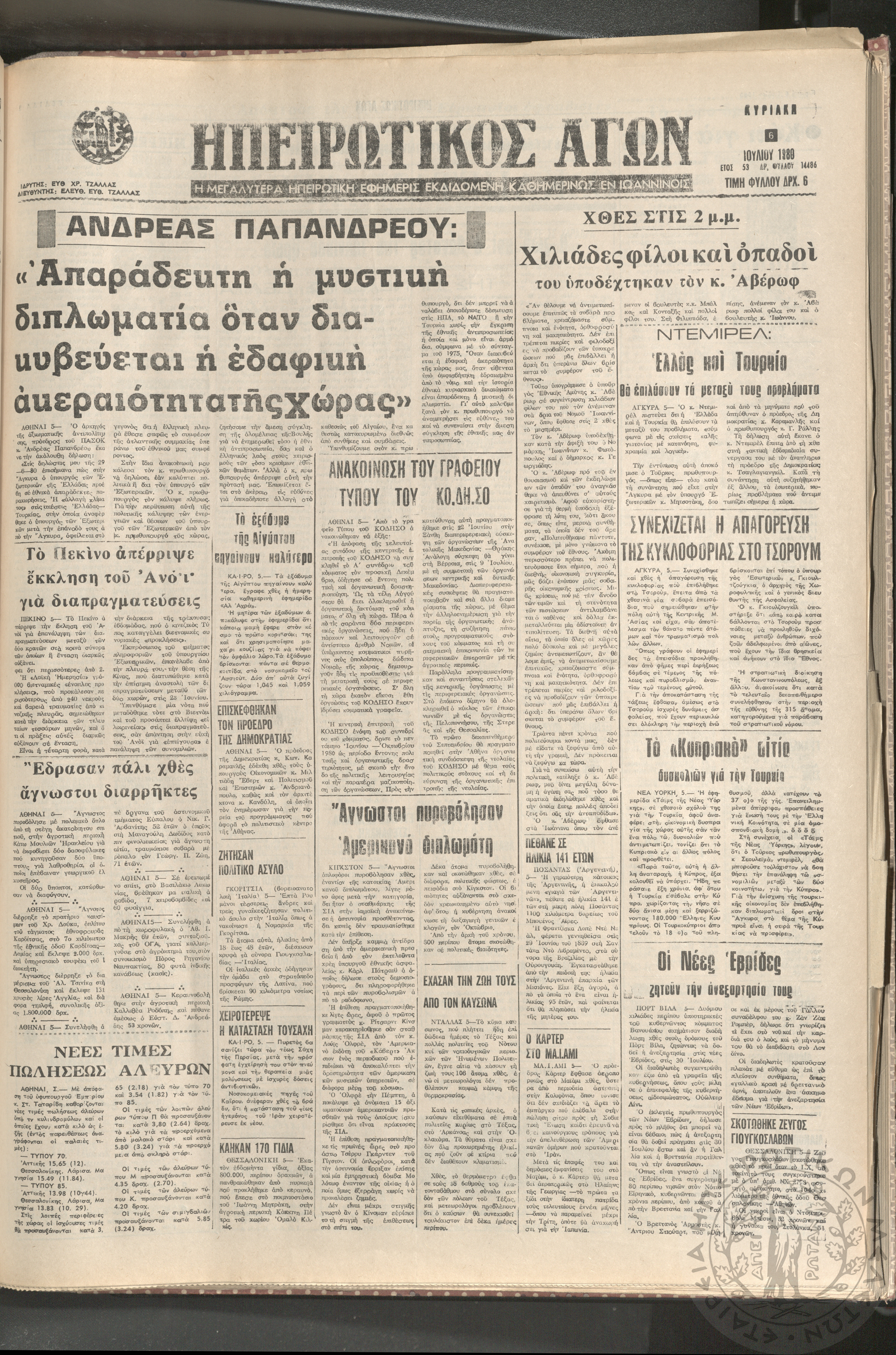 Ηπειρωτικός Αγών: η μεγαλυτέρα Ηπειρωτική εφημερίς εκδιδόμενη καθημερινώς εν Ιωαννίνοις, 1980, φ. 14489Έτος 53, φ. 14489...
