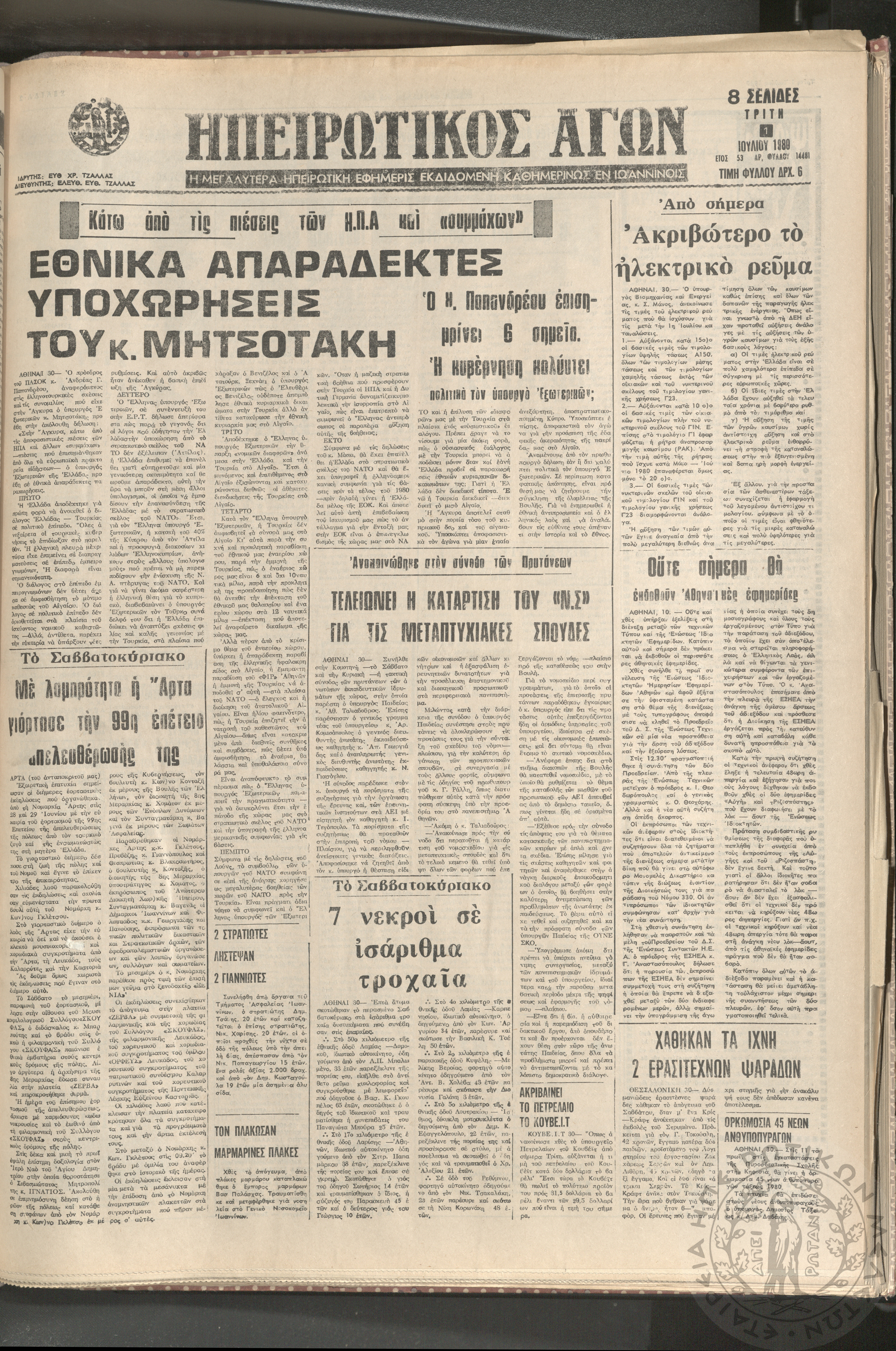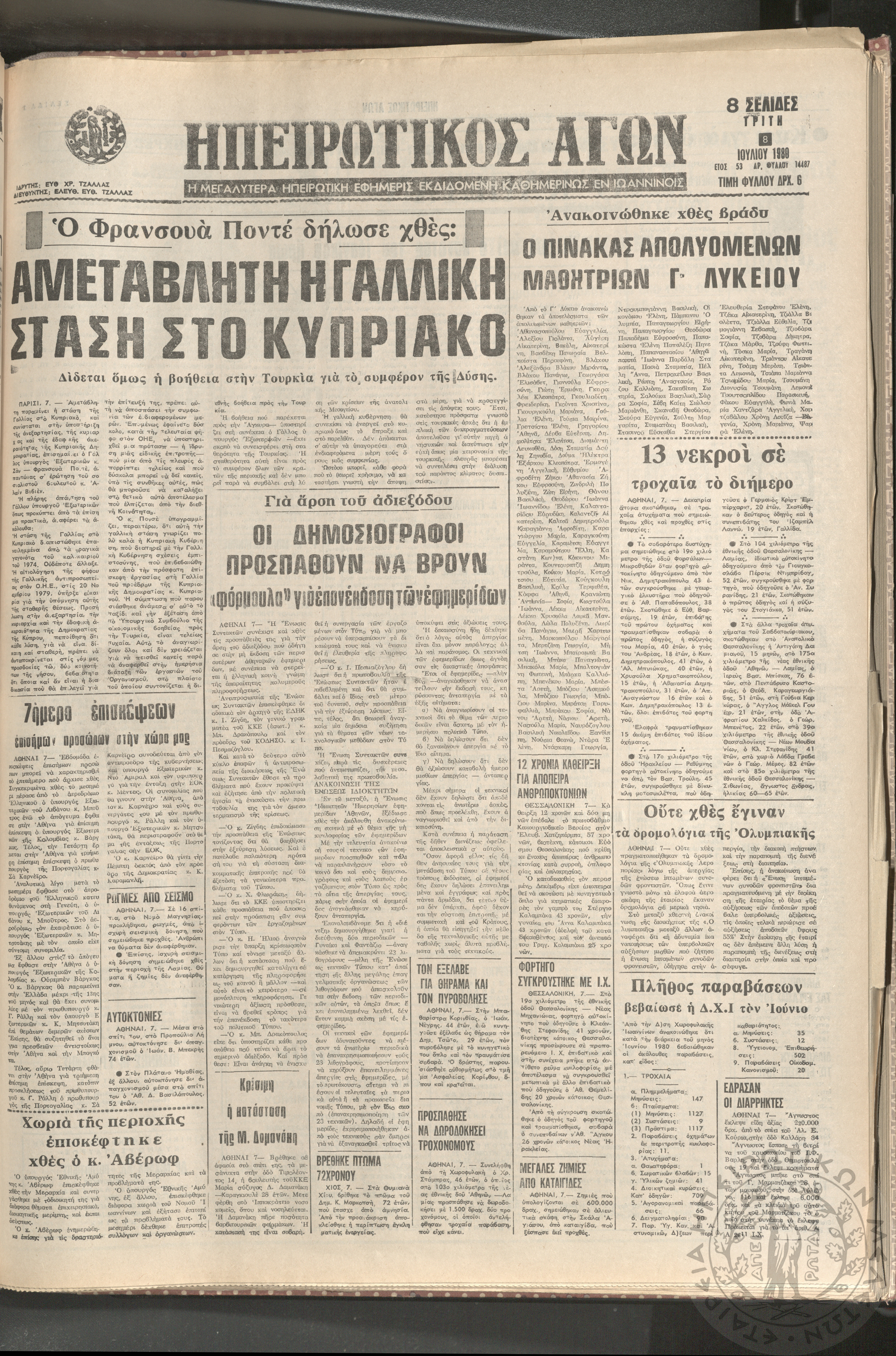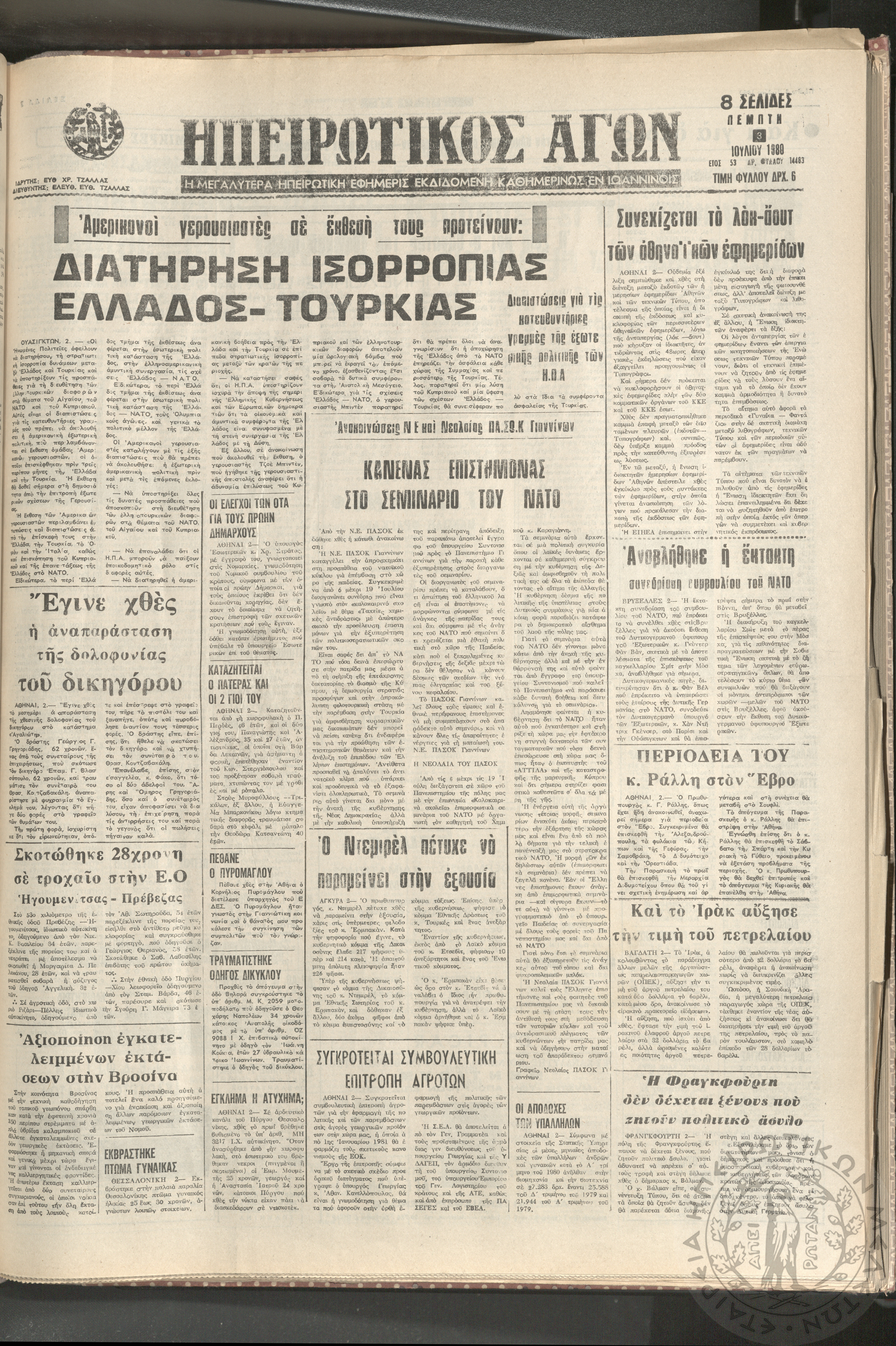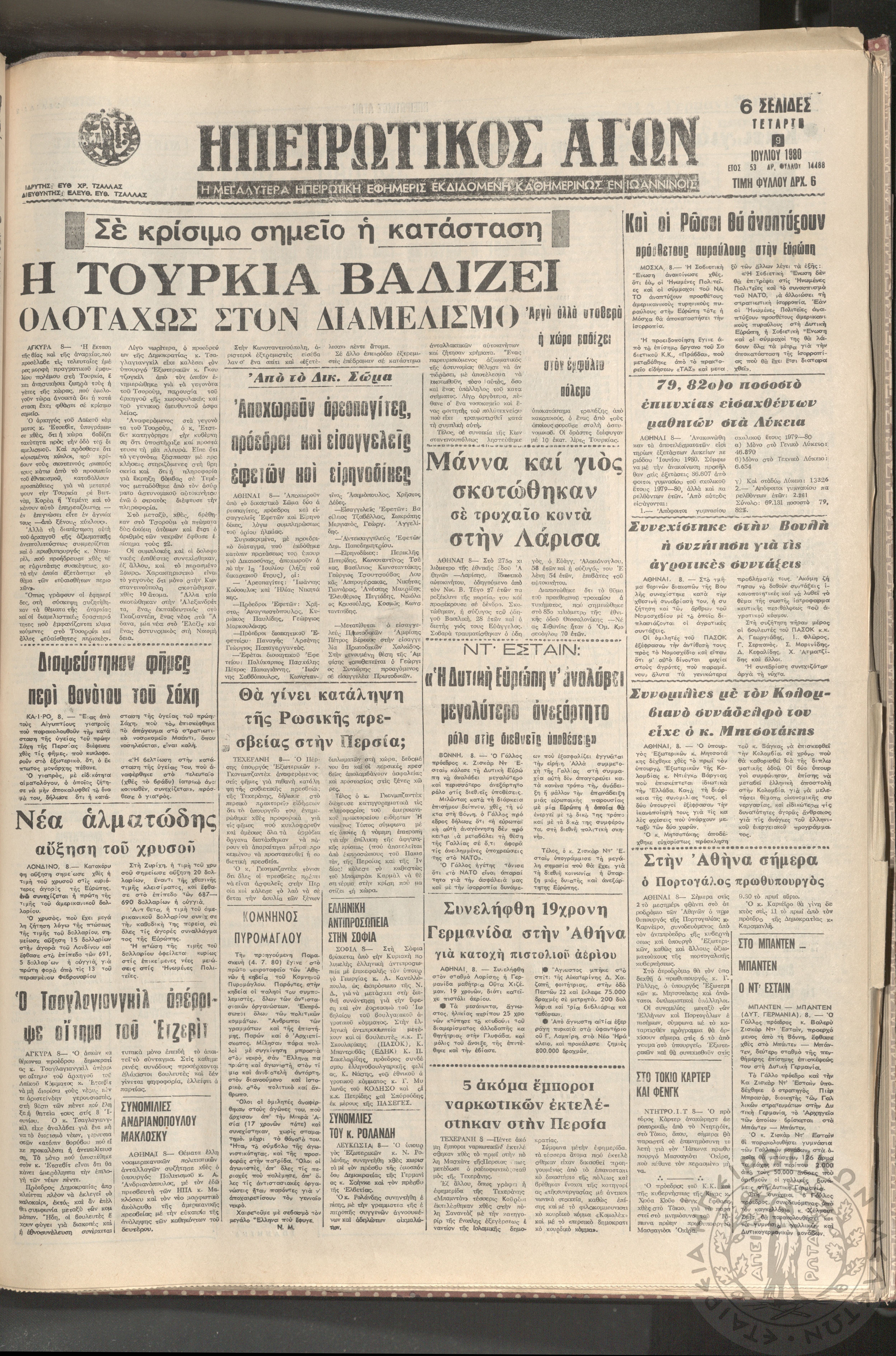 Ηπειρωτικός Αγών: η μεγαλυτέρα Ηπειρωτική εφημερίς εκδιδόμενη καθημερινώς εν Ιωαννίνοις, 1980, φ. 14487Έτος 53, φ. 14487...
