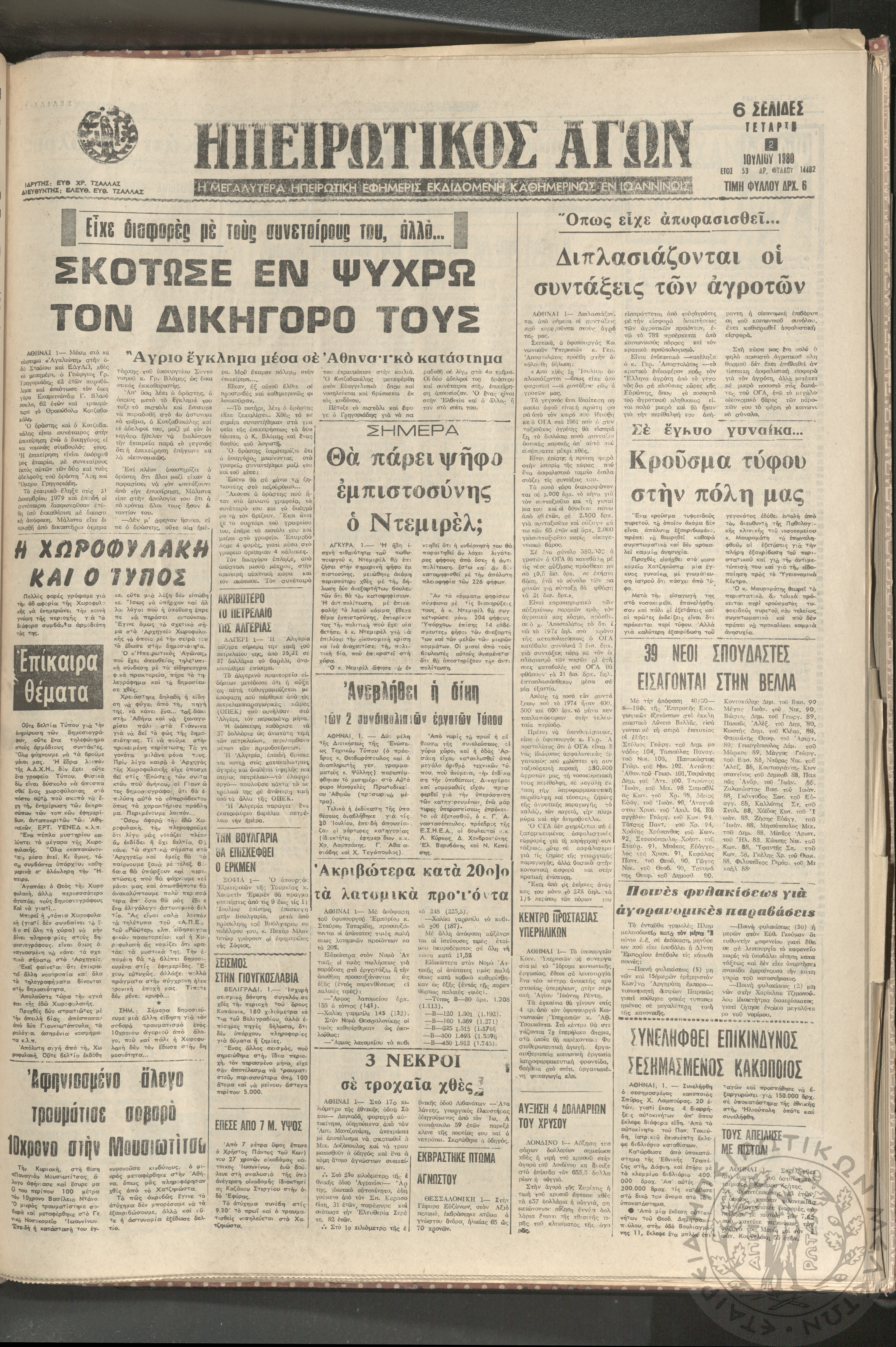 Ηπειρωτικός Αγών: η μεγαλυτέρα Ηπειρωτική εφημερίς εκδιδόμενη καθημερινώς εν Ιωαννίνοις, 1980, φ. 14481Έτος 53, φ. 14481...