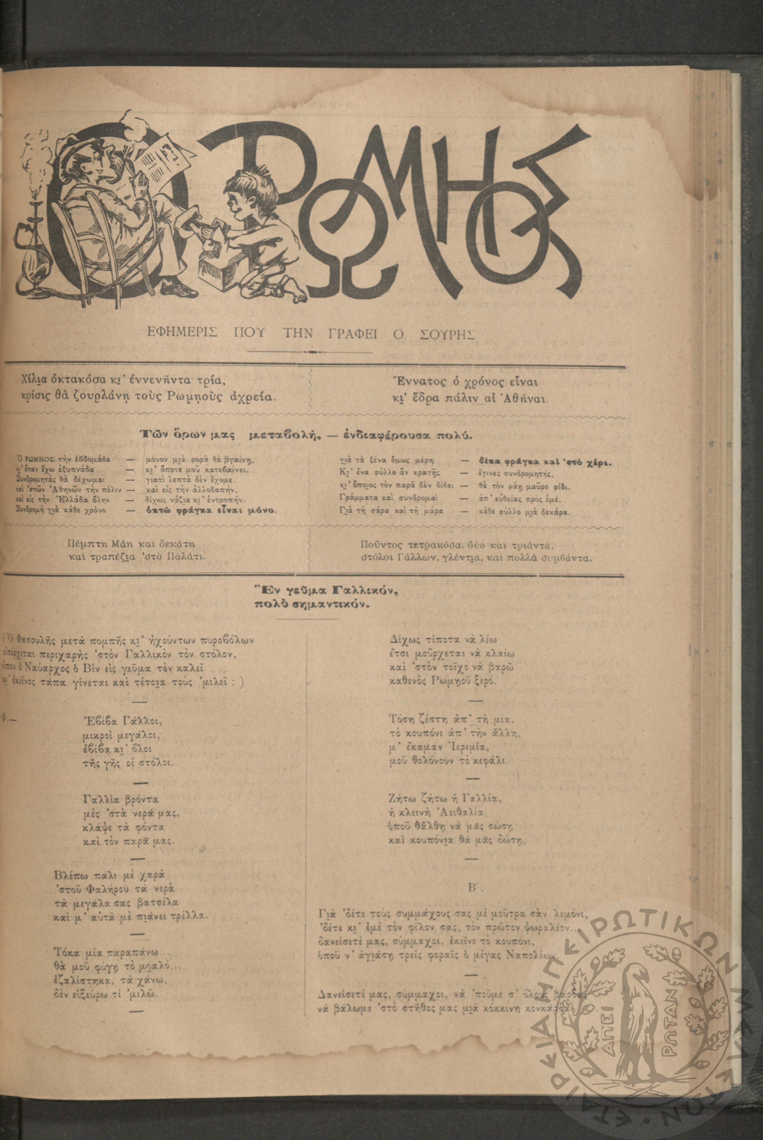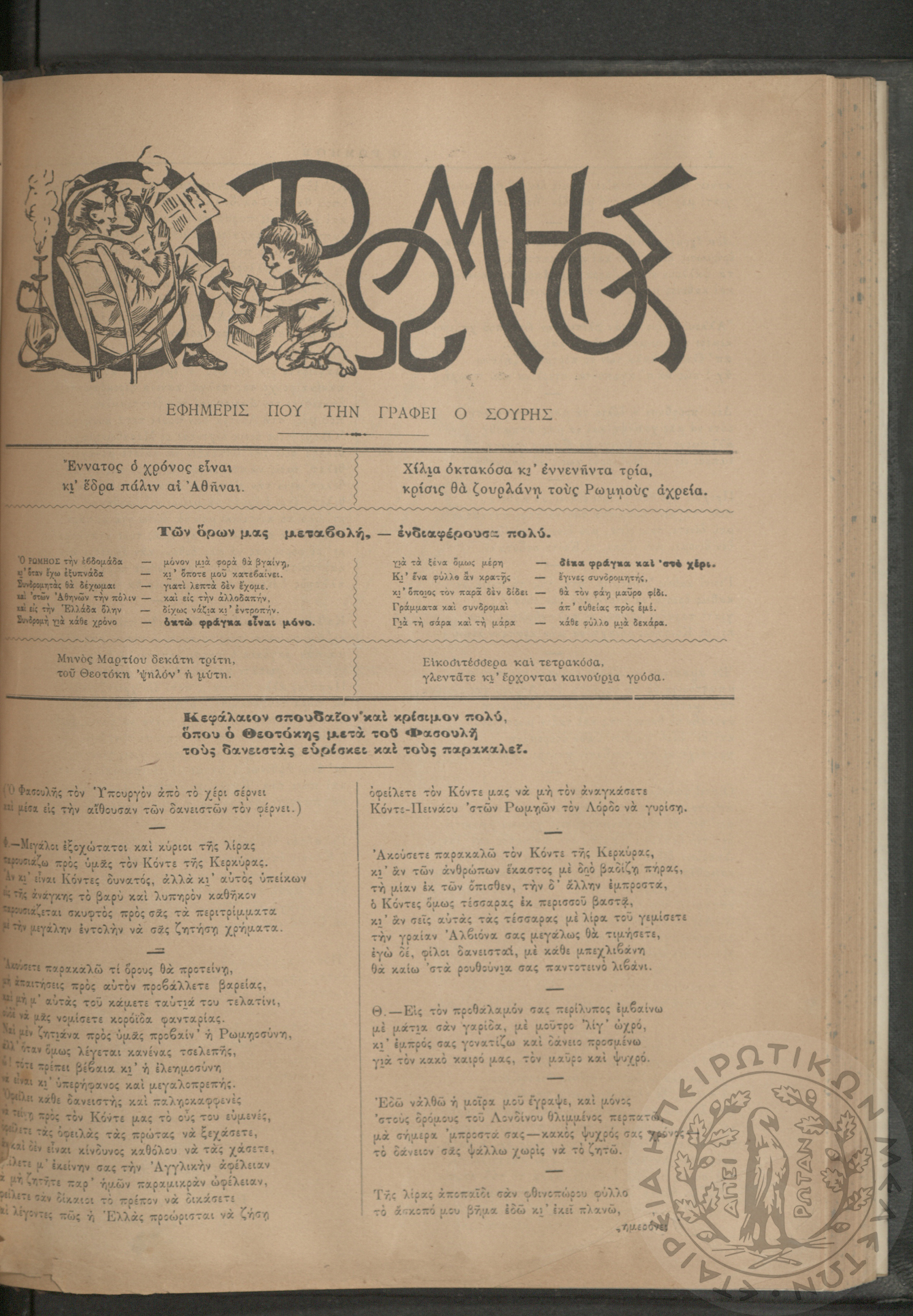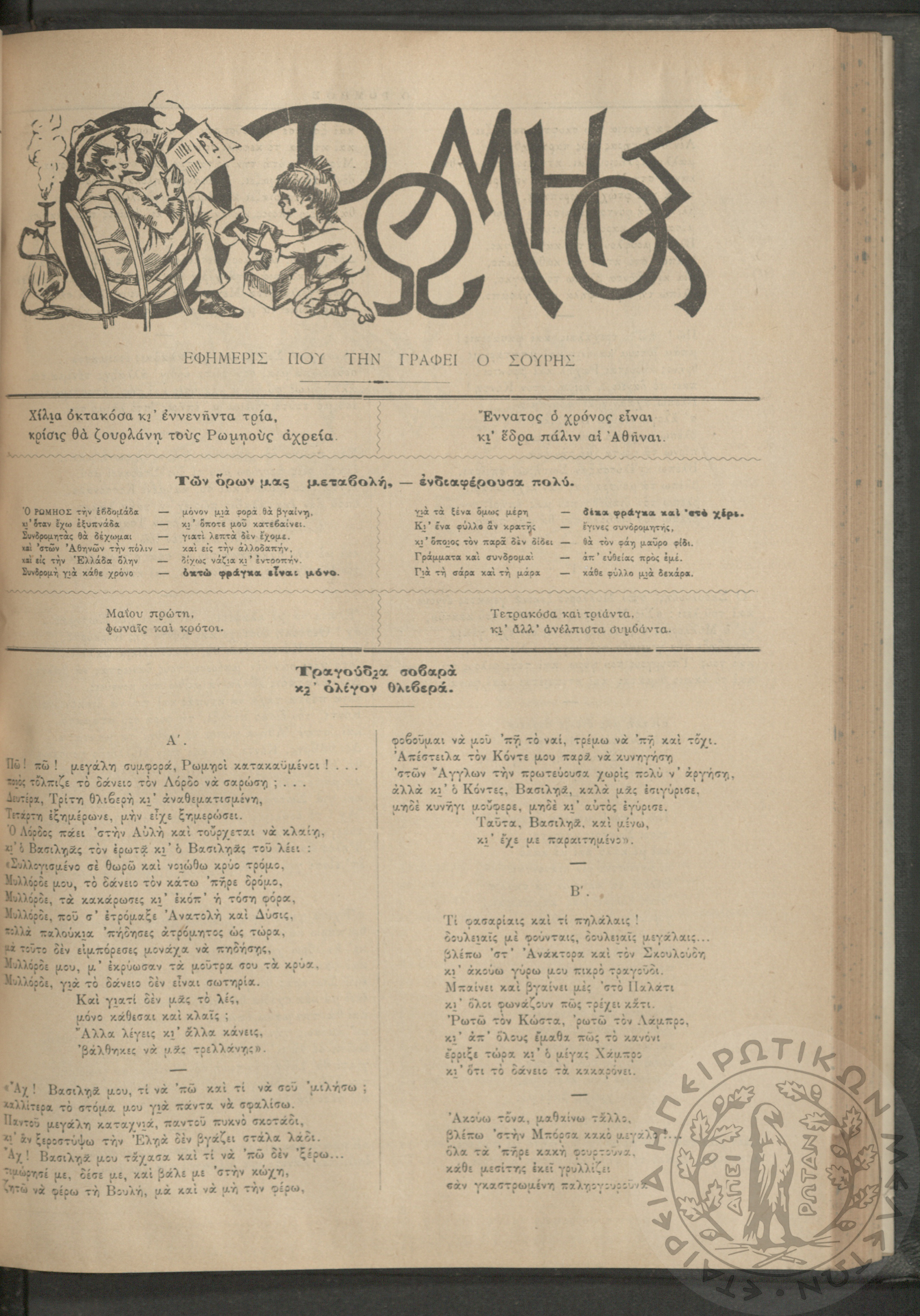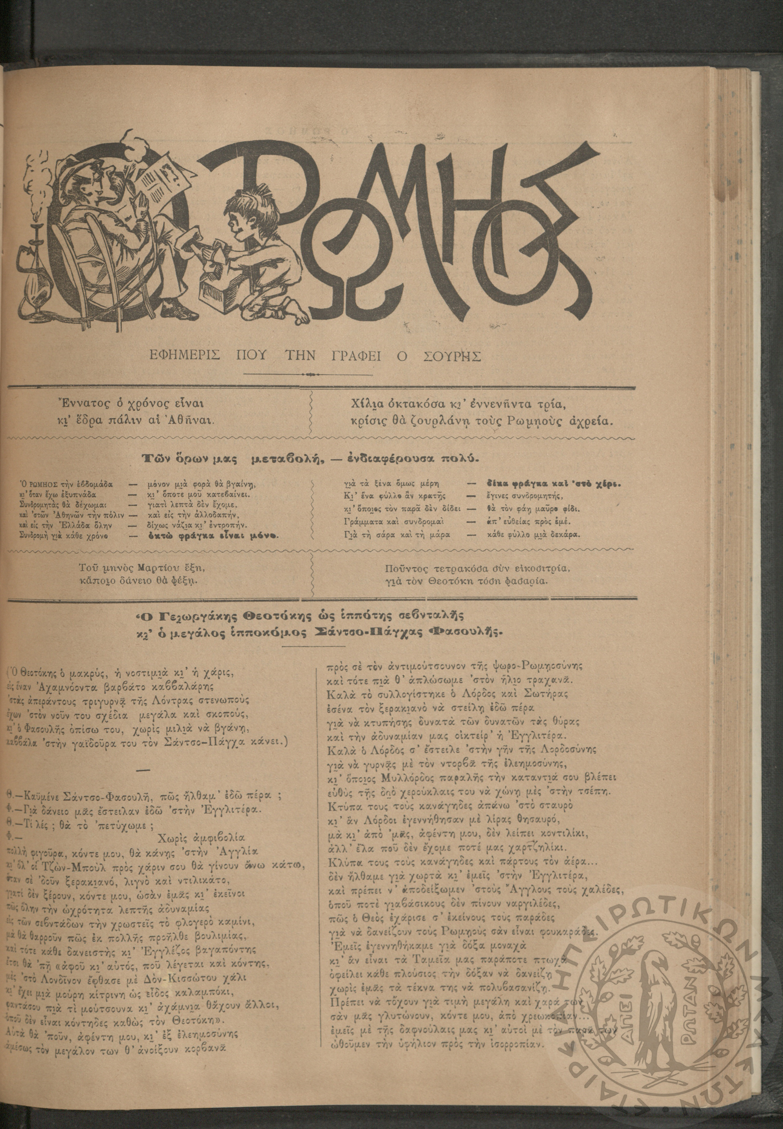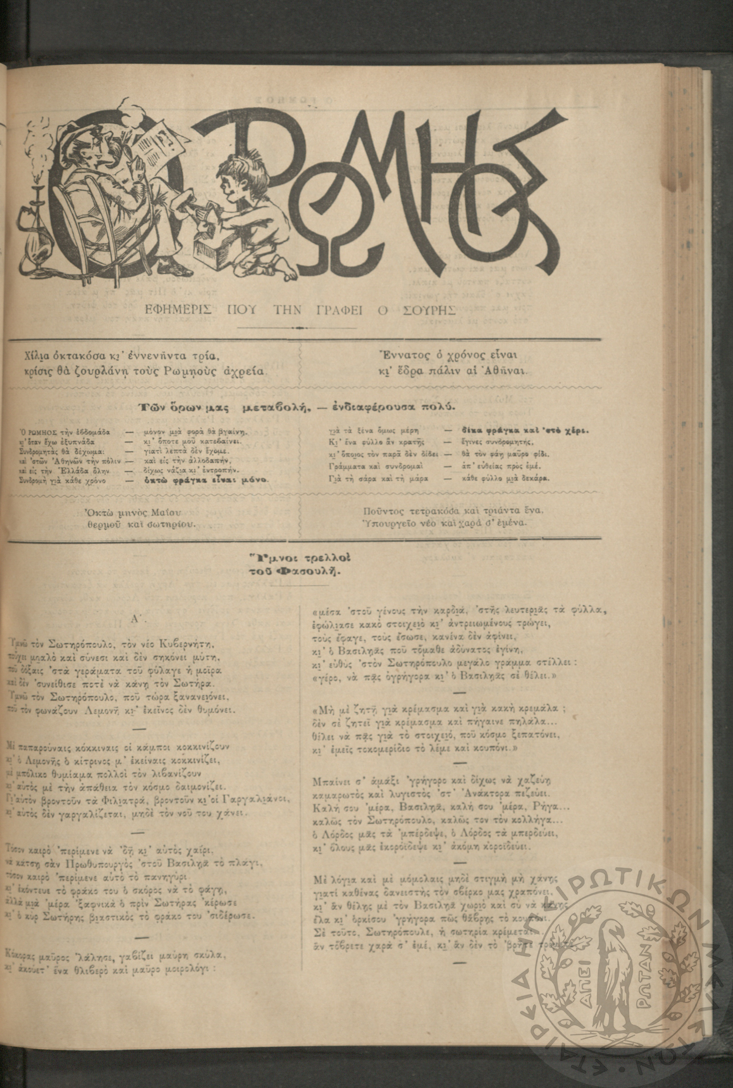 Ο Ρωμηός: Εφημερίς που την γράφει ο Σουρής, 1893, φ. 428