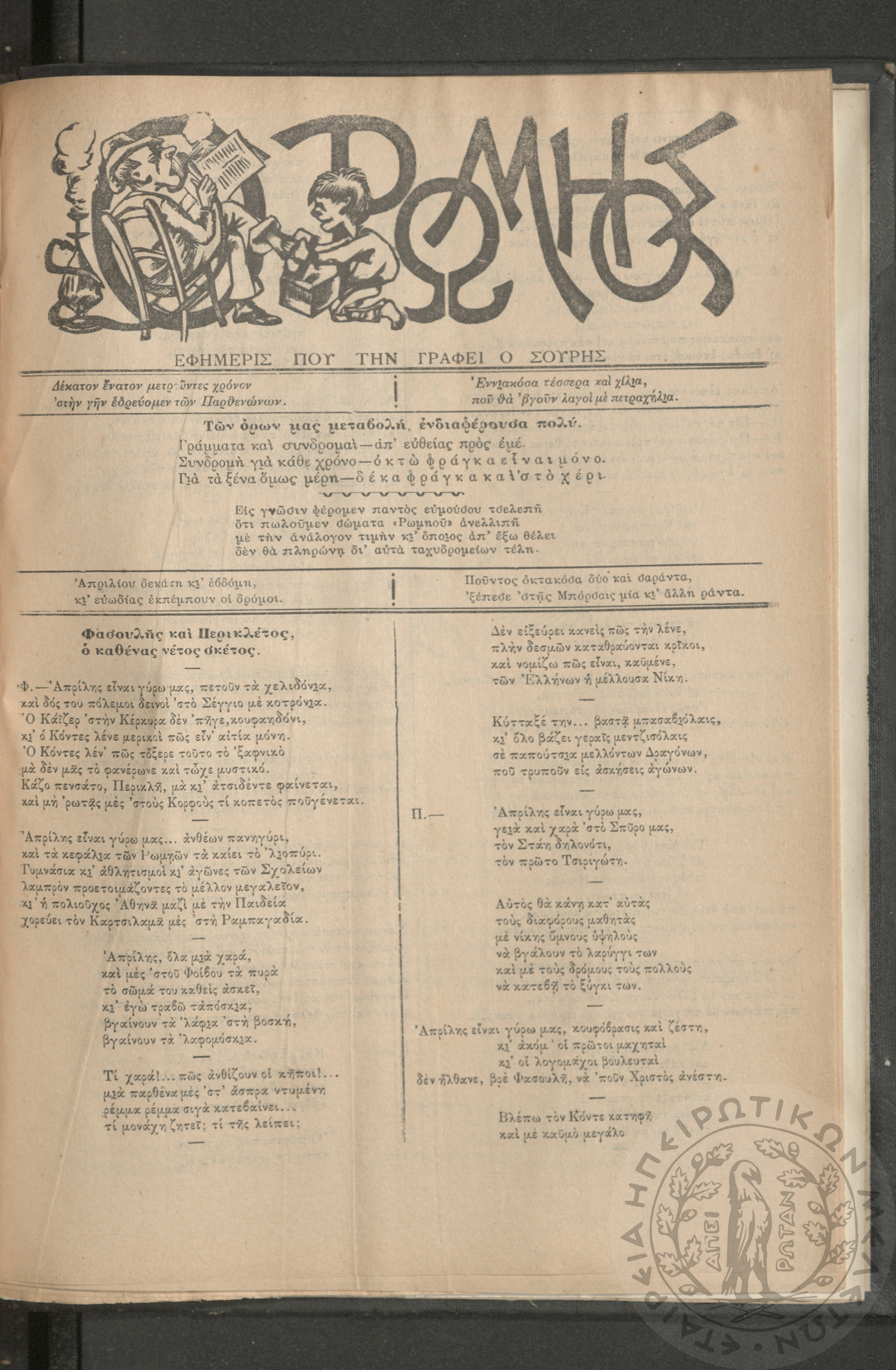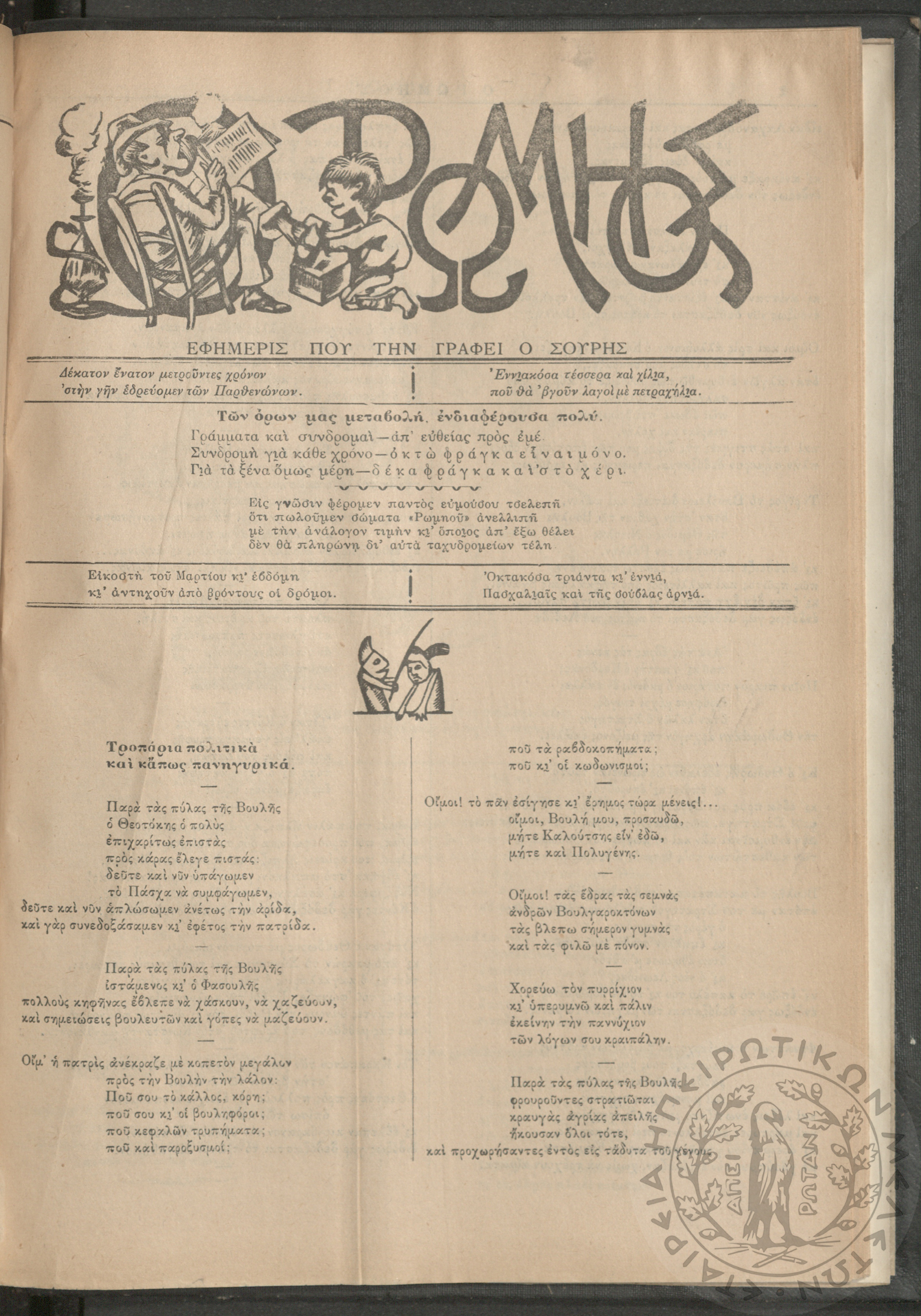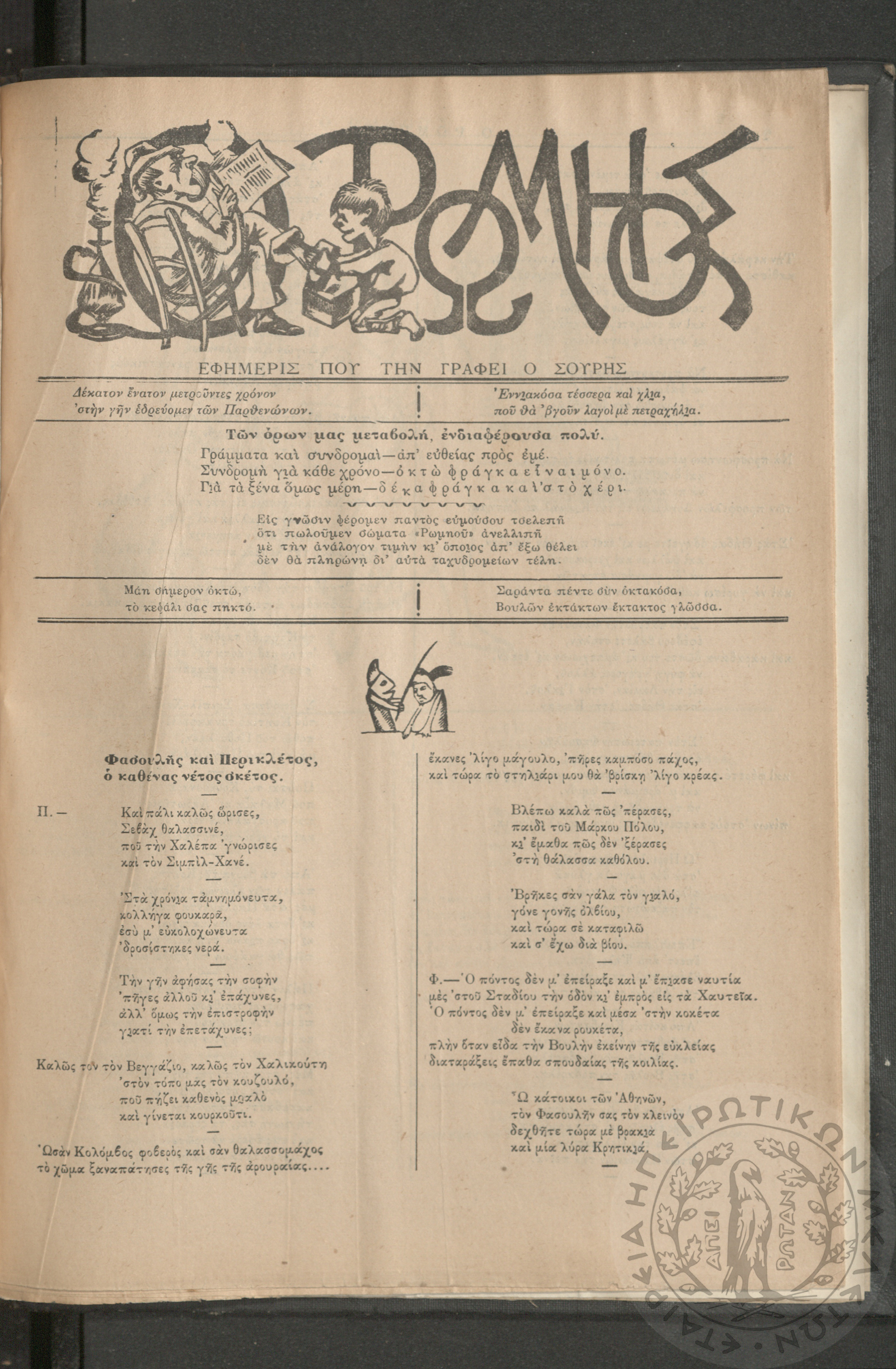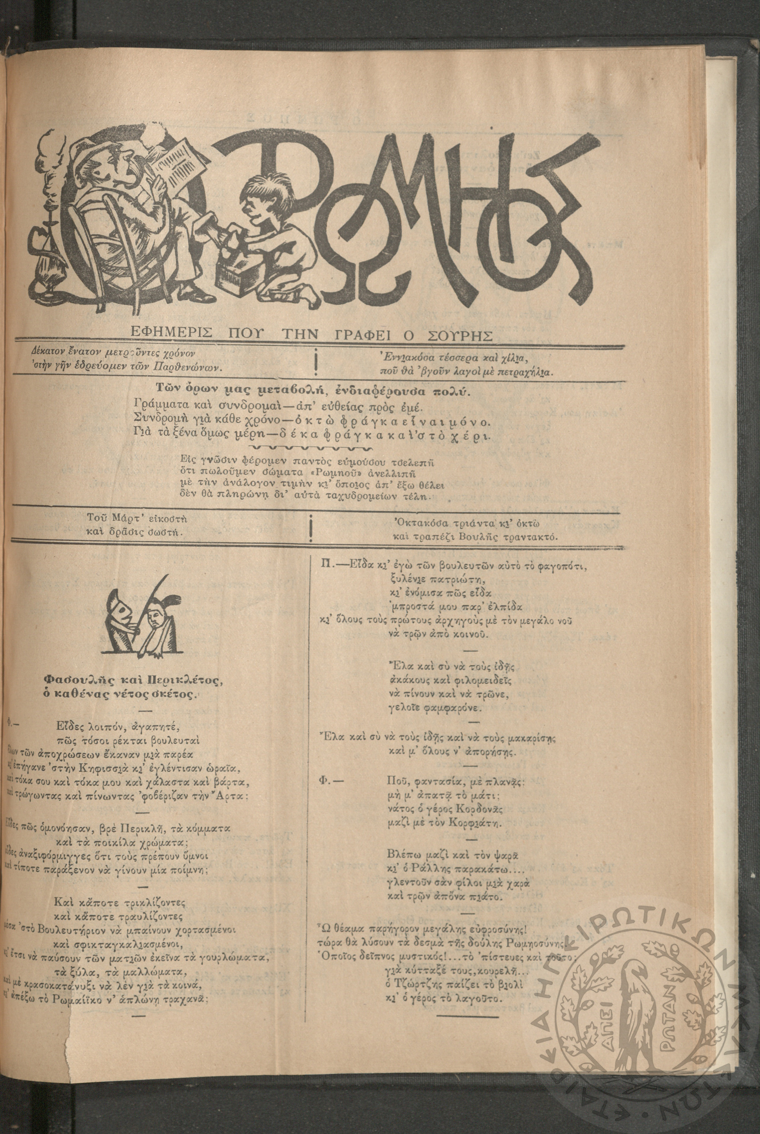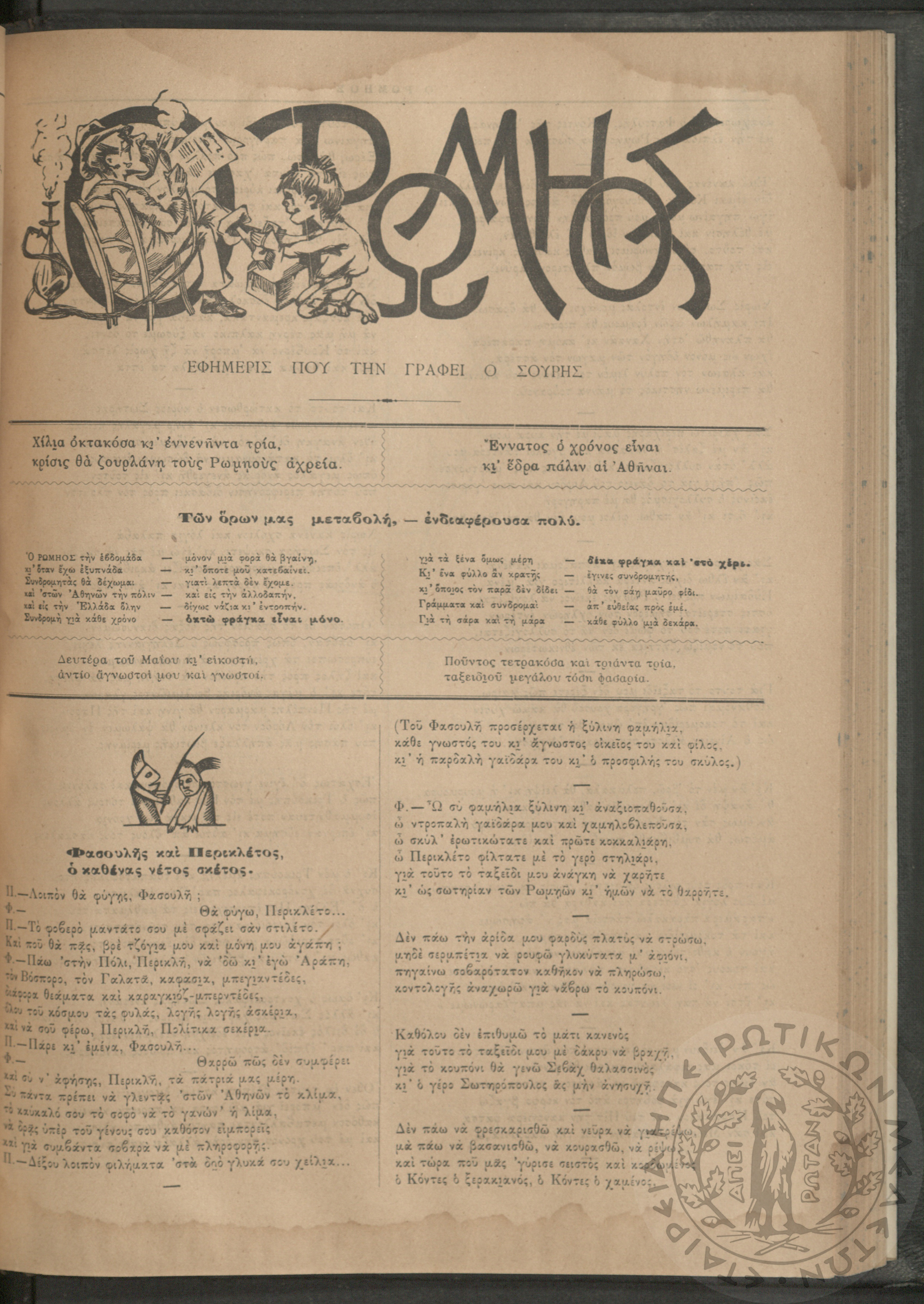 Ο Ρωμηός: Εφημερίς που την γράφει ο Σουρής, 1906, φ. 928