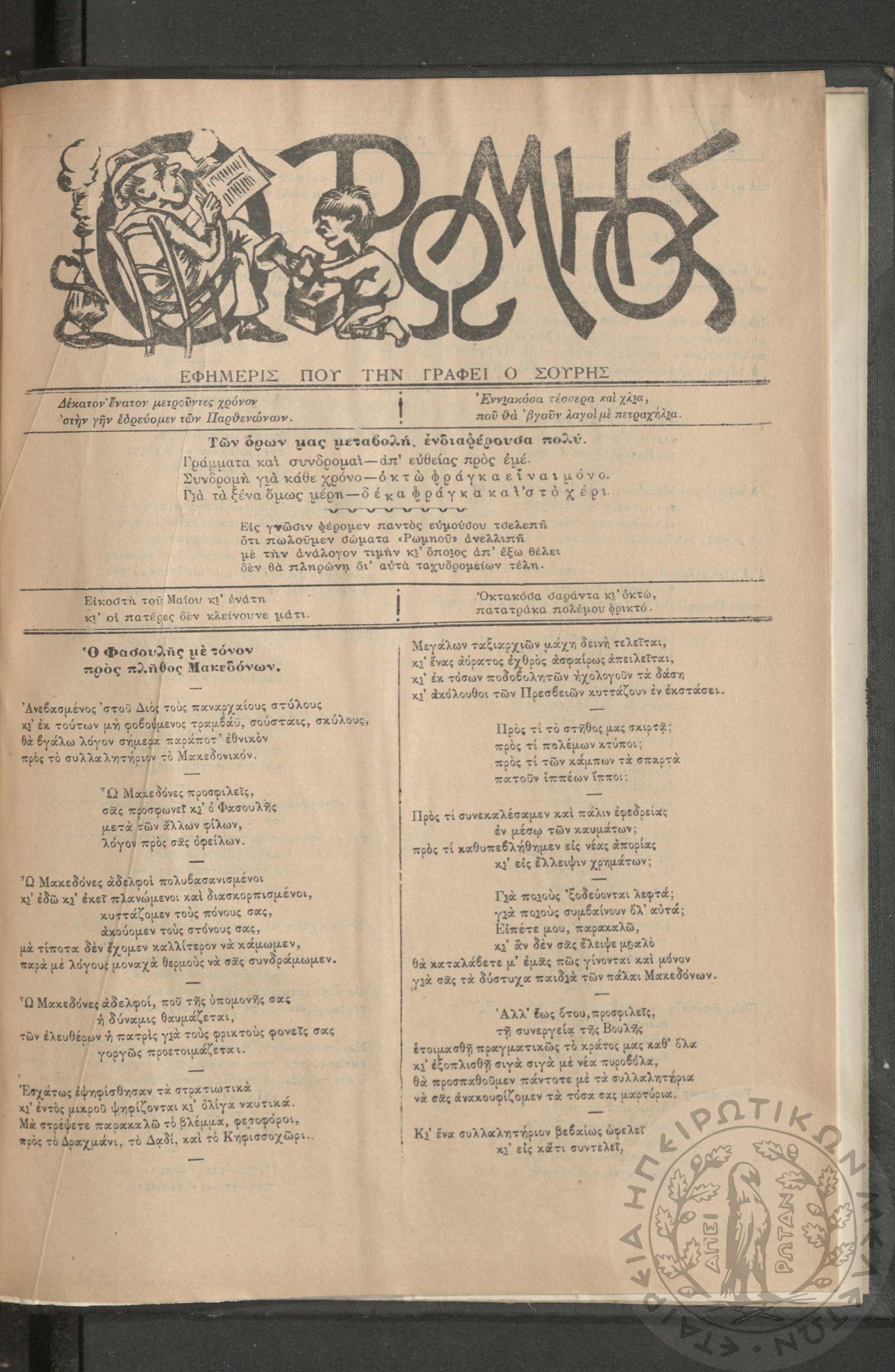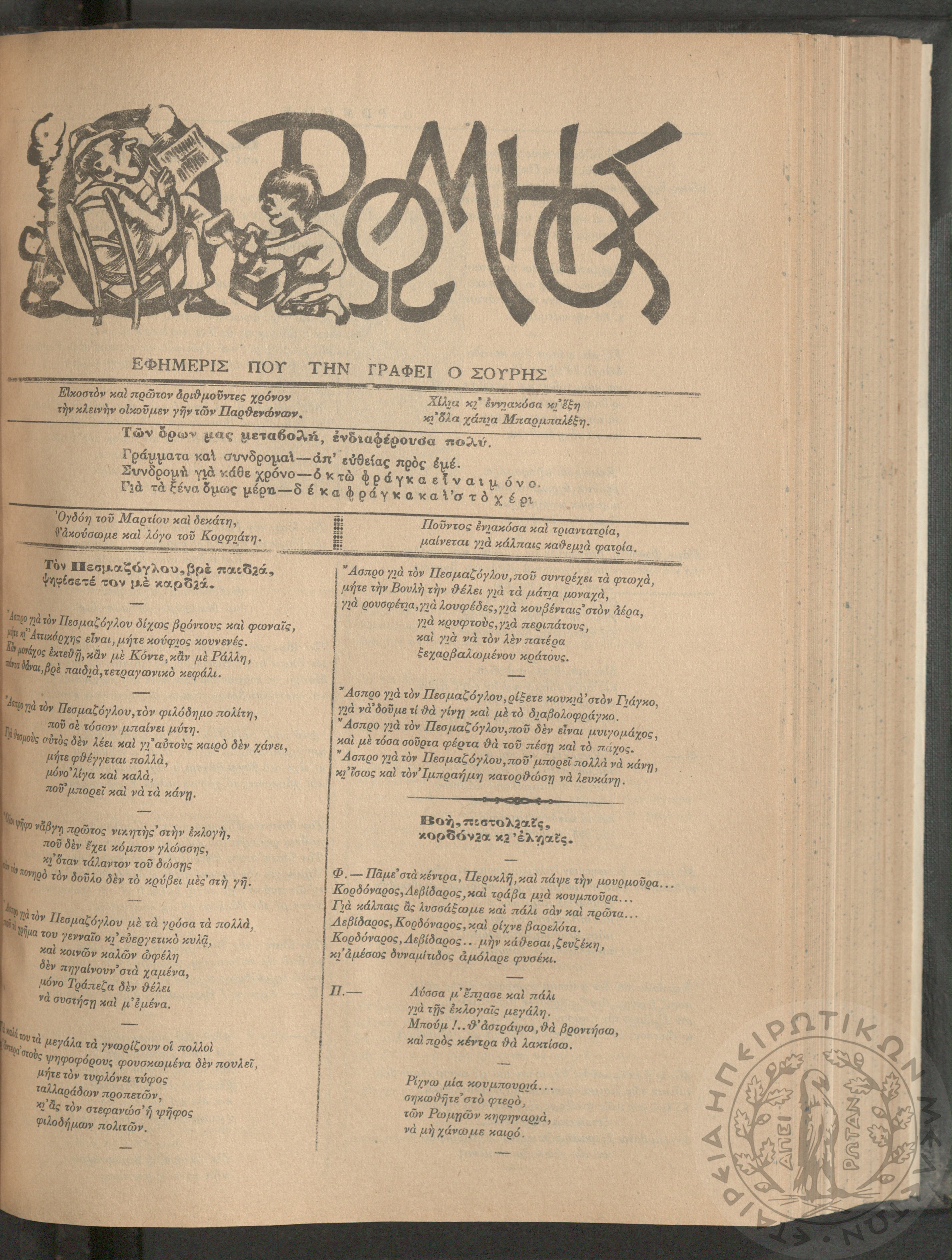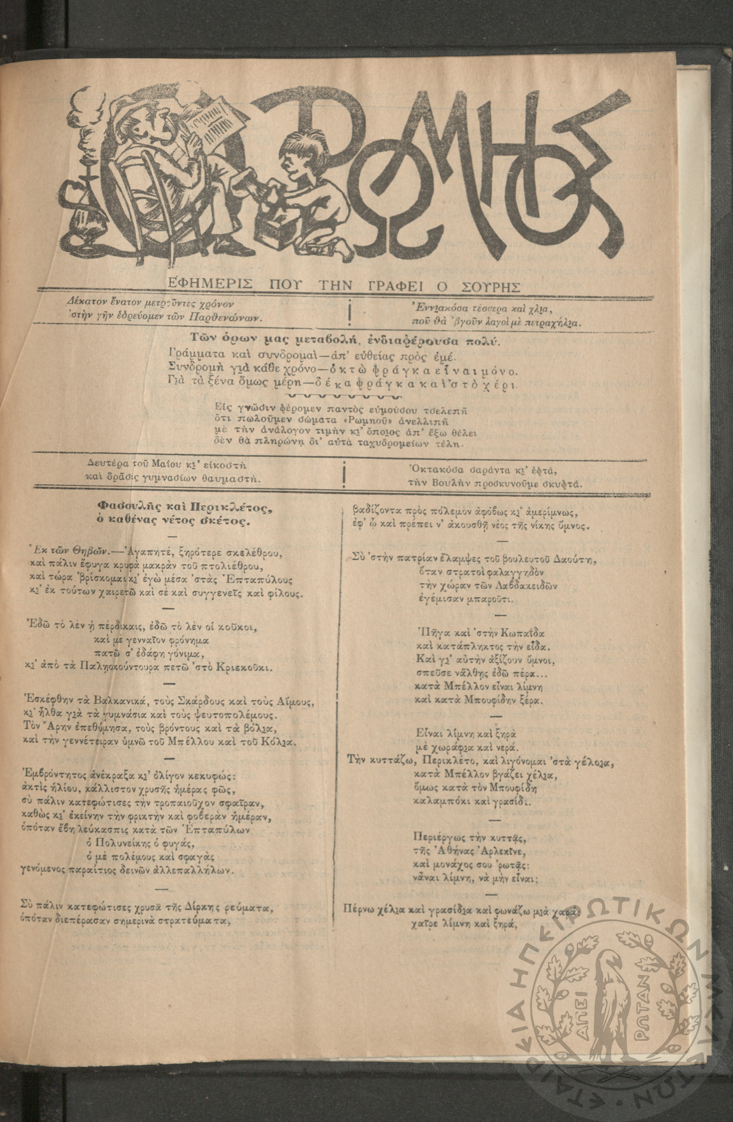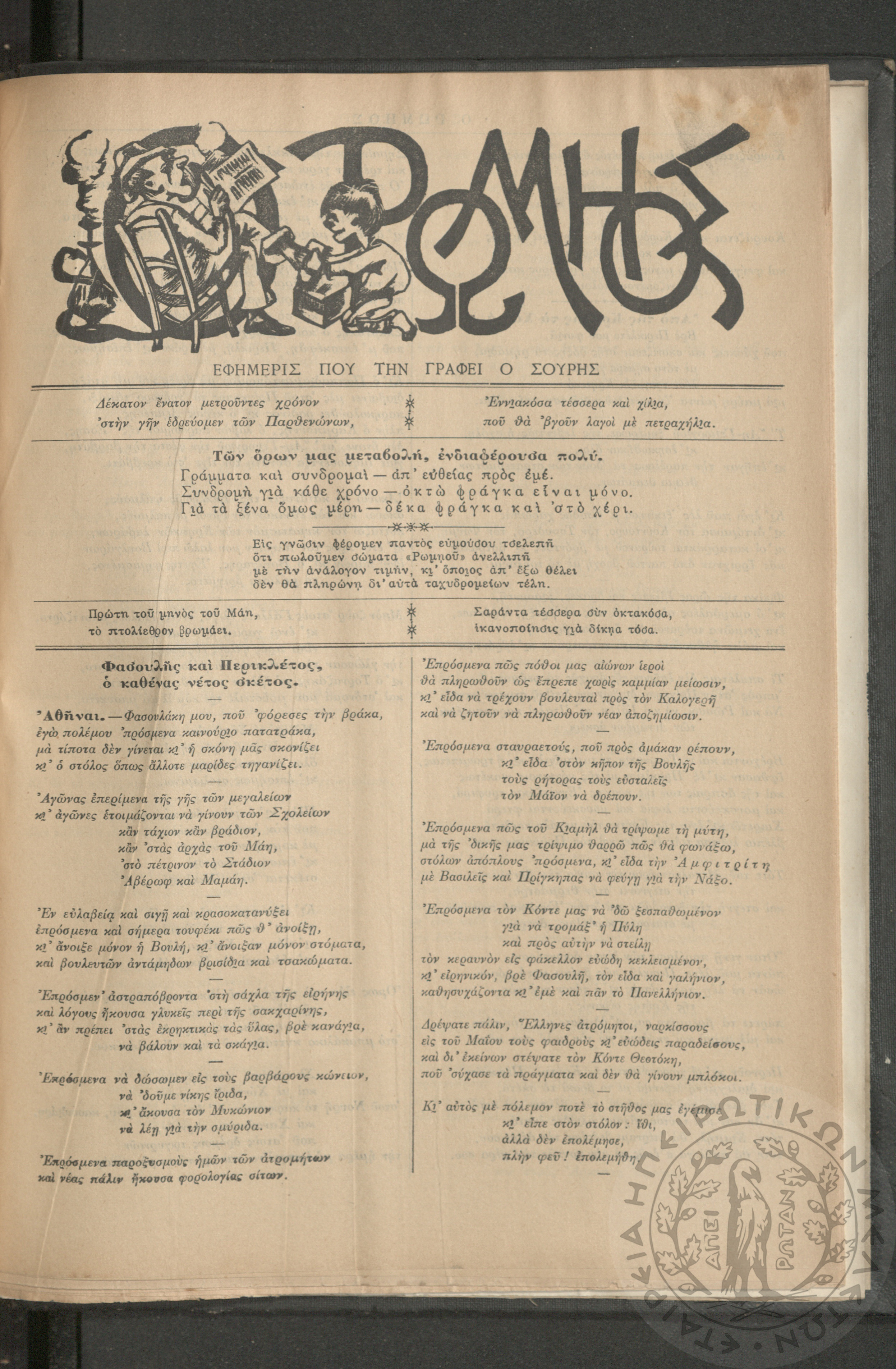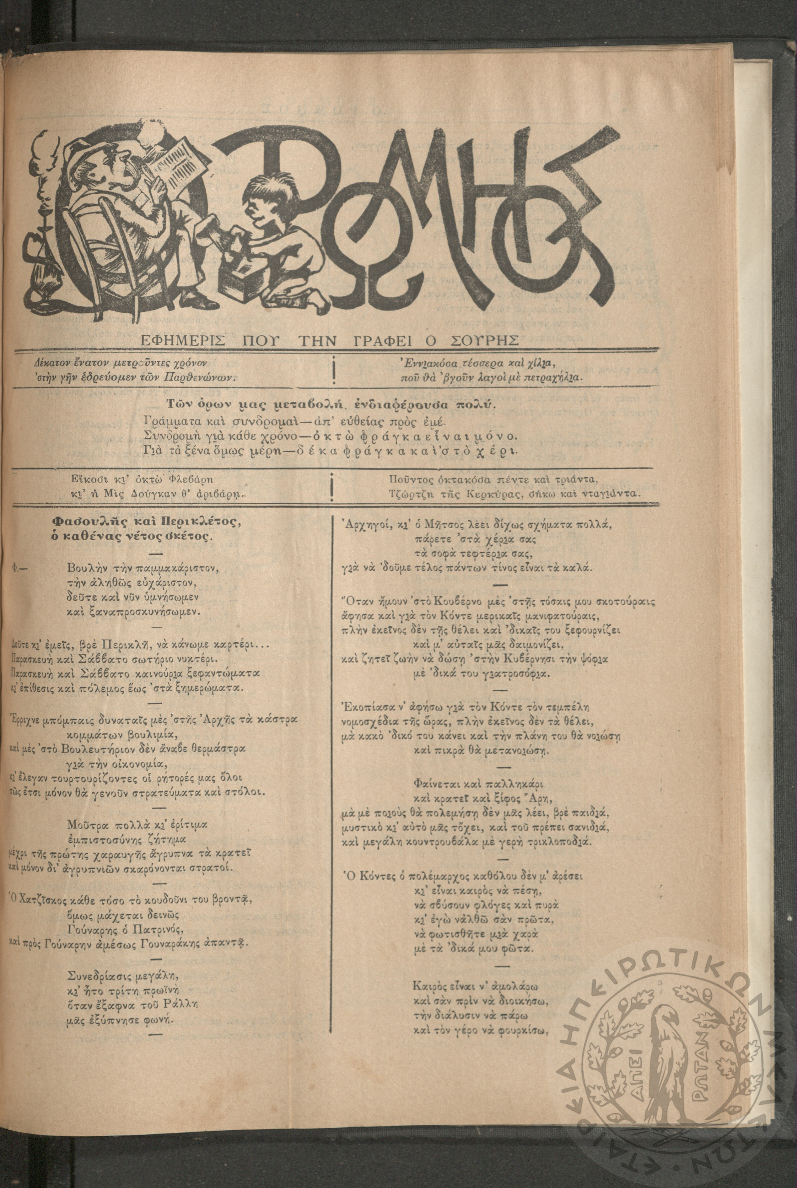 Ο Ρωμηός: Εφημερίς που την γράφει ο Σουρής, 1906, φ. 928
