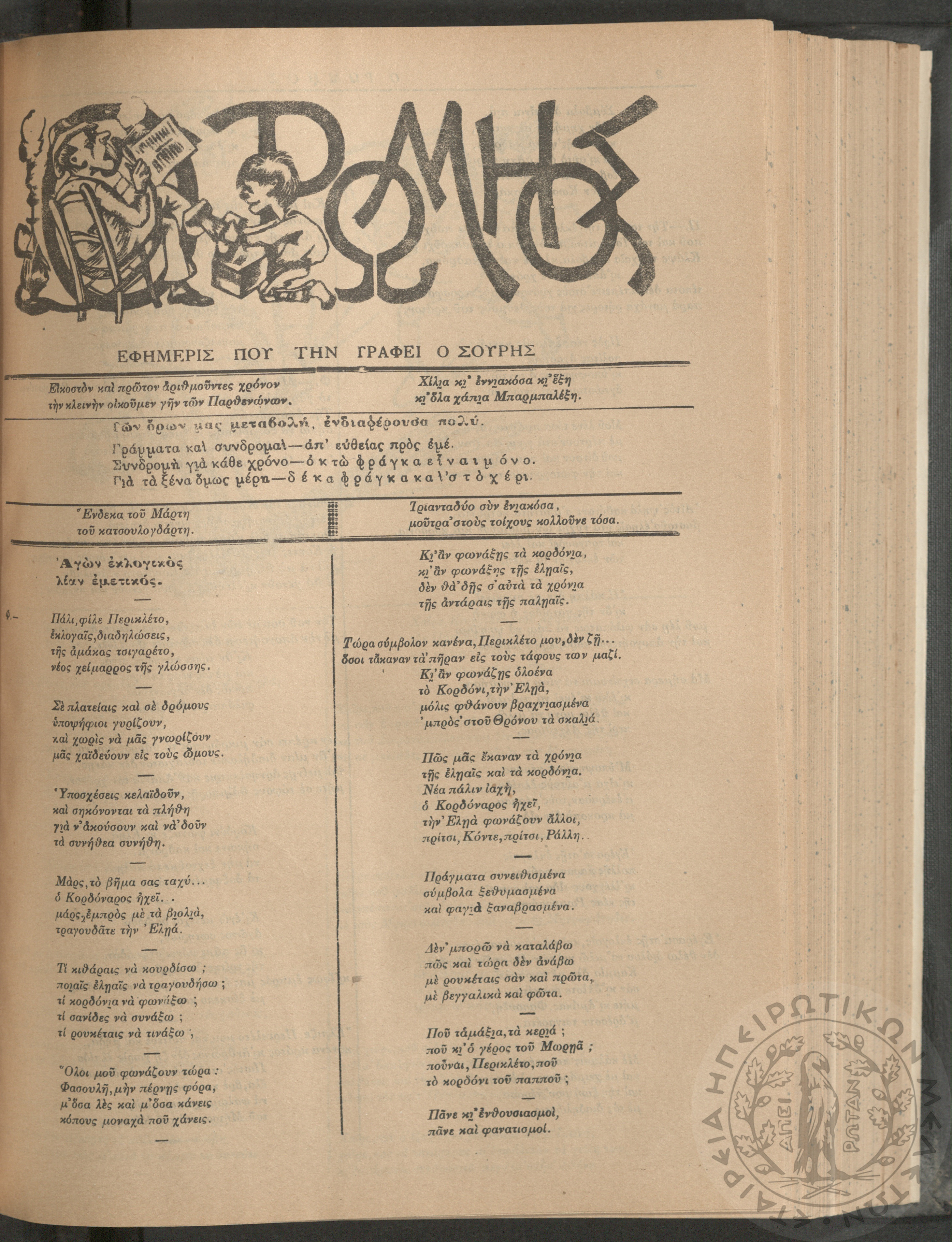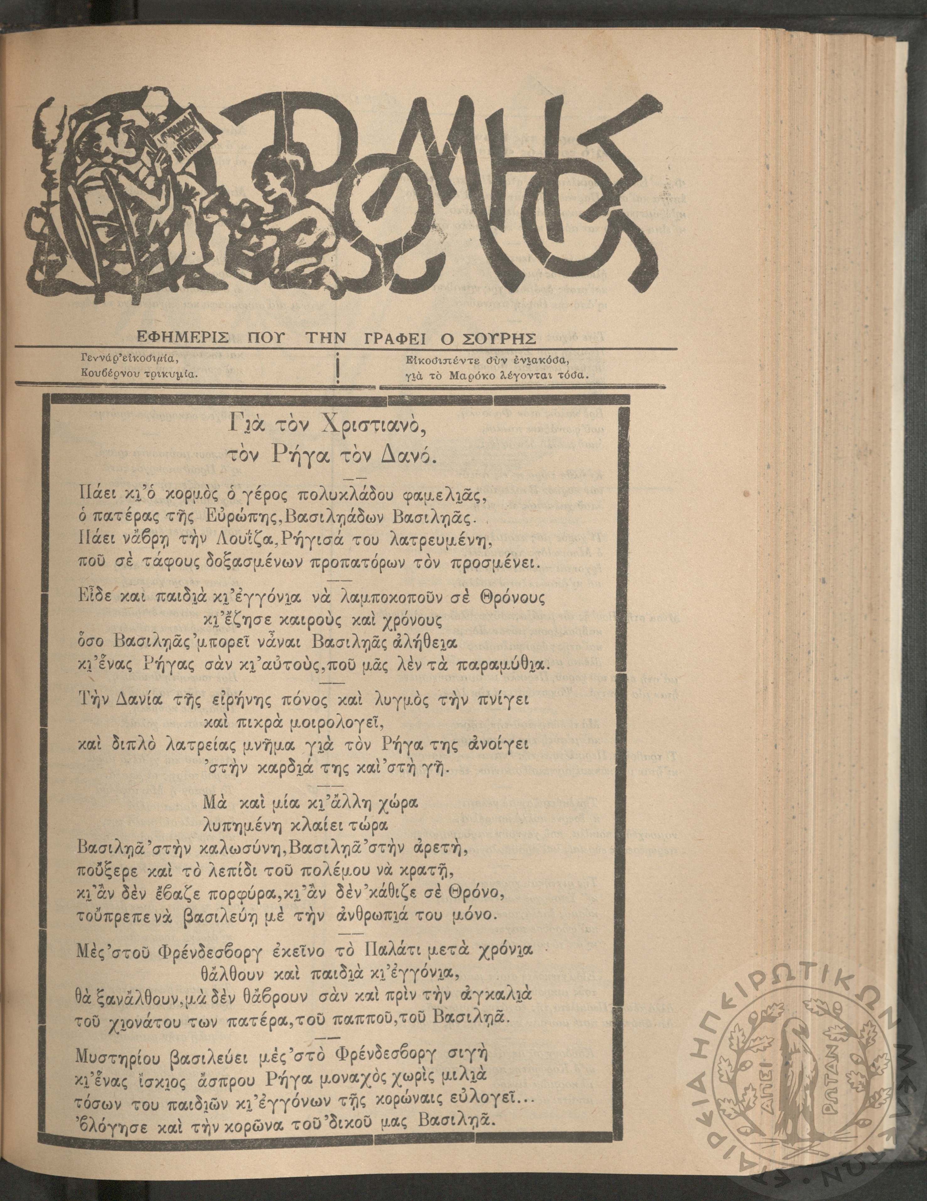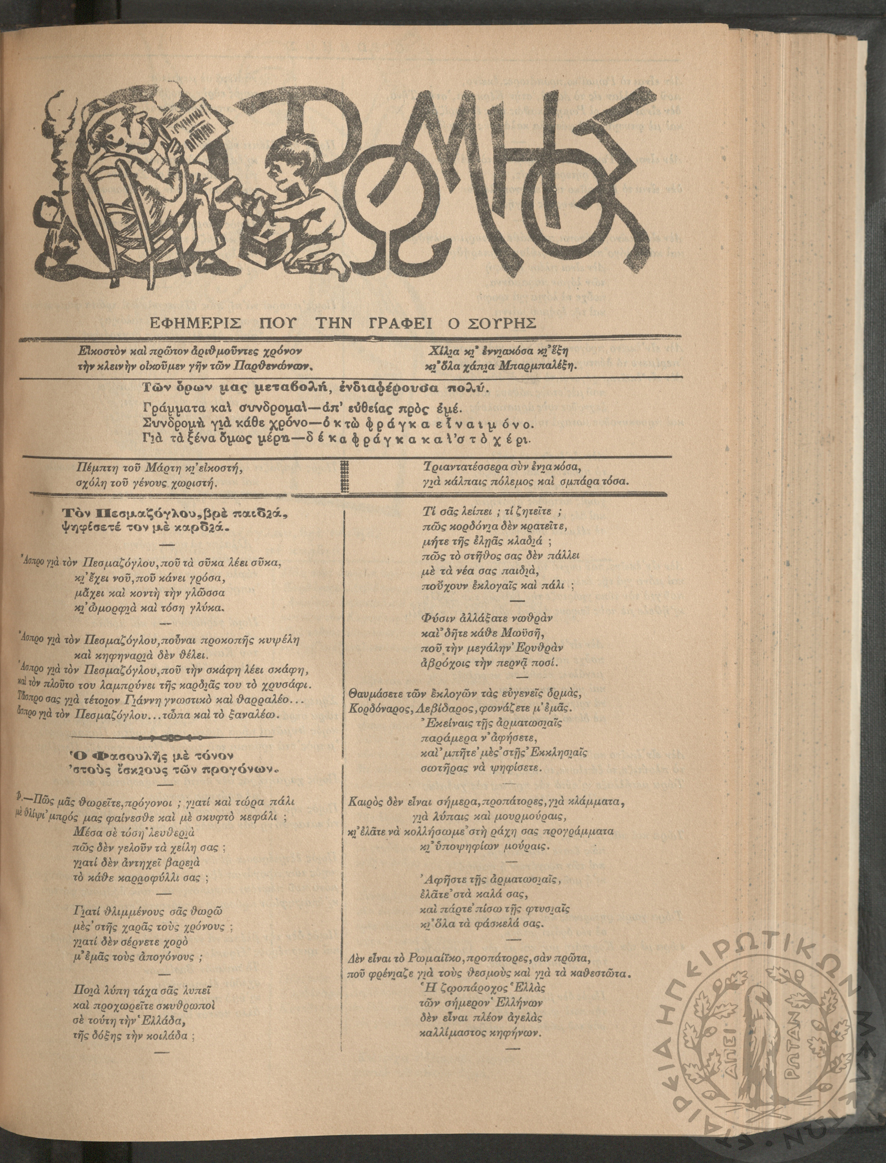 Ο Ρωμηός: Εφημερίς που την γράφει ο Σουρής, 1905, φ. 920