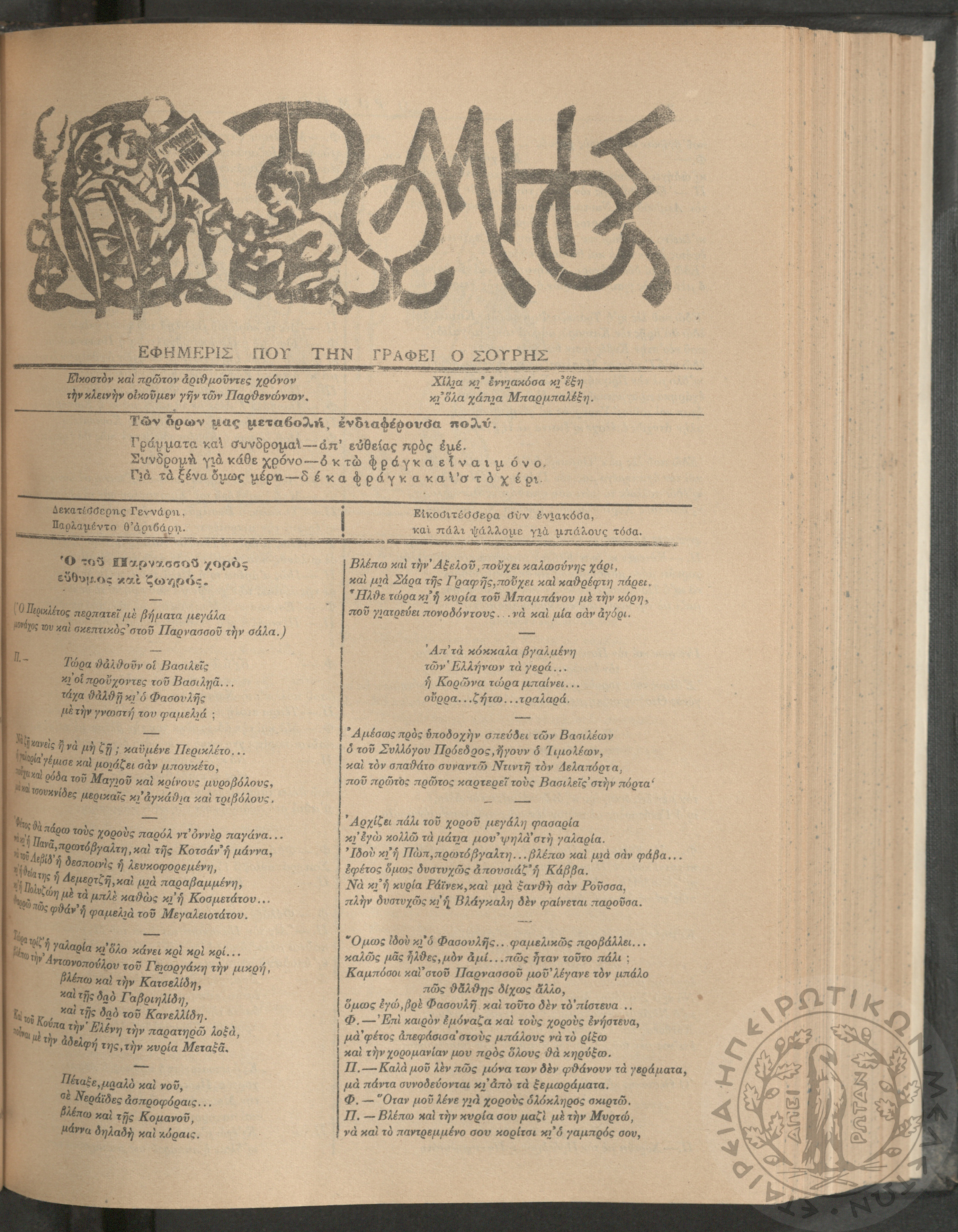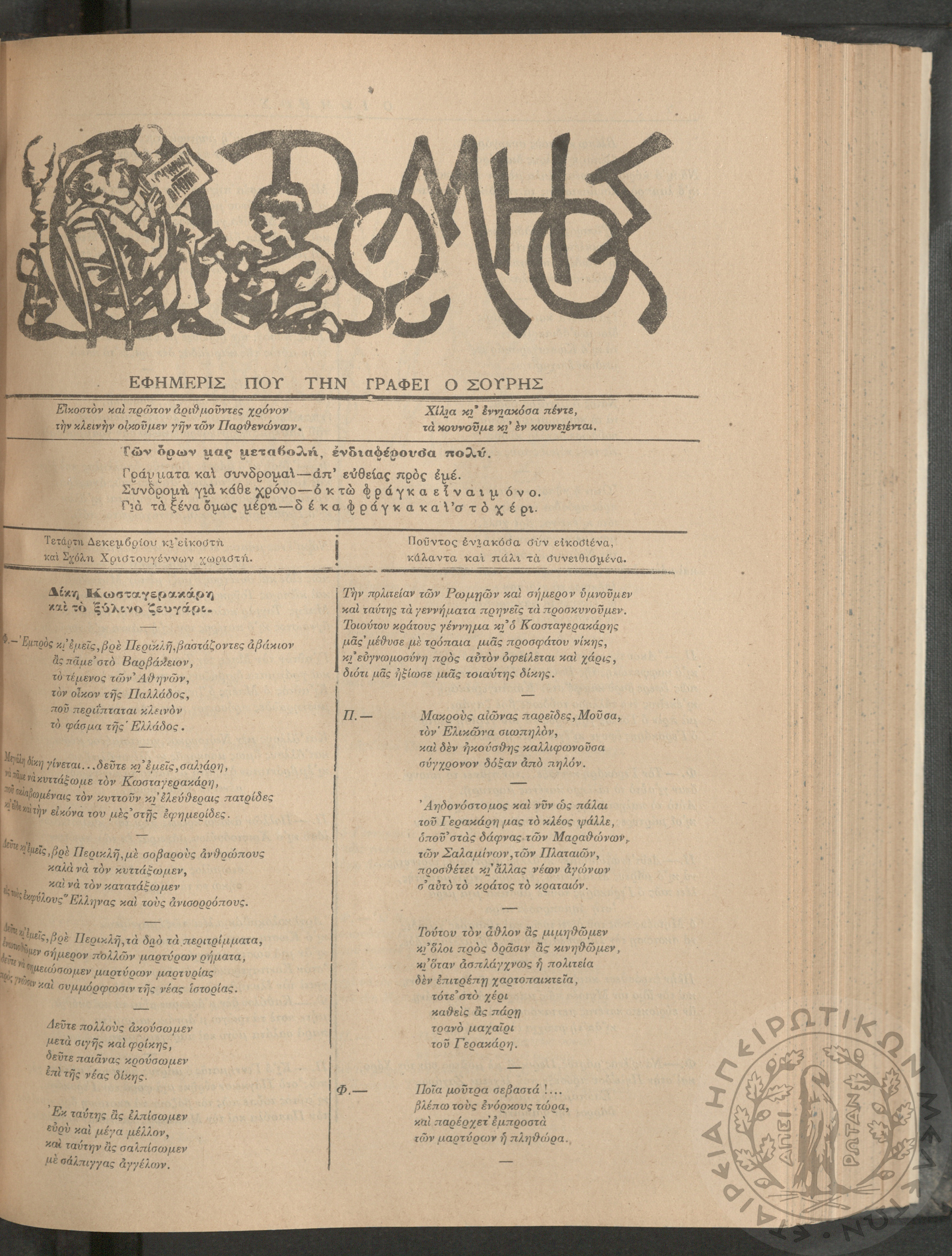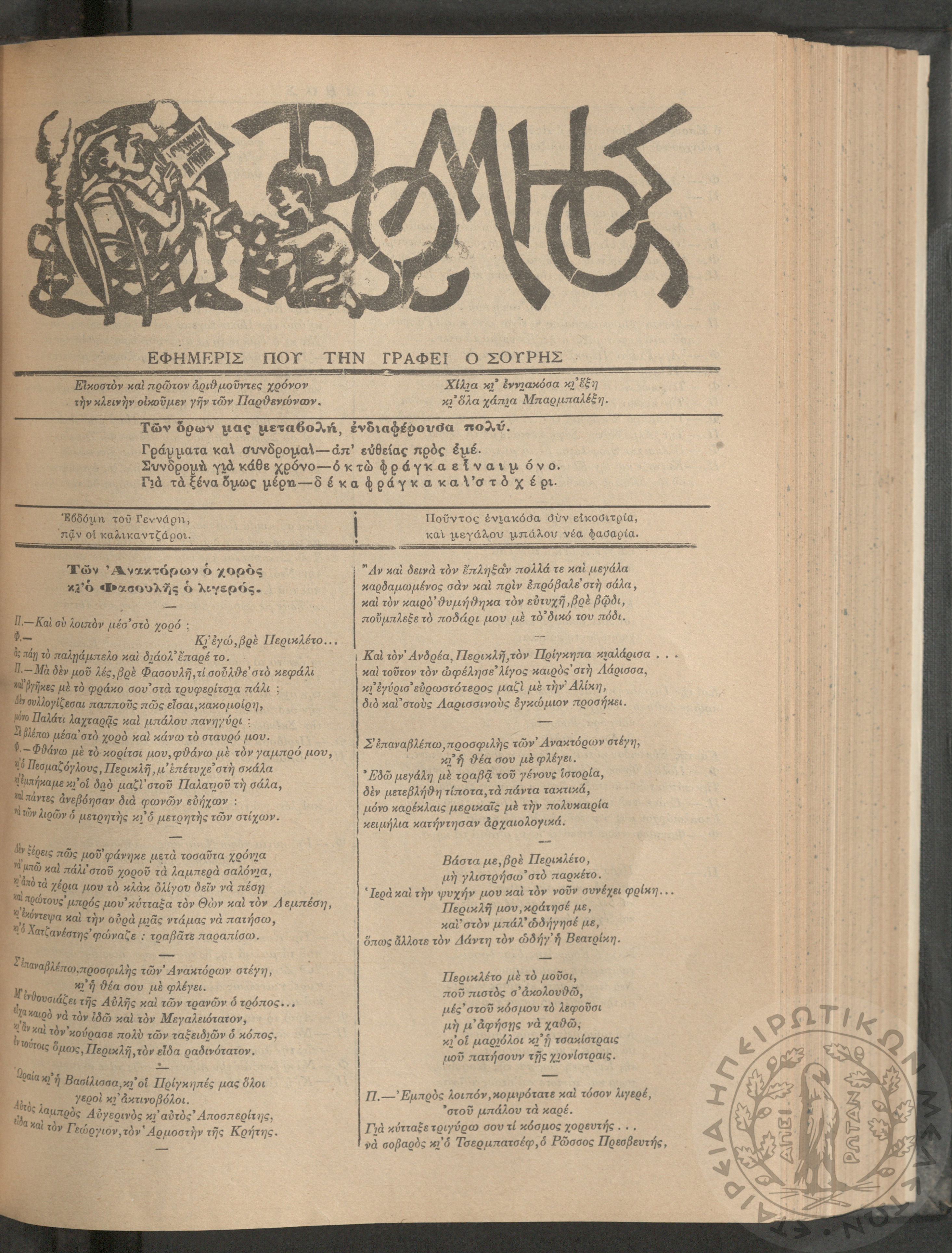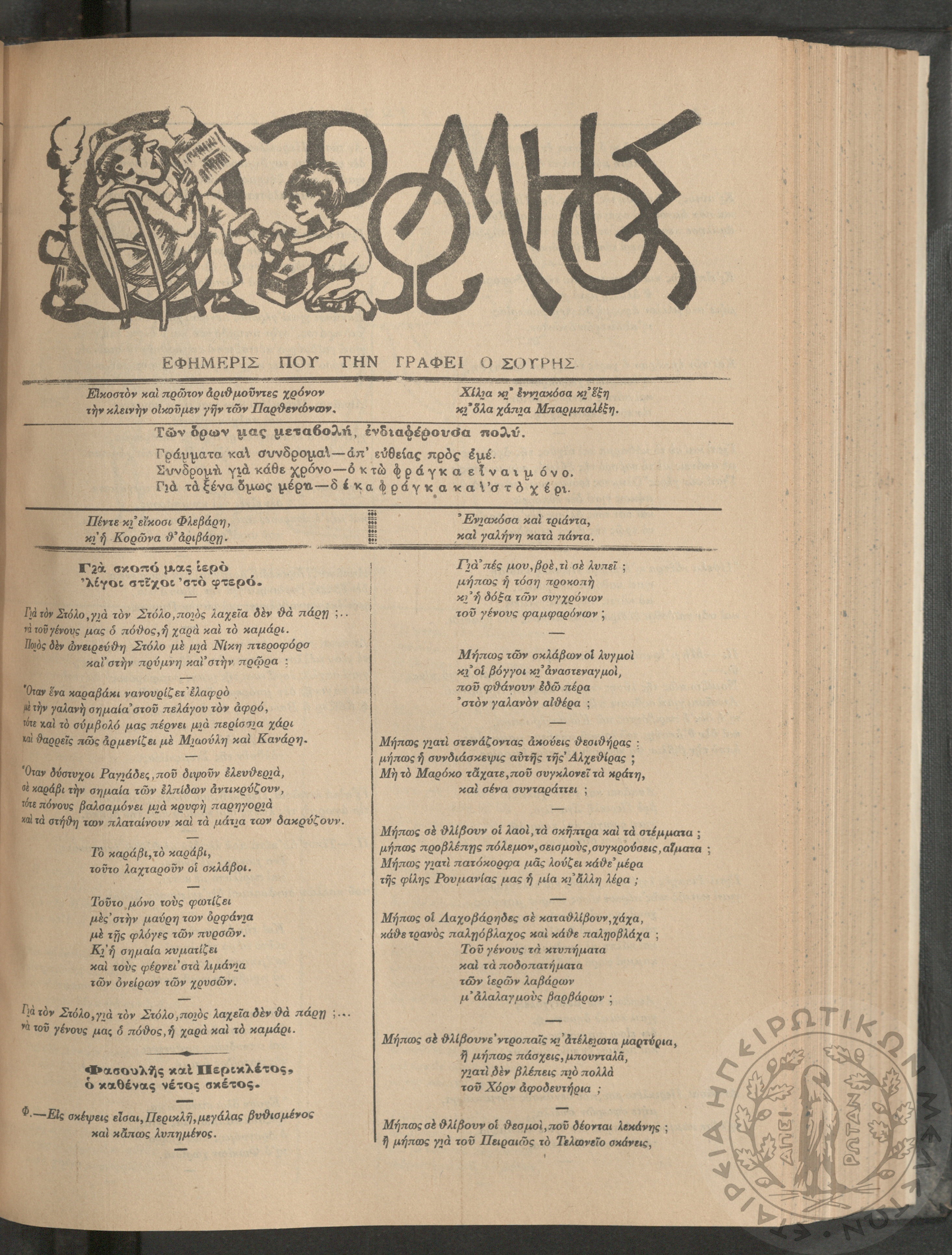 Ο Ρωμηός: Εφημερίς που την γράφει ο Σουρής, 1905, φ. 921