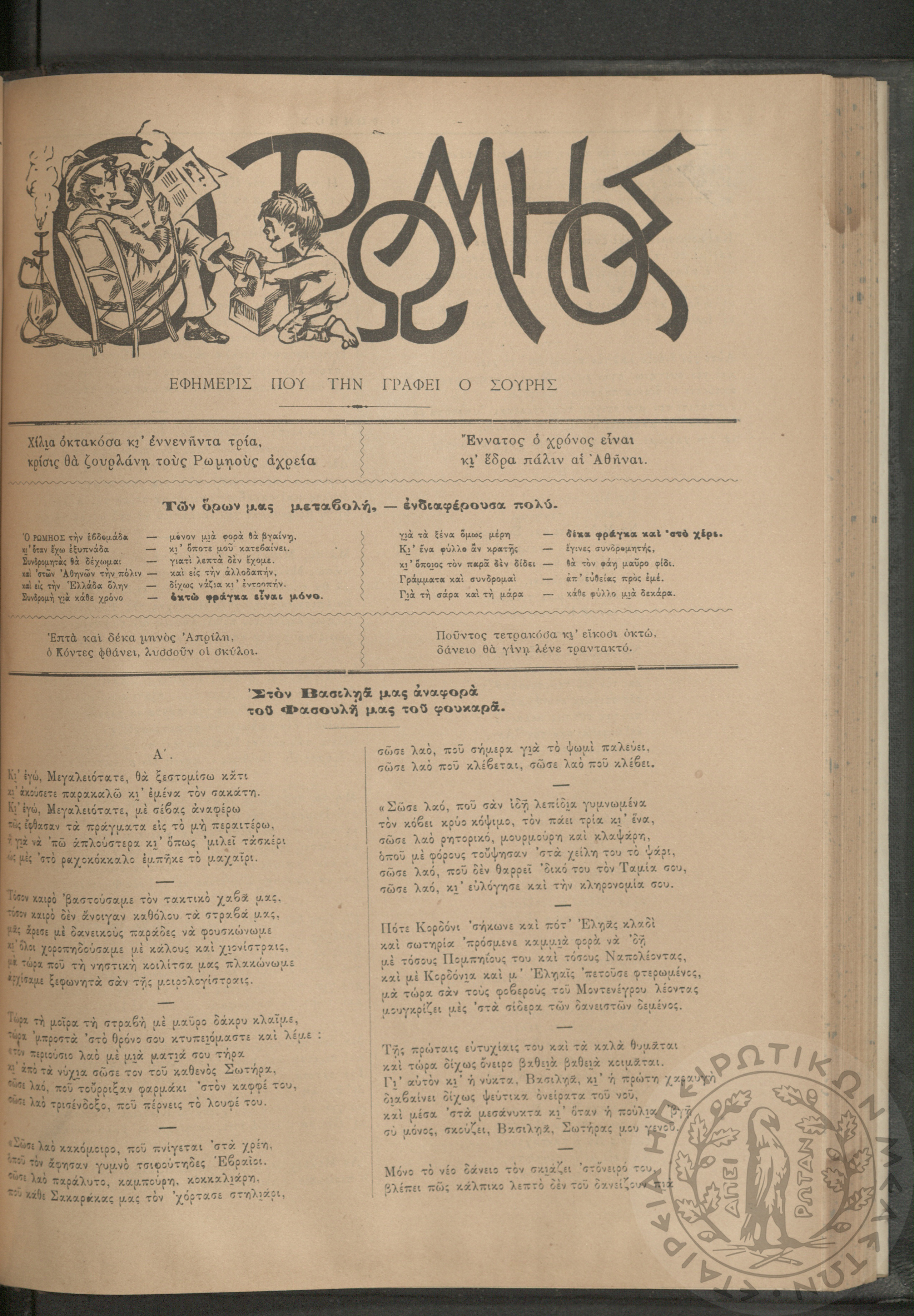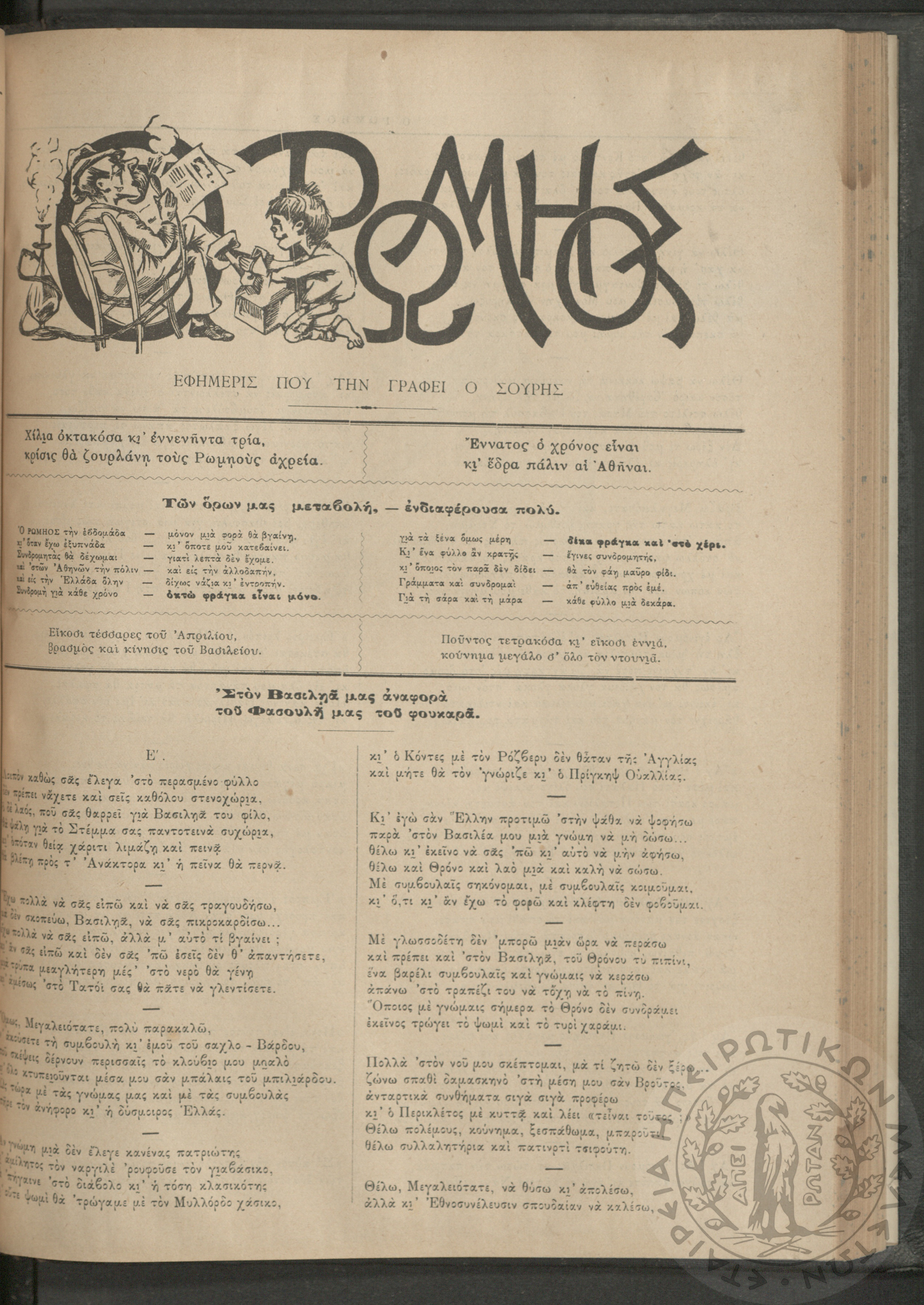 Ο Ρωμηός: Εφημερίς που την γράφει ο Σουρής, 1893, φ. 433