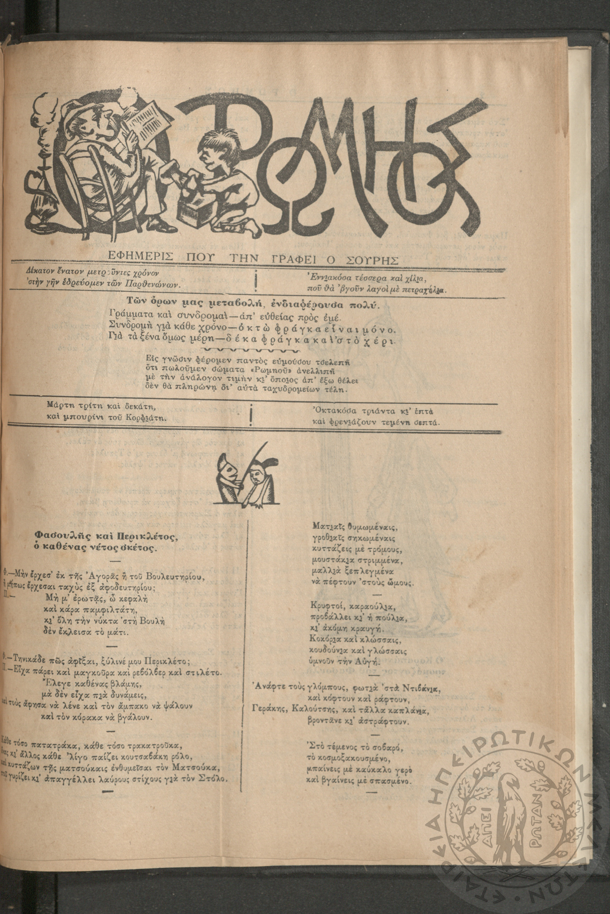 Ο Ρωμηός: Εφημερίς που την γράφει ο Σουρής, 1906, φ. 923