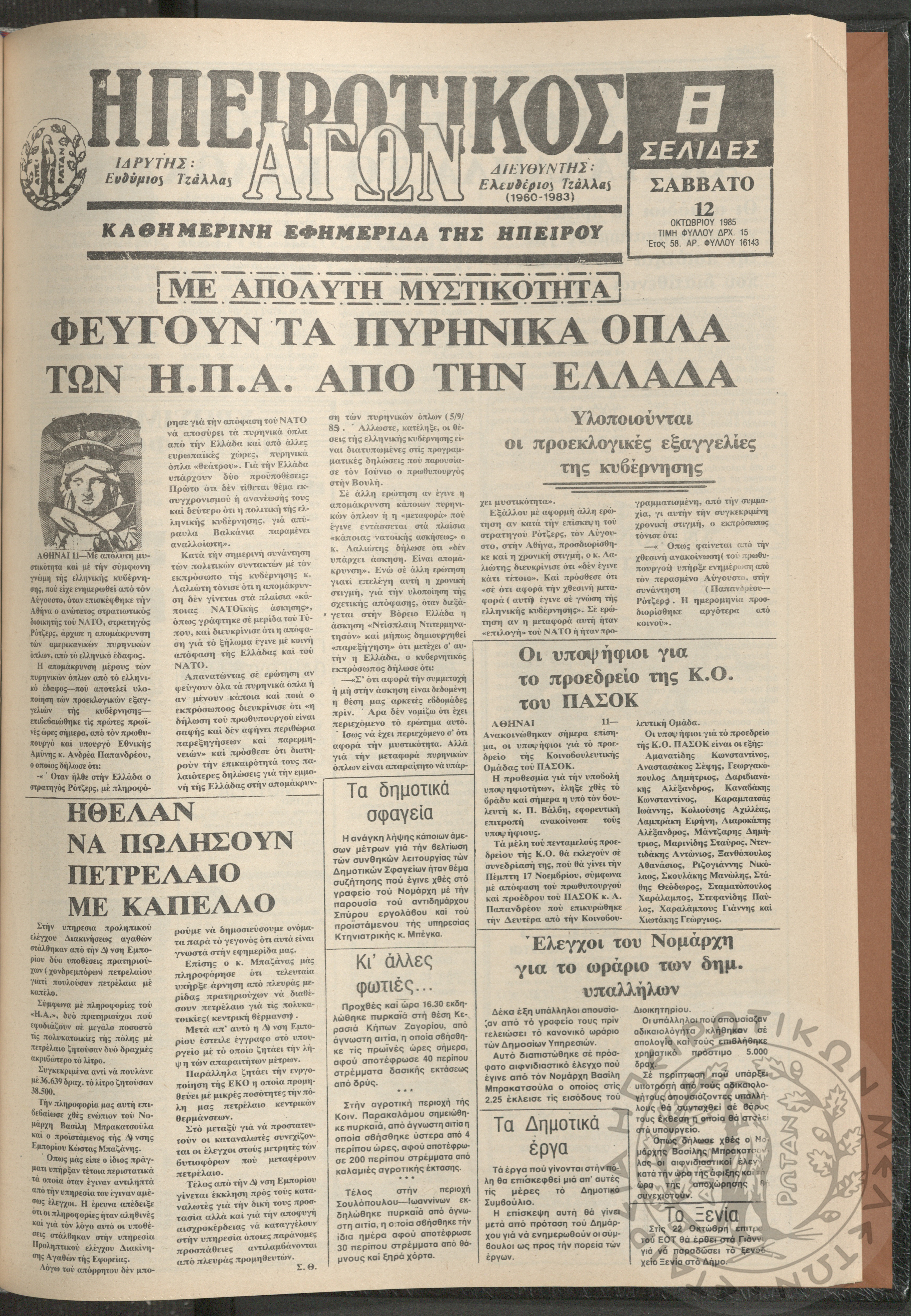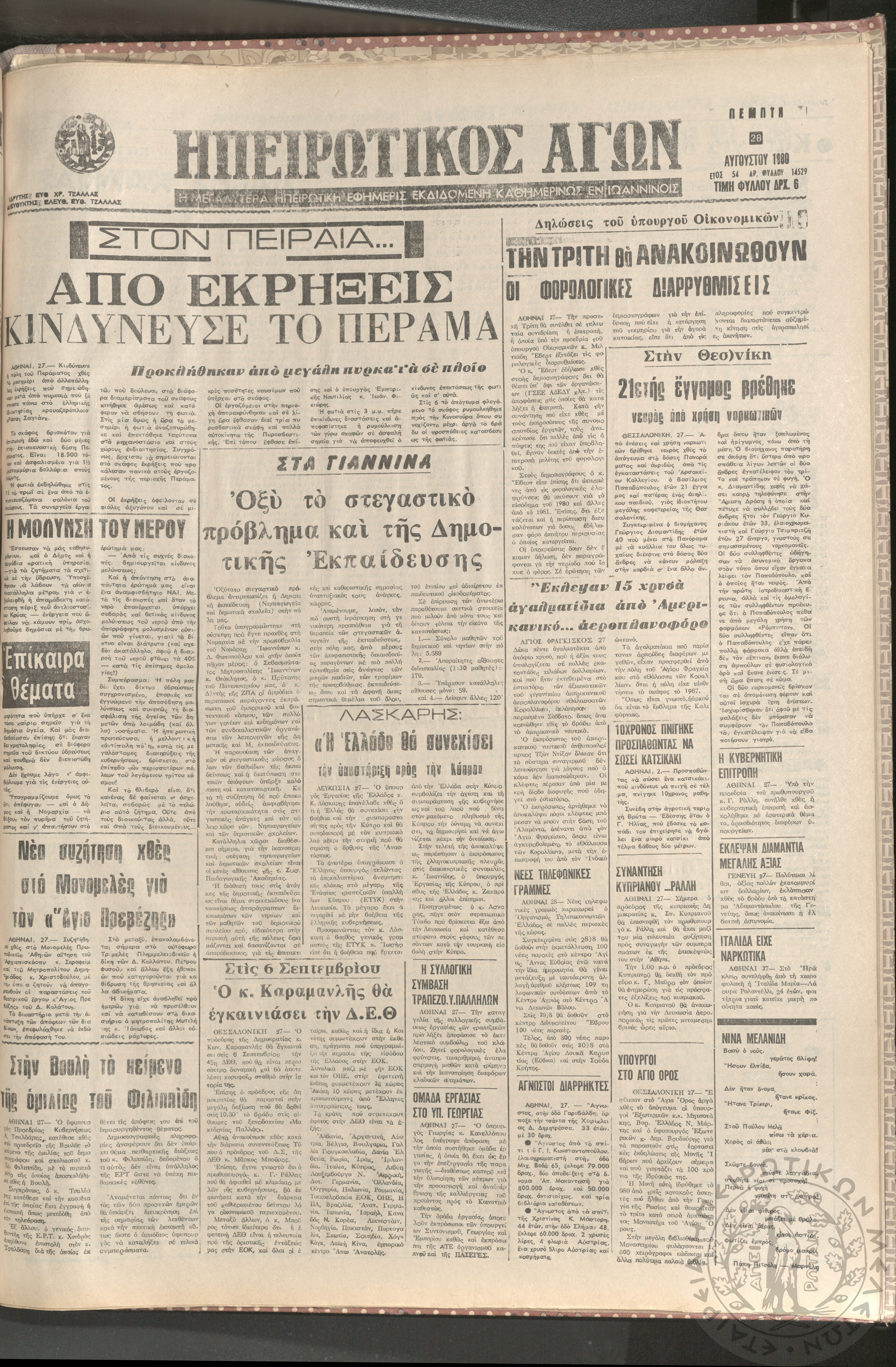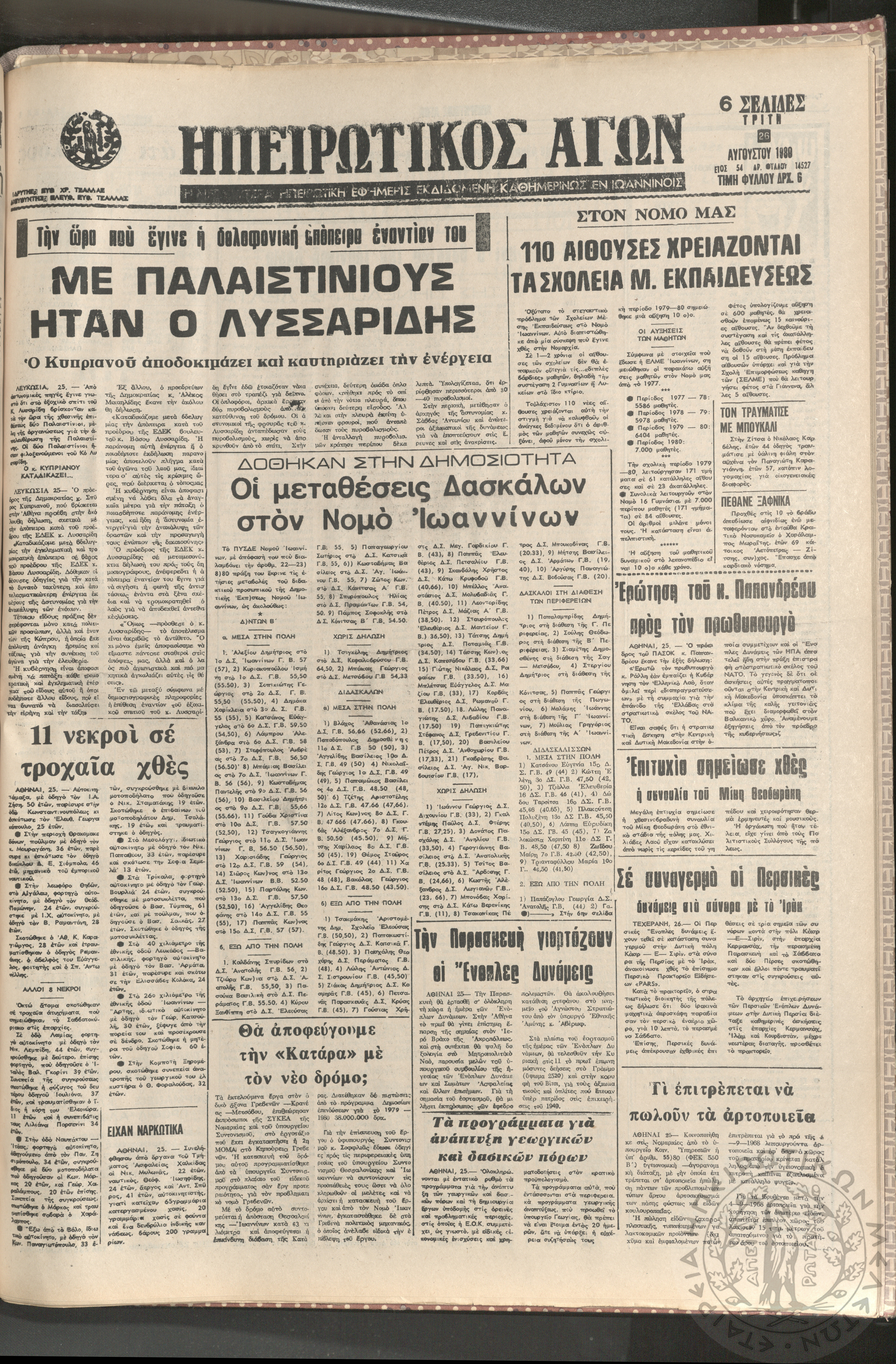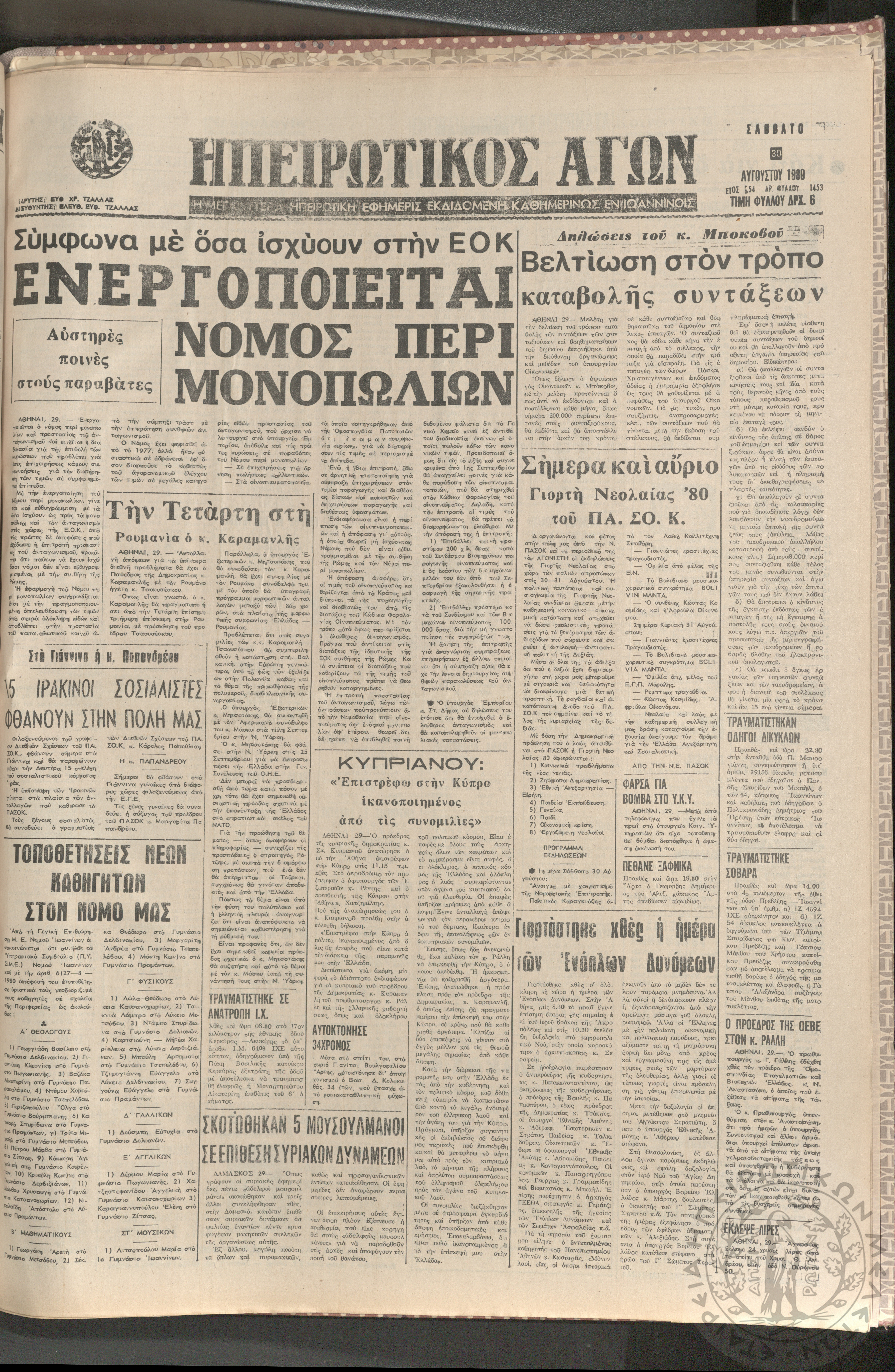 Ηπειρωτικός Αγών: η μεγαλυτέρα Ηπειρωτική εφημερίς εκδιδόμενη καθημερινώς εν Ιωαννίνοις, 1980, φ. 14527Έτος 54, φ. 14527...
