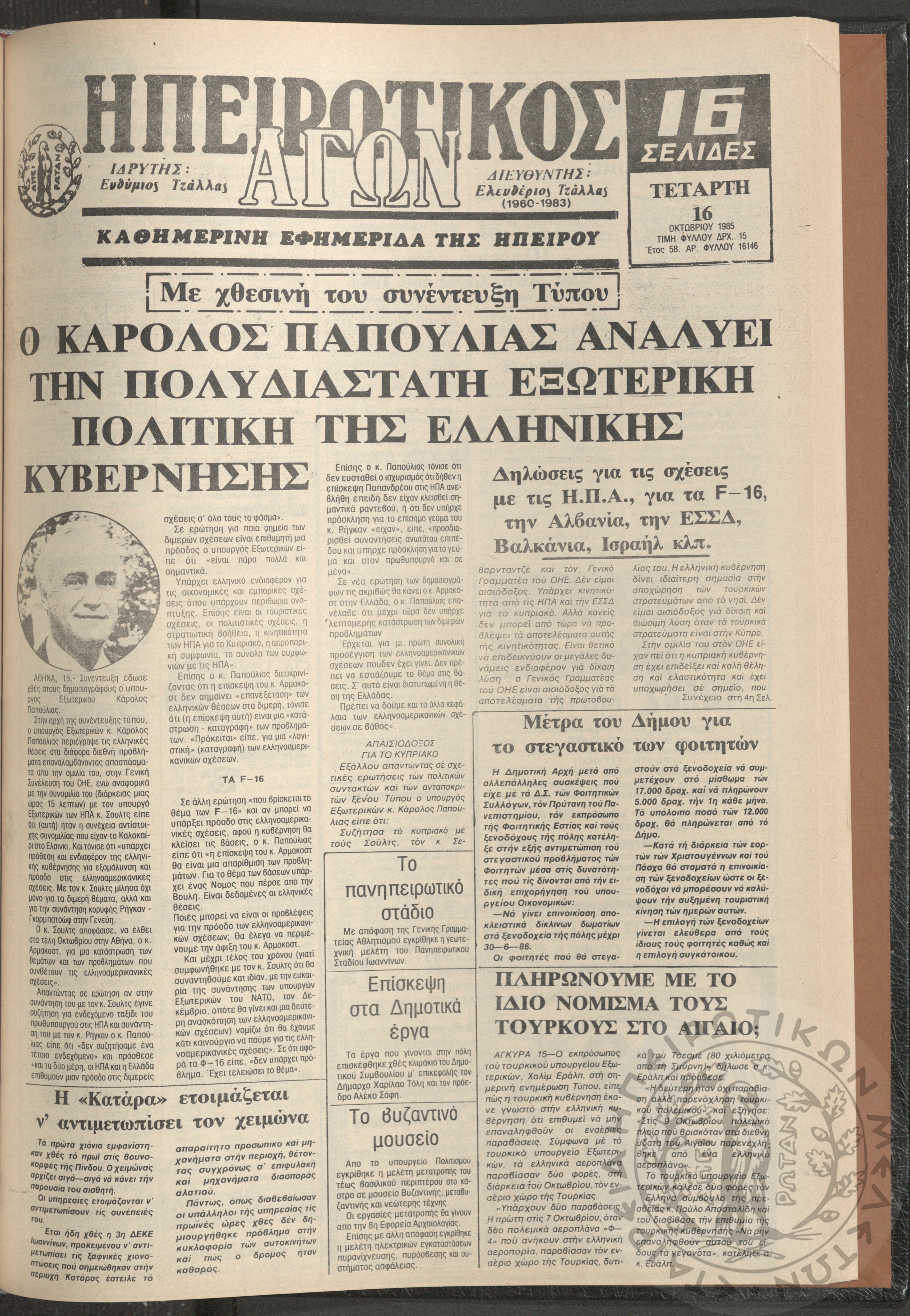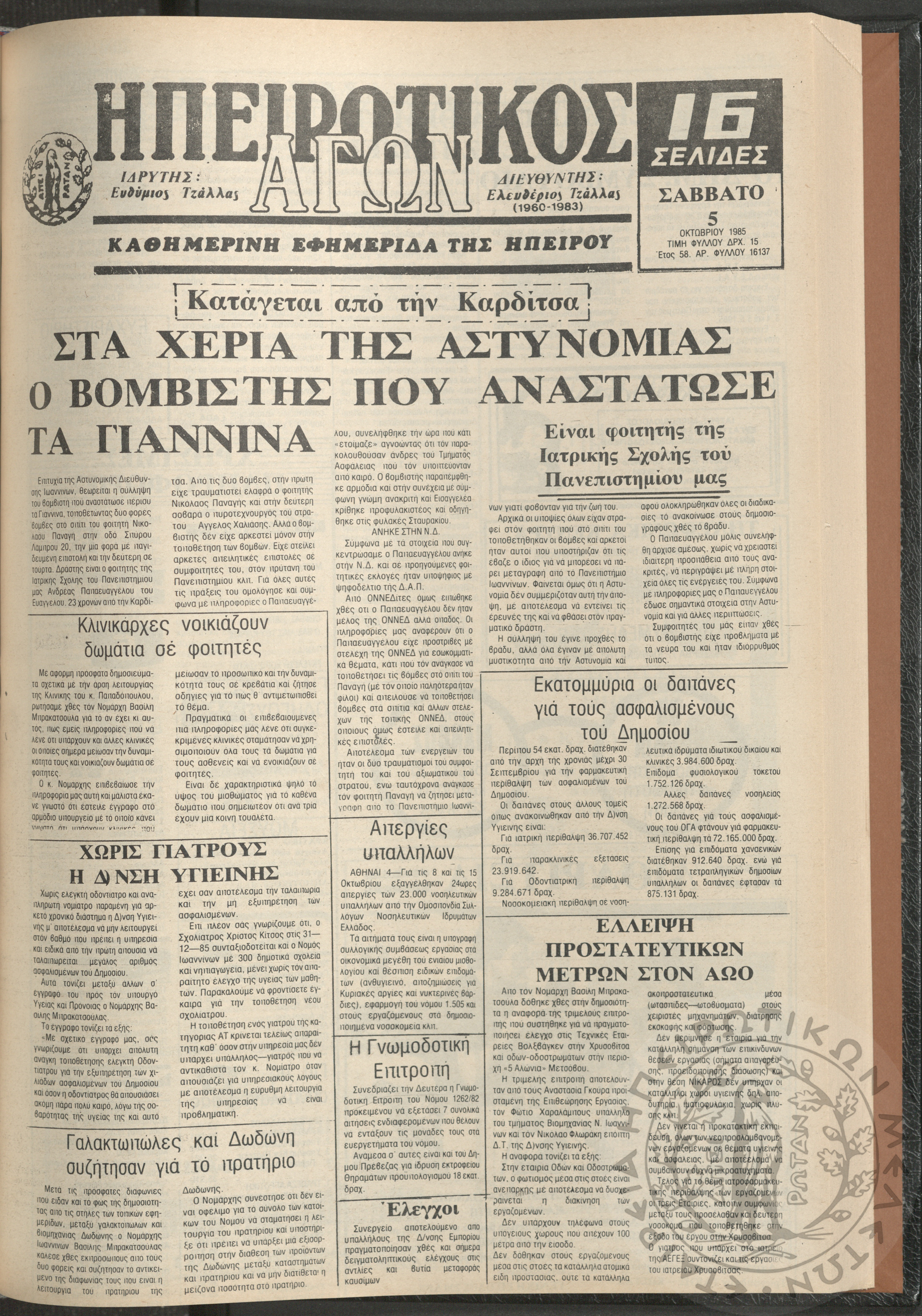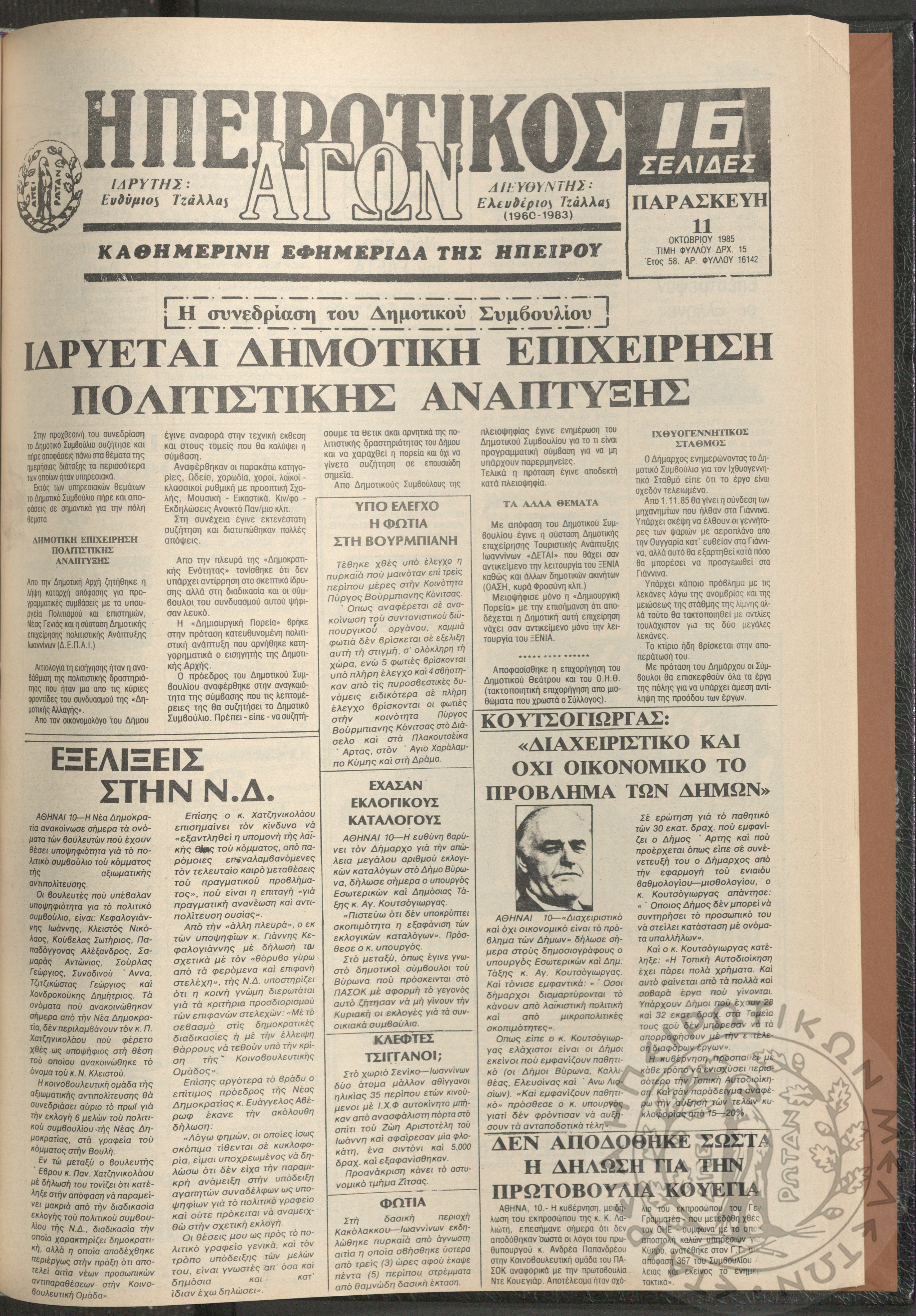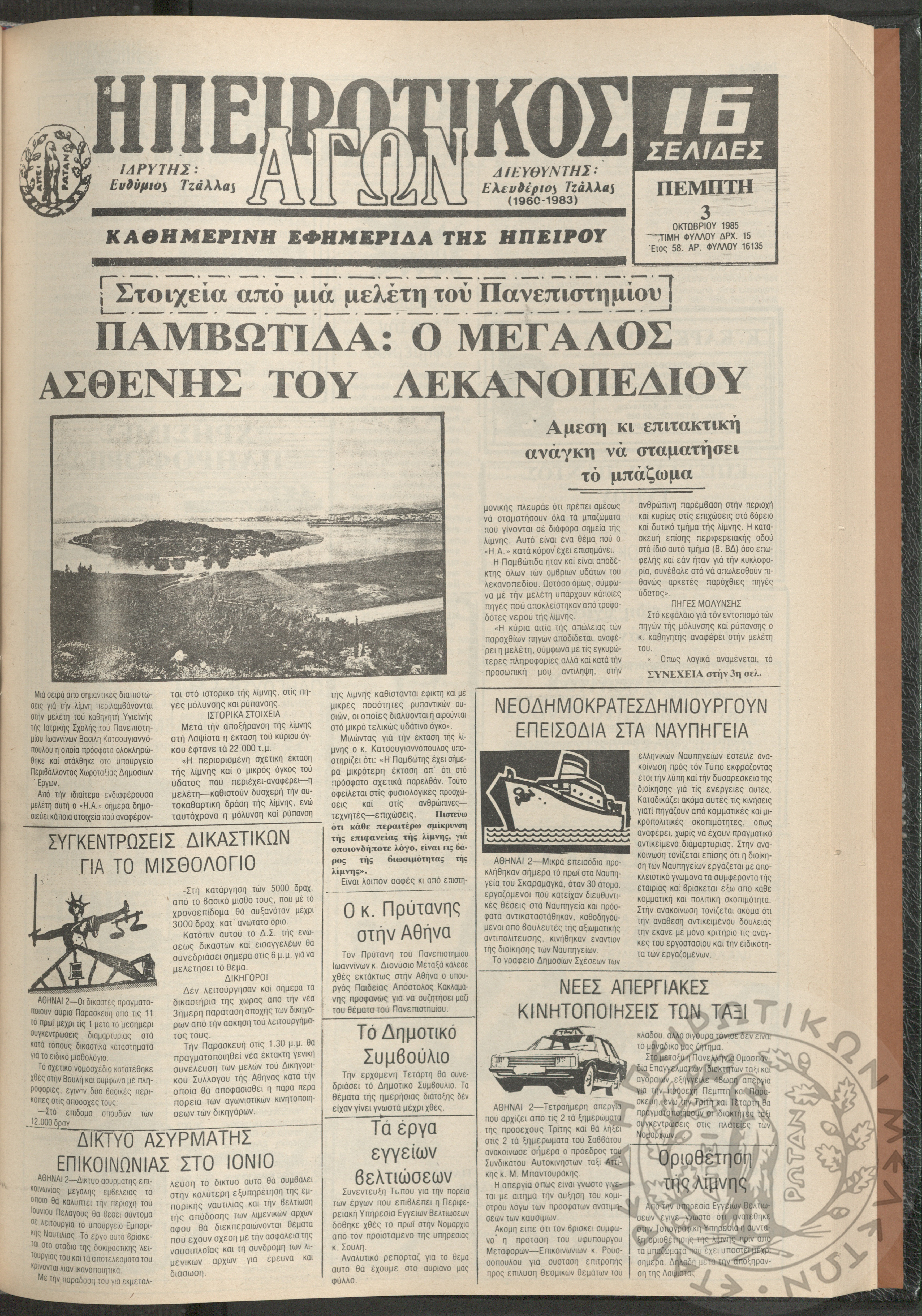 Ηπειρωτικός Αγών: η μεγαλυτέρα Ηπειρωτική εφημερίς εκδιδόμενη καθημερινώς εν Ιωαννίνοις, 1980, φ. 14527Έτος 54, φ. 14527...