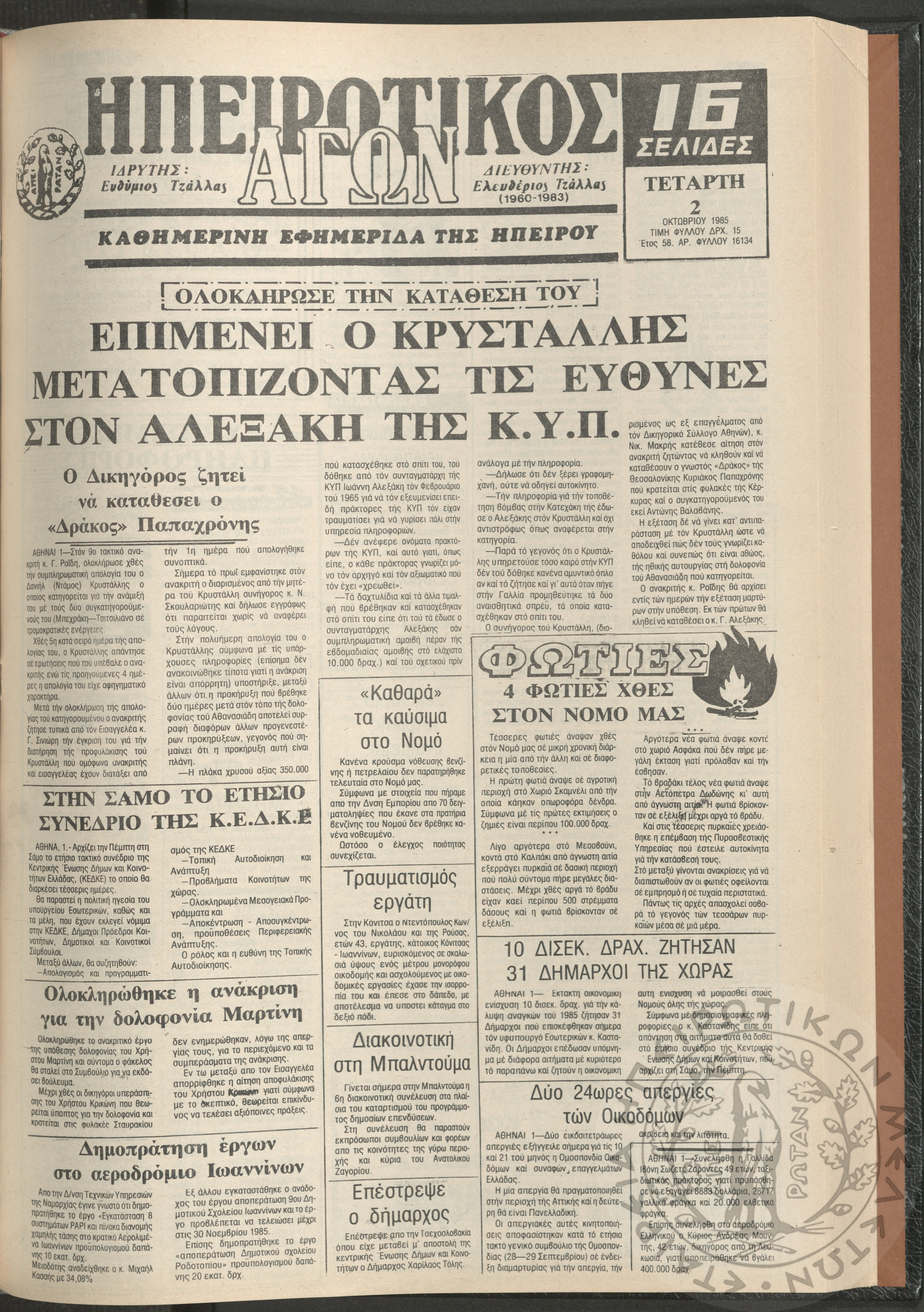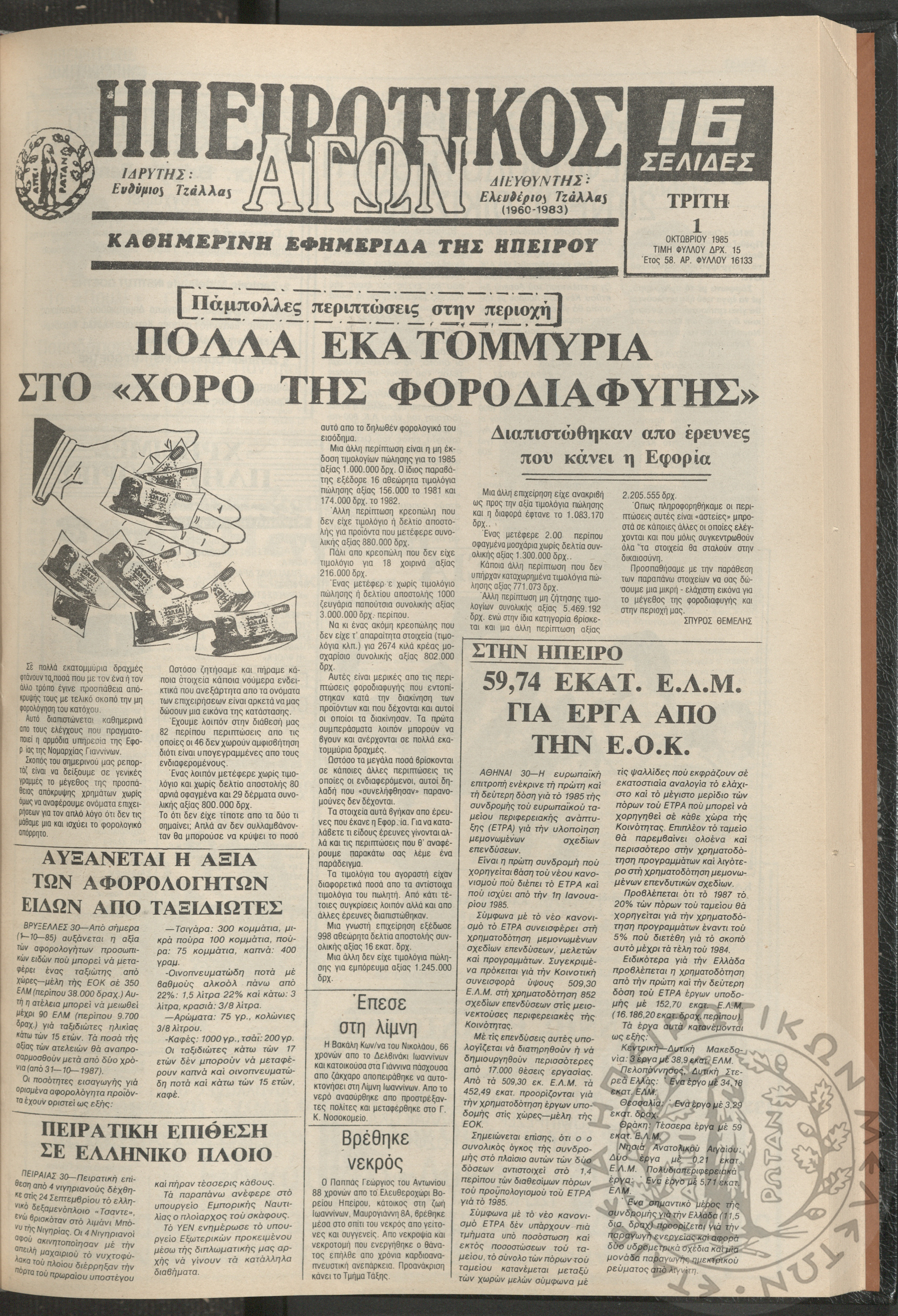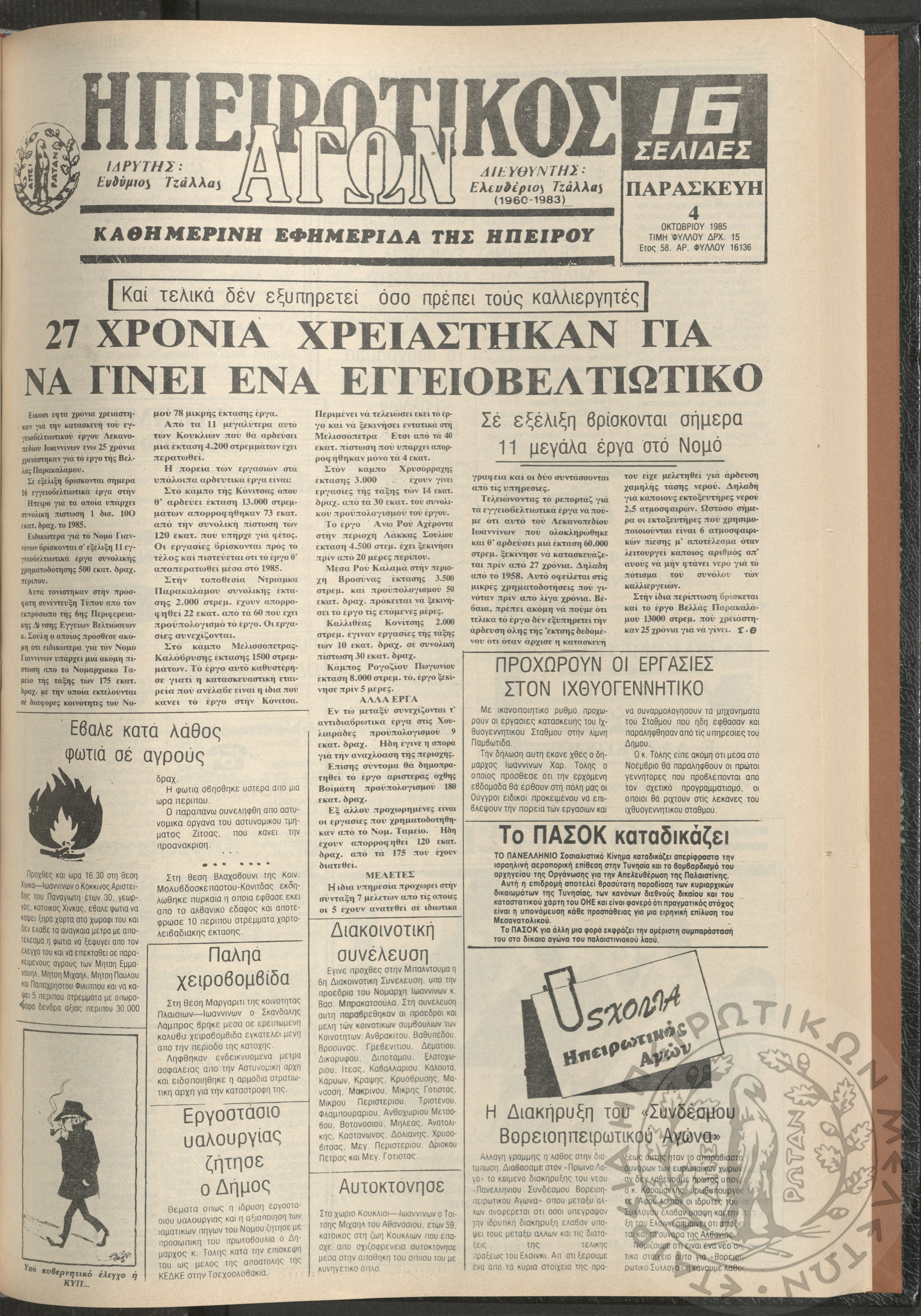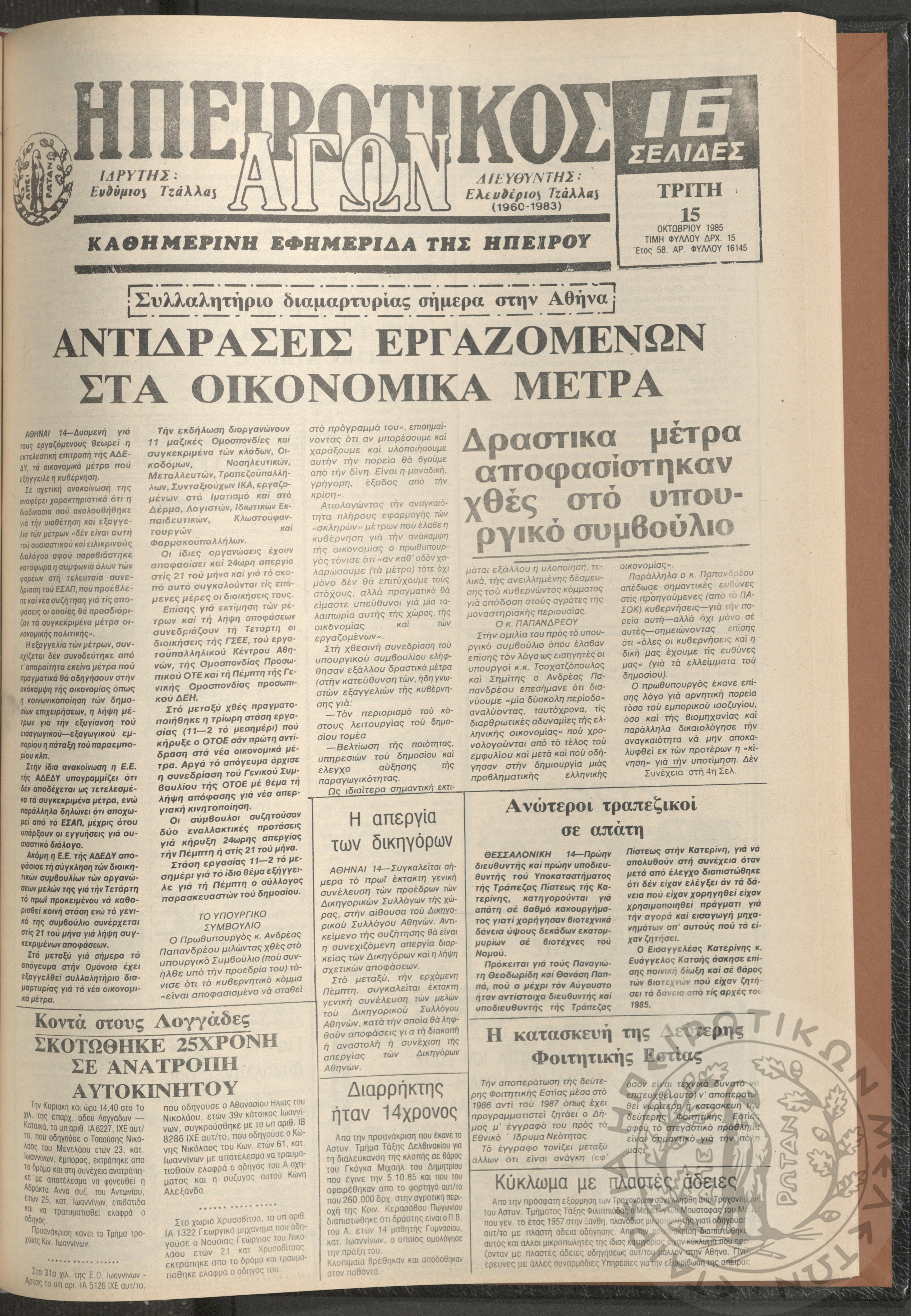 Ηπειρωτικός Αγών: η μεγαλυτέρα Ηπειρωτική εφημερίς εκδιδόμενη καθημερινώς εν Ιωαννίνοις, 1980, φ. 14527Έτος 54, φ. 14527...